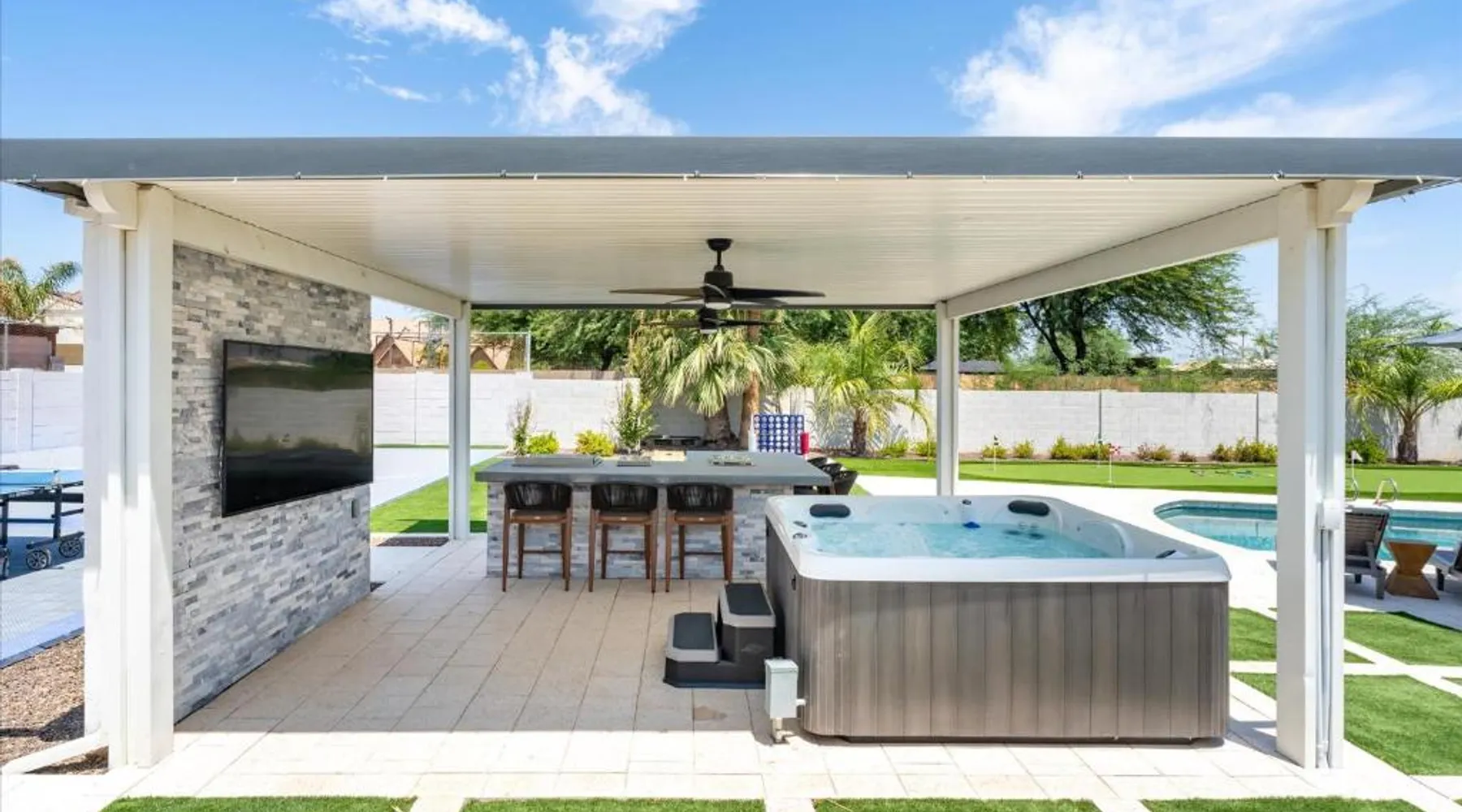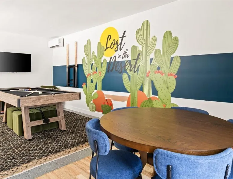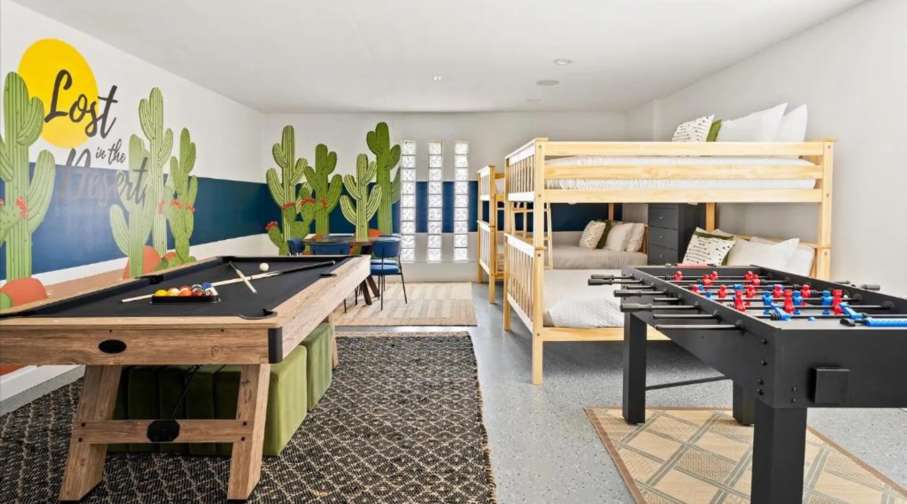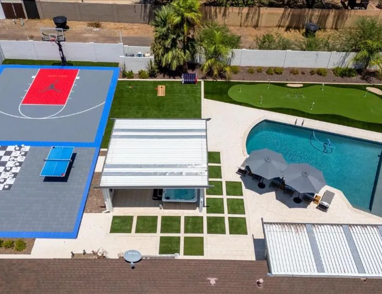 Spacious Accommodations: Sportscourt Pool Hot Tub Game Room Playground in Phenix offers a spacious holiday home with five bedrooms and three bathrooms. The property includes a fully equipped kitchen, dining area, and a private pool. Leisure Facilities: Guests can enjoy a spa and wellness center, outdoor swimming pool, and a hot tub. The property features a casino, waterpark, and games room, ensuring entertainment for all ages. Convenient Amenities: The holiday home provides free WiFi, air-conditioning, and a washing machine. Additional amenities include a patio, barbecue, and free on-site parking. Local Attractions: Located 1.9 mi from Scottsdale Airport, the property is close to attractions such as the Musical Instrument Museum (6.2 mi) and Phenix Convention Center (17 mi). This holiday home's standout features are the private pool and hot tub. Featuring a private entrance, this spacious holiday home also consists of 5 separate bedrooms and 3 bathrooms with a bath and a hairdryer. Guests will find a stovetop, a refrigerator, a dishwasher and kitchenware in the well-equipped kitchen. The holiday home also offers a barbecue. This holiday home features air conditioning, a washing machine, a TV and a patio. The unit offers 9 beds.