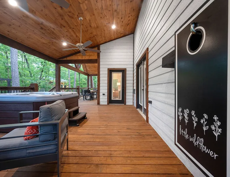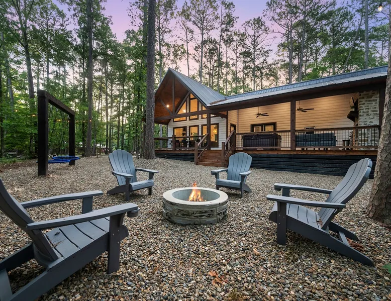 Looking for romantic getaway to a cabin in the woods? Make memories at Little Wildflower for couples or small family! ✔ Large hot tub with LED lighting ✔ Indoor & outdoor cozy fireplaces ✔ Firepit w/string lights ✔ Outdoor dining and furniture under the covered back patio deck ✔ Custom cornhole boards ✔ HD smart TVs in the bedroom, living room & back patio ✔ Plenty of fun board and card games ✔ 1 Gbps high speed WIFI for work or play ✔ Gas grill for cooking up your favorite meals ✔ Pet friendly The space ✔ Arcade system with 60 classic games ✔ Tetherball ✔ Self-Check in (Smart locks) ✔ Full size washer & dryer in cabin ✔ Coffee maker and coffee provided Little Wildflower is a beautiful and luxury designed cabin featuring both fun things to do indoors and out! Nestled back in the woods, it combines privacy, comfort and fun for family, couples celebrating time together or special anniversary occasion. ☆☆ BEDROOM ☆☆ The cabin accommodates 4 guests comfortably, offering a private master bedroom with king bed. Quality furnishings and large HD smart TV. ☆☆ BATHROOM ☆☆ The master bathroom provides dual vanities, free standing tub and separate shower with oversize rain shower head. The 2nd full bathroom with shower/tub combo has unique vibe with colorful flower themed walls. ☆☆ KITCHEN & LOUNGE ☆☆ The open-concept kitchen features stainless-steel appliances, large island, electric stove and all the accessories you need to cook a meal for your hungry family members. The granite kitchen island is perfect for family gatherings. The living room offers a cozy space with a plush sofa & leather chair. Enjoy the indoor fireplace with the turn of a switch turn on the smart TV to watch one of your favorite shows. For a little friendly competition break out some board games or try your luck on the classic arcade system. ☆☆ OUTSIDE SPACE ☆☆ Stepping outside you will find a built gas BBQ grill, hot tub, furniture, smart TV and cozy fireplace to enjoy the quiet evenings. All of it covered under an extra-large patio so you can enjoy the outside even when it is raining. Step off the patio and for even more amenities. Roast some smores by the fire pit, hang out on the swings or challenge each other to some tetherball & or corn hole. This is definitely a place to reconnect and relax. Conveniently located near Dallas, Fort Worth, Oklahoma City, Tulsa, Little Rock, and Shreveport, "Little Wildflower" in Broken Bow, Oklahoma, offers a fantastic cabin experience. Whether it's a quick trip or a relaxing vacation, this chalet promises a wonderful time amid nature activities, hiking trails, entertainment and great restaurants. Celebrating a special occasion?? We are happy to connect you with an amazing concierge service to make your stay extra special!! ☆☆ DISTANCE TO AREA ATTRACTIONS ☆☆ 12 mins to Broken Bow Lake 6 mins to Hochatown Petting Zoo 4 mins to Beavers Bend Brewery 17 mins to Beavers Bend Train Depot 9 mins to the new casino, Choctaw Landing 5 mins to many restaurants including Naaman's BBQ, Shuck Me, Mountain Fork Brewery & more! 19 mins to the Pruetts grocery store 5 mins to Girls Gone Wine 9 mins to Rugaru Ziplining 10 mins to Tiki Boat Tour 2 mins to Hochatown maze min golf 32 mins to Museum of Red River ★☆ Book Today & Let Us Host You in Broken Bow! ☆★ Guest access As guests, your group will have this entire cozy cabin all to yourselves. This includes comfy bedrooms, cozy living spaces tastefully decorated with high end furnishings and amazing outdoor amenities. Fast wifi is available throughout the property, so you’ll be able to stream for fun or work. Other things to note ACCESS: Check in is at 4pm and checkout is at 10am. We are not able to accommodate early or late checkins/outs during busy times or same day checkins/outs for guests. The property features self-checkin using an electronic smart lock keypad. A unique door code will be provided at least 48 hours before check-in. RULES ✔ No more than the max number of guests allowed at the property based on the reservation. ✔ Quiet hours are from 10pm to 9am in respect of other surrounding properties. ✔ Avoid the use of hair dyes, hair coloring and other products that could stain linens. ✔ No fireworks, candles or discharging of firearms allowed. ✔ If the property is left excessively dirty it could require an additional cleaning fee. ✔ An adult of at least 18 years old must supervise all kids around the hot tub and fire features. DAMAGE WAIVER OR DEPOSIT: As part of the reservation, we do require a damage waiver fee charged or damage deposit. RENTAL AGREEMENT: We ask guests to sign a rental agreement for their reservation. RECOMMENDATIONS: We encourage all guests to purchase rental insurance should something unexpected come up and impact your stay. We must follow our refund policy. NO SMOKING: or use of fire permitted in the rental. Guest acknowledges that no “smoking” includes the use of vape pens and marijuana and “use of fire” includes lighting of candles, incense or sage. There will be a $500 charge if this rule is not followed. SECURITY CAMERAS: Renters acknowledge and accept that the property is monitored by outdoor security cameras to protect the property. GAS FIREPLACE(S): These are turned off from Mid-May to Mid-September in the warmer months. PETS: Pets are allowed with a small fee that is charged at booking. NOTICE: All guests at the property agree to hold the property owner and all contractors harmless from any and all claims, liabilities, damages, or expenses arising from or related to the use of the property. This includes, but is not limited to, any injuries, accidents, or losses that may occur on the property. Renters acknowledge that they are responsible for their own safety and the safety of their guests while on the premises. The property owner and contractors shall not be held liable for any incidents or damages resulting from the use o