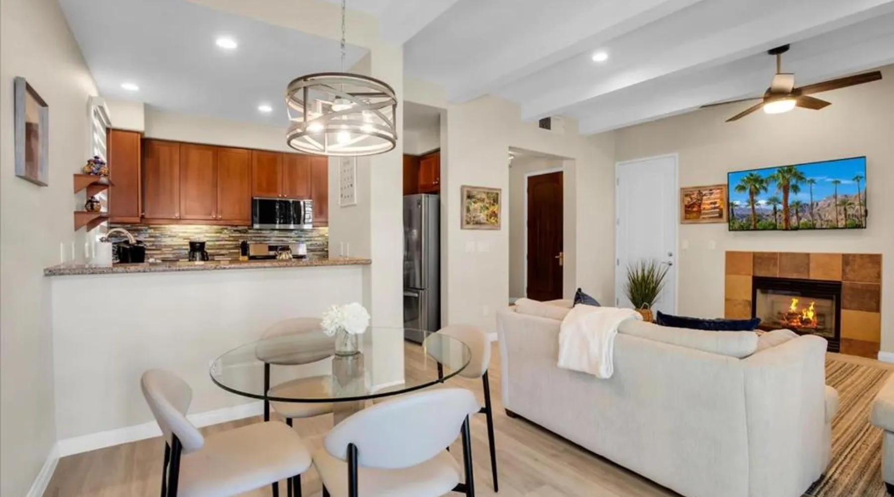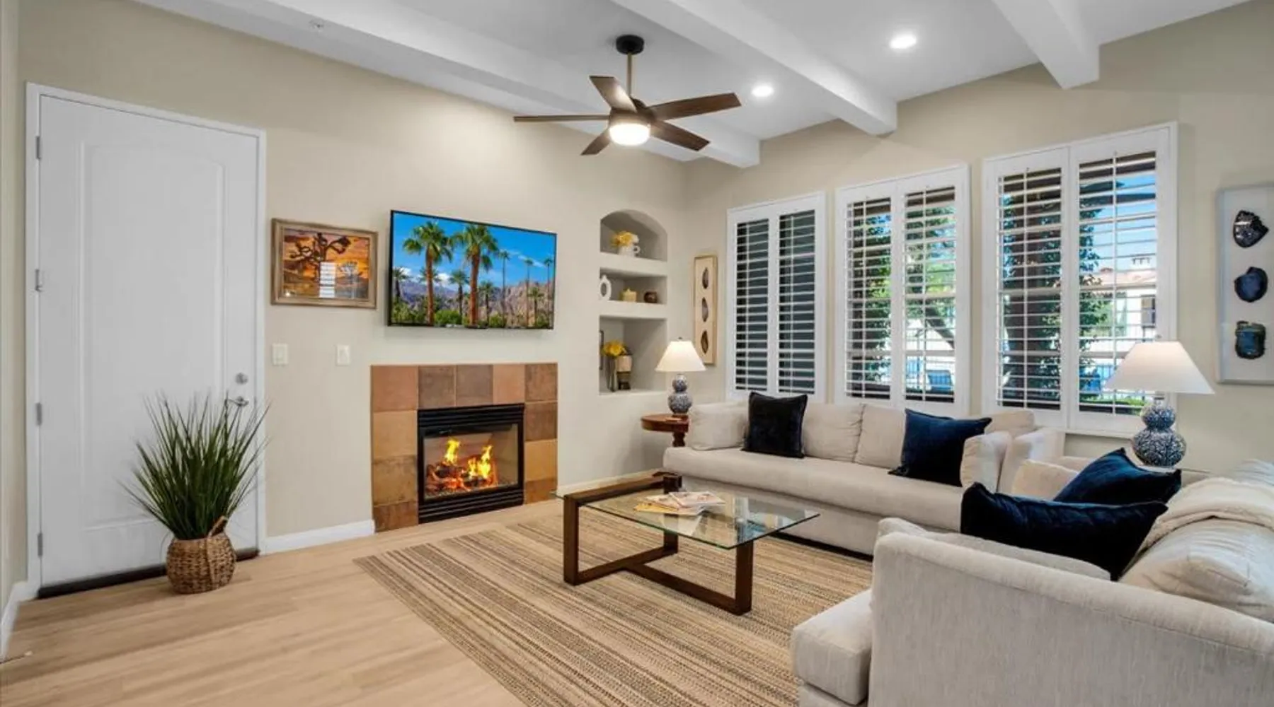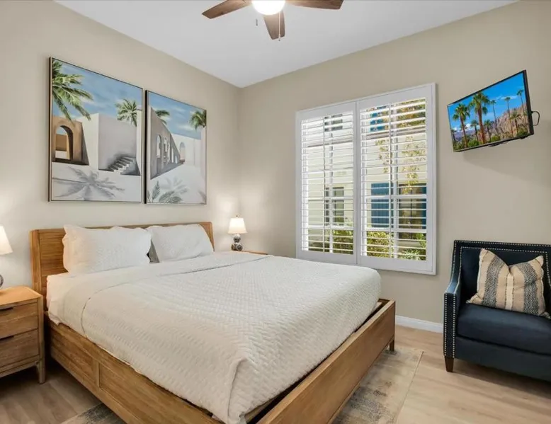 Spacious Accommodations: Modern LQ 3BR Getaway Steps to pool & spa in La Quinta offers a spacious holiday home with three bedrooms and three bathrooms. The property features a fully equipped kitchen, dining area, and comfortable living spaces. Outdoor Amenities: Guests can enjoy an outdoor swimming pool and a spa, complemented by free WiFi. The property includes a hot tub, patio, and outdoor furniture, providing ample space for relaxation. Convenient Facilities: The holiday home provides free on-site parking, a casino, and an electric vehicle charging station. Additional amenities include air-conditioning, a fireplace, and a barbecue, ensuring a pleasant stay. Nearby Attractions: Located 11 mi from Jacqueline Cochran Regional Airport, the property is close to Saks Fifth Avenue Palm Desert (8.1 mi) and Palm Springs Aerial Tramway (24 mi). Other attractions include Oasis Water Park and Palm Canyon. This apartment's special features are the hot tub and the fireplace. Featuring a private entrance, this spacious apartment also consists of 3 separate bedrooms and 3 bathrooms with a bath and a hairdryer. Guests will find a stovetop, a refrigerator, a dishwasher and kitchenware in the well-equipped kitchen. The apartment also offers a barbecue. This apartment features air conditioning, a washing machine, a TV with cable channels and a patio. The unit offers 3 beds.