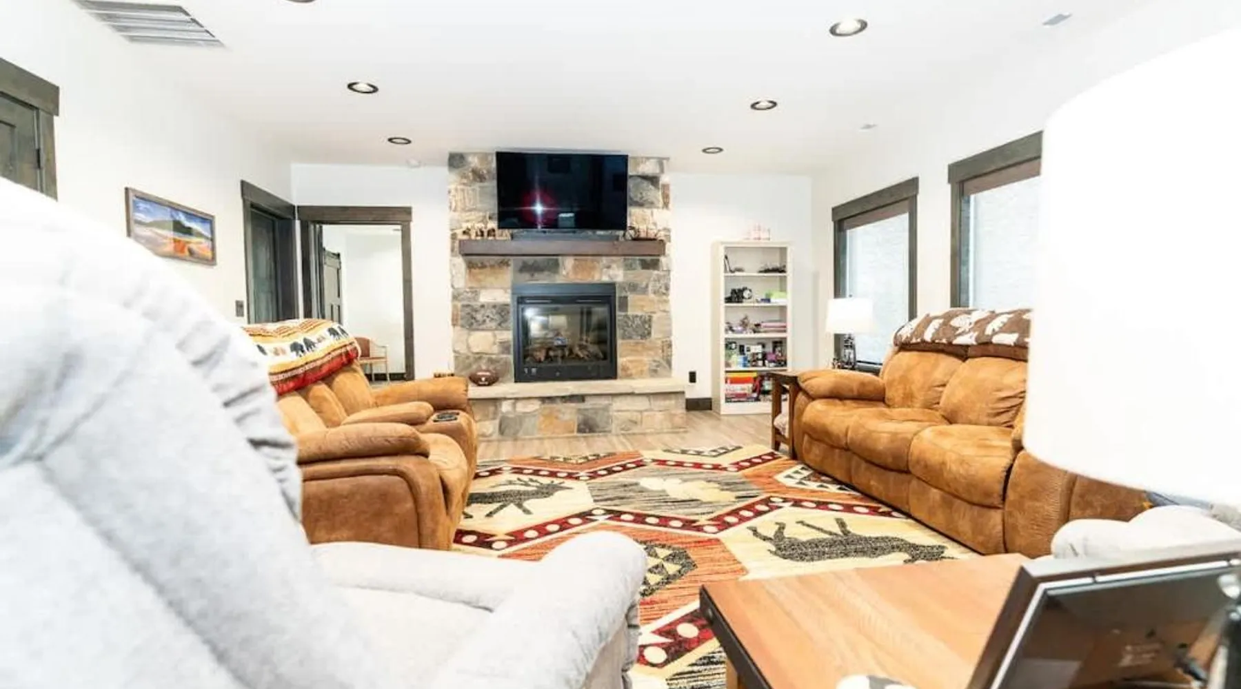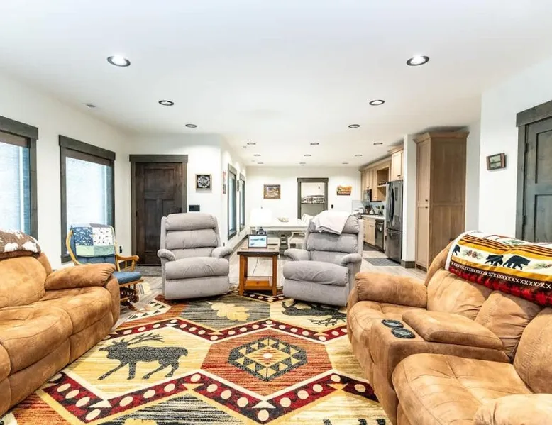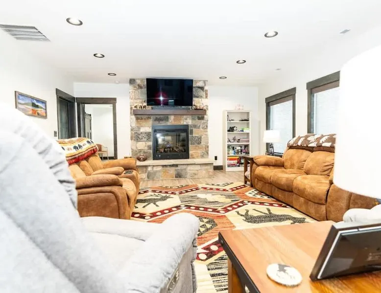 Spacious Holiday Home: Henrys Lake Walkout Cabin in Staley Springs offers a spacious setting with three bedrooms and two bathrooms. Guests enjoy free WiFi and complimentary on-site parking. Modern Amenities: The property features air-conditioning, a washing machine, and a fully equipped kitchen with a dishwasher and microwave. Additional amenities include a fireplace, patio, and outdoor furniture. Comfortable Living: The living area includes a dining table, TV, and comfortable seating. Free toiletries, a hairdryer, and a wardrobe provide added convenience. Local Attractions: Yellowstone National Park is 19 mi away, while the National Geographic Imax Theater and Yellowstone Historic Center Museum are each 21 mi distant. The Grizzly & Wolf Discovery Center lies 21 mi from the property. This holiday home's special feature is the fireplace. Featuring a private entrance, this spacious holiday home also consists of 3 separate bedrooms and 2 bathrooms with a bath and a hairdryer. Guests will find a stovetop, a refrigerator, a dishwasher and kitchenware in the well-fitted kitchen. The holiday home also offers a barbecue. The air-conditioned holiday home provides a TV, a washing machine, a tea and coffee maker, a wardrobe as well as lake views. The unit offers 8 beds.