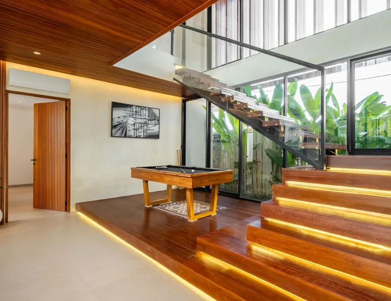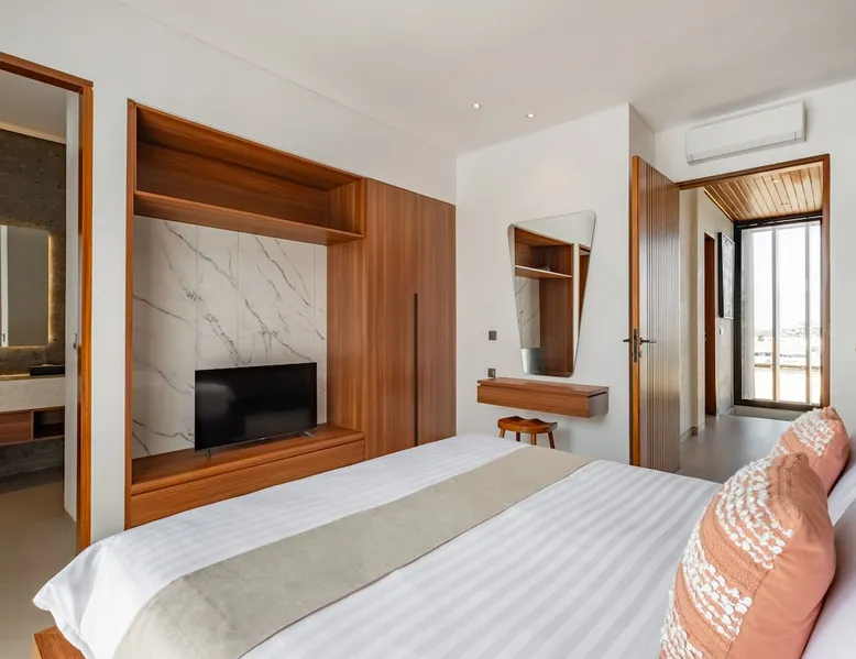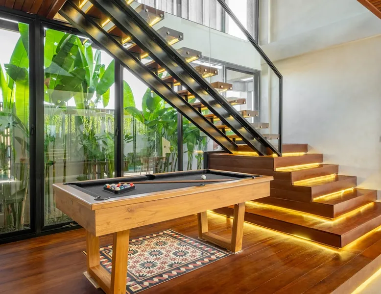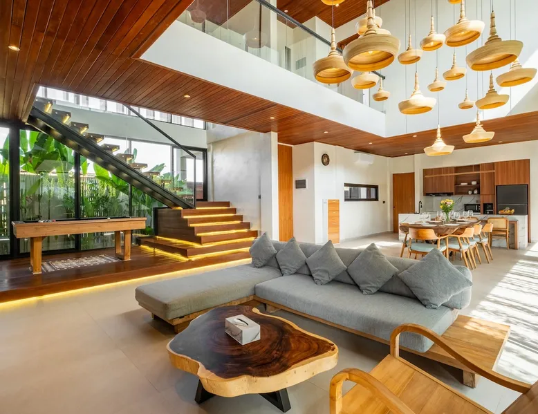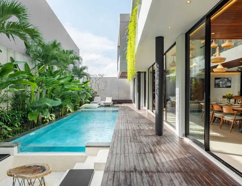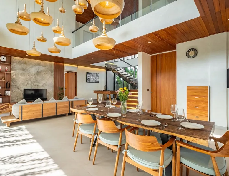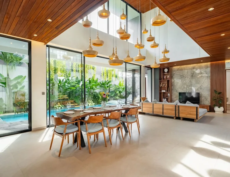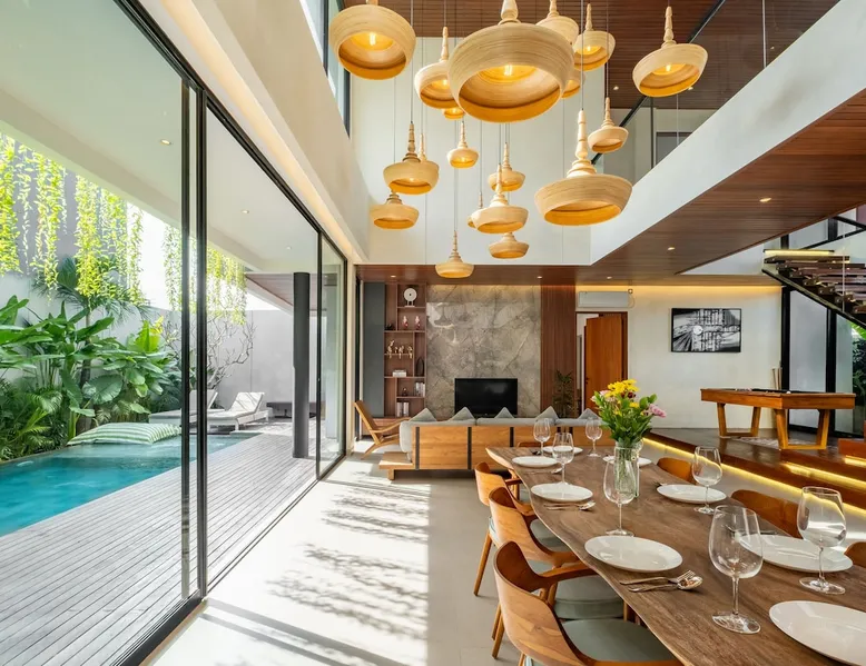 Welcome to De Dominique Villas, your luxurious escape in the heart of Canggu. Ideally situated near trendy cafes, restaurants, boutiques, bars, and iconic beach clubs, this modern 4-bedroom tropical villa offers the ultimate Bali experience. Enjoy a perfect blend of comfort, style, and a vibrant atmosphere. What to expect: - Near all the best cafes, restaurants, and beach clubs in Canggu - A tranquil pool and garden for unmatched comfort The space Step into a world of tropical bliss at De Dominique Villas, where modern luxury harmoniously blends with lush greenery. This villa features a spacious living area equipped with a 55-inch TV, a stylish dining space, and a pool table for enjoyable evenings. The fully equipped kitchen complements the open-plan design and overlooks a refreshing swimming pool, complete with a sundeck, outdoor shower, sunken seating area, and a serene garden for your ultimate relaxation. The villa offers four beautifully designed bedrooms, each tailored for comfort and charm. The ground-floor bedroom boasts a pool view and a private bathroom with a bathtub, while the three upstairs bedrooms feature balconies with breathtaking vistas. Whether overlooking the rice fields, the pool, or the garden, every room is equipped with a 43-inch TV, ensuring a perfect blend of leisure and luxury during your stay. Nestled in the heart of Canggu, De Dominique Villas provides both tranquility and convenience. Just minutes away from Bali’s vibrant beaches, trendy cafes, and nightlife, it is the perfect retreat for families, friends, or travelers seeking a stylish getaway. With every corner designed for relaxation and privacy, this villa offers your ideal escape in Bali. Guest access The villa and pool will be reserved exclusively for you. There will be a host who will be your contact person during your stay. We also have a dedicated team of housekeeping, a gardener, and a pool attendant to ensure the villa remains in pristine condition throughout your stay. Note: The standard villa rate is based on 8 guests and 4 bedrooms. The property can accommodate up to 12 guests in total. An additional charge applies for more than 8 guests, and this is automatically calculated in the price on Airbnb. Other things to note There is construction next door on the doorstep from 8 AM - 5 PM. It is hard to say if there will be noise during your stay. Due to the possible daytime noise we are offering reduced rates. If it is too noisy for you during your stay, you can cancel your stay, and we will refund the nights you have not been staying. Please adhere to the booking rules. The villa cannot be occupied by more guests than booked. Host approval is required for professional photography and additional terms may apply.