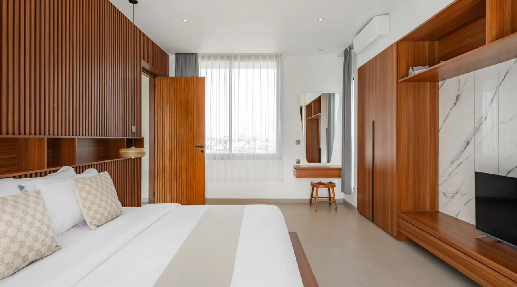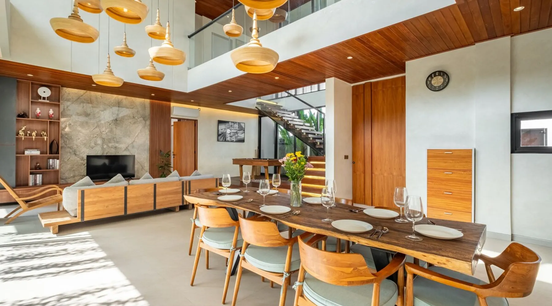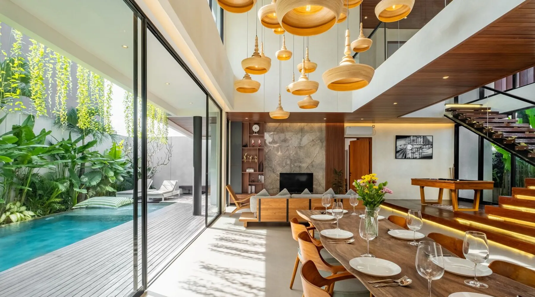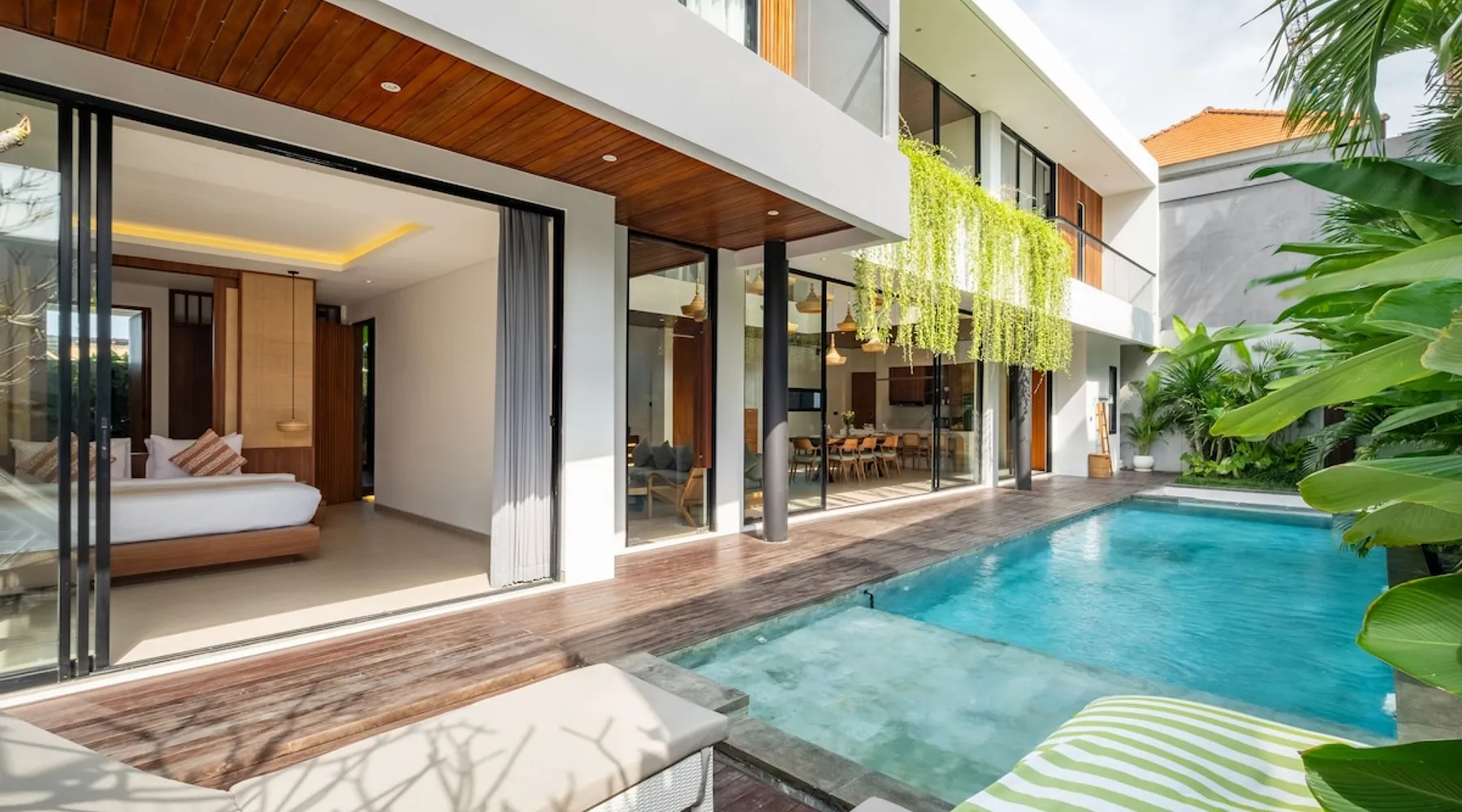 Welcome to De Dominique Villas, your luxurious escape in the heart of Canggu. Ideally situated near trendy cafes, restaurants, boutiques, bars, and iconic beach clubs, this modern 4-bedroom tropical villa offers the ultimate Bali experience. Enjoy a perfect blend of comfort, style, and a vibrant atmosphere. What to expect: - Near all the best cafes, restaurants, and beach clubs in Canggu - A tranquil pool and garden for unmatched comfort The space Step into a world of tropical bliss at De Dominique Villas, where modern luxury harmoniously blends with lush greenery. This villa features a spacious living area equipped with a 55-inch TV, a stylish dining space, and a pool table for enjoyable evenings. The fully equipped kitchen complements the open-plan design and overlooks a refreshing swimming pool, complete with a sundeck, outdoor shower, sunken seating area, and a serene garden for your ultimate relaxation. The villa offers four beautifully designed bedrooms, each tailored for comfort and charm. The ground-floor bedroom boasts a pool view and a private bathroom with a bathtub, while the three upstairs bedrooms feature balconies with breathtaking vistas. Whether overlooking the rice fields, the pool, or the garden, every room is equipped with a 43-inch TV, ensuring a perfect blend of leisure and luxury during your stay. Nestled in the heart of Canggu, De Dominique Villas provides both tranquility and convenience. Just minutes away from Bali’s vibrant beaches, trendy cafes, and nightlife, it is the perfect retreat for families, friends, or travelers seeking a stylish getaway. With every corner designed for relaxation and privacy, this villa offers your ideal escape in Bali. Guest access The villa and pool will be reserved exclusively for you. There will be a host who will be your contact person during your stay. We also have a dedicated team of housekeeping, a gardener, and a pool attendant to ensure the villa remains in pristine condition throughout your stay. Note: The standard villa rate is based on 8 guests and 4 bedrooms. The property can accommodate up to 12 guests in total. An additional charge applies for more than 8 guests, and this is automatically calculated in the price on Airbnb. Other things to note There is construction next door on the doorstep from 8 AM - 5 PM. It is hard to say if there will be noise during your stay. Due to the possible daytime noise we are offering reduced rates. If it is too noisy for you during your stay, you can cancel your stay, and we will refund the nights you have not been staying. Please adhere to the booking rules. The villa cannot be occupied by more guests than booked. Host approval is required for professional photography and additional terms may apply.