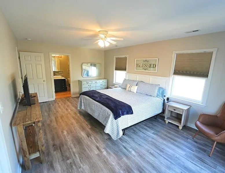 Beachfront Location: Fantastic Ocean Edge Beach House in North Topsail Beach offers direct beachfront access with a private beach area. Guests enjoy sea views and a sun terrace, perfect for relaxation. Spacious Accommodations: The holiday home features three bedrooms and two bathrooms, providing ample space for families. The living room includes a sofa bed and parquet floors, ensuring comfort. Modern Amenities: Free WiFi, air-conditioning, and a fully equipped kitchen with a dishwasher and microwave enhance the stay. Additional facilities include an outdoor seating area, barbecue, and free on-site private parking. Nearby Attractions: North Topsail Beach is just a few steps away, while Arlie Gardens is 30 mi from the property. Wilmington International Airport is 32 mi distant. Highly rated by guests. Featuring a private entrance, this air-conditioned holiday home consists of 1 living room, 3 separate bedrooms and 2 bathrooms with a bath and a shower. Guests will find a stovetop, a refrigerator, a dishwasher and kitchenware in the well-fitted kitchen. The holiday home also provides guests with a barbecue. The spacious holiday home provides a washing machine, a tea and coffee maker, a seating area, a flat-screen TV with satellite channels, as well as sea views. The unit offers 6 beds.
