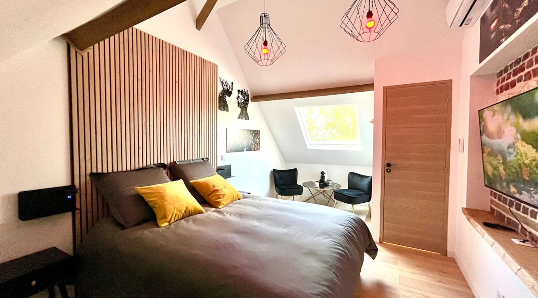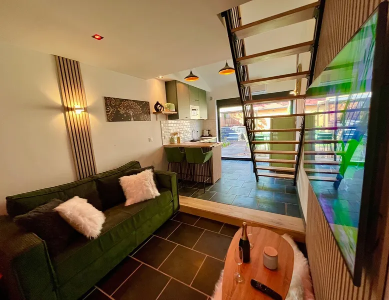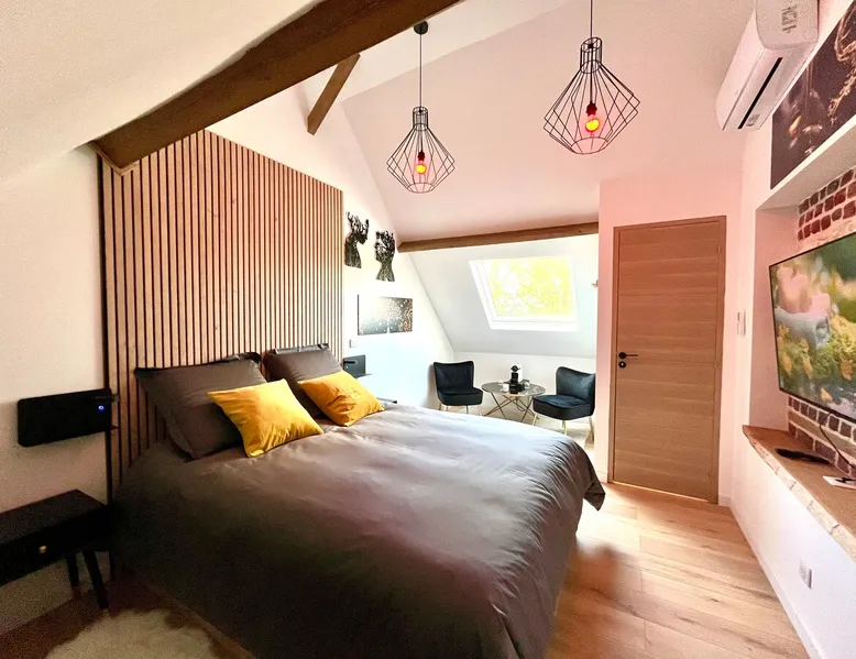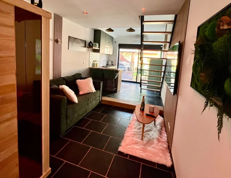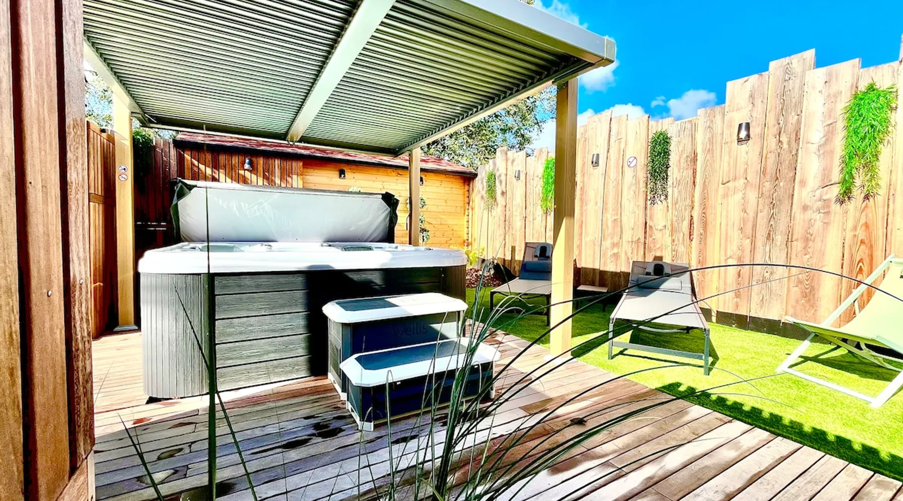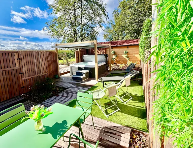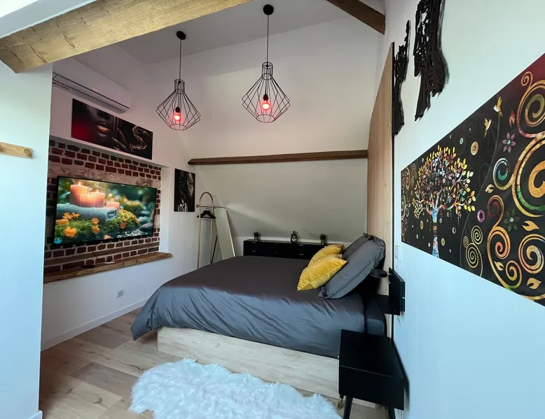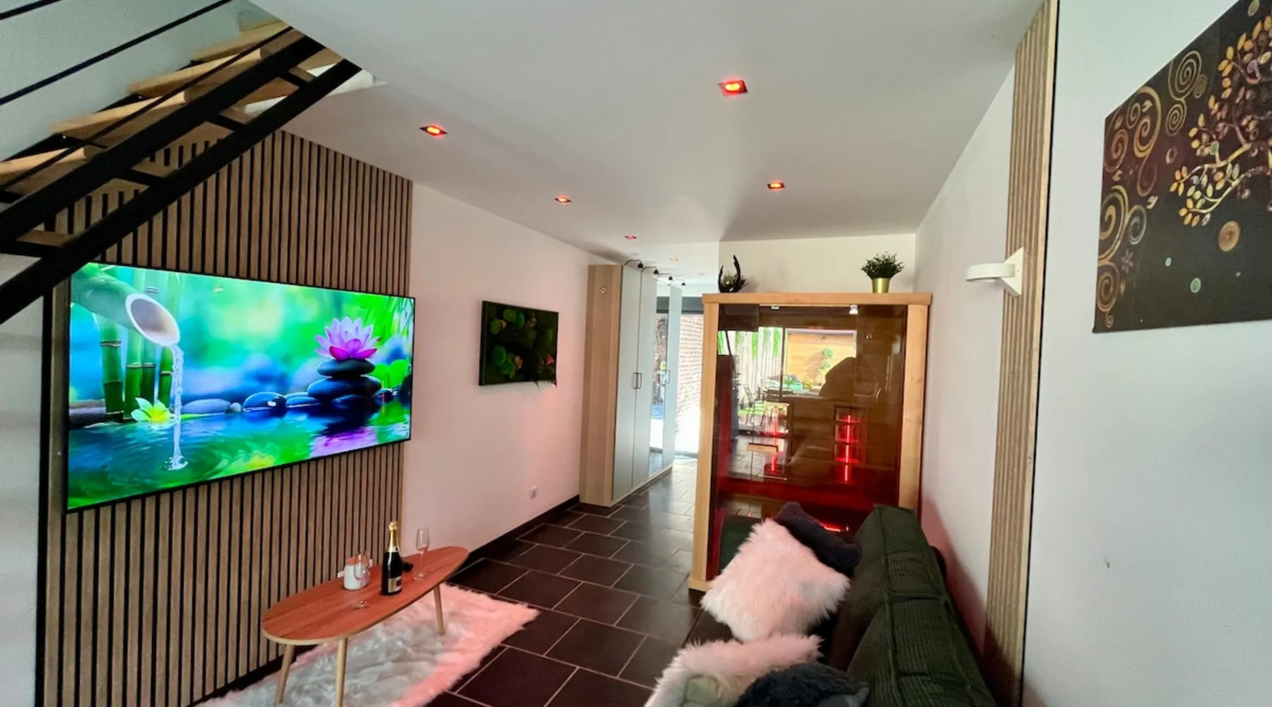 The listing is in an annexed and independent part of our farmhouse. Furnished with quality materials, we have preserved the period spirit of the house while providing modern amenities to offer you a relaxing, exotic and pleasant stay. A large bay window overlooks a private and enclosed part of our large garden. Outside you will find a terrace with a spacious and covered hot tub to relax at any time of the year. The space Located 20 minutes from Lille, 10 minutes from Lille-Lesquin Airport, 30 minutes from Arras and Douai, our farm is located in the countryside of a small hamlet in the municipality of Ennevelin. The place is ideal for relaxing and enjoying the surrounding countryside while being close to the sights and cities of our beautiful region. Many shops and restaurants are within 5 km. You can also have your meals delivered to the house. (Uber eats) The house consists of a ground floor including the bathroom with walk-in shower, a large cabinet with storage and sink and a toilet. In the living room you will find a sauna for 2 to 3 people, a sofa, a flat screen with Netflix and Amazon Prime. Finally, an equipped kitchen, with a dining area, dishwasher, fridge-freezer, microwave grill and all the necessary utensils for cooking. A large bay window overlooks a private and enclosed part of our large garden. Outside you will find a pretty terrace with all the necessary equipment for your well-being, including a spacious and covered spa to relax at any time of the year. Finally, upstairs is a large bedroom with a king size bed and a small sitting area with a Nespresso machine, large flat screen, dressers and wardrobe. So you can create the atmosphere that suits you best, the lights of the house and the outside are adjustable (color and light intensity) We look forward to welcoming you to discover our wellness area surrounded by beautiful nature. Guest access Direct access through a dedicated door without having to enter our home. Other things to note The place is conducive to rest and relaxation. Thank you in advance for respecting the calm atmosphere. The hot tub can be used from 9am to 10pm, the sauna from 6am to 2am. If you would like breakfast, please let us know the day before, the price is €10 per person, to be paid on site. No parties allowed. I look forward to welcoming you.