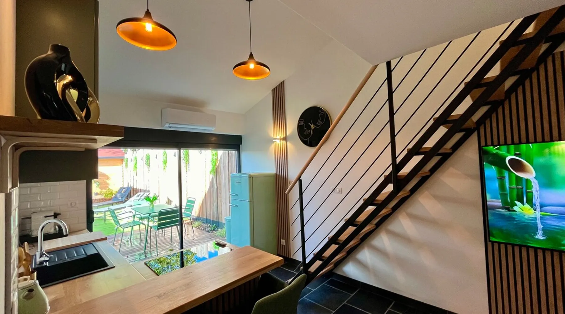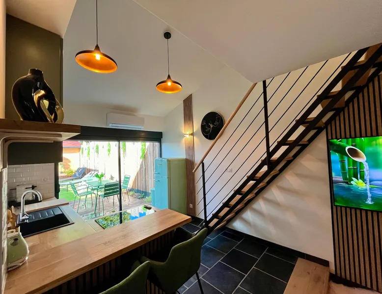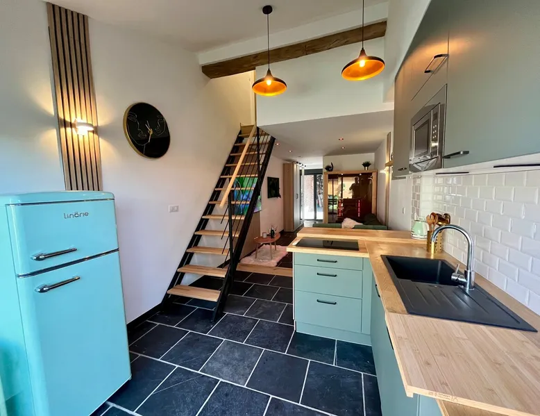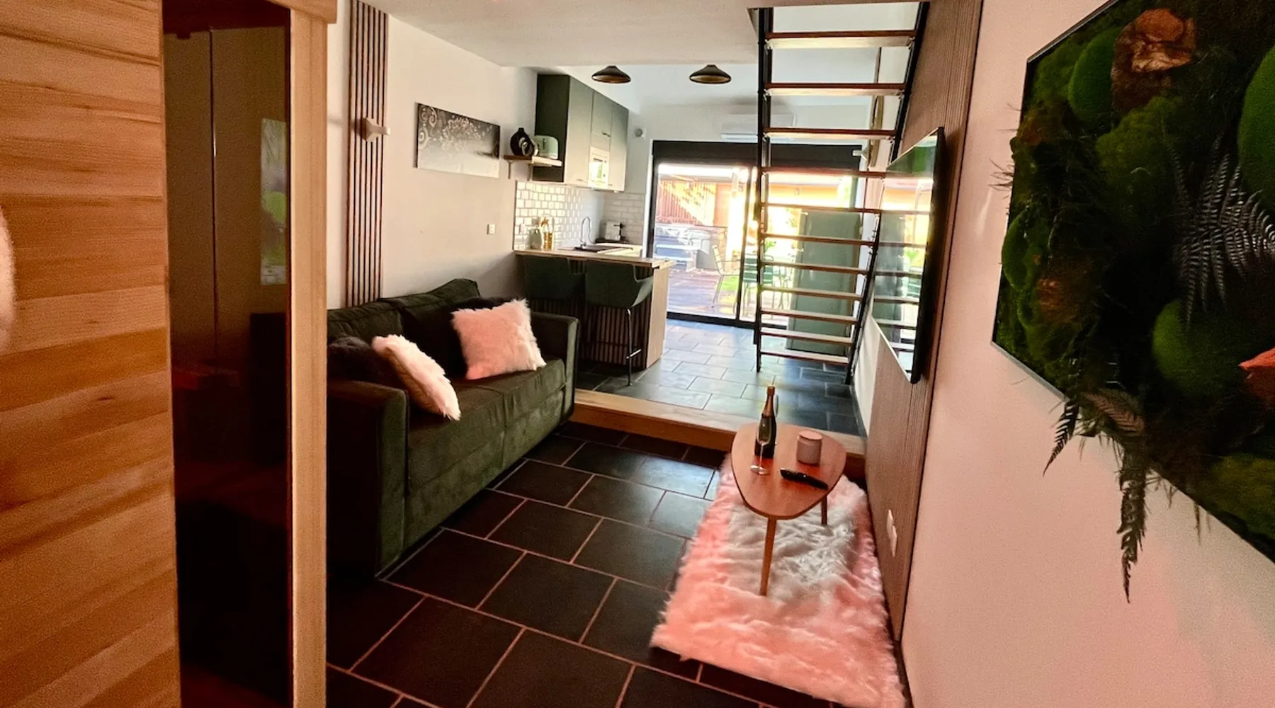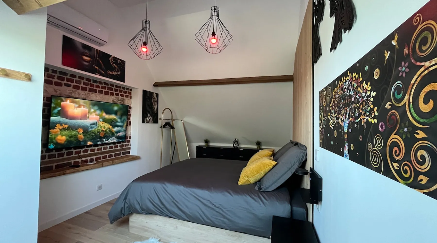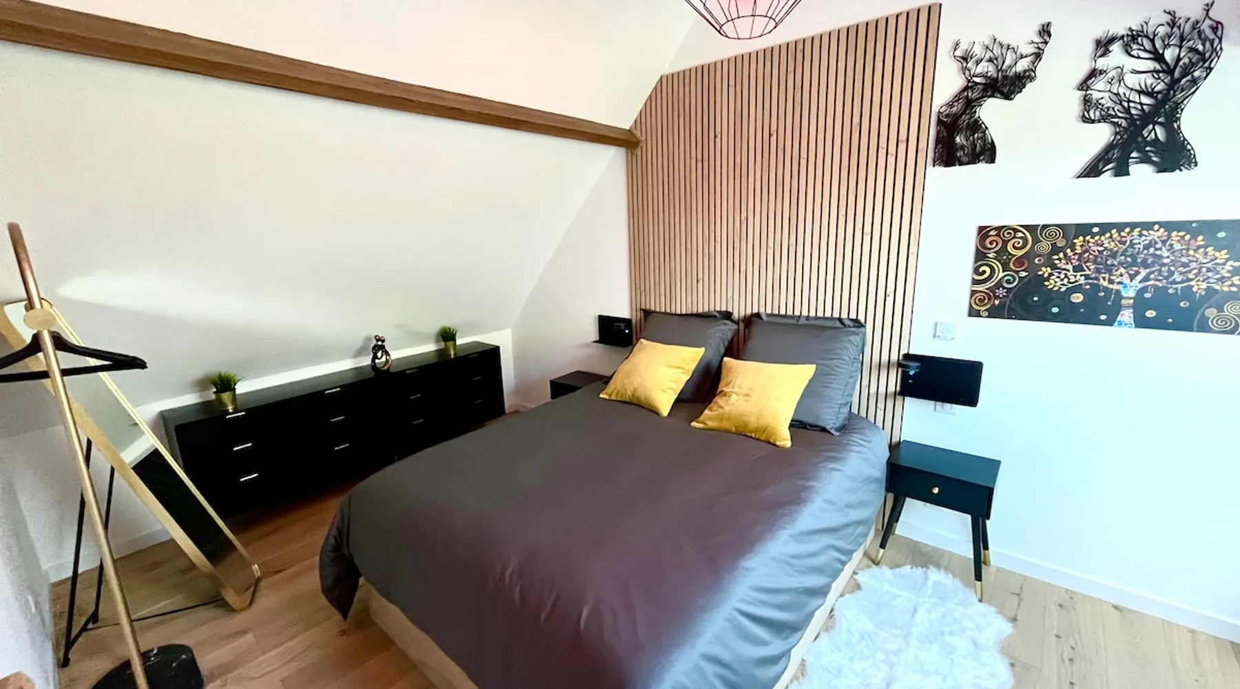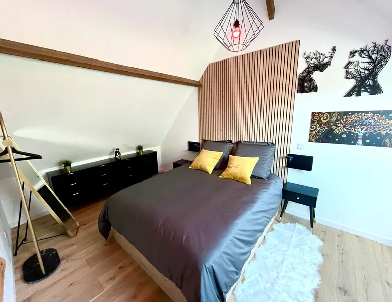 The listing is in an annexed and independent part of our farmhouse. Furnished with quality materials, we have preserved the period spirit of the house while providing modern amenities to offer you a relaxing, exotic and pleasant stay. A large bay window overlooks a private and enclosed part of our large garden. Outside you will find a terrace with a spacious and covered hot tub to relax at any time of the year. The space Located 20 minutes from Lille, 10 minutes from Lille-Lesquin Airport, 30 minutes from Arras and Douai, our farm is located in the countryside of a small hamlet in the municipality of Ennevelin. The place is ideal for relaxing and enjoying the surrounding countryside while being close to the sights and cities of our beautiful region. Many shops and restaurants are within 5 km. You can also have your meals delivered to the house. (Uber eats) The house consists of a ground floor including the bathroom with walk-in shower, a large cabinet with storage and sink and a toilet. In the living room you will find a sauna for 2 to 3 people, a sofa, a flat screen with Netflix and Amazon Prime. Finally, an equipped kitchen, with a dining area, dishwasher, fridge-freezer, microwave grill and all the necessary utensils for cooking. A large bay window overlooks a private and enclosed part of our large garden. Outside you will find a pretty terrace with all the necessary equipment for your well-being, including a spacious and covered spa to relax at any time of the year. Finally, upstairs is a large bedroom with a king size bed and a small sitting area with a Nespresso machine, large flat screen, dressers and wardrobe. So you can create the atmosphere that suits you best, the lights of the house and the outside are adjustable (color and light intensity) We look forward to welcoming you to discover our wellness area surrounded by beautiful nature. Guest access Direct access through a dedicated door without having to enter our home. Other things to note The place is conducive to rest and relaxation. Thank you in advance for respecting the calm atmosphere. The hot tub can be used from 9am to 10pm, the sauna from 6am to 2am. If you would like breakfast, please let us know the day before, the price is €10 per person, to be paid on site. No parties allowed. I look forward to welcoming you.