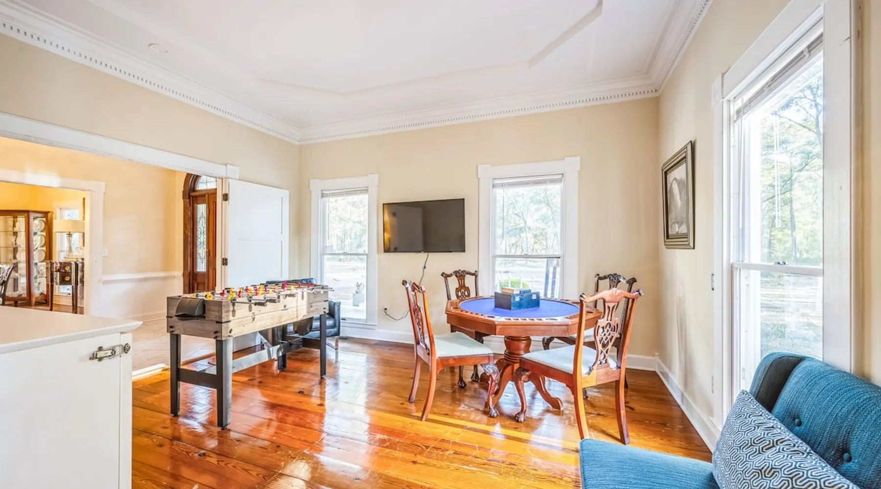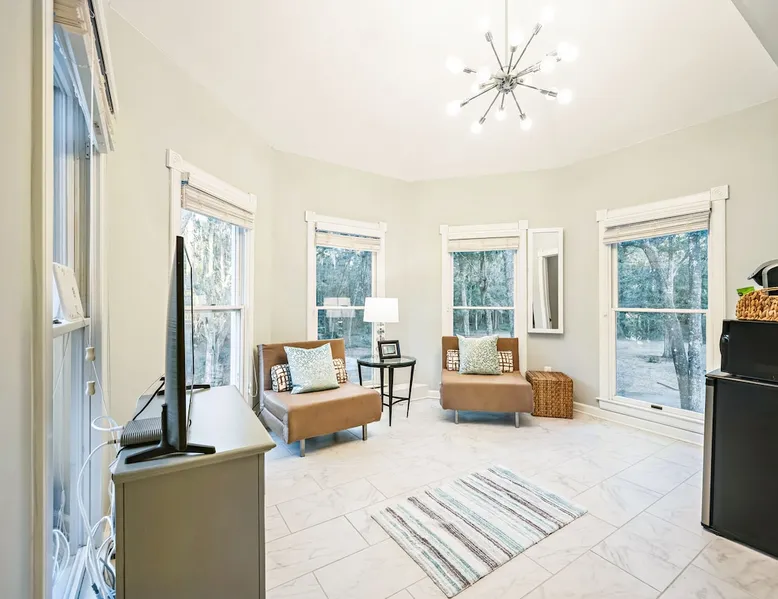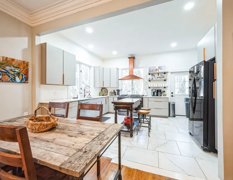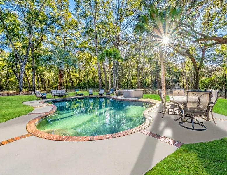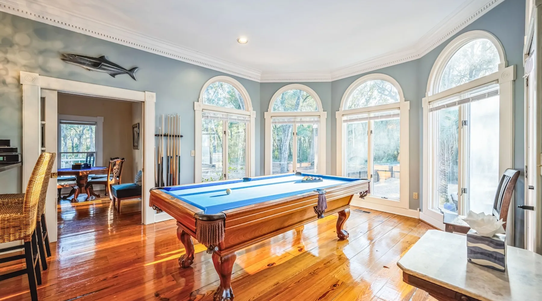 Discover the ultimate escape at Bay Breeze Manor, a luxurious waterfront haven on Bohicket Rd. This expansive property offers 360° water views, Private Pool and Hot Tub, Ultimate game room with a pool table, foosball, poker table and lounge with fireplace, Outdoor Firepit and screened porch. Ideal for families or groups-featuring flexible sleeping arrangements including king suite with attached nursery area and a basement w/ bunk beds. Enjoy the on-site basketball hoop or a relaxing kayak ride! The space Living Spaces • Ultimate Game Room: Equipped with a Pool Table, Foosball, Poker table and Lounge area with Fireplace • Large Living Room: Bright area with ample seating. Flat-screen TV and breathtaking water views. • Fully Equipped Kitchen: Generous counter space ideal for meal preparation. • Screened-In Porch: Offers outdoor beauty with comfortable seating for relaxation or dining. Outdoor Amenities • Private Pool & Hot Tub: Perfect for unwinding amidst peaceful surroundings. • Fire Pit Area: Cozy evenings under the stars with ample seating available. • Basketball Hoop & Kayaks: Engage in friendly competition or explore nearby waters at your leisure. Sleeping Arrangements Main King Suite (Upstairs): Spacious king bedroom with trundle bed under the king bed. Also includes attached Nursery area with a crib and two fold-out futon chairs. Jack and Jill Shared Bathroom: Connects a bedroom with two double-sized beds to an additional king bedroom. Queen Bedroom (Upstairs): Cozy queen-sized bed with easy access to home amenities. King Bedroom (Downstairs): Conveniently located on the main floor. Includes an attached washer and dryer room. Downstairs Basement: Bunk beds, two full-sized beds, sofa, and TV for entertainment. A Perfect Getaway Set on a sprawling private lot on Bohicket Rd., Bay Breeze Manor is designed to offer endless opportunities for both relaxation and adventure. Whether you're lounging by the pool or enjoying a kayak ride, this retreat caters to all preferences. Book your stay today to experience unparalleled luxury on John's Island, just minutes from the beach! Other things to note House Rules: No smoking allowed Pet friendly with a fee No Parties or Events