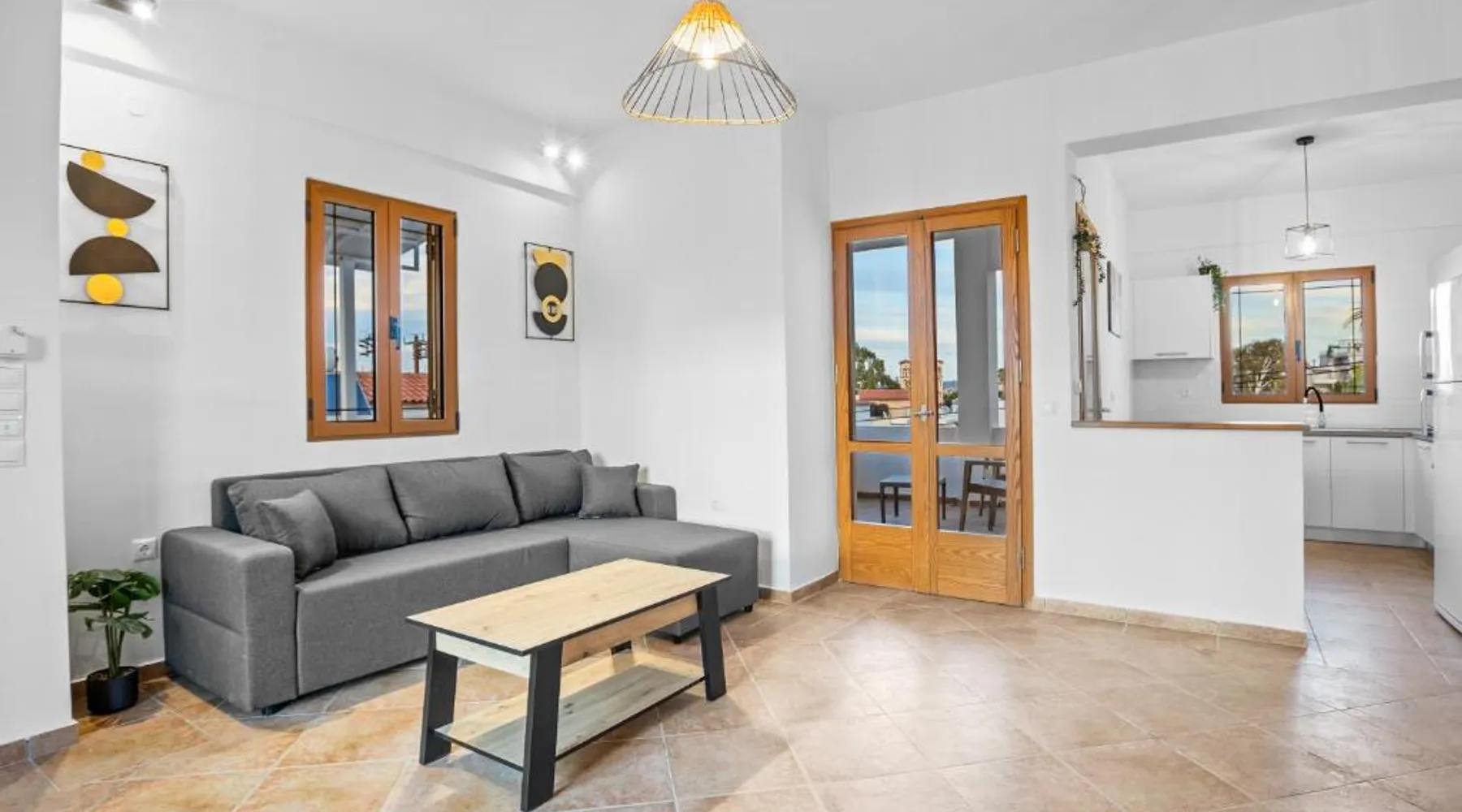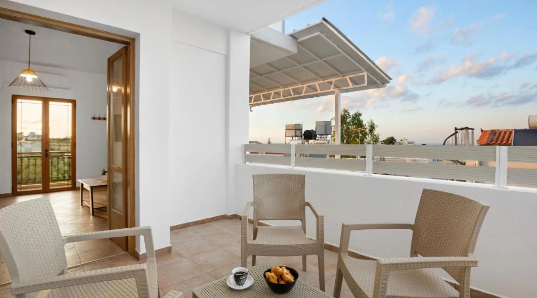 Spacious Accommodations: The 2 bd sea view sun terrace apartment in Chania offers a spacious, recently renovated layout with two bedrooms and a living room. Guests enjoy sea views, air-conditioning, and a terrace. Modern Amenities: The apartment features a fully equipped kitchen, balcony, and patio. Additional amenities include a dining area, free WiFi, and a washing machine. Convenient Location: Located 1640 feet from Glaros Beach, the property is a 7-minute walk away. Chania International Airport is 12 mi distant. Nearby attractions include the Municipal Garden and Etz Hayyim Synagogue, each 3.7 mi away. This spacious apartment is consisted of of 1 living room, 2 separate bedrooms and 1 bathroom with a walk-in shower and free toiletries. Meals can be prepared in the well-fitted kitchen, which comes with a stovetop, a refrigerator, a dishwasher and kitchenware. The air-conditioned apartment offers a flat-screen TV with satellite channels, a private entrance, soundproof walls, a tea and coffee maker as well as sea views. The unit offers 3 beds.