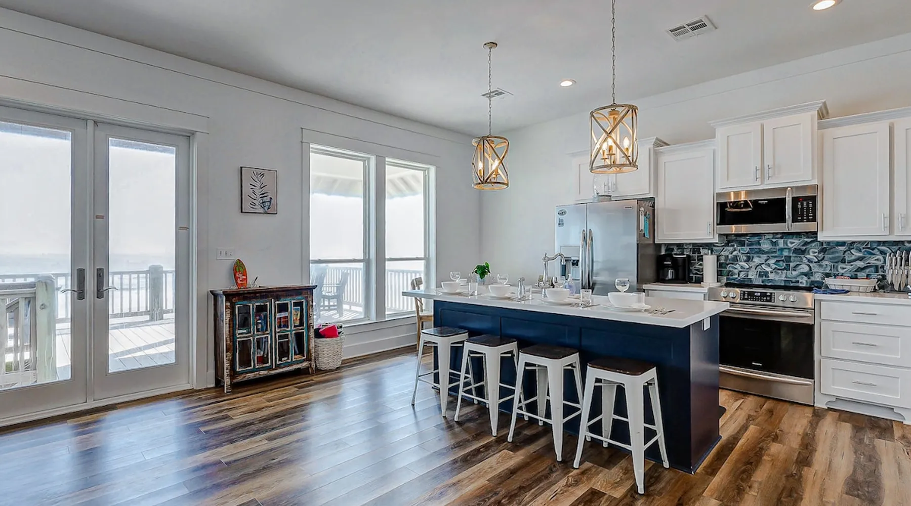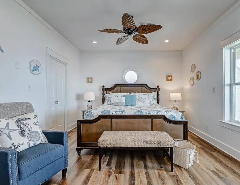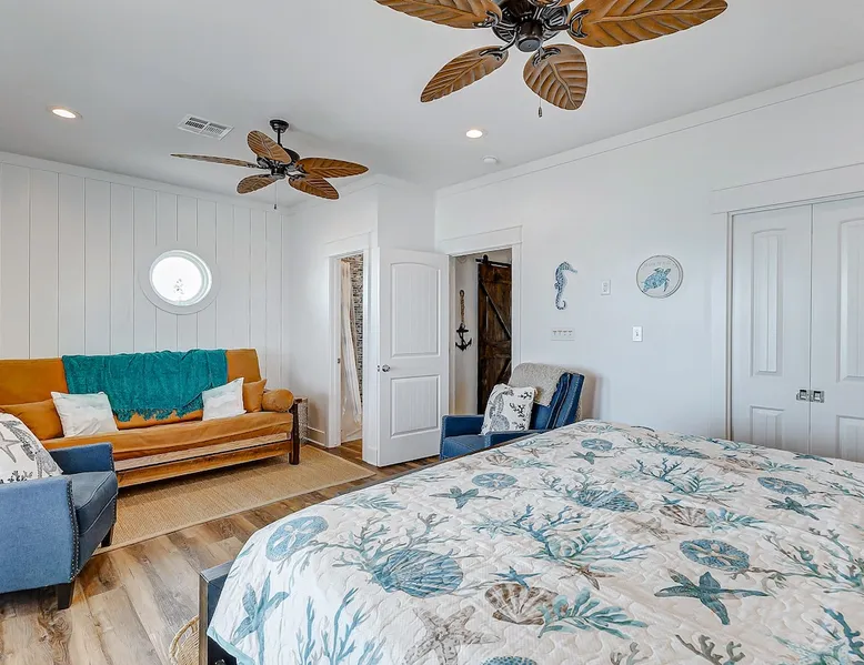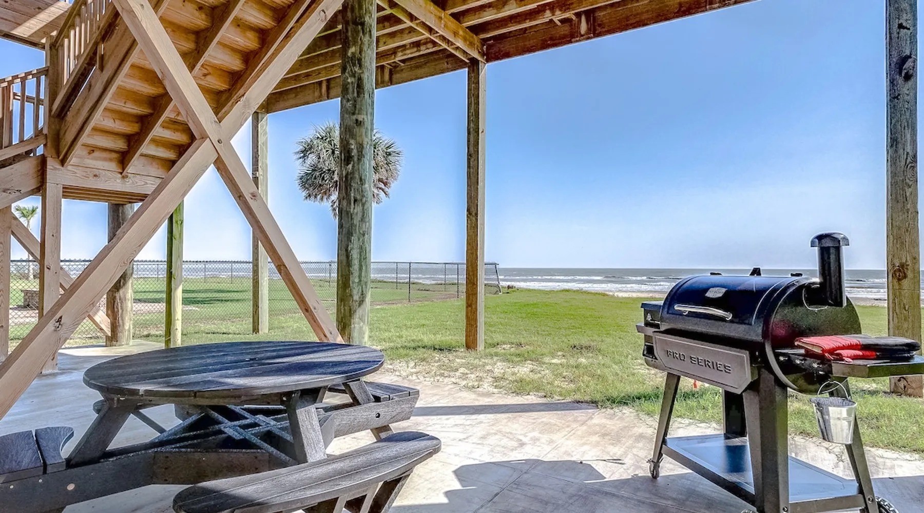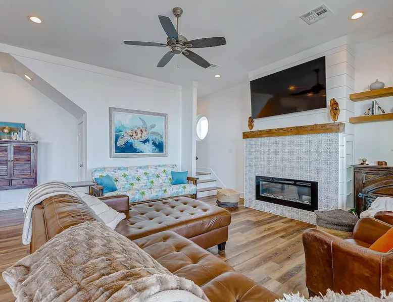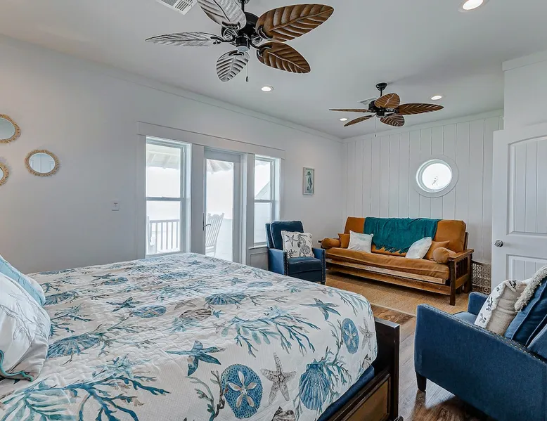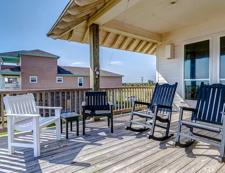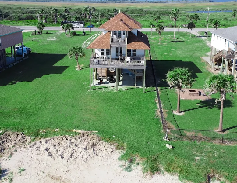 Escape to paradise in this beautiful oceanfront 4-bedroom, 3-bathroom home in the peaceful and serene Gilchrist neighborhood, just steps away from the beach! With panoramic views of the Gulf of Mexico, this spacious coastal retreat offers the perfect blend of comfort and luxury for your family or group getaway. Fully stocked home for ease of traveling - we have board games, beach essentials such as cooler, wagon, ample seating for you to enjoy all unobstructed beach views! The space Experience a serene coastal getaway at Lonestar Beach Retreat in Gilchrist, Texas. Enjoy the convenience of being just steps away from the beautiful beach, where you can spend your days building sandcastles, playing in the waves, or simply soaking up the sun on the sandy shores. Oceanfront: Enjoy spectacular views of the Gulf of Mexico and you can enjoy the water within steps from the home. Spacious Interior: beautifully decorated home with 4 large bedrooms and 3 full bathrooms, offering plenty of room for up to 14 guests. There are also two futons and a cot available for guests to enjoy. Open Concept Living: The bright and airy living room features large windows that fill the space with natural light and offer amazing ocean views. Fully Equipped Kitchen: Prepare meals with ease in the fully stocked kitchen, complete with modern appliances, stone countertops, and ample cabinet space. Private Deck & Patio: Step outside to your expansive deck and patio area with outdoor seating, perfect for watching stunning sunrises and sunsets over the water. The primary bedroom located on the top floor has a balcony and is perfect for guests to enjoy a morning coffee with the serene views. Master Suite: A luxurious master suite with a king bed, en-suite bathroom, and private balcony overlooking the Gulf. There is also an extra futon and cot for additional guests and space. Additional Bedrooms: Two queen bedrooms and a bunk room with a set of bunk beds – perfect for kids or additional guests. Beach Access: Direct access to the beach just steps from the property, making it easy to enjoy sand and surf whenever you please. Amenities: Stay connected with high-speed Starlink internet, ideal for streaming, gaming, or remote work, flat-screen TVs, washer and dryer, central A/C, electric charger, and plenty of parking space. Pet friendly and plenty of space for entertainment. Things to Do: - Spend your days lounging on the beach, collecting seashells, and enjoying the ocean breeze. - Take a short drive to the nearby Crystal Beach for some of the best fishing, boating, and water activities. - Explore local dining, shopping, and entertainment options in nearby Bolivar Peninsula or Galveston. Guest access Guests have access to the entire home with the exception to the owner's closets. Other things to note No parties or engagements No smoking or vaping Quiet hours after 10pm to 6am