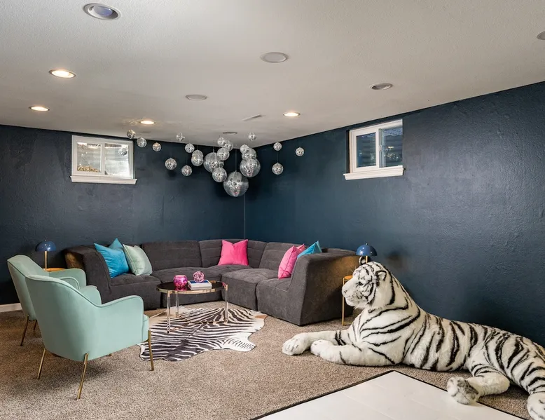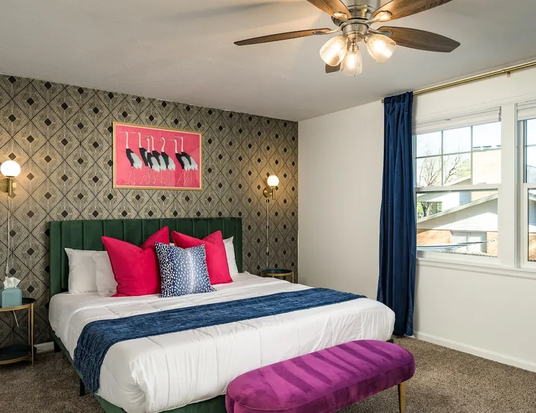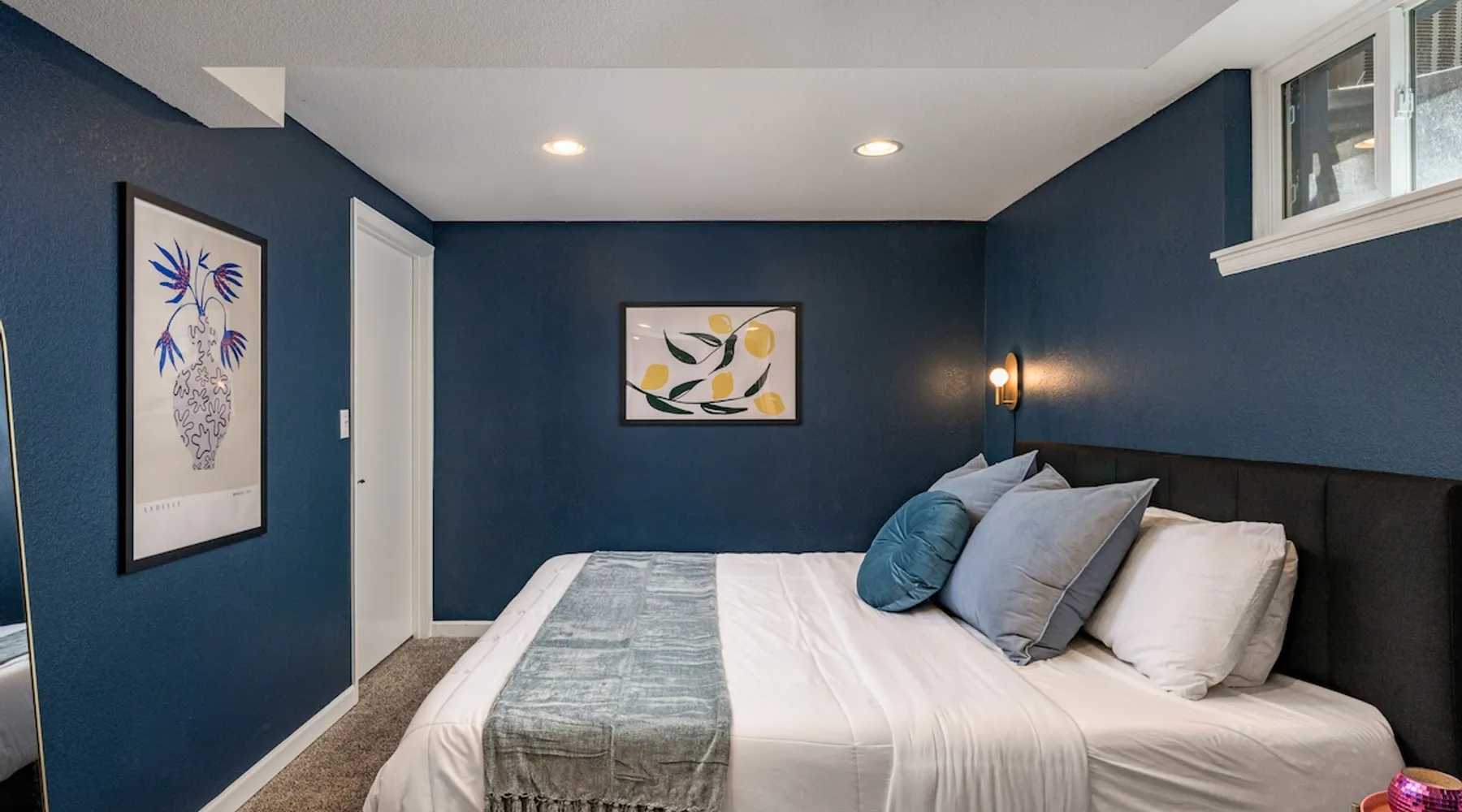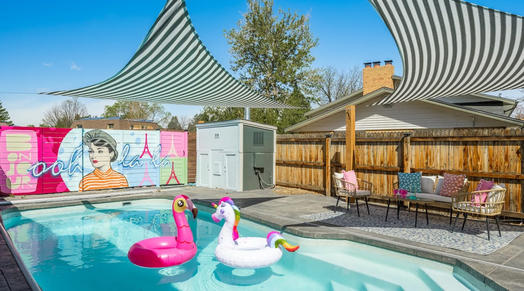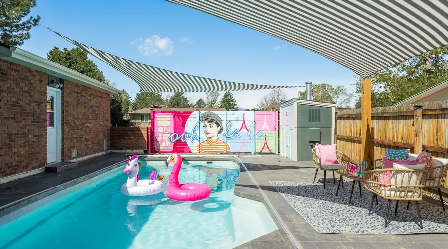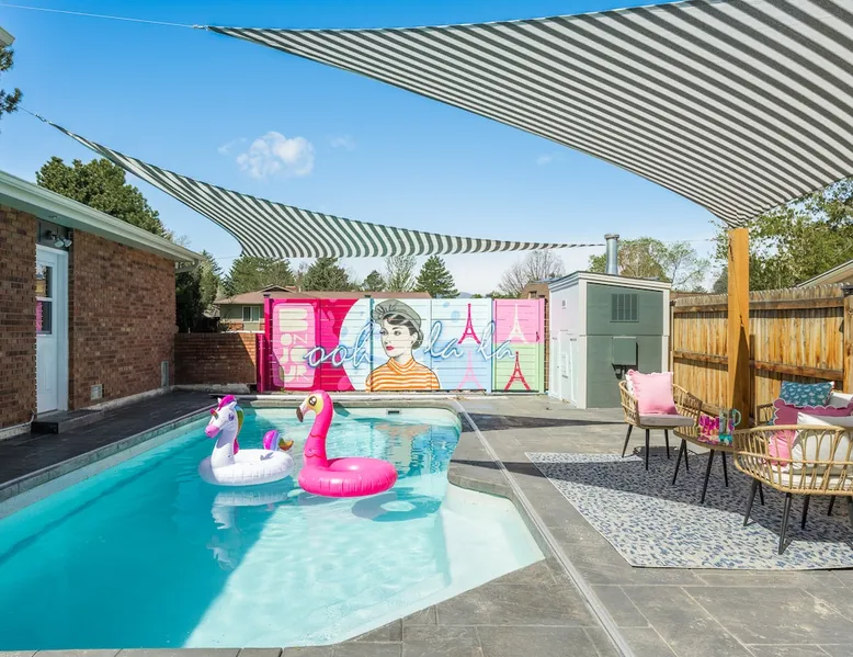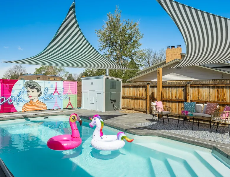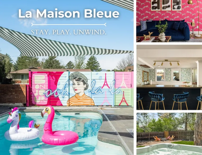 Discover La Maison Bleue: A stunning designer retreat that redefines group travel! This 1-of-a-kind escape combines bold aesthetics with high-end comfort to create the perfect backdrop for your next getaway. Featuring amenities such as a private pool, hot tub, gym, sauna, karaoke, and game room- this home is perfect for group gatherings. While it feels like a private paradise, you're a short drive from downtown and the mountains beyond. Explore the city by day and come home to luxury by night! The space From the moment you walk through the door, La Maison Bleue stuns with its curated interiors and thoughtful design touches. Modern, artistic, and endlessly photogenic, every corner of the home has been styled with purpose—blending comfort, luxury, and group-friendly functionality. Whether you’re celebrating a birthday, gathering with friends and family, or hosting a team retreat, this space invites connection and celebration. ☆☆ BEDROOMS ☆☆ This home has 5 bedrooms and can accommodate up to 14 guests comfortably. There are a total of 4 King beds, 2 Queen Beds and an air mattress. Bedroom 1 - Indulge in the spacious luxury of the master bedroom, featuring a California King bed. The modern design blends comfort and style seamlessly. Bedroom 2 - This modern bedroom boasts a King bed. Sleek furnishings and elegant decor make it a cozy yet stylish haven. Bedroom 3 - This beautifully designed room features a King bed and maximalist design. Bedroom 4 - With a King bed and contemporary design elements, this bedroom exudes chic elegance. Natural light and modern decor create a welcoming oasis. Bedroom 5 - Perfect for kids or adults, this bedroom features a double Queen bunk bed. The efficient use of space and stylish design make it a cozy room for rest and play. ☆☆ BATHROOMS ☆☆ You'll find 3 clean and fully stocked full bathrooms with bright lighting, large mirrors, and hotel-grade towels in this home. All showers are stocked with shampoo, conditioner, and body wash for your convenience. ☆☆ KITCHEN & LOUNGE ☆☆ Prepare a quick snack or a large feast in the fully-stocked kitchen. It features beautiful countertops and modern appliances, including a refrigerator, stove, oven, microwave, toaster, and coffee maker. Gather, laugh, and linger in a dining space that’s as beautiful as it is functional. The uniquely designed dining room features a statement table, creating the perfect setting for shared meals, celebration toasts, or late-night conversations. Bathed in natural light and seamlessly connected to the open-concept lounge, this space invites connection and comfort. Whether you're hosting a dinner party, planning the day's adventures, or simply savoring a slow morning, this thoughtfully designed area offers the ideal blend of elegance and ease. ☆☆ OUTSIDE SPACE ☆☆ The house has a fenced-in patio with plenty of outdoor seating, a fire pit, a heated pool, and a hot tub. Light up the BBQ and enjoy the famous CO weather! There is ample parking in the driveway and garage for up to 3 vehicles. Please note the pool is open seasonally, typically between June and September. ☆☆ BASEMENT ☆☆ Downstairs you will find a beautiful space complete with a wet bar, game room, and sitting space. ☆☆ GYM ☆☆ In the gym, you will find a peloton bike, treadmill, yoga mats, and sauna. Everything you need to get in a nice sweat on while on vacation! ☆☆ KARAOKE ROOM ☆☆ Head downstairs to discover a custom-designed karaoke room made for unforgettable moments. Whether you're belting out nostalgic classics or today’s top hits, this vibrant space invites your group to let loose, laugh loud, and sing your hearts out. KEY AMENITIES: ☆ 5 bedrooms; 3 King + 2 Queens + Air Mattress . ☆ 3 bathrooms ☆ Pool + Hot Tub ☆ Sauna ☆Excercise room with peloton bike, treadmill, yoga mats ☆ Modern and socially designed living room lounge ☆ Air Hockey + Karaoke Room ☆ Bar Area ☆ Large, efficient, washer/dryer ☆ 8-person dining table ☆ Sun Room 4 person seating area ☆ 55” Smart TV ☆ Easy and simple automatic, self-check in process ☆ Room darkening curtains in all bedrooms Experience Arvada With Us & Learn More Below! Guest access You’ll have access to every room and feature of this home except the owner's closet. Make yourself at home; your hosts are just a phone call or text away if you have any questions or want recommendations for things to do nearby. There is a keypad on the front door for easy and secure access to the home. Other things to note The morning of check-in we will send you a link which contains an electronic guidebook. In this manual you will find all necessary and relevant information relating to your stay. We have also included our suggestions for the best things to do in town, our favorite restaurants, activities, hikes, nightlife, and much more. This home is in a residential area and showing respect to the neighbors is very important. Parties will be shut down, and possibly be threatened with civil prosecution. If you are unsure if your group fits this description, please reach out to ask and we will be happy to help. Please note that smoking of any kind is forbidden inside and will result in a minimum fine of $500. You are welcome to step outside and enjoy. Reservations may be subject to extra guest fees, as well as additional charges for optional services such as adding pets or requesting early check-ins. STR #: STR24-00281