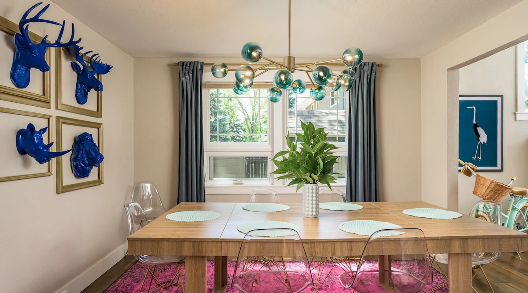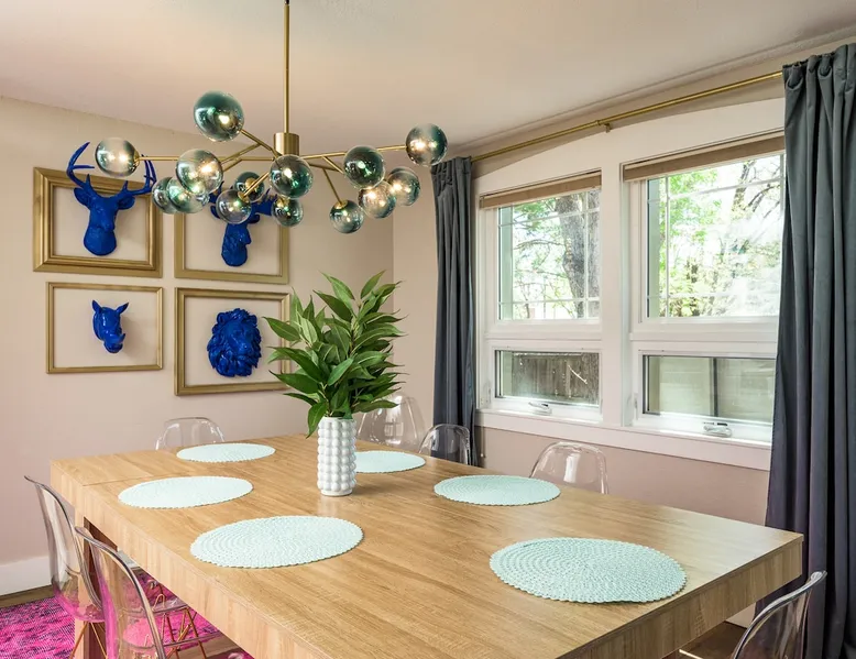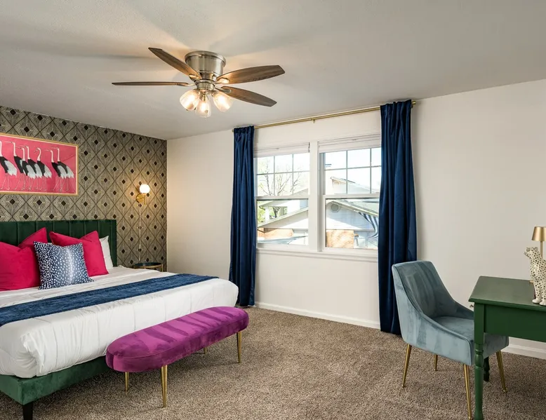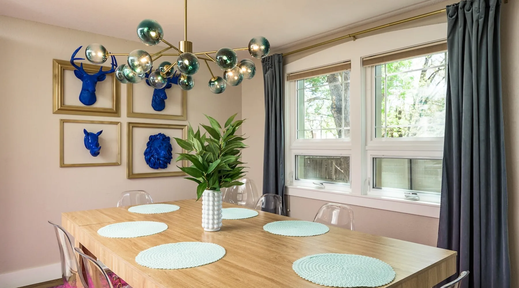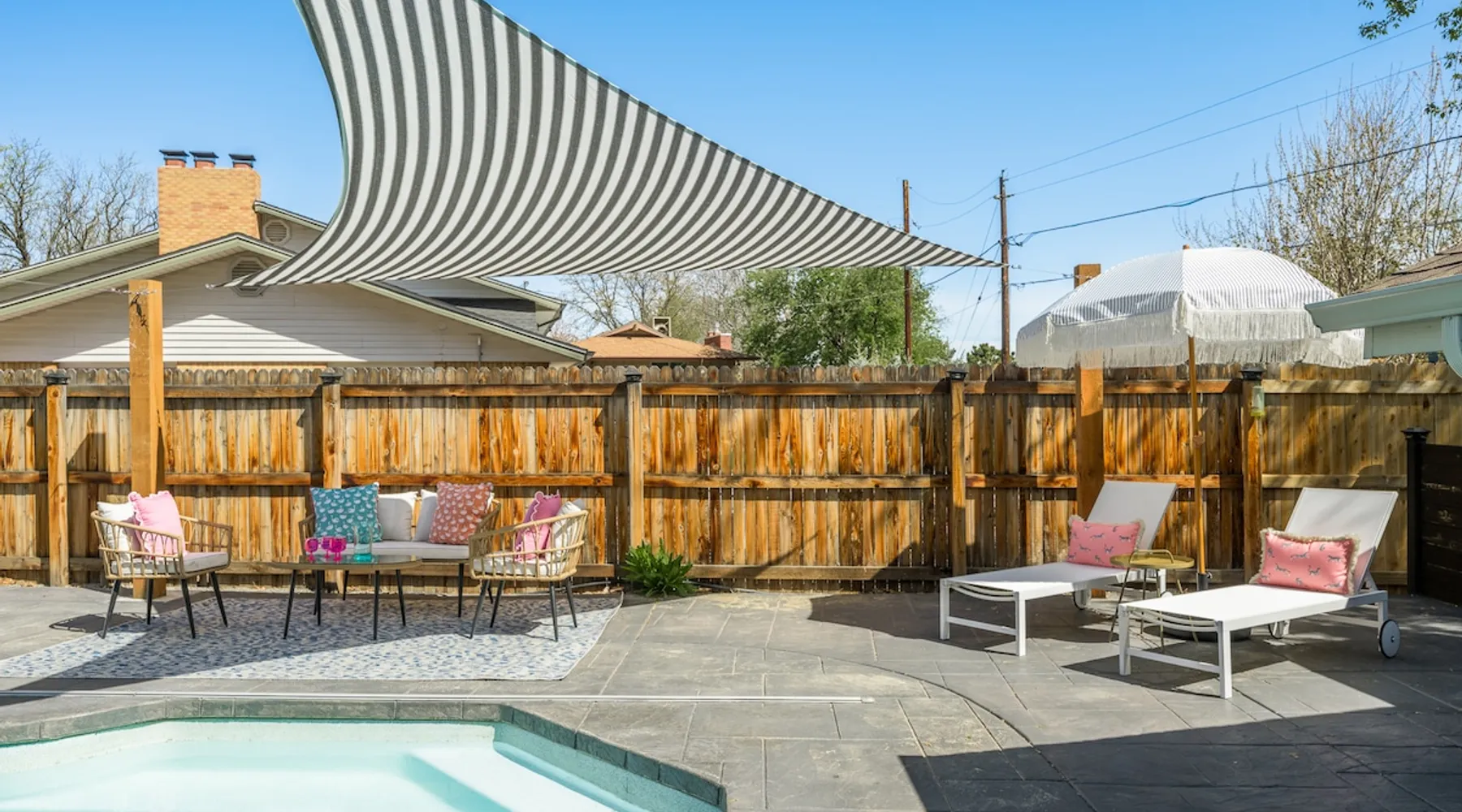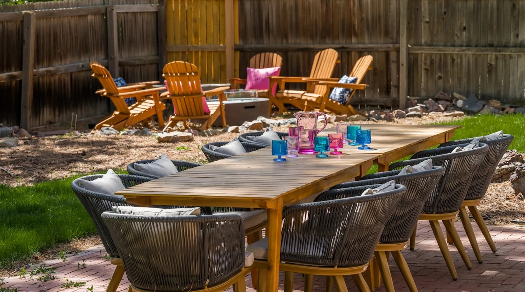 Discover La Maison Bleue: A stunning designer retreat that redefines group travel! This 1-of-a-kind escape combines bold aesthetics with high-end comfort to create the perfect backdrop for your next getaway. Featuring amenities such as a private pool, hot tub, gym, sauna, karaoke, and game room- this home is perfect for group gatherings. While it feels like a private paradise, you're a short drive from downtown and the mountains beyond. Explore the city by day and come home to luxury by night! The space From the moment you walk through the door, La Maison Bleue stuns with its curated interiors and thoughtful design touches. Modern, artistic, and endlessly photogenic, every corner of the home has been styled with purpose—blending comfort, luxury, and group-friendly functionality. Whether you’re celebrating a birthday, gathering with friends and family, or hosting a team retreat, this space invites connection and celebration. ☆☆ BEDROOMS ☆☆ This home has 5 bedrooms and can accommodate up to 14 guests comfortably. There are a total of 4 King beds, 2 Queen Beds and an air mattress. Bedroom 1 - Indulge in the spacious luxury of the master bedroom, featuring a California King bed. The modern design blends comfort and style seamlessly. Bedroom 2 - This modern bedroom boasts a King bed. Sleek furnishings and elegant decor make it a cozy yet stylish haven. Bedroom 3 - This beautifully designed room features a King bed and maximalist design. Bedroom 4 - With a King bed and contemporary design elements, this bedroom exudes chic elegance. Natural light and modern decor create a welcoming oasis. Bedroom 5 - Perfect for kids or adults, this bedroom features a double Queen bunk bed. The efficient use of space and stylish design make it a cozy room for rest and play. ☆☆ BATHROOMS ☆☆ You'll find 3 clean and fully stocked full bathrooms with bright lighting, large mirrors, and hotel-grade towels in this home. All showers are stocked with shampoo, conditioner, and body wash for your convenience. ☆☆ KITCHEN & LOUNGE ☆☆ Prepare a quick snack or a large feast in the fully-stocked kitchen. It features beautiful countertops and modern appliances, including a refrigerator, stove, oven, microwave, toaster, and coffee maker. Gather, laugh, and linger in a dining space that’s as beautiful as it is functional. The uniquely designed dining room features a statement table, creating the perfect setting for shared meals, celebration toasts, or late-night conversations. Bathed in natural light and seamlessly connected to the open-concept lounge, this space invites connection and comfort. Whether you're hosting a dinner party, planning the day's adventures, or simply savoring a slow morning, this thoughtfully designed area offers the ideal blend of elegance and ease. ☆☆ OUTSIDE SPACE ☆☆ The house has a fenced-in patio with plenty of outdoor seating, a fire pit, a heated pool, and a hot tub. Light up the BBQ and enjoy the famous CO weather! There is ample parking in the driveway and garage for up to 3 vehicles. Please note the pool is open seasonally, typically between June and September. ☆☆ BASEMENT ☆☆ Downstairs you will find a beautiful space complete with a wet bar, game room, and sitting space. ☆☆ GYM ☆☆ In the gym, you will find a peloton bike, treadmill, yoga mats, and sauna. Everything you need to get in a nice sweat on while on vacation! ☆☆ KARAOKE ROOM ☆☆ Head downstairs to discover a custom-designed karaoke room made for unforgettable moments. Whether you're belting out nostalgic classics or today’s top hits, this vibrant space invites your group to let loose, laugh loud, and sing your hearts out. KEY AMENITIES: ☆ 5 bedrooms; 3 King + 2 Queens + Air Mattress . ☆ 3 bathrooms ☆ Pool + Hot Tub ☆ Sauna ☆Excercise room with peloton bike, treadmill, yoga mats ☆ Modern and socially designed living room lounge ☆ Air Hockey + Karaoke Room ☆ Bar Area ☆ Large, efficient, washer/dryer ☆ 8-person dining table ☆ Sun Room 4 person seating area ☆ 55” Smart TV ☆ Easy and simple automatic, self-check in process ☆ Room darkening curtains in all bedrooms Experience Arvada With Us & Learn More Below! Guest access You’ll have access to every room and feature of this home except the owner's closet. Make yourself at home; your hosts are just a phone call or text away if you have any questions or want recommendations for things to do nearby. There is a keypad on the front door for easy and secure access to the home. Other things to note The morning of check-in we will send you a link which contains an electronic guidebook. In this manual you will find all necessary and relevant information relating to your stay. We have also included our suggestions for the best things to do in town, our favorite restaurants, activities, hikes, nightlife, and much more. This home is in a residential area and showing respect to the neighbors is very important. Parties will be shut down, and possibly be threatened with civil prosecution. If you are unsure if your group fits this description, please reach out to ask and we will be happy to help. Please note that smoking of any kind is forbidden inside and will result in a minimum fine of $500. You are welcome to step outside and enjoy. Reservations may be subject to extra guest fees, as well as additional charges for optional services such as adding pets or requesting early check-ins. STR #: STR24-00281