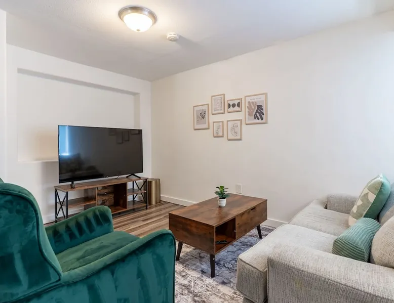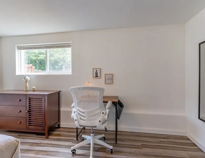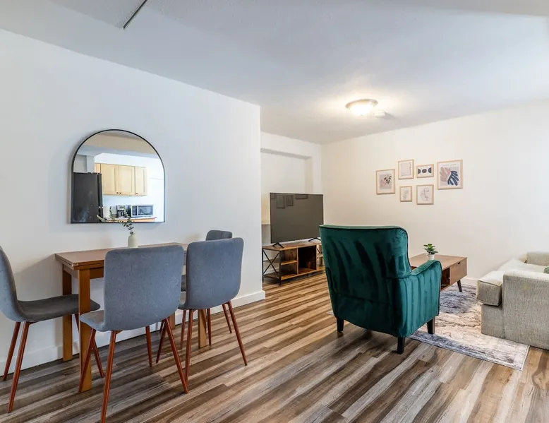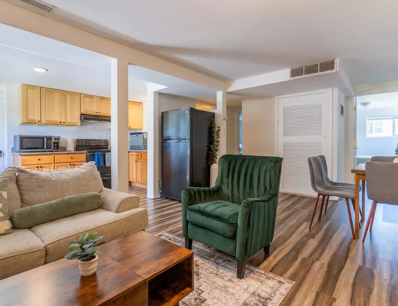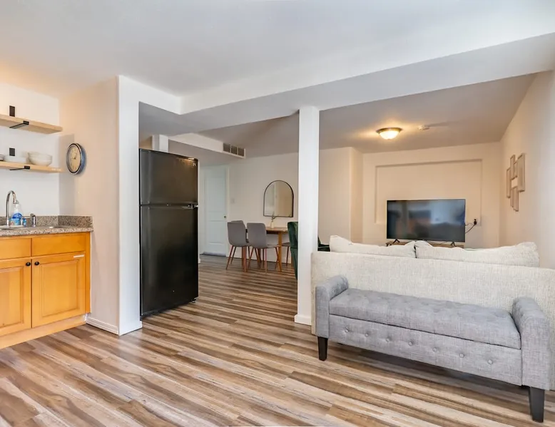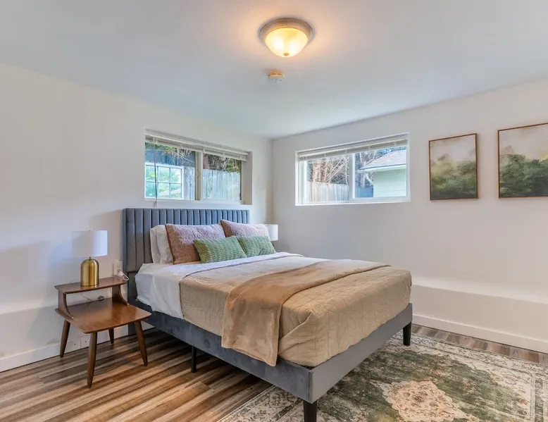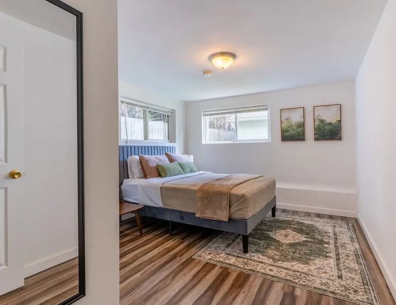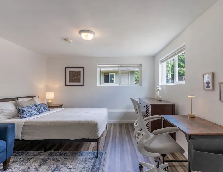 Looking for a home away from home this fall or winter? This spacious 920 sq ft, 2BR/1BA apartment is perfect for extended vacations, traveling nurses, remote workers, families in transition, or anyone needing a comfortable spot for a few months. Why You’ll Love It Dedicated workspace with desk & monitor for WFH ease In-unit washer & dryer with starter supplies Full kitchen with dishwasher, microwave, and coffee setup Private entrance for independence & peace of mind The space Step into this cozy and stylish basement apartment, designed for comfort and convenience. The living room offers a relaxing space, complemented by warm hardwood floors throughout. The fully equipped kitchen makes meal prep a breeze, and the in-unit washer and dryer add ease to daily living. With crisp white walls and a clean, modern feel, this apartment provides a peaceful and inviting retreat. Perfect for those seeking a comfortable, low-maintenance space to call home. Living, Dining, and Kitchen This inviting basement apartment features a comfortable living room with multiple seating options and a TV, perfect for relaxing after a long day. The kitchen is fully equipped with a dishwasher, microwave, coffee machine, and tea kettle, along with local coffee to start your mornings off right. A charming breakfast table for four adds a special touch, making it ideal for enjoying meals in a comfortable setting. ✔ Multiple seating ✔ TV ✔ Breakfast table for 4 ✔ Fully equipped kitchen Bedrooms and Bathrooms This comfortable 2-bedroom basement apartment offers a restful retreat with thoughtfully furnished spaces. The first bedroom features a queen bed, a desk with a monitor—perfect for work or study—and a dresser for your storage needs. The second bedroom includes a cozy queen bed. The apartment also includes a full bathroom, providing convenience and ample space for all guests. ✔ 1 Queen bed with nightstands, desk, dresser, and arm chair ✔ 1 Queen bed with nightstands ✔ 1 full bath Outdoor Space This charming basement apartment offers a private patio with its own set of washer and dryer, along with starter laundry supplies to make your stay hassle-free. Step outside to enjoy the shared fenced backyard, where you can unwind by the cozy fire pit. Experience the perfect blend of comfort and convenience, with everything you need right at your doorstep, surrounded by a peaceful and inviting outdoor environment. ✔ Washer & Dryer ✔ Shared fenced yard with fire pit Guest access You’ll be renting the entire basement unit with private access through your own separate entrance. Enjoy the convenience of street parking and access to the shared fully fenced back yard. Other things to note 1. Please note, the upper unit and garage are not included in the rental. 2. The upstairs unit is occupied by a working family. Quiet hours are from 10pm to 7am for everyone. 3. Pets welcome if they are safe around children, maximum of 2. 4. If you are staying 30 days or longer: Book instantly through the app! You may be asked to sign a lease to ensure renter protections and comply with local regulations. Registration Details STR-OPLI-25-001776