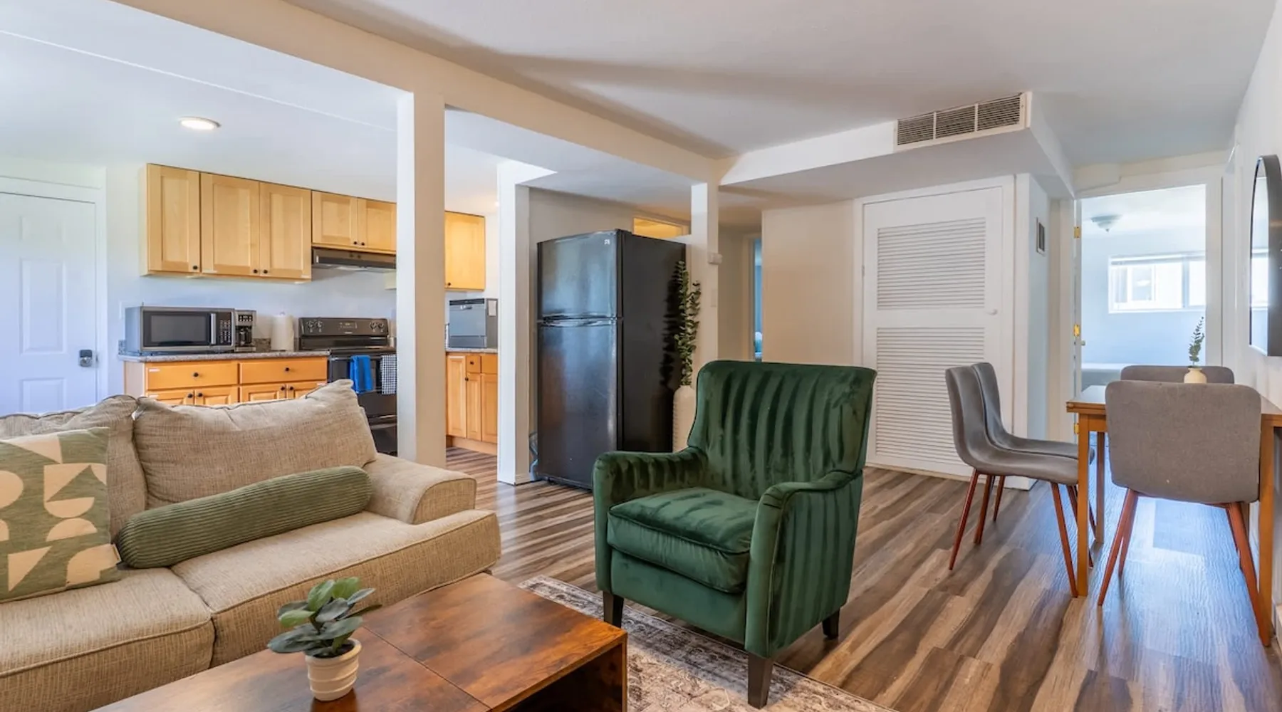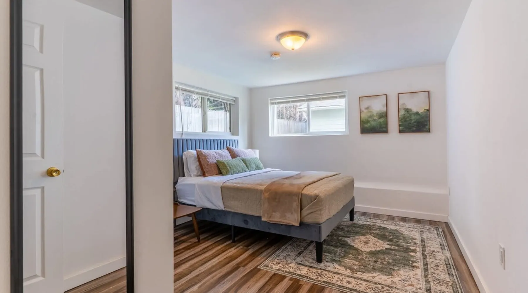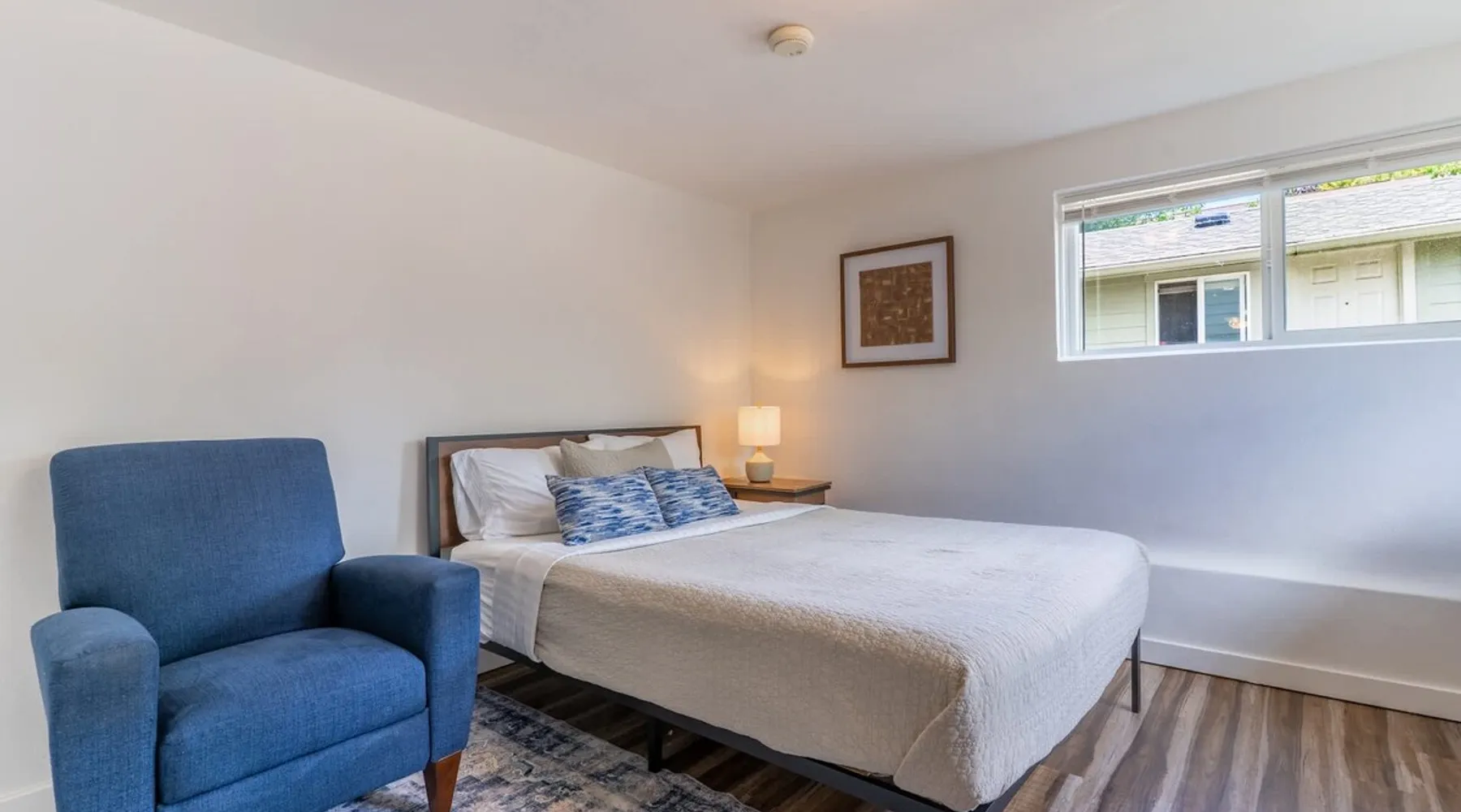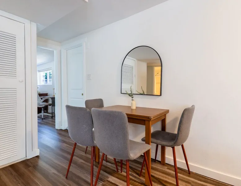 Looking for a home away from home this fall or winter? This spacious 920 sq ft, 2BR/1BA apartment is perfect for extended vacations, traveling nurses, remote workers, families in transition, or anyone needing a comfortable spot for a few months. Why You’ll Love It Dedicated workspace with desk & monitor for WFH ease In-unit washer & dryer with starter supplies Full kitchen with dishwasher, microwave, and coffee setup Private entrance for independence & peace of mind The space Step into this cozy and stylish basement apartment, designed for comfort and convenience. The living room offers a relaxing space, complemented by warm hardwood floors throughout. The fully equipped kitchen makes meal prep a breeze, and the in-unit washer and dryer add ease to daily living. With crisp white walls and a clean, modern feel, this apartment provides a peaceful and inviting retreat. Perfect for those seeking a comfortable, low-maintenance space to call home. Living, Dining, and Kitchen This inviting basement apartment features a comfortable living room with multiple seating options and a TV, perfect for relaxing after a long day. The kitchen is fully equipped with a dishwasher, microwave, coffee machine, and tea kettle, along with local coffee to start your mornings off right. A charming breakfast table for four adds a special touch, making it ideal for enjoying meals in a comfortable setting. ✔ Multiple seating ✔ TV ✔ Breakfast table for 4 ✔ Fully equipped kitchen Bedrooms and Bathrooms This comfortable 2-bedroom basement apartment offers a restful retreat with thoughtfully furnished spaces. The first bedroom features a queen bed, a desk with a monitor—perfect for work or study—and a dresser for your storage needs. The second bedroom includes a cozy queen bed. The apartment also includes a full bathroom, providing convenience and ample space for all guests. ✔ 1 Queen bed with nightstands, desk, dresser, and arm chair ✔ 1 Queen bed with nightstands ✔ 1 full bath Outdoor Space This charming basement apartment offers a private patio with its own set of washer and dryer, along with starter laundry supplies to make your stay hassle-free. Step outside to enjoy the shared fenced backyard, where you can unwind by the cozy fire pit. Experience the perfect blend of comfort and convenience, with everything you need right at your doorstep, surrounded by a peaceful and inviting outdoor environment. ✔ Washer & Dryer ✔ Shared fenced yard with fire pit Guest access You’ll be renting the entire basement unit with private access through your own separate entrance. Enjoy the convenience of street parking and access to the shared fully fenced back yard. Other things to note 1. Please note, the upper unit and garage are not included in the rental. 2. The upstairs unit is occupied by a working family. Quiet hours are from 10pm to 7am for everyone. 3. Pets welcome if they are safe around children, maximum of 2. 4. If you are staying 30 days or longer: Book instantly through the app! You may be asked to sign a lease to ensure renter protections and comply with local regulations. Registration Details STR-OPLI-25-001776