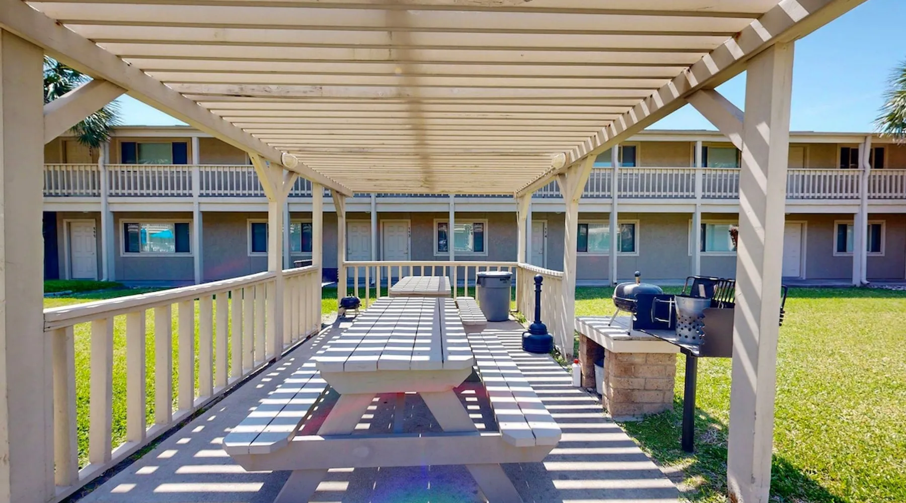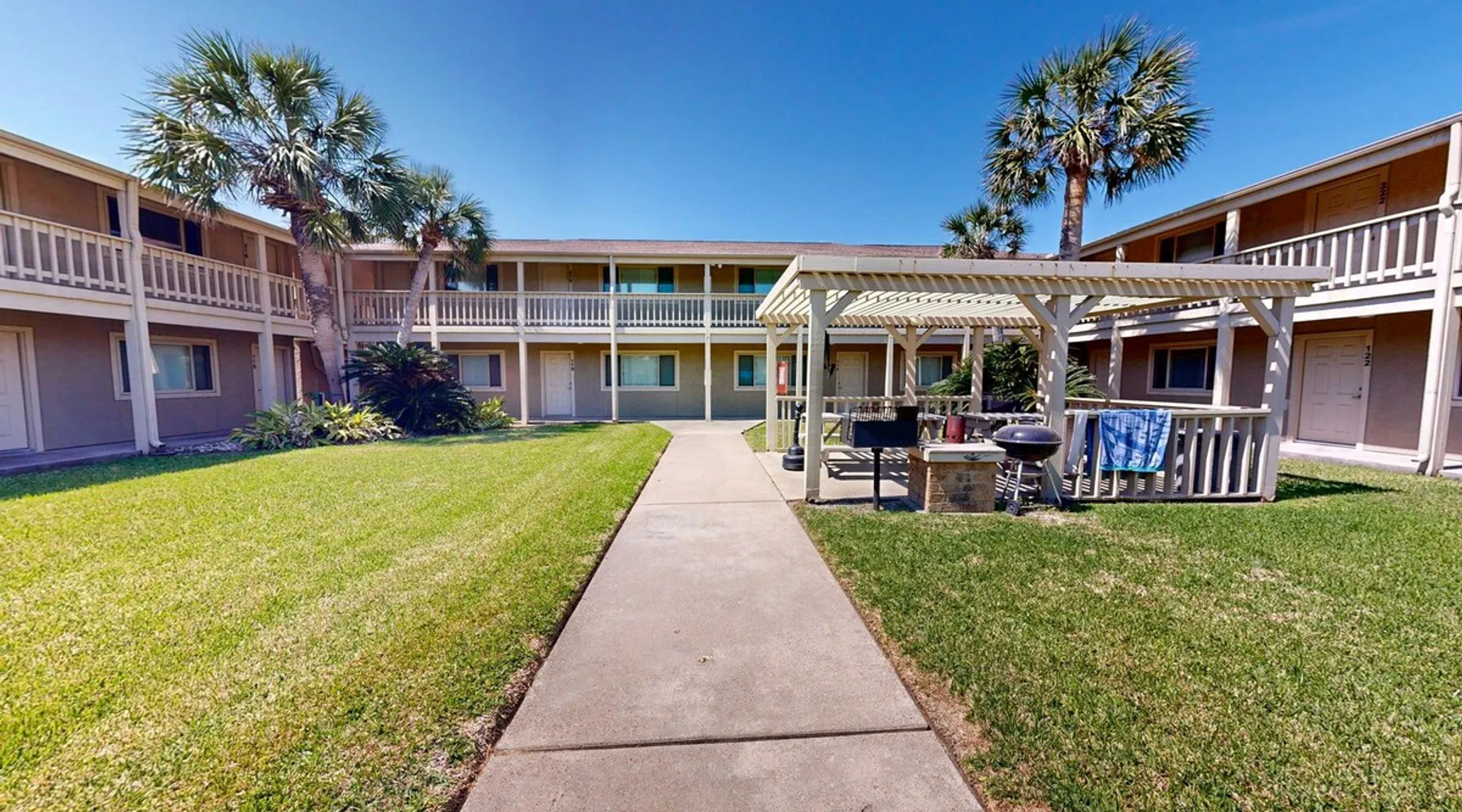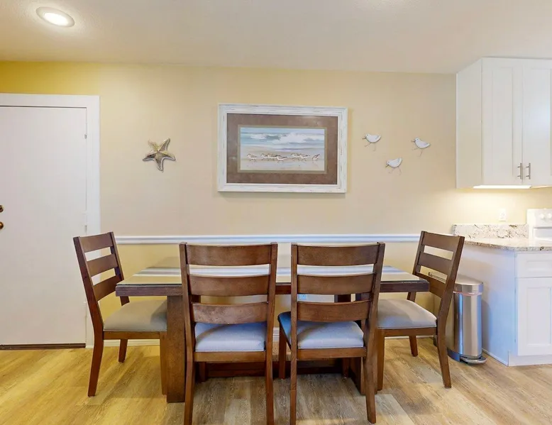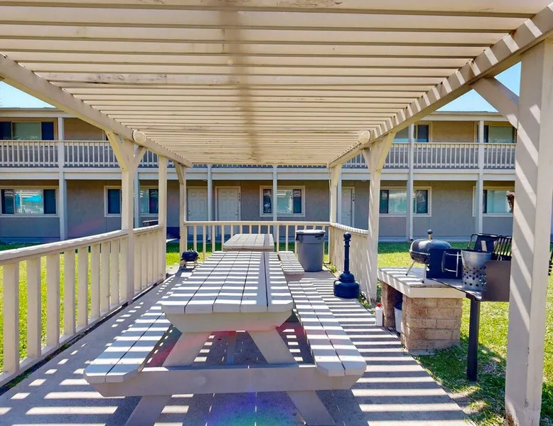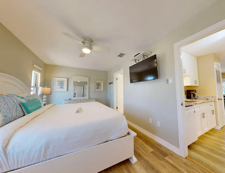 CC218: 218 Courtyard Condominiums 1BD, 1BA, Shared Heated Pool, Pickleball Court, Walk to the Beach Welcome to Courtyard Condominiums #218, a charming retreat nestled in the heart of Port Aransas, Texas, just a short stroll from the beautiful beach. This delightful 1-bedroom, 1-bathroom condo is the perfect getaway for those seeking sun, sand, and relaxation. The space CC218: 218 Courtyard Condominiums 1BD, 1BA, Shared Heated Pool, Pickleball Court, Walk to the Beach Welcome to Courtyard Condominiums #218, a charming retreat nestled in the heart of Port Aransas, Texas, just a short stroll from the beautiful beach. This delightful 1-bedroom, 1-bathroom condo is the perfect getaway for those seeking sun, sand, and relaxation. Step inside to discover a welcoming open layout that maximizes space and comfort. The fully equipped kitchen boasts modern appliances and ample counter space, making meal preparation a breeze. Gather around the dining table that comfortably seats four for intimate meals or game nights. The cozy living area is designed for relaxation, featuring two plush sofas and a fold-out chest that easily converts to an additional bed, accommodating extra guests. Enjoy your favorite shows or movies on the TV, ensuring entertainment is always at hand. As you venture outside, take advantage of the shared heated pool, perfect for a refreshing dip year-round. Fire up the charcoal grill for an unforgettable barbecue under the stars, or challenge friends to a match on the pickleball court for some fun and friendly competition. Don’t miss this fantastic opportunity to experience the charm and beauty of Port Aransas. Whether you’re planning a romantic getaway or a fun family vacation, Courtyard Condominiums #218 is your ideal home away from home. Book your stay today and create lasting memories! Things to know: WIFI Shared Heated Pool Pickleball Court Charcoal grill (Please provide your own charcoal) Fully equipped Kitchen (drip coffee maker, please bring coffee and filters) No Pets Allowed Parking for 2 vehicles Must be 25 years old to book one of our units. Strictly enforced, ID verified upon check-in. Life in Paradise rental agreement required upon booking We provide WIFI to enhance your stay and keep you connected. While Port A is typically reliable, you may experience occasional outages beyond our control. Thank you for your understanding. Construction is a constant in Port Aransas. While we strive to ensure your visit is peaceful, you may encounter sights and sounds of building projects or community improvements during your stay. We appreciate your understanding as we work towards making our community better for everyone. Bedrooms and bathrooms: BR1 King Hall Bath w/ tub/shower combo, single vanity Chest Fold-out bed - Full size