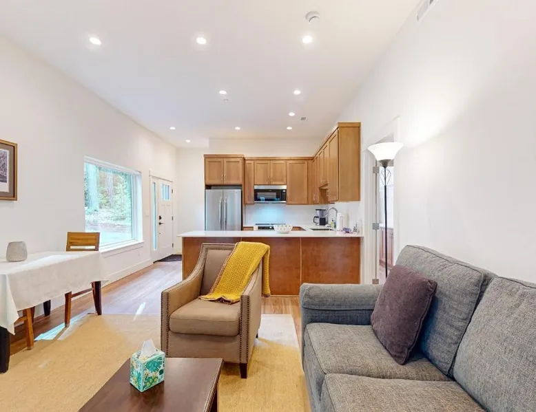 Comfortable Living: Battle Point Paradise in Bainbridge Island offers a cozy holiday home with one bedroom and one bathroom. The property features air-conditioning, a washing machine, and a fully equipped kitchen with modern appliances. Outdoor Spaces: Guests can relax in the outdoor seating area, which includes a patio and outdoor furniture. The private entrance provides easy access to the spacious outdoor area, ideal for enjoying the scenic surroundings. Convenient Amenities: The holiday home is equipped with a dining table, work desk, and TV. Additional amenities include a microwave, dishwasher, and free toiletries, ensuring a comfortable and enjoyable stay. Local Attractions: Located 17 mi from Seattle Lake Union Seaplane Base and 30 mi from Admiral Theater, Battle Point Paradise offers easy access to local points of interest. Featuring a private entrance, this air-conditioned holiday home consists of a kitchen, 1 bedroom and 1 bathroom with a walk-in shower and a hairdryer. The fully equipped kitchen features a stovetop, a refrigerator, a dishwasher and kitchenware. Boasting a patio, this holiday home also provides a washing machine, a tea and coffee maker and a flat-screen TV. The unit offers 1 bed.
