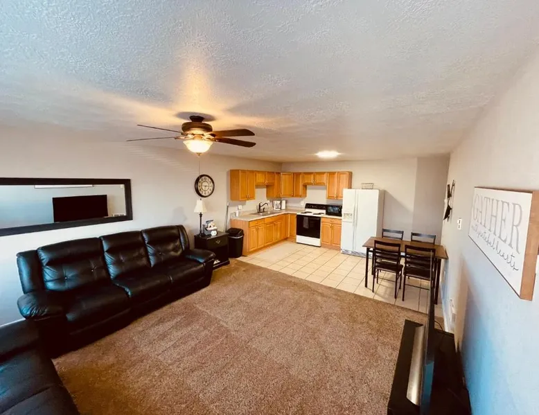 Comfortable Accommodations: Iona Mercantile BnB in Ucon offers a ground-floor apartment with a private entrance. The property features air-conditioning, a fully equipped kitchen, and a private bathroom. Guests enjoy free WiFi, streaming services, and a washing machine. Outdoor Amenities: The apartment includes an outdoor fireplace, play area, seating, and picnic areas. Additional facilities include mini golf, outdoor dining, and a work desk. Free on-site private parking is available. Local Attractions: Located 17 mi from Idaho Falls Regional Airport and 20 mi from Eliza R. Snow Performing Arts Center, the property provides easy access to skiing, hiking, and cycling. Guests appreciate the room cleanliness and comfort. Boasting a private entrance, this air-conditioned apartment comes with 1 living room, 2 separate bedrooms and 1 bathroom with a bath and a shower. In the kitchen, guests will find a stovetop, a refrigerator, kitchenware and an oven. The spacious apartment features a washing machine, a tea and coffee maker, a seating area, a dining area, as well as a flat-screen TV with streaming services. The unit has 5 beds.