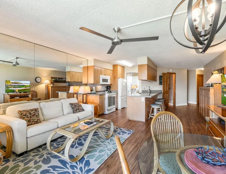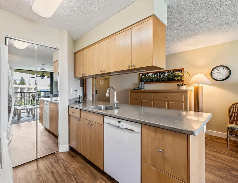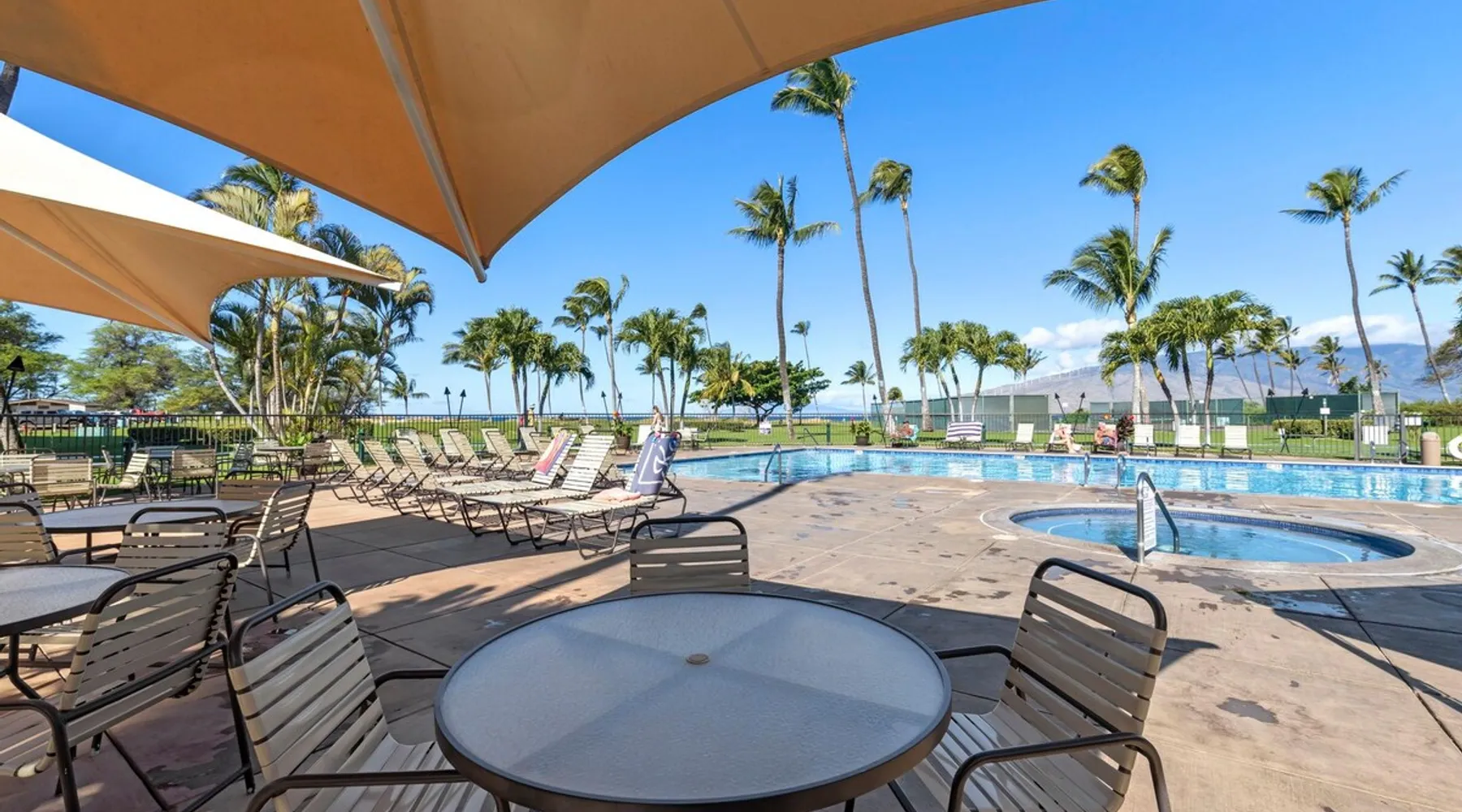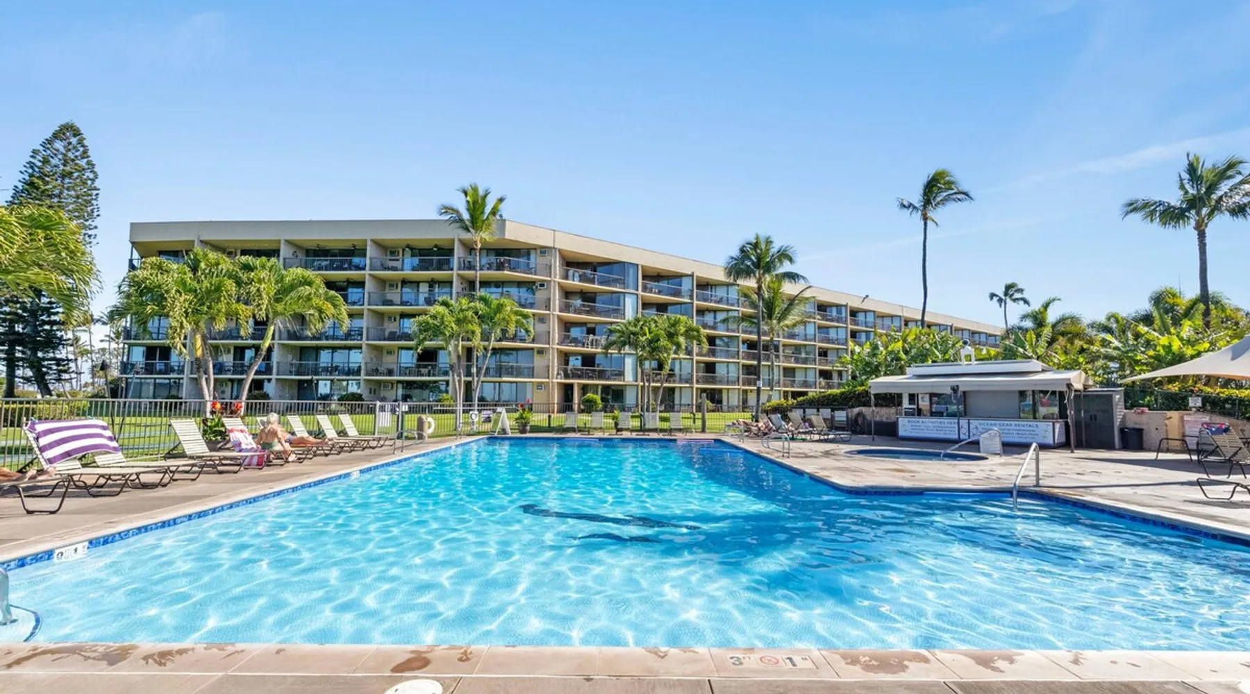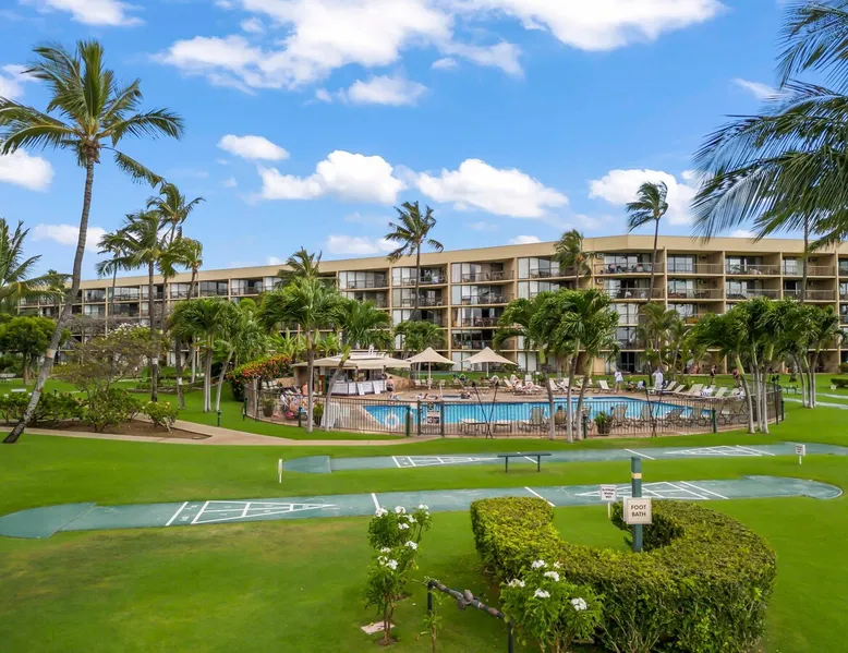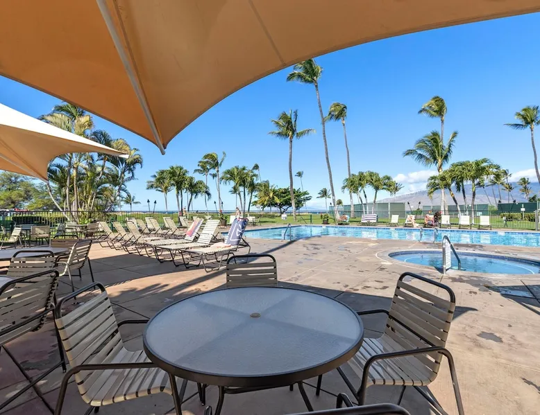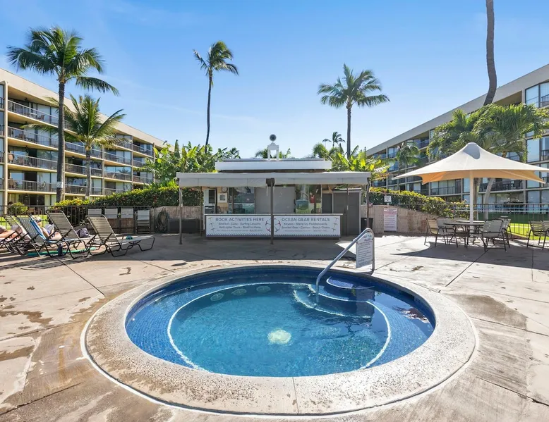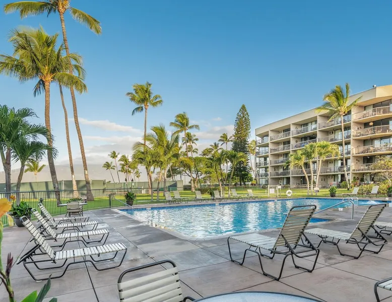 Upper floor lanai features privacy and views of gardens and partial ocean views. The space Watch the life of Maui unfold from the morning till evening from your private 114 sq foot private view deck. Premium condo suite located near the pool area. Quiet location features large private view deck and renovated interior. Large private condominium apartment at the resort condominium complex on the beach in sunny Kihei, Maui, Hawaii. 1 bedroom with private attached bathroom. 2nd bathroom down the hall with shower, large living area, dining area, kitchen with breakfast bar. PLUS, large private view deck looking out towards ocean. Beach chairs, pool towels, full size appliances including air conditioning and washer dryer. Really, just hit the grocery store and you are set for the week! General Info: The Maui Sunset is located on over 5 acres of oceanfront at Kihei which is considered one of the best locations on the Valley Isle. Kihei is noted for its year-round sunshine, balmy trade winds, and soothing evening air. It is one of the driest and sunniest areas on the entire island, averaging only 10 inches a year! World famous swimming and snorkeling beaches are minutes away at one of the many sandy safe beaches at Kihei and nearby Wailea. Just a short distance (6 miles) from five championship 18-hole resort golf courses at Wailea and Makena. The two buildings frame and protect a large recreational area that is carefully attended and landscaped. The 60-foot swimming pool with its broad decks and abundance of pool furniture invites you to improve on your tan. Keywords: Condo, ocean front resort, 1 Bedroom 2 Bath, ocean front view, timeshare, updated, maui sunset, kihei, vacation rental TA -045-807-4112-01 Registration Details Exempt