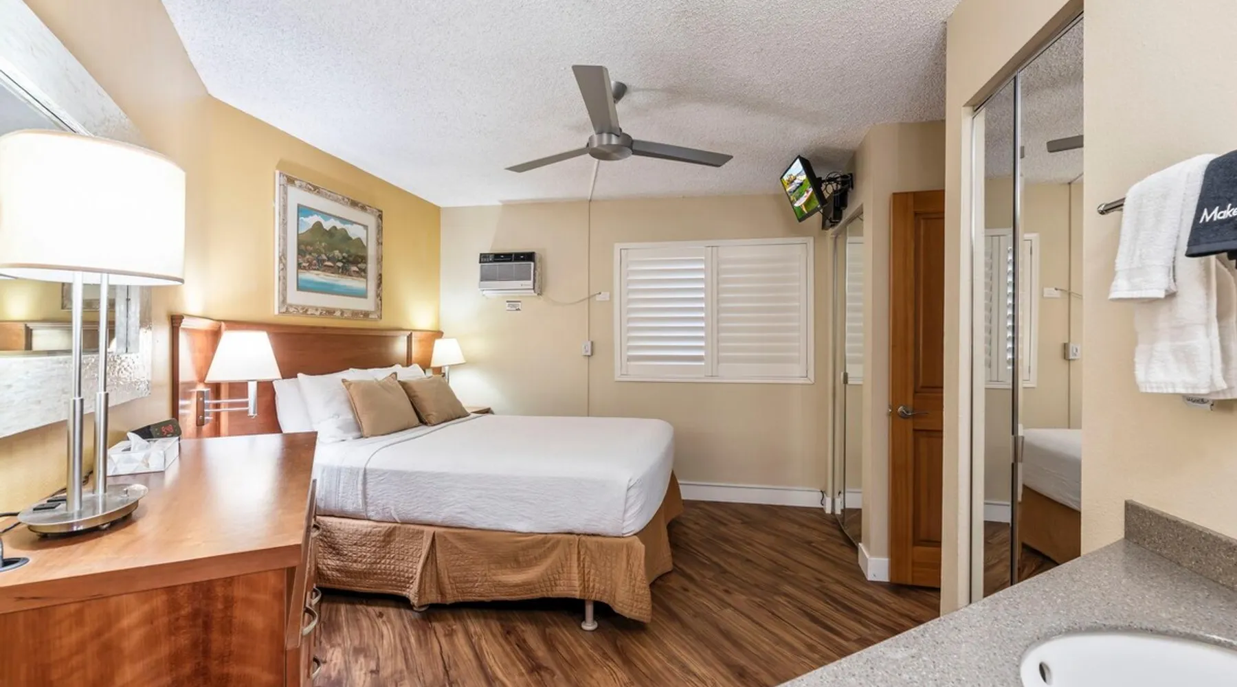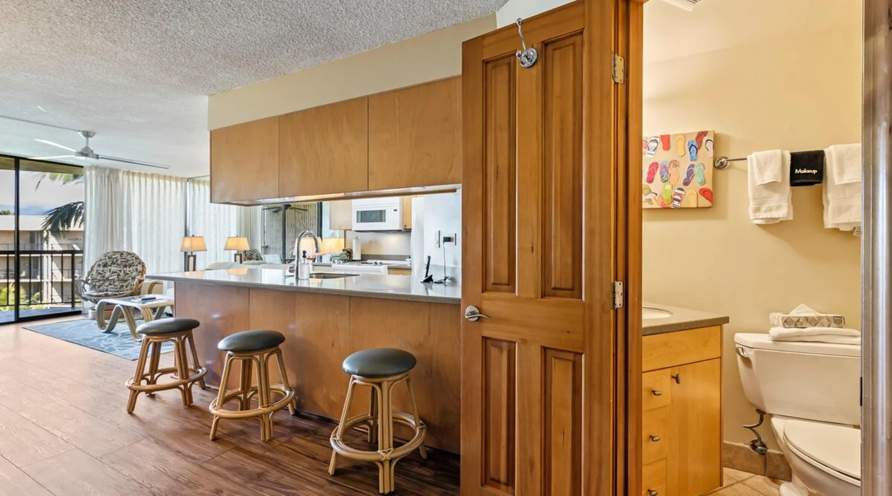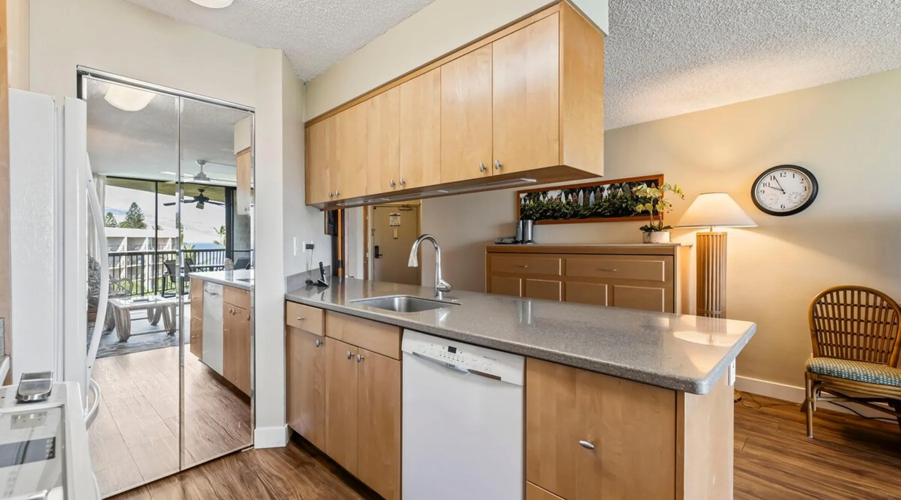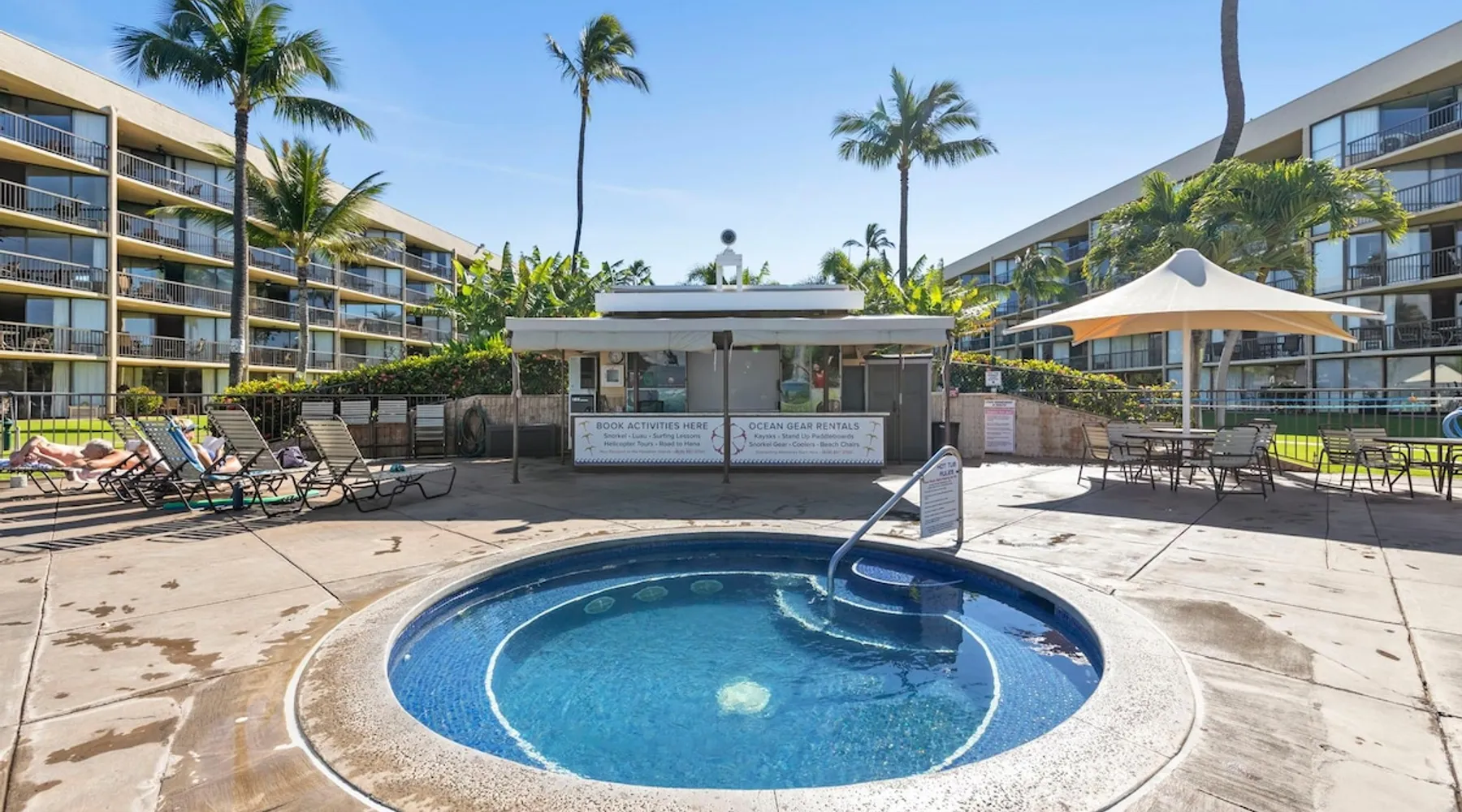 Upper floor lanai features privacy and views of gardens and partial ocean views. The space Watch the life of Maui unfold from the morning till evening from your private 114 sq foot private view deck. Premium condo suite located near the pool area. Quiet location features large private view deck and renovated interior. Large private condominium apartment at the resort condominium complex on the beach in sunny Kihei, Maui, Hawaii. 1 bedroom with private attached bathroom. 2nd bathroom down the hall with shower, large living area, dining area, kitchen with breakfast bar. PLUS, large private view deck looking out towards ocean. Beach chairs, pool towels, full size appliances including air conditioning and washer dryer. Really, just hit the grocery store and you are set for the week! General Info: The Maui Sunset is located on over 5 acres of oceanfront at Kihei which is considered one of the best locations on the Valley Isle. Kihei is noted for its year-round sunshine, balmy trade winds, and soothing evening air. It is one of the driest and sunniest areas on the entire island, averaging only 10 inches a year! World famous swimming and snorkeling beaches are minutes away at one of the many sandy safe beaches at Kihei and nearby Wailea. Just a short distance (6 miles) from five championship 18-hole resort golf courses at Wailea and Makena. The two buildings frame and protect a large recreational area that is carefully attended and landscaped. The 60-foot swimming pool with its broad decks and abundance of pool furniture invites you to improve on your tan. Keywords: Condo, ocean front resort, 1 Bedroom 2 Bath, ocean front view, timeshare, updated, maui sunset, kihei, vacation rental TA -045-807-4112-01 Registration Details Exempt
