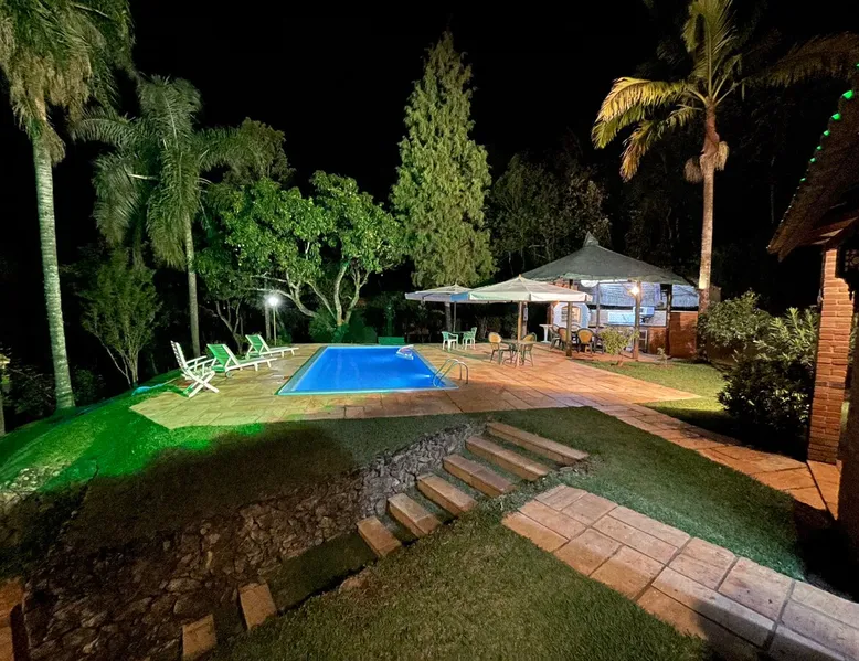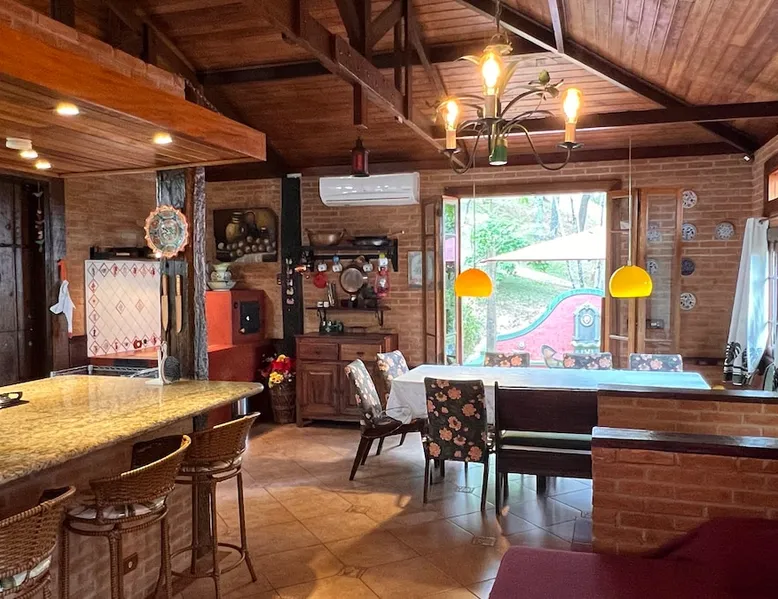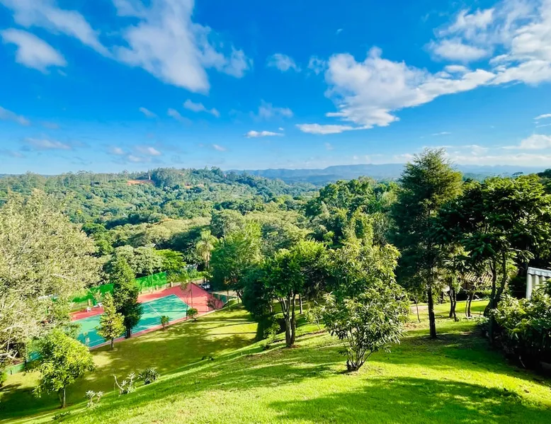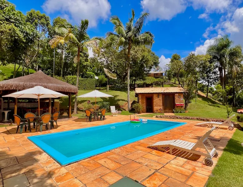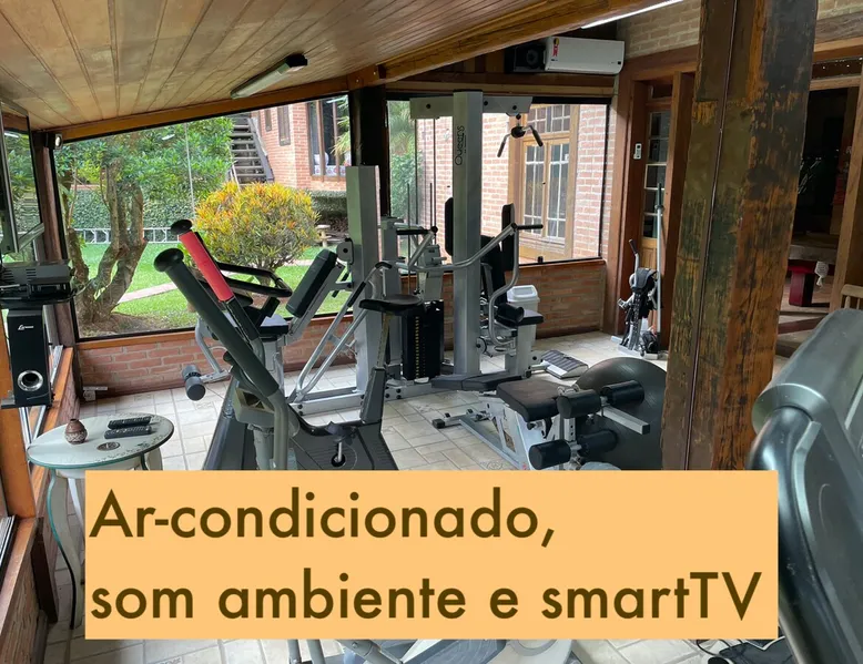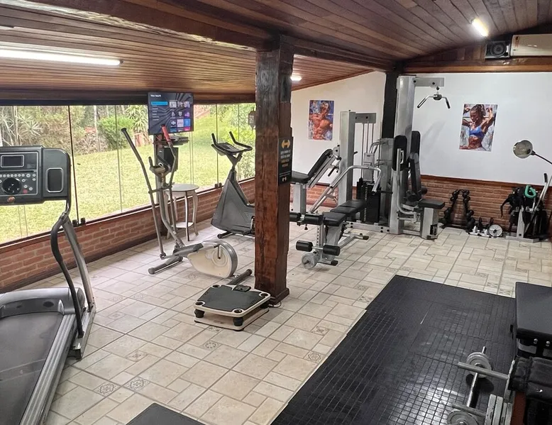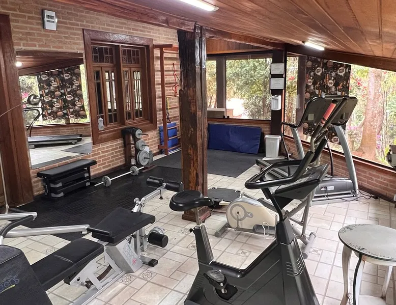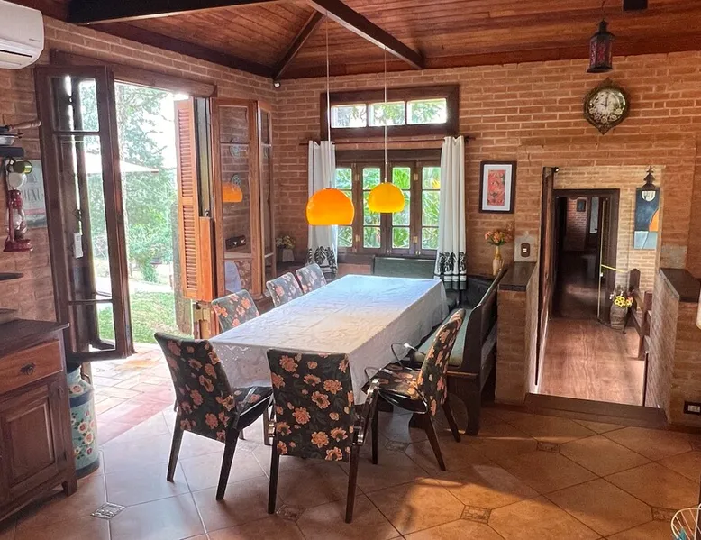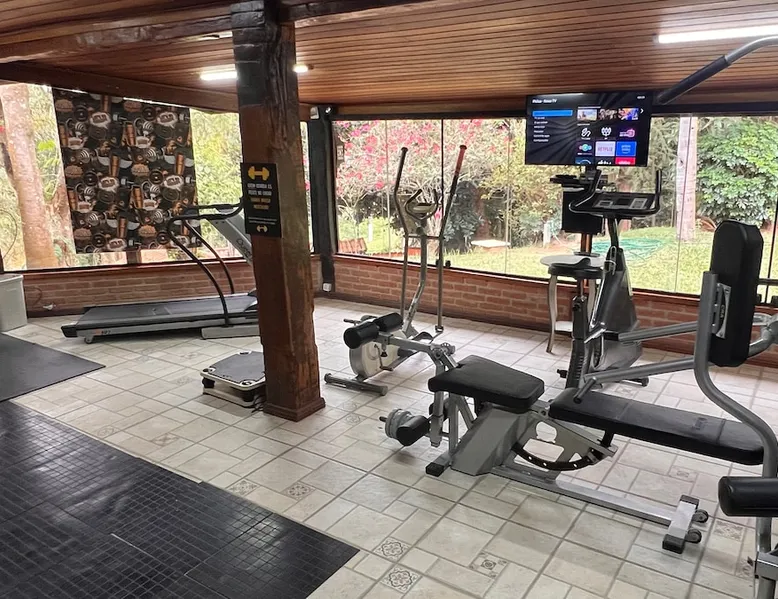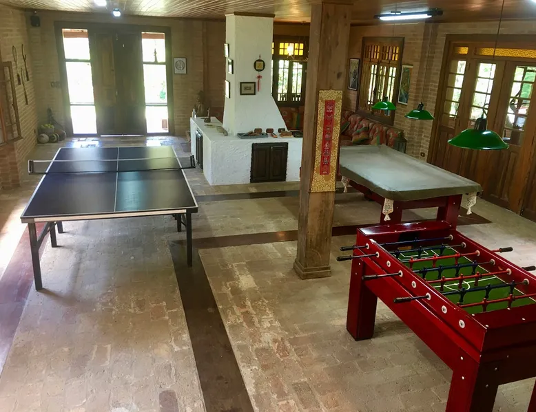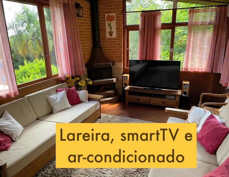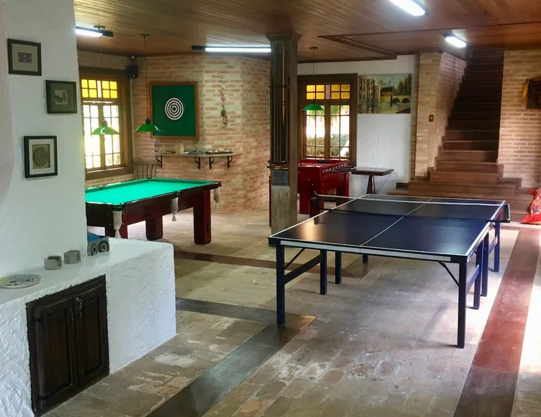 Place for unforgettable moments 45min from SP! Gated and secure condominium. 400Mbps Internet. Capacity 17 people in 5 bedrooms (3 suites), 7 bathrooms. Bed/bath linen. Gourmet kitchen and wood stove. Fireplaces. Heated and illuminated pool. Kiosk. w/ barbecue. ice mach., TV, freezer, stove, refrigerator and stereo. Illuminated ATP standard tennis court. Professional gym. Complete games room. Air cond. in all environments. Max. cleanliness. Everything in the house works perfectly. All fenced. The space Ideal place for integration with family and friends. Capacity 17 people at night and 25 during the day. Get out of the gray of the city and come have fun and rest in a beautiful farm with a farmhouse, surrounded by green and peace. As an exclusivity, we offer bed and bath linen (face and bath towels, bottom and top sheets, pillows, blankets and blankets, all very clean and sanitized), 400Mbps internet, Netflix, SkyHDTV, toilet paper, cleaning products for the house, liquid soaps in the bathroom sinks, heated pool and court lighting. For FAMILIES, FRIENDS OR EVENTS (up to 50 people and price not included on accomodation rate), it is a space with 6,500m2 (70,000ft2) encrusted in the middle of a forest reserve, all fenced and inside a very safe gated condominium, it is the ideal place to enjoy nature with family, friends, small events or even a romantic weekend. Maximum 2 medium pets up to 15kg (more pets or higher, on request). - It has all the elements of an excellent house of 420m2 (4,520ft2) of floor space with a high standard, but with the beauty of the fine rustic style. Quiet place, neighbors 100m away, give the perfect privacy for rest. - Large rooms, all with beautiful views of nature. There are 2 bedrooms with super king bed (6ft8"x6ft6") plus a bunk bed (2ft11"x6ft6") and 3 with queen bed (5ft7"x6ft6"), one of them with a bunk bed. Of the 5 bedrooms, 3 are suites, one with a 600-liter Jacuzzi whirlpool. - Kitchen with all the utensils of a good modern kitchen (plates, glasses, cups, cutlery, trays, molds, pans, pressure cookers, sandwich maker, toaster, orange juicer, thermoses, Nespresso coffee maker, Italian coffee maker, Japanese rice cooker, blender, dishwasher, mixer, electric oven, ice water filter, duplex refrigerator, 5-burner cooktop, 2 gas ovens, microwave, airfryer, complete fondue rechaud, sukiyaki pan, bread maker, etc.). - We have a crib and bathtub for babies. - The games room has ambient sound, table tennis, snooker, foosball, chess, dart and a beautiful fireplace room. - The gym is professional and complete, has a bathroom with shower, large Queen's electronic treadmill, digital exercise bike and elliptical, Queen's weight station with 3 towers, electronic shaker, smartTV with Sky and internet, ambient sound, plates, weights, mats, drinking fountain and air conditioning. - The tennis court is ATP standard, 10,000W metallic steam lighting (does not dazzle), fast floor with rubber cushioning, with 2 tables, 4 chairs and 2 umbrellas. We provide new tennis rackets and we have ball tubes for sale. Both the gym and the court are inside the house All TVs are HD SmartTV's with SkyHDTV, Netflix, Youtube etc. - The water that supplies the farm is artezian well mineral and tri-filtered. This water supplies the pool, which is heated between 27-28C (80-83F) all year round. For emergencies there is a power generator. - The entrance gate is automatic. Video security with 10 external HD and infrared cameras 50 meters, via satellite and 4G. Direct intrusion alarm system with the police. Although we are in the middle of a forest reserve, we make a point of keeping the entire house and other amenities absolutely clean, sanitized and fumigated. - The land is large, 6,500m2, all fenced and has two houses, the one in this ad, with 420m2 and the old guest house where I live with my wife. The two are distant from each other and completely independent in everything. We are always available to help with any need of our guests. Guest access The location is great, access is via the Castello Branco Highway, near km 58. From Alphaville/Barueri it is 39km or 35min and from São Paulo, 60km or 45 min. The entrance is on a paved road and from the entrance to the inside the streets are dirt, but well maintained. From the entrance to the house it is 700m, any car can get here without problems. The option not to pave is for ecological reasons. The farm is all well fenced, preventing the intrusion of low wild animals or the exit of pets. Other things to note A place of special energy for those who enjoy contact with nature and a lot of comfort, exclusivity and privacy. For COMPANIES, ideal place for events up to 50 people (price to be quoted from 20 people). Maximum 2 medium pets up to 15kg per stay (more pets or larger, on request) Due to the topology, the place is NOT the most suitable for people with mobility limitations.