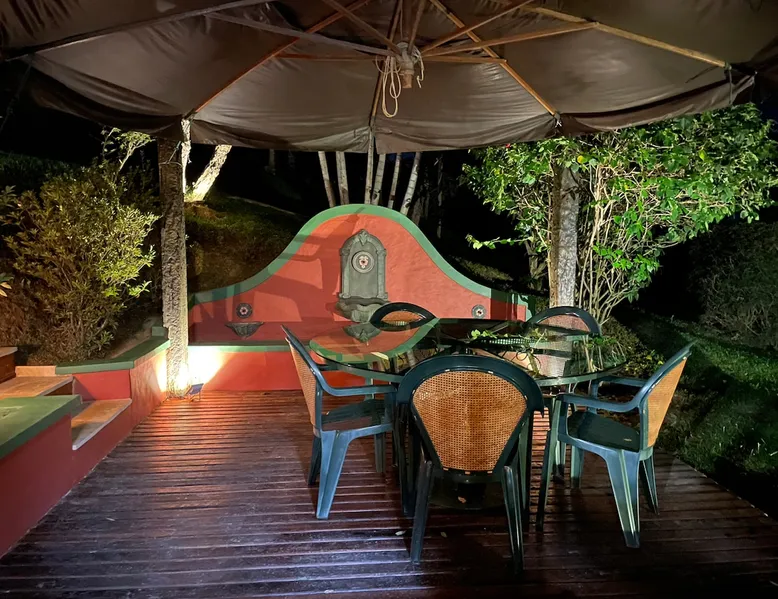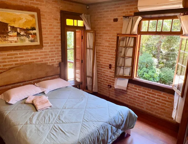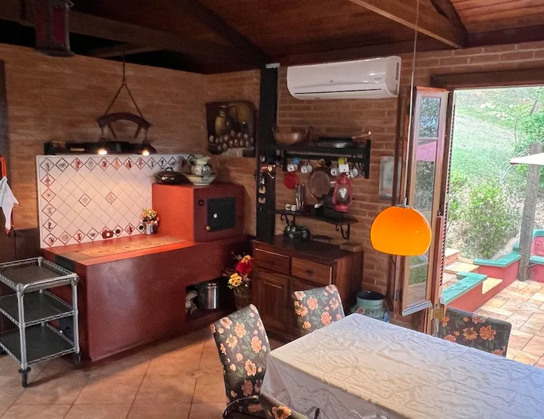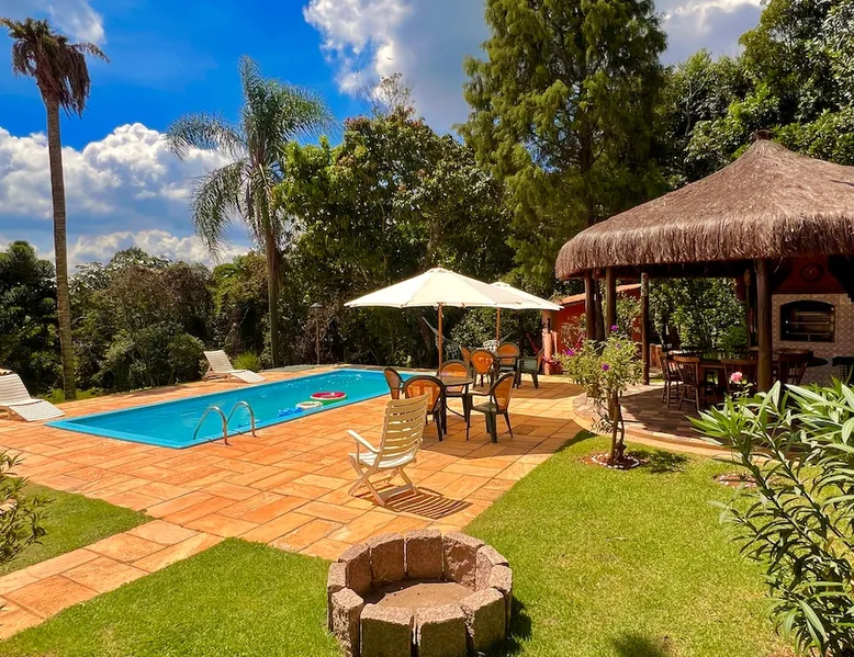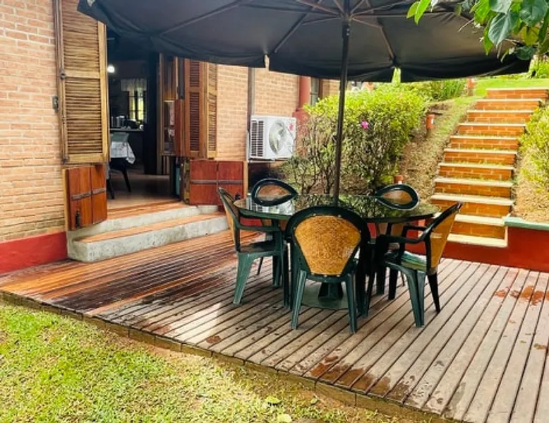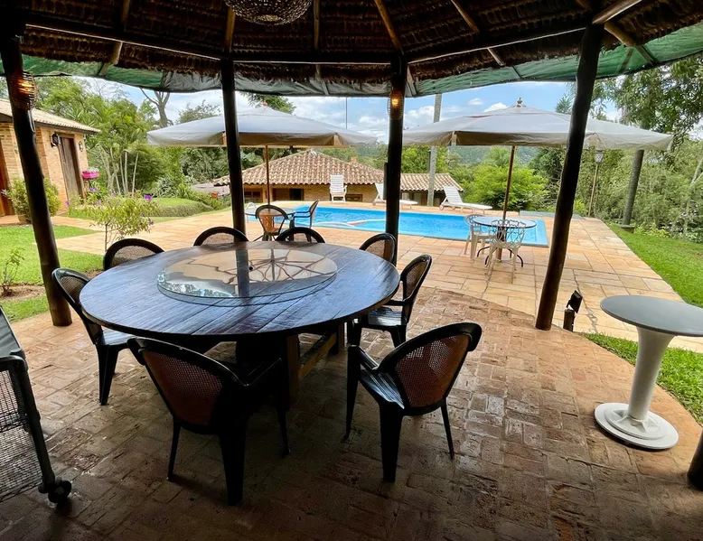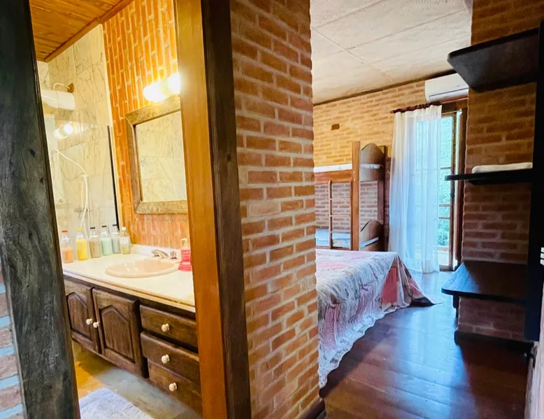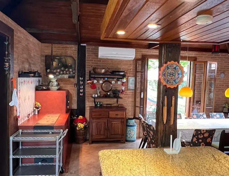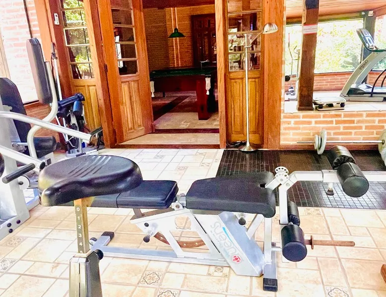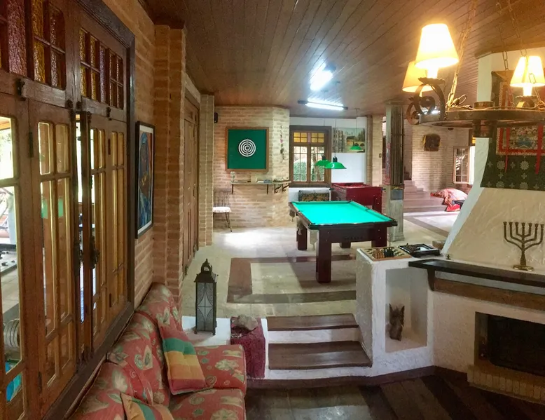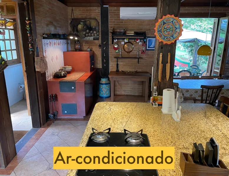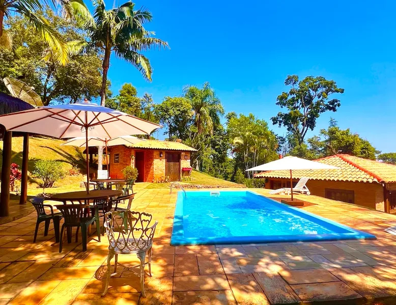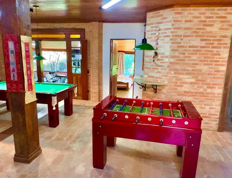 Place for unforgettable moments 45min from SP! Gated and secure condominium. 400Mbps Internet. Capacity 17 people in 5 bedrooms (3 suites), 7 bathrooms. Bed/bath linen. Gourmet kitchen and wood stove. Fireplaces. Heated and illuminated pool. Kiosk. w/ barbecue. ice mach., TV, freezer, stove, refrigerator and stereo. Illuminated ATP standard tennis court. Professional gym. Complete games room. Air cond. in all environments. Max. cleanliness. Everything in the house works perfectly. All fenced. The space Ideal place for integration with family and friends. Capacity 17 people at night and 25 during the day. Get out of the gray of the city and come have fun and rest in a beautiful farm with a farmhouse, surrounded by green and peace. As an exclusivity, we offer bed and bath linen (face and bath towels, bottom and top sheets, pillows, blankets and blankets, all very clean and sanitized), 400Mbps internet, Netflix, SkyHDTV, toilet paper, cleaning products for the house, liquid soaps in the bathroom sinks, heated pool and court lighting. For FAMILIES, FRIENDS OR EVENTS (up to 50 people and price not included on accomodation rate), it is a space with 6,500m2 (70,000ft2) encrusted in the middle of a forest reserve, all fenced and inside a very safe gated condominium, it is the ideal place to enjoy nature with family, friends, small events or even a romantic weekend. Maximum 2 medium pets up to 15kg (more pets or higher, on request). - It has all the elements of an excellent house of 420m2 (4,520ft2) of floor space with a high standard, but with the beauty of the fine rustic style. Quiet place, neighbors 100m away, give the perfect privacy for rest. - Large rooms, all with beautiful views of nature. There are 2 bedrooms with super king bed (6ft8"x6ft6") plus a bunk bed (2ft11"x6ft6") and 3 with queen bed (5ft7"x6ft6"), one of them with a bunk bed. Of the 5 bedrooms, 3 are suites, one with a 600-liter Jacuzzi whirlpool. - Kitchen with all the utensils of a good modern kitchen (plates, glasses, cups, cutlery, trays, molds, pans, pressure cookers, sandwich maker, toaster, orange juicer, thermoses, Nespresso coffee maker, Italian coffee maker, Japanese rice cooker, blender, dishwasher, mixer, electric oven, ice water filter, duplex refrigerator, 5-burner cooktop, 2 gas ovens, microwave, airfryer, complete fondue rechaud, sukiyaki pan, bread maker, etc.). - We have a crib and bathtub for babies. - The games room has ambient sound, table tennis, snooker, foosball, chess, dart and a beautiful fireplace room. - The gym is professional and complete, has a bathroom with shower, large Queen's electronic treadmill, digital exercise bike and elliptical, Queen's weight station with 3 towers, electronic shaker, smartTV with Sky and internet, ambient sound, plates, weights, mats, drinking fountain and air conditioning. - The tennis court is ATP standard, 10,000W metallic steam lighting (does not dazzle), fast floor with rubber cushioning, with 2 tables, 4 chairs and 2 umbrellas. We provide new tennis rackets and we have ball tubes for sale. Both the gym and the court are inside the house All TVs are HD SmartTV's with SkyHDTV, Netflix, Youtube etc. - The water that supplies the farm is artezian well mineral and tri-filtered. This water supplies the pool, which is heated between 27-28C (80-83F) all year round. For emergencies there is a power generator. - The entrance gate is automatic. Video security with 10 external HD and infrared cameras 50 meters, via satellite and 4G. Direct intrusion alarm system with the police. Although we are in the middle of a forest reserve, we make a point of keeping the entire house and other amenities absolutely clean, sanitized and fumigated. - The land is large, 6,500m2, all fenced and has two houses, the one in this ad, with 420m2 and the old guest house where I live with my wife. The two are distant from each other and completely independent in everything. We are always available to help with any need of our guests. Guest access The location is great, access is via the Castello Branco Highway, near km 58. From Alphaville/Barueri it is 39km or 35min and from São Paulo, 60km or 45 min. The entrance is on a paved road and from the entrance to the inside the streets are dirt, but well maintained. From the entrance to the house it is 700m, any car can get here without problems. The option not to pave is for ecological reasons. The farm is all well fenced, preventing the intrusion of low wild animals or the exit of pets. Other things to note A place of special energy for those who enjoy contact with nature and a lot of comfort, exclusivity and privacy. For COMPANIES, ideal place for events up to 50 people (price to be quoted from 20 people). Maximum 2 medium pets up to 15kg per stay (more pets or larger, on request) Due to the topology, the place is NOT the most suitable for people with mobility limitations.