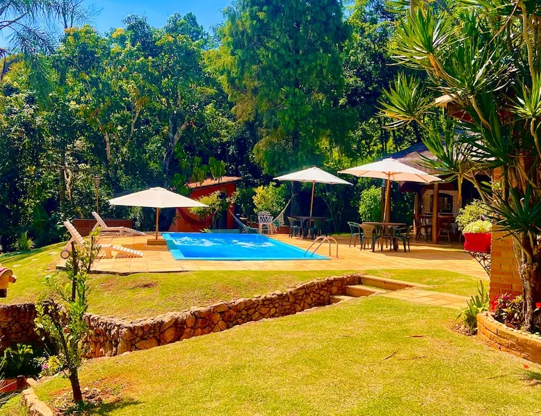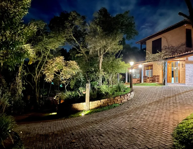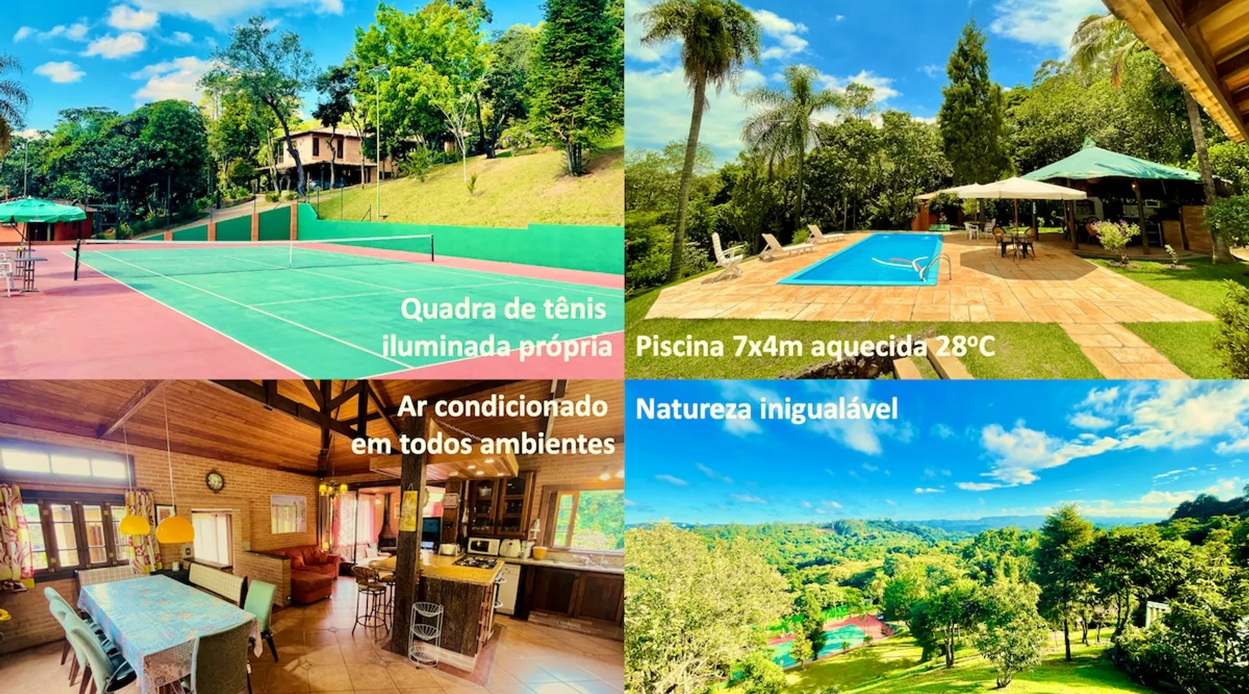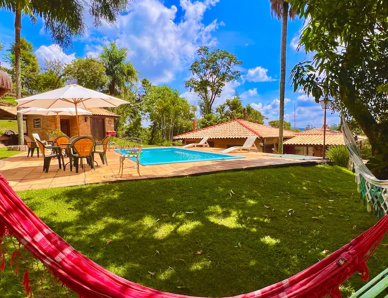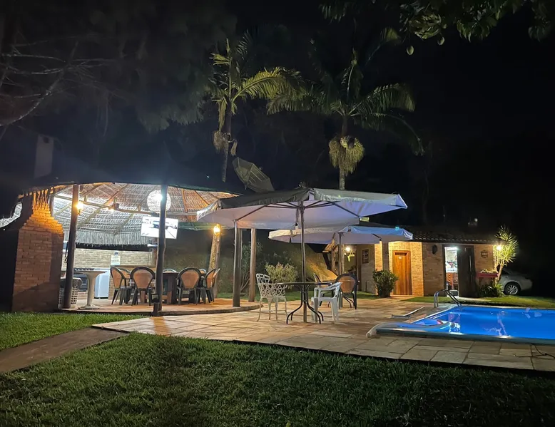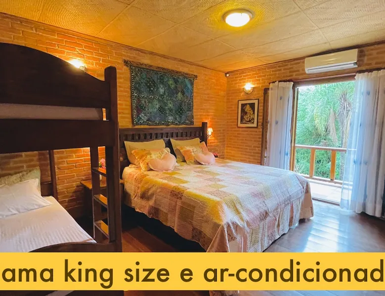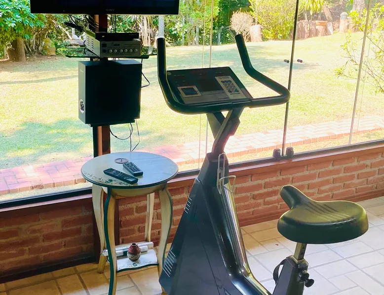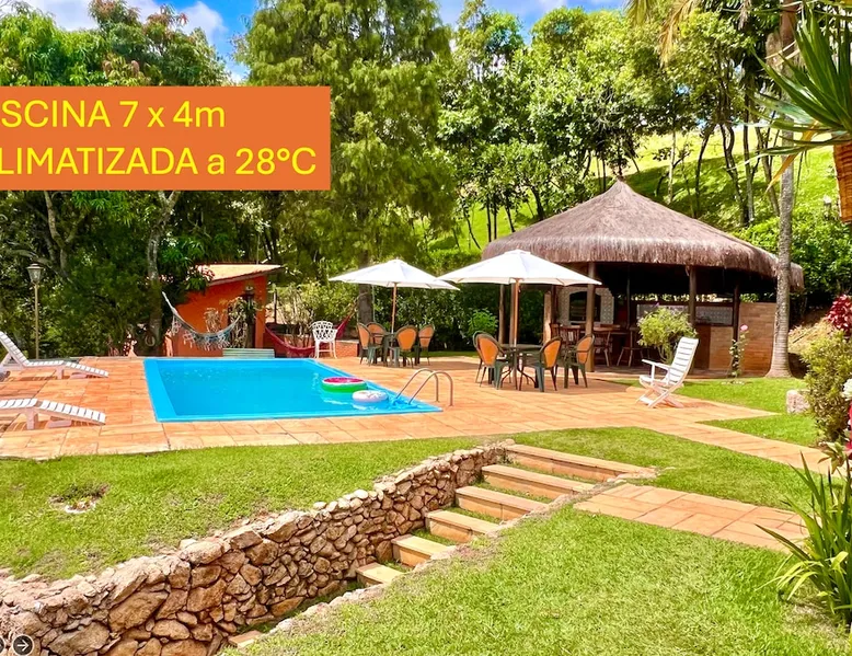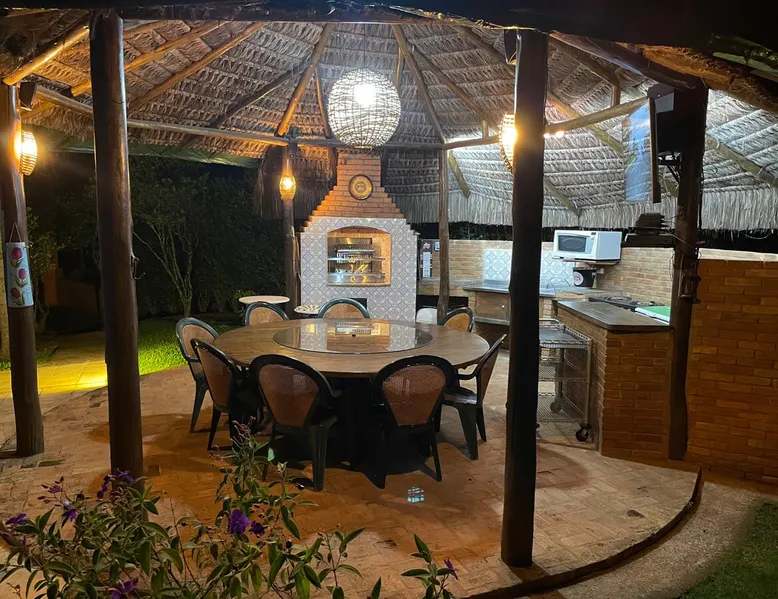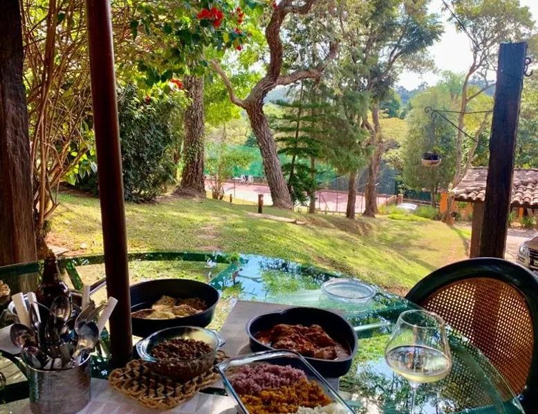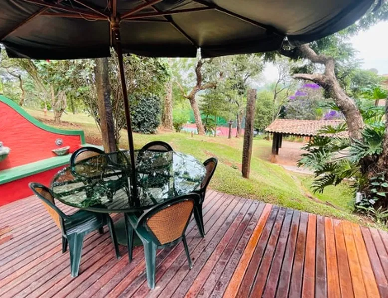 Place for unforgettable moments 45min from SP! Gated and secure condominium. 400Mbps Internet. Capacity 17 people in 5 bedrooms (3 suites), 7 bathrooms. Bed/bath linen. Gourmet kitchen and wood stove. Fireplaces. Heated and illuminated pool. Kiosk. w/ barbecue. ice mach., TV, freezer, stove, refrigerator and stereo. Illuminated ATP standard tennis court. Professional gym. Complete games room. Air cond. in all environments. Max. cleanliness. Everything in the house works perfectly. All fenced. The space Ideal place for integration with family and friends. Capacity 17 people at night and 25 during the day. Get out of the gray of the city and come have fun and rest in a beautiful farm with a farmhouse, surrounded by green and peace. As an exclusivity, we offer bed and bath linen (face and bath towels, bottom and top sheets, pillows, blankets and blankets, all very clean and sanitized), 400Mbps internet, Netflix, SkyHDTV, toilet paper, cleaning products for the house, liquid soaps in the bathroom sinks, heated pool and court lighting. For FAMILIES, FRIENDS OR EVENTS (up to 50 people and price not included on accomodation rate), it is a space with 6,500m2 (70,000ft2) encrusted in the middle of a forest reserve, all fenced and inside a very safe gated condominium, it is the ideal place to enjoy nature with family, friends, small events or even a romantic weekend. Maximum 2 medium pets up to 15kg (more pets or higher, on request). - It has all the elements of an excellent house of 420m2 (4,520ft2) of floor space with a high standard, but with the beauty of the fine rustic style. Quiet place, neighbors 100m away, give the perfect privacy for rest. - Large rooms, all with beautiful views of nature. There are 2 bedrooms with super king bed (6ft8"x6ft6") plus a bunk bed (2ft11"x6ft6") and 3 with queen bed (5ft7"x6ft6"), one of them with a bunk bed. Of the 5 bedrooms, 3 are suites, one with a 600-liter Jacuzzi whirlpool. - Kitchen with all the utensils of a good modern kitchen (plates, glasses, cups, cutlery, trays, molds, pans, pressure cookers, sandwich maker, toaster, orange juicer, thermoses, Nespresso coffee maker, Italian coffee maker, Japanese rice cooker, blender, dishwasher, mixer, electric oven, ice water filter, duplex refrigerator, 5-burner cooktop, 2 gas ovens, microwave, airfryer, complete fondue rechaud, sukiyaki pan, bread maker, etc.). - We have a crib and bathtub for babies. - The games room has ambient sound, table tennis, snooker, foosball, chess, dart and a beautiful fireplace room. - The gym is professional and complete, has a bathroom with shower, large Queen's electronic treadmill, digital exercise bike and elliptical, Queen's weight station with 3 towers, electronic shaker, smartTV with Sky and internet, ambient sound, plates, weights, mats, drinking fountain and air conditioning. - The tennis court is ATP standard, 10,000W metallic steam lighting (does not dazzle), fast floor with rubber cushioning, with 2 tables, 4 chairs and 2 umbrellas. We provide new tennis rackets and we have ball tubes for sale. Both the gym and the court are inside the house All TVs are HD SmartTV's with SkyHDTV, Netflix, Youtube etc. - The water that supplies the farm is artezian well mineral and tri-filtered. This water supplies the pool, which is heated between 27-28C (80-83F) all year round. For emergencies there is a power generator. - The entrance gate is automatic. Video security with 10 external HD and infrared cameras 50 meters, via satellite and 4G. Direct intrusion alarm system with the police. Although we are in the middle of a forest reserve, we make a point of keeping the entire house and other amenities absolutely clean, sanitized and fumigated. - The land is large, 6,500m2, all fenced and has two houses, the one in this ad, with 420m2 and the old guest house where I live with my wife. The two are distant from each other and completely independent in everything. We are always available to help with any need of our guests. Guest access The location is great, access is via the Castello Branco Highway, near km 58. From Alphaville/Barueri it is 39km or 35min and from São Paulo, 60km or 45 min. The entrance is on a paved road and from the entrance to the inside the streets are dirt, but well maintained. From the entrance to the house it is 700m, any car can get here without problems. The option not to pave is for ecological reasons. The farm is all well fenced, preventing the intrusion of low wild animals or the exit of pets. Other things to note A place of special energy for those who enjoy contact with nature and a lot of comfort, exclusivity and privacy. For COMPANIES, ideal place for events up to 50 people (price to be quoted from 20 people). Maximum 2 medium pets up to 15kg per stay (more pets or larger, on request) Due to the topology, the place is NOT the most suitable for people with mobility limitations.