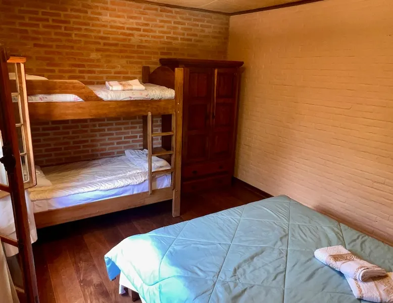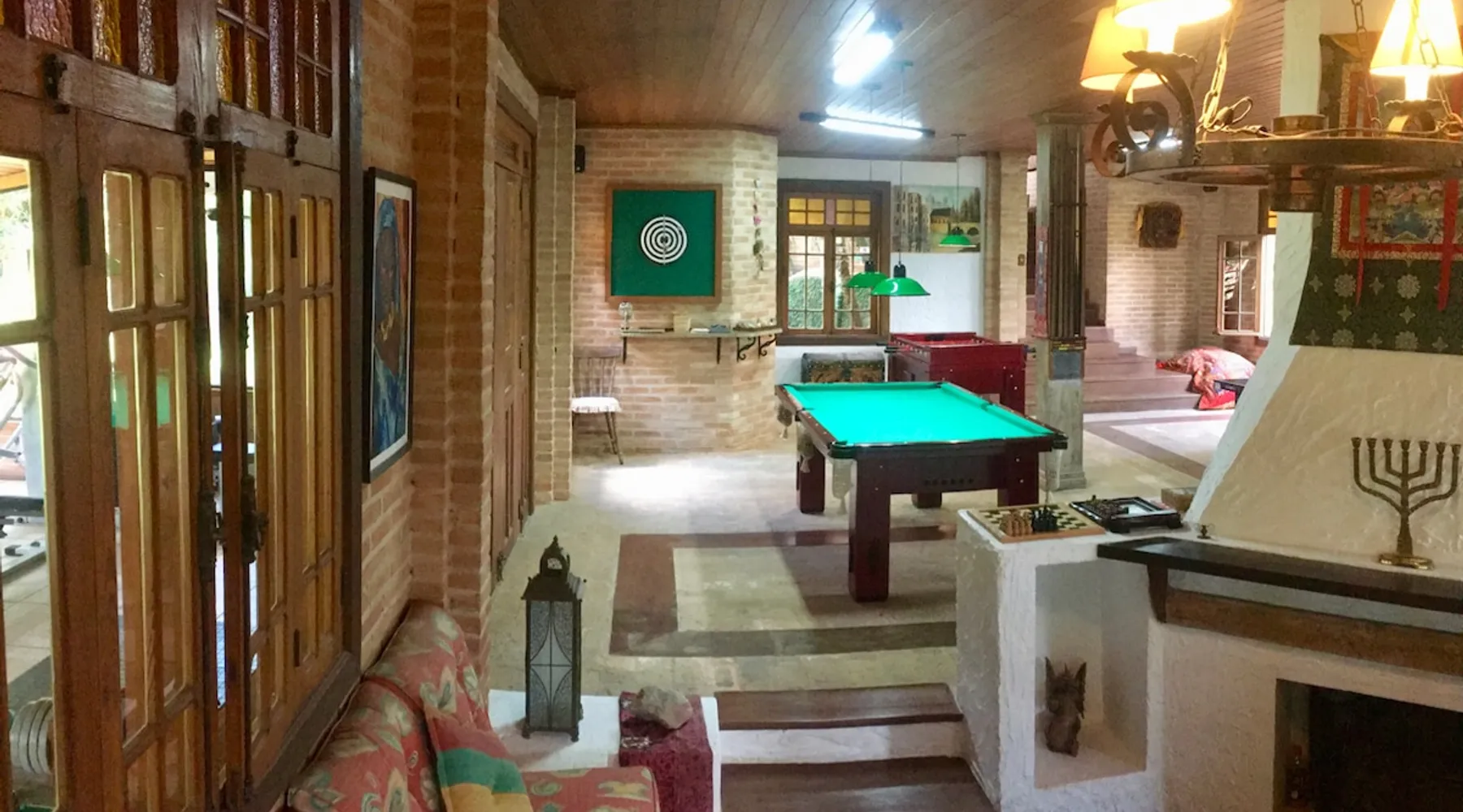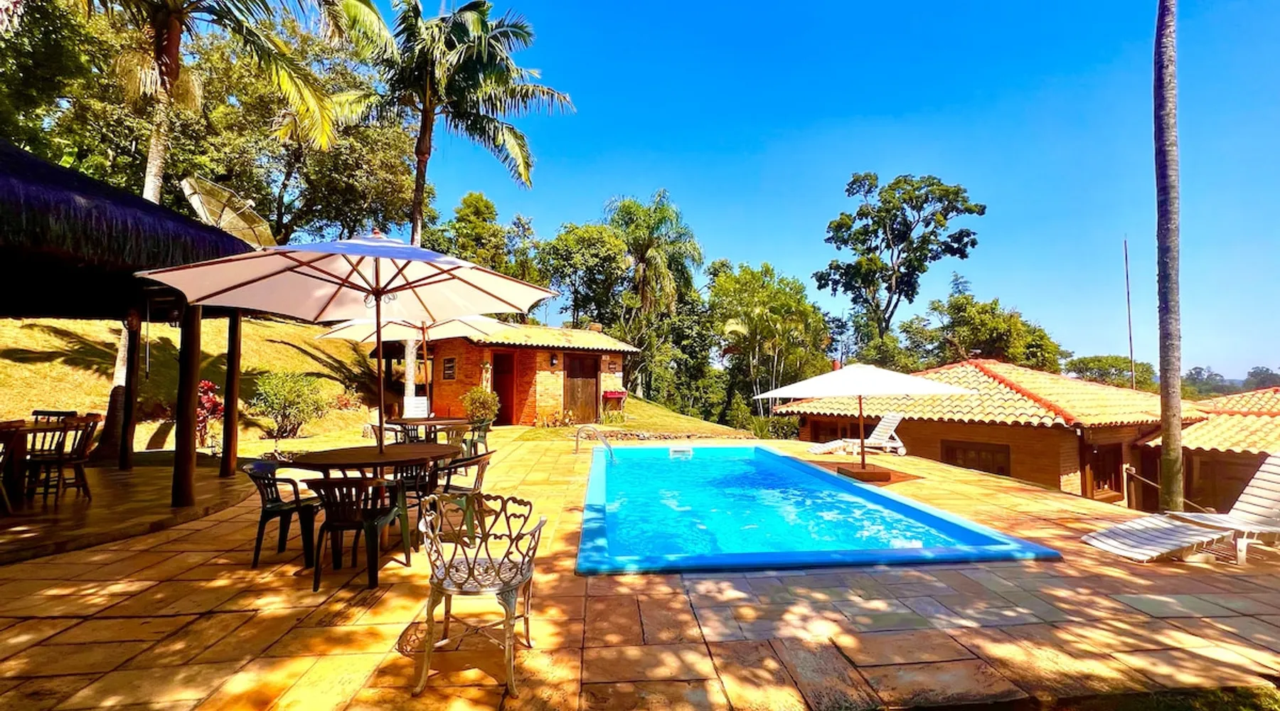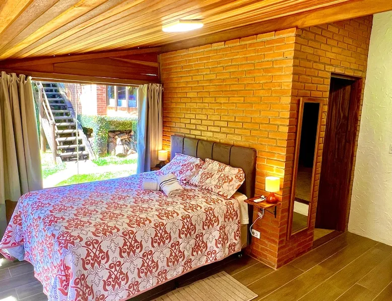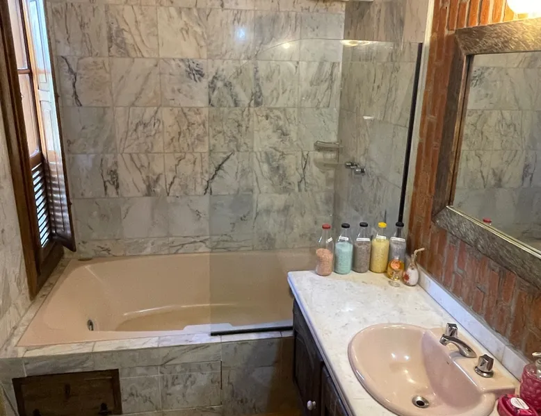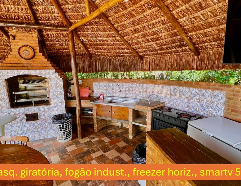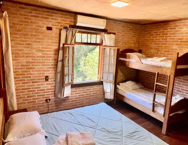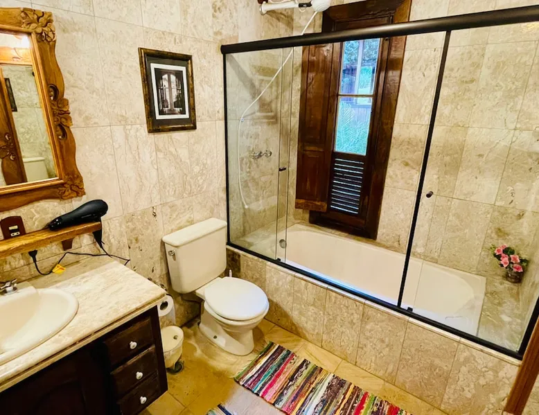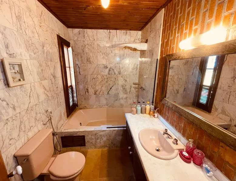 Place for unforgettable moments 45min from SP! Gated and secure condominium. 400Mbps Internet. Capacity 17 people in 5 bedrooms (3 suites), 7 bathrooms. Bed/bath linen. Gourmet kitchen and wood stove. Fireplaces. Heated and illuminated pool. Kiosk. w/ barbecue. ice mach., TV, freezer, stove, refrigerator and stereo. Illuminated ATP standard tennis court. Professional gym. Complete games room. Air cond. in all environments. Max. cleanliness. Everything in the house works perfectly. All fenced. The space Ideal place for integration with family and friends. Capacity 17 people at night and 25 during the day. Get out of the gray of the city and come have fun and rest in a beautiful farm with a farmhouse, surrounded by green and peace. As an exclusivity, we offer bed and bath linen (face and bath towels, bottom and top sheets, pillows, blankets and blankets, all very clean and sanitized), 400Mbps internet, Netflix, SkyHDTV, toilet paper, cleaning products for the house, liquid soaps in the bathroom sinks, heated pool and court lighting. For FAMILIES, FRIENDS OR EVENTS (up to 50 people and price not included on accomodation rate), it is a space with 6,500m2 (70,000ft2) encrusted in the middle of a forest reserve, all fenced and inside a very safe gated condominium, it is the ideal place to enjoy nature with family, friends, small events or even a romantic weekend. Maximum 2 medium pets up to 15kg (more pets or higher, on request). - It has all the elements of an excellent house of 420m2 (4,520ft2) of floor space with a high standard, but with the beauty of the fine rustic style. Quiet place, neighbors 100m away, give the perfect privacy for rest. - Large rooms, all with beautiful views of nature. There are 2 bedrooms with super king bed (6ft8"x6ft6") plus a bunk bed (2ft11"x6ft6") and 3 with queen bed (5ft7"x6ft6"), one of them with a bunk bed. Of the 5 bedrooms, 3 are suites, one with a 600-liter Jacuzzi whirlpool. - Kitchen with all the utensils of a good modern kitchen (plates, glasses, cups, cutlery, trays, molds, pans, pressure cookers, sandwich maker, toaster, orange juicer, thermoses, Nespresso coffee maker, Italian coffee maker, Japanese rice cooker, blender, dishwasher, mixer, electric oven, ice water filter, duplex refrigerator, 5-burner cooktop, 2 gas ovens, microwave, airfryer, complete fondue rechaud, sukiyaki pan, bread maker, etc.). - We have a crib and bathtub for babies. - The games room has ambient sound, table tennis, snooker, foosball, chess, dart and a beautiful fireplace room. - The gym is professional and complete, has a bathroom with shower, large Queen's electronic treadmill, digital exercise bike and elliptical, Queen's weight station with 3 towers, electronic shaker, smartTV with Sky and internet, ambient sound, plates, weights, mats, drinking fountain and air conditioning. - The tennis court is ATP standard, 10,000W metallic steam lighting (does not dazzle), fast floor with rubber cushioning, with 2 tables, 4 chairs and 2 umbrellas. We provide new tennis rackets and we have ball tubes for sale. Both the gym and the court are inside the house All TVs are HD SmartTV's with SkyHDTV, Netflix, Youtube etc. - The water that supplies the farm is artezian well mineral and tri-filtered. This water supplies the pool, which is heated between 27-28C (80-83F) all year round. For emergencies there is a power generator. - The entrance gate is automatic. Video security with 10 external HD and infrared cameras 50 meters, via satellite and 4G. Direct intrusion alarm system with the police. Although we are in the middle of a forest reserve, we make a point of keeping the entire house and other amenities absolutely clean, sanitized and fumigated. - The land is large, 6,500m2, all fenced and has two houses, the one in this ad, with 420m2 and the old guest house where I live with my wife. The two are distant from each other and completely independent in everything. We are always available to help with any need of our guests. Guest access The location is great, access is via the Castello Branco Highway, near km 58. From Alphaville/Barueri it is 39km or 35min and from São Paulo, 60km or 45 min. The entrance is on a paved road and from the entrance to the inside the streets are dirt, but well maintained. From the entrance to the house it is 700m, any car can get here without problems. The option not to pave is for ecological reasons. The farm is all well fenced, preventing the intrusion of low wild animals or the exit of pets. Other things to note A place of special energy for those who enjoy contact with nature and a lot of comfort, exclusivity and privacy. For COMPANIES, ideal place for events up to 50 people (price to be quoted from 20 people). Maximum 2 medium pets up to 15kg per stay (more pets or larger, on request) Due to the topology, the place is NOT the most suitable for people with mobility limitations.