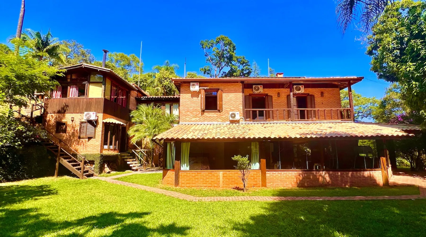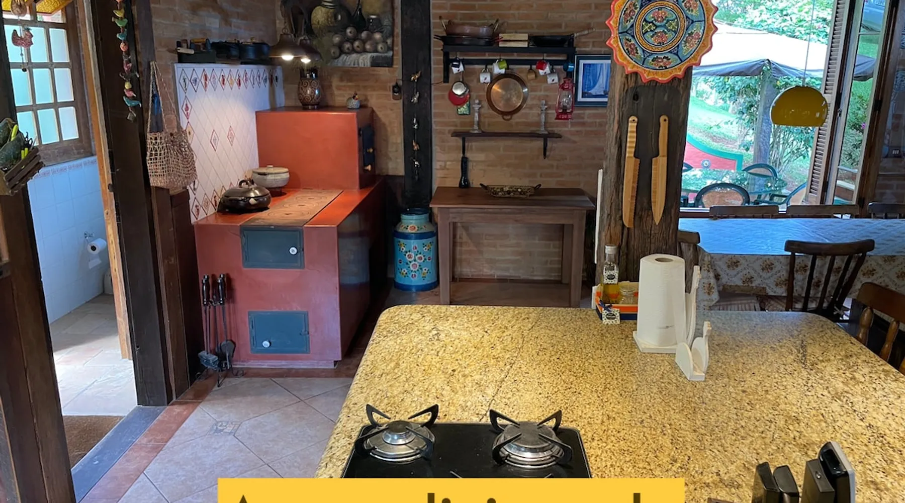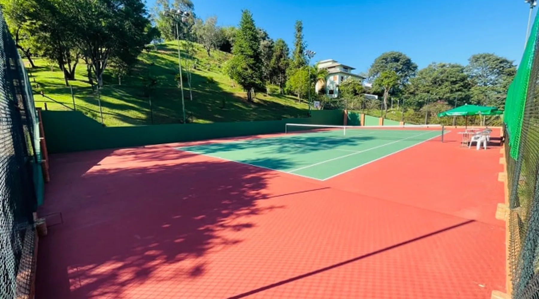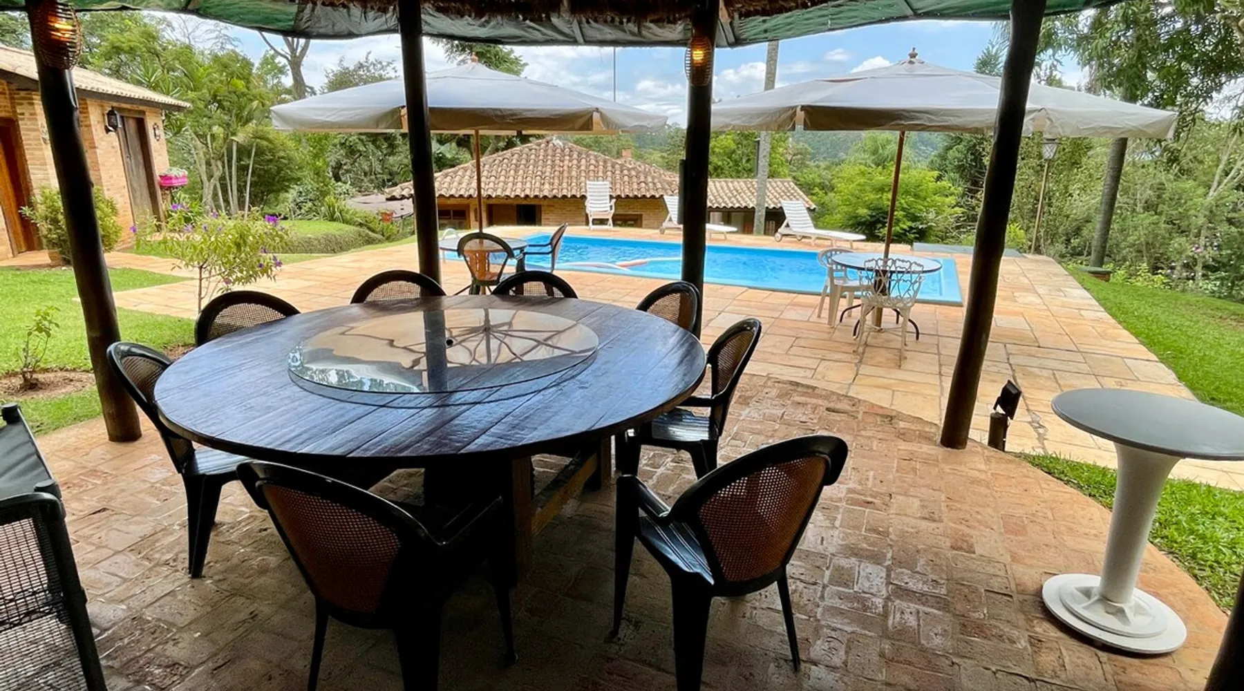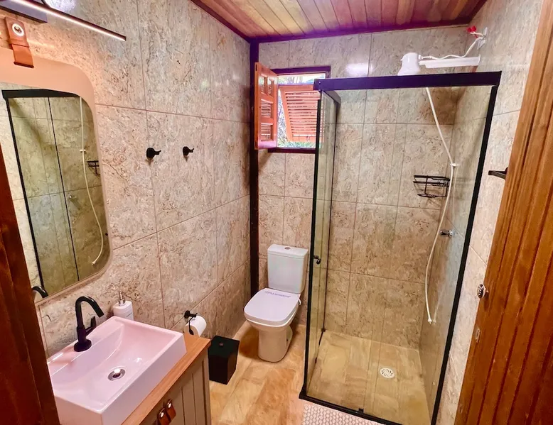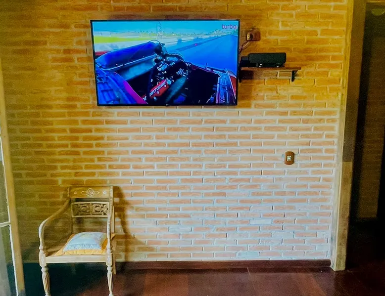 Place for unforgettable moments 45min from SP! Gated and secure condominium. 400Mbps Internet. Capacity 17 people in 5 bedrooms (3 suites), 7 bathrooms. Bed/bath linen. Gourmet kitchen and wood stove. Fireplaces. Heated and illuminated pool. Kiosk. w/ barbecue. ice mach., TV, freezer, stove, refrigerator and stereo. Illuminated ATP standard tennis court. Professional gym. Complete games room. Air cond. in all environments. Max. cleanliness. Everything in the house works perfectly. All fenced. The space Ideal place for integration with family and friends. Capacity 17 people at night and 25 during the day. Get out of the gray of the city and come have fun and rest in a beautiful farm with a farmhouse, surrounded by green and peace. As an exclusivity, we offer bed and bath linen (face and bath towels, bottom and top sheets, pillows, blankets and blankets, all very clean and sanitized), 400Mbps internet, Netflix, SkyHDTV, toilet paper, cleaning products for the house, liquid soaps in the bathroom sinks, heated pool and court lighting. For FAMILIES, FRIENDS OR EVENTS (up to 50 people and price not included on accomodation rate), it is a space with 6,500m2 (70,000ft2) encrusted in the middle of a forest reserve, all fenced and inside a very safe gated condominium, it is the ideal place to enjoy nature with family, friends, small events or even a romantic weekend. Maximum 2 medium pets up to 15kg (more pets or higher, on request). - It has all the elements of an excellent house of 420m2 (4,520ft2) of floor space with a high standard, but with the beauty of the fine rustic style. Quiet place, neighbors 100m away, give the perfect privacy for rest. - Large rooms, all with beautiful views of nature. There are 2 bedrooms with super king bed (6ft8"x6ft6") plus a bunk bed (2ft11"x6ft6") and 3 with queen bed (5ft7"x6ft6"), one of them with a bunk bed. Of the 5 bedrooms, 3 are suites, one with a 600-liter Jacuzzi whirlpool. - Kitchen with all the utensils of a good modern kitchen (plates, glasses, cups, cutlery, trays, molds, pans, pressure cookers, sandwich maker, toaster, orange juicer, thermoses, Nespresso coffee maker, Italian coffee maker, Japanese rice cooker, blender, dishwasher, mixer, electric oven, ice water filter, duplex refrigerator, 5-burner cooktop, 2 gas ovens, microwave, airfryer, complete fondue rechaud, sukiyaki pan, bread maker, etc.). - We have a crib and bathtub for babies. - The games room has ambient sound, table tennis, snooker, foosball, chess, dart and a beautiful fireplace room. - The gym is professional and complete, has a bathroom with shower, large Queen's electronic treadmill, digital exercise bike and elliptical, Queen's weight station with 3 towers, electronic shaker, smartTV with Sky and internet, ambient sound, plates, weights, mats, drinking fountain and air conditioning. - The tennis court is ATP standard, 10,000W metallic steam lighting (does not dazzle), fast floor with rubber cushioning, with 2 tables, 4 chairs and 2 umbrellas. We provide new tennis rackets and we have ball tubes for sale. Both the gym and the court are inside the house All TVs are HD SmartTV's with SkyHDTV, Netflix, Youtube etc. - The water that supplies the farm is artezian well mineral and tri-filtered. This water supplies the pool, which is heated between 27-28C (80-83F) all year round. For emergencies there is a power generator. - The entrance gate is automatic. Video security with 10 external HD and infrared cameras 50 meters, via satellite and 4G. Direct intrusion alarm system with the police. Although we are in the middle of a forest reserve, we make a point of keeping the entire house and other amenities absolutely clean, sanitized and fumigated. - The land is large, 6,500m2, all fenced and has two houses, the one in this ad, with 420m2 and the old guest house where I live with my wife. The two are distant from each other and completely independent in everything. We are always available to help with any need of our guests. Guest access The location is great, access is via the Castello Branco Highway, near km 58. From Alphaville/Barueri it is 39km or 35min and from São Paulo, 60km or 45 min. The entrance is on a paved road and from the entrance to the inside the streets are dirt, but well maintained. From the entrance to the house it is 700m, any car can get here without problems. The option not to pave is for ecological reasons. The farm is all well fenced, preventing the intrusion of low wild animals or the exit of pets. Other things to note A place of special energy for those who enjoy contact with nature and a lot of comfort, exclusivity and privacy. For COMPANIES, ideal place for events up to 50 people (price to be quoted from 20 people). Maximum 2 medium pets up to 15kg per stay (more pets or larger, on request) Due to the topology, the place is NOT the most suitable for people with mobility limitations.