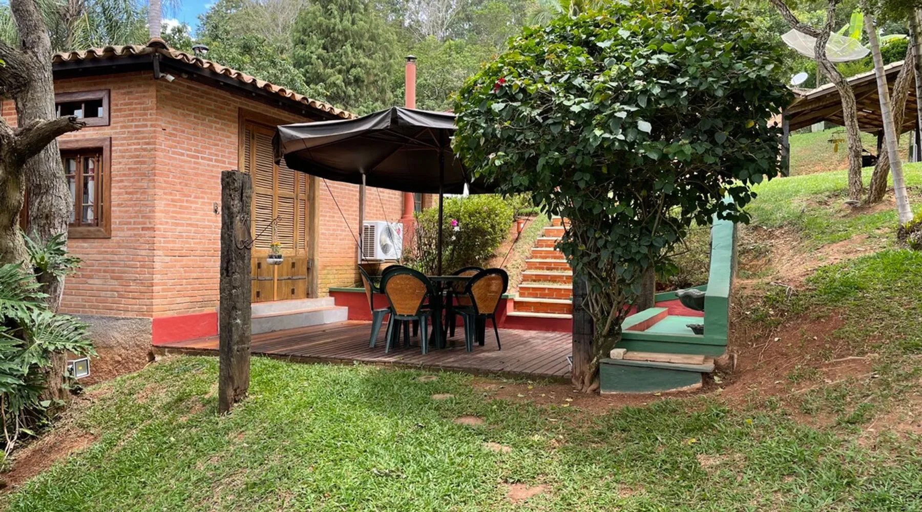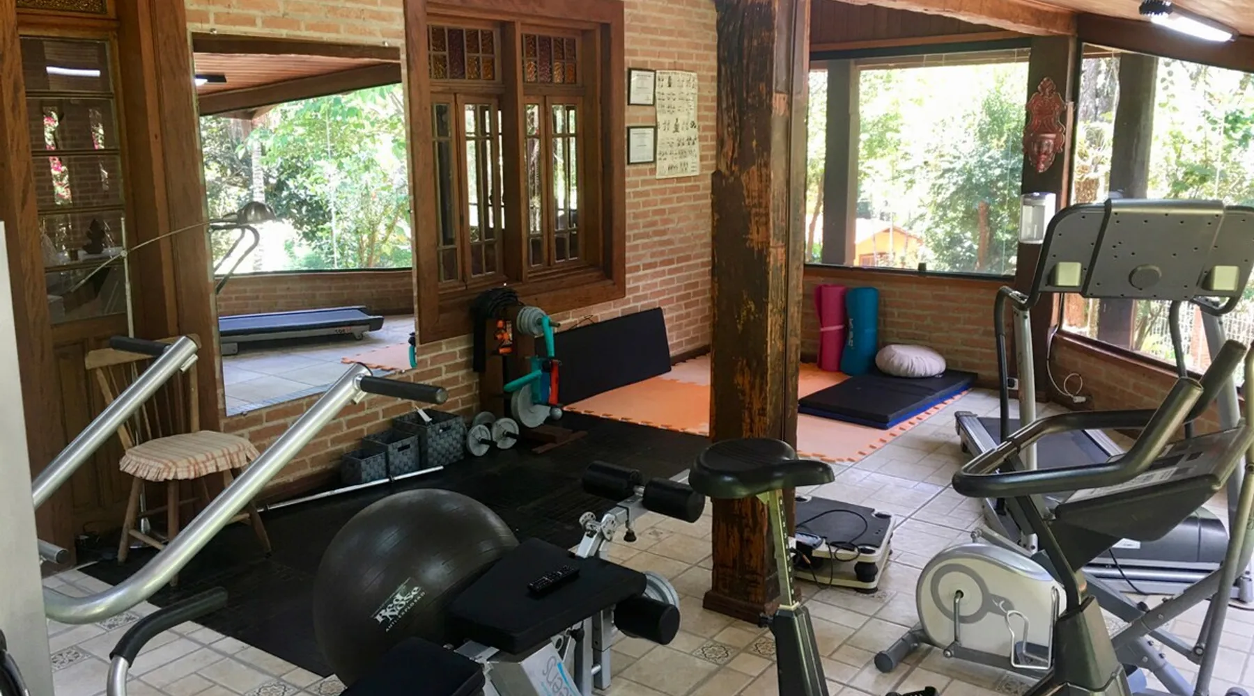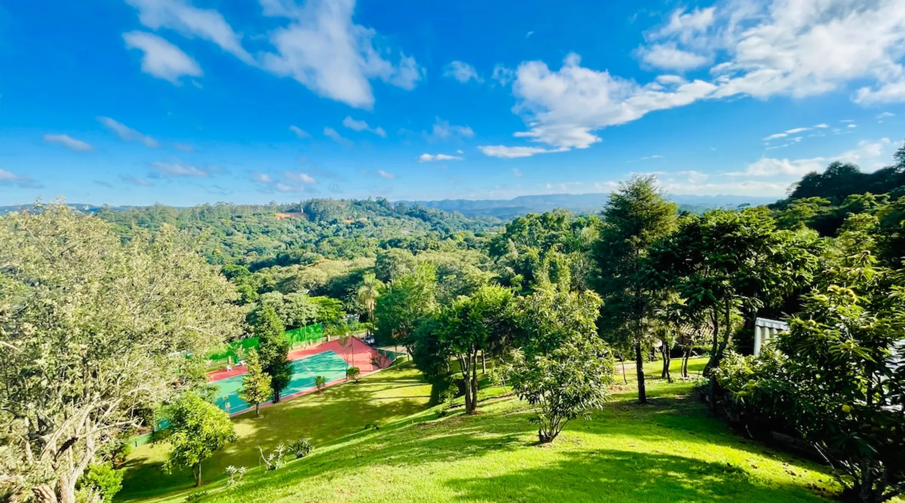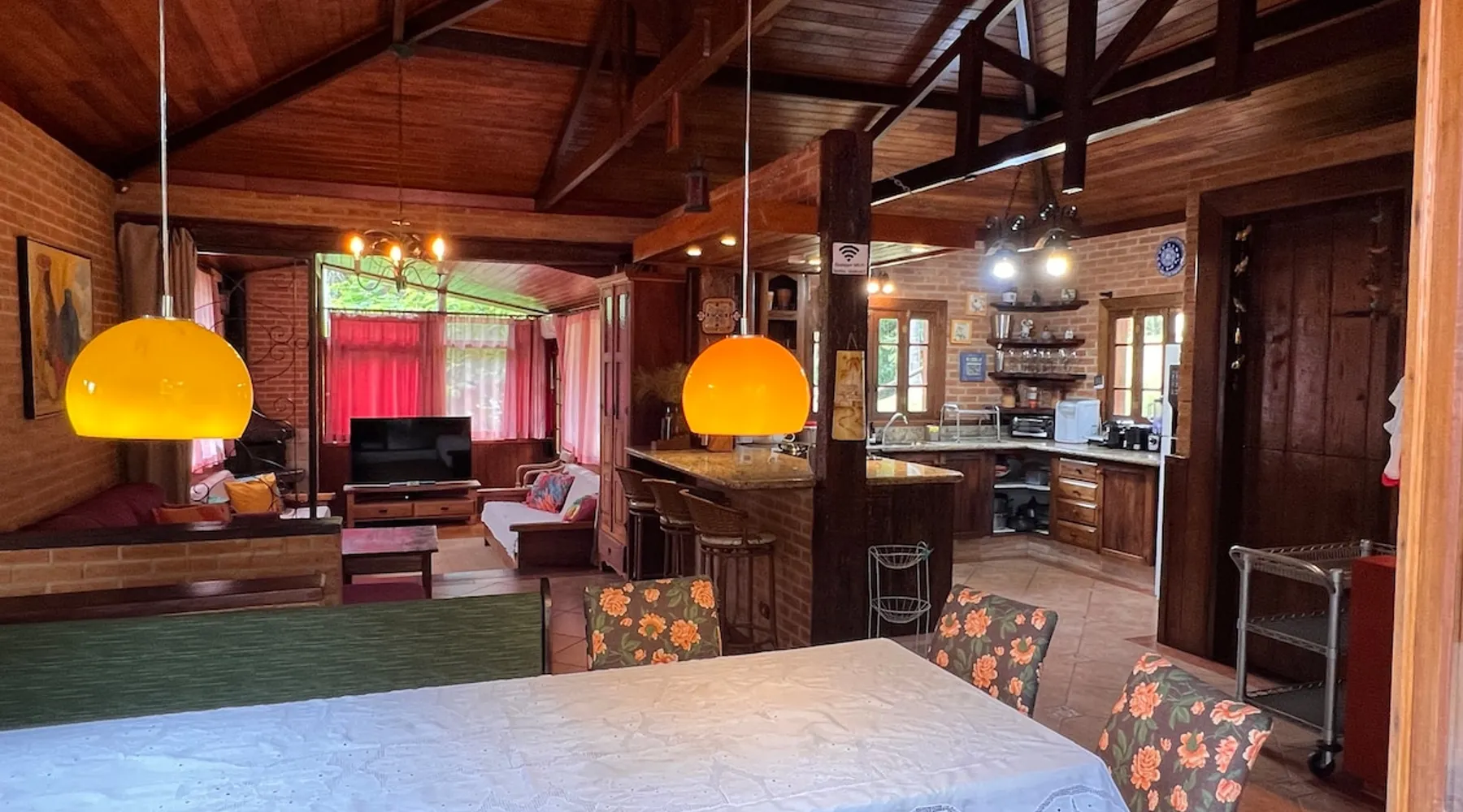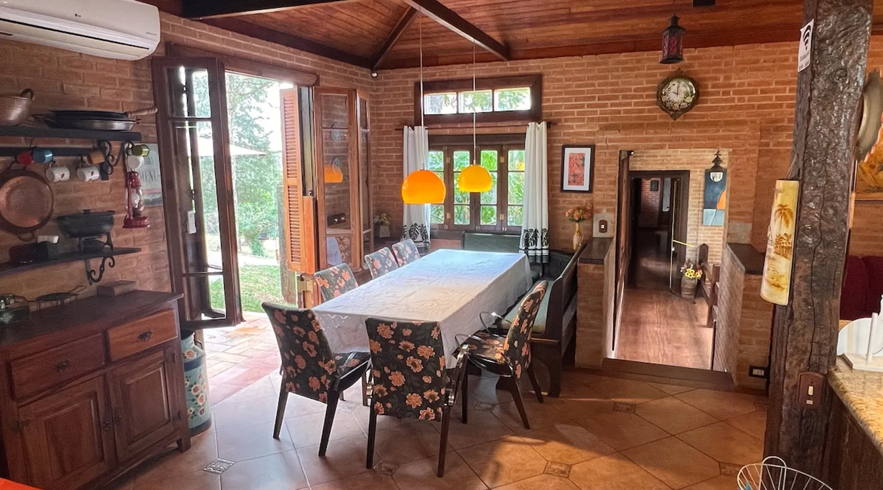 Place for unforgettable moments 45min from SP! Gated and secure condominium. 400Mbps Internet. Capacity 17 people in 5 bedrooms (3 suites), 7 bathrooms. Bed/bath linen. Gourmet kitchen and wood stove. Fireplaces. Heated and illuminated pool. Kiosk. w/ barbecue. ice mach., TV, freezer, stove, refrigerator and stereo. Illuminated ATP standard tennis court. Professional gym. Complete games room. Air cond. in all environments. Max. cleanliness. Everything in the house works perfectly. All fenced. The space Ideal place for integration with family and friends. Capacity 17 people at night and 25 during the day. Get out of the gray of the city and come have fun and rest in a beautiful farm with a farmhouse, surrounded by green and peace. As an exclusivity, we offer bed and bath linen (face and bath towels, bottom and top sheets, pillows, blankets and blankets, all very clean and sanitized), 400Mbps internet, Netflix, SkyHDTV, toilet paper, cleaning products for the house, liquid soaps in the bathroom sinks, heated pool and court lighting. For FAMILIES, FRIENDS OR EVENTS (up to 50 people and price not included on accomodation rate), it is a space with 6,500m2 (70,000ft2) encrusted in the middle of a forest reserve, all fenced and inside a very safe gated condominium, it is the ideal place to enjoy nature with family, friends, small events or even a romantic weekend. Maximum 2 medium pets up to 15kg (more pets or higher, on request). - It has all the elements of an excellent house of 420m2 (4,520ft2) of floor space with a high standard, but with the beauty of the fine rustic style. Quiet place, neighbors 100m away, give the perfect privacy for rest. - Large rooms, all with beautiful views of nature. There are 2 bedrooms with super king bed (6ft8"x6ft6") plus a bunk bed (2ft11"x6ft6") and 3 with queen bed (5ft7"x6ft6"), one of them with a bunk bed. Of the 5 bedrooms, 3 are suites, one with a 600-liter Jacuzzi whirlpool. - Kitchen with all the utensils of a good modern kitchen (plates, glasses, cups, cutlery, trays, molds, pans, pressure cookers, sandwich maker, toaster, orange juicer, thermoses, Nespresso coffee maker, Italian coffee maker, Japanese rice cooker, blender, dishwasher, mixer, electric oven, ice water filter, duplex refrigerator, 5-burner cooktop, 2 gas ovens, microwave, airfryer, complete fondue rechaud, sukiyaki pan, bread maker, etc.). - We have a crib and bathtub for babies. - The games room has ambient sound, table tennis, snooker, foosball, chess, dart and a beautiful fireplace room. - The gym is professional and complete, has a bathroom with shower, large Queen's electronic treadmill, digital exercise bike and elliptical, Queen's weight station with 3 towers, electronic shaker, smartTV with Sky and internet, ambient sound, plates, weights, mats, drinking fountain and air conditioning. - The tennis court is ATP standard, 10,000W metallic steam lighting (does not dazzle), fast floor with rubber cushioning, with 2 tables, 4 chairs and 2 umbrellas. We provide new tennis rackets and we have ball tubes for sale. Both the gym and the court are inside the house All TVs are HD SmartTV's with SkyHDTV, Netflix, Youtube etc. - The water that supplies the farm is artezian well mineral and tri-filtered. This water supplies the pool, which is heated between 27-28C (80-83F) all year round. For emergencies there is a power generator. - The entrance gate is automatic. Video security with 10 external HD and infrared cameras 50 meters, via satellite and 4G. Direct intrusion alarm system with the police. Although we are in the middle of a forest reserve, we make a point of keeping the entire house and other amenities absolutely clean, sanitized and fumigated. - The land is large, 6,500m2, all fenced and has two houses, the one in this ad, with 420m2 and the old guest house where I live with my wife. The two are distant from each other and completely independent in everything. We are always available to help with any need of our guests. Guest access The location is great, access is via the Castello Branco Highway, near km 58. From Alphaville/Barueri it is 39km or 35min and from São Paulo, 60km or 45 min. The entrance is on a paved road and from the entrance to the inside the streets are dirt, but well maintained. From the entrance to the house it is 700m, any car can get here without problems. The option not to pave is for ecological reasons. The farm is all well fenced, preventing the intrusion of low wild animals or the exit of pets. Other things to note A place of special energy for those who enjoy contact with nature and a lot of comfort, exclusivity and privacy. For COMPANIES, ideal place for events up to 50 people (price to be quoted from 20 people). Maximum 2 medium pets up to 15kg per stay (more pets or larger, on request) Due to the topology, the place is NOT the most suitable for people with mobility limitations.