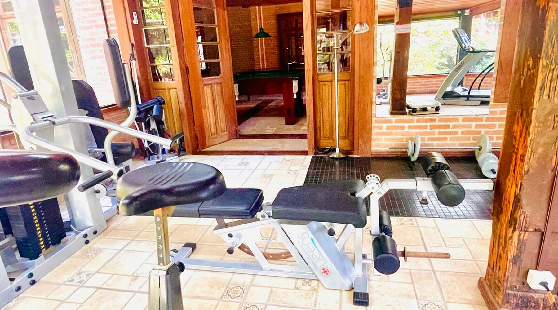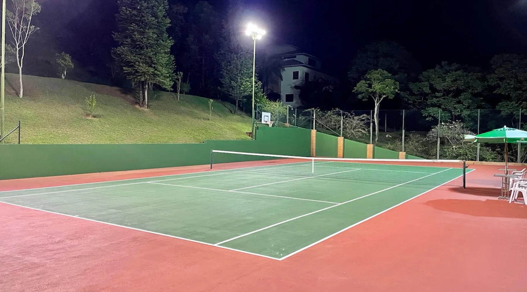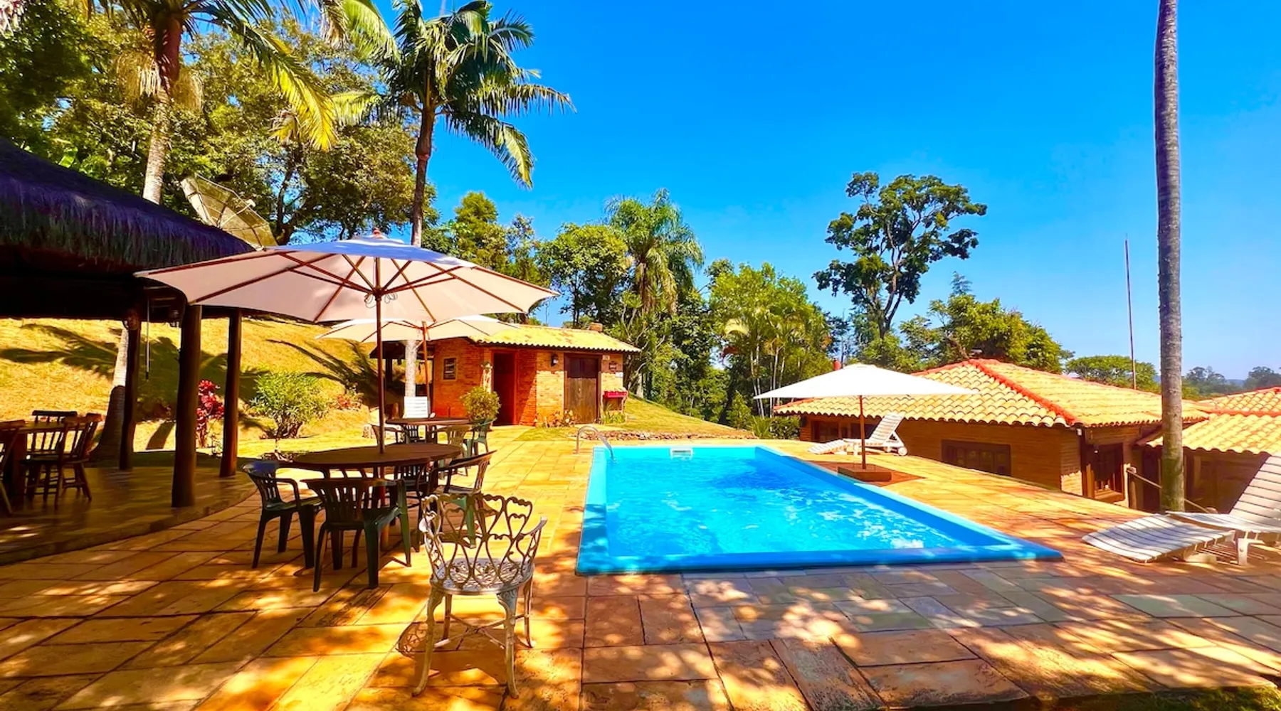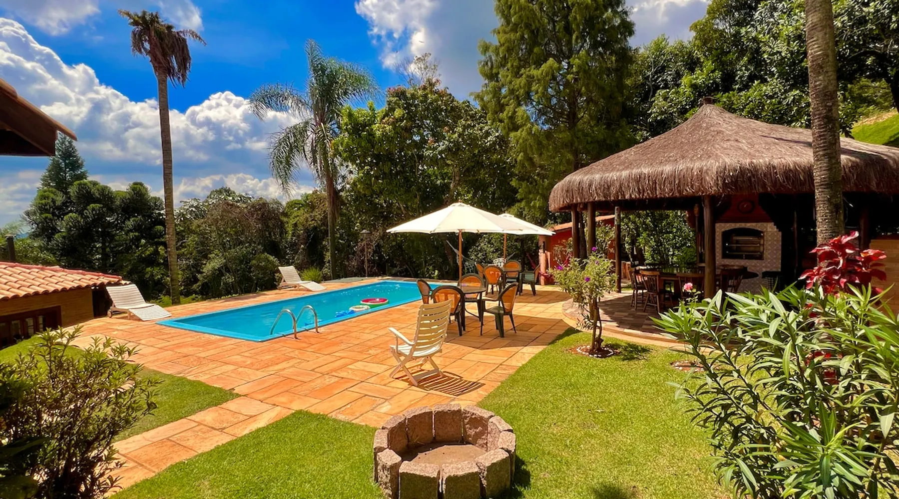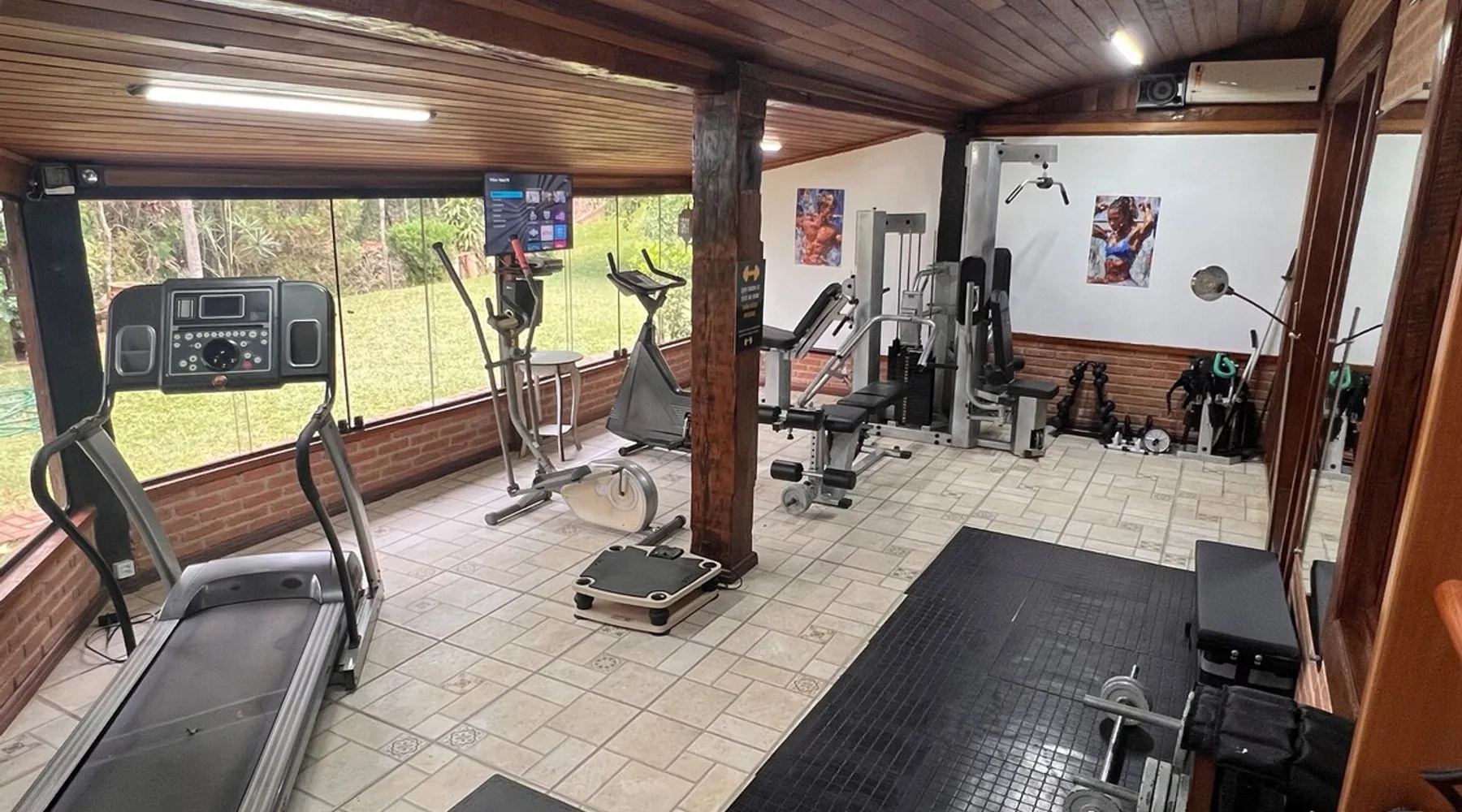 Place for unforgettable moments 45min from SP! Gated and secure condominium. 400Mbps Internet. Capacity 17 people in 5 bedrooms (3 suites), 7 bathrooms. Bed/bath linen. Gourmet kitchen and wood stove. Fireplaces. Heated and illuminated pool. Kiosk. w/ barbecue. ice mach., TV, freezer, stove, refrigerator and stereo. Illuminated ATP standard tennis court. Professional gym. Complete games room. Air cond. in all environments. Max. cleanliness. Everything in the house works perfectly. All fenced. The space Ideal place for integration with family and friends. Capacity 17 people at night and 25 during the day. Get out of the gray of the city and come have fun and rest in a beautiful farm with a farmhouse, surrounded by green and peace. As an exclusivity, we offer bed and bath linen (face and bath towels, bottom and top sheets, pillows, blankets and blankets, all very clean and sanitized), 400Mbps internet, Netflix, SkyHDTV, toilet paper, cleaning products for the house, liquid soaps in the bathroom sinks, heated pool and court lighting. For FAMILIES, FRIENDS OR EVENTS (up to 50 people and price not included on accomodation rate), it is a space with 6,500m2 (70,000ft2) encrusted in the middle of a forest reserve, all fenced and inside a very safe gated condominium, it is the ideal place to enjoy nature with family, friends, small events or even a romantic weekend. Maximum 2 medium pets up to 15kg (more pets or higher, on request). - It has all the elements of an excellent house of 420m2 (4,520ft2) of floor space with a high standard, but with the beauty of the fine rustic style. Quiet place, neighbors 100m away, give the perfect privacy for rest. - Large rooms, all with beautiful views of nature. There are 2 bedrooms with super king bed (6ft8"x6ft6") plus a bunk bed (2ft11"x6ft6") and 3 with queen bed (5ft7"x6ft6"), one of them with a bunk bed. Of the 5 bedrooms, 3 are suites, one with a 600-liter Jacuzzi whirlpool. - Kitchen with all the utensils of a good modern kitchen (plates, glasses, cups, cutlery, trays, molds, pans, pressure cookers, sandwich maker, toaster, orange juicer, thermoses, Nespresso coffee maker, Italian coffee maker, Japanese rice cooker, blender, dishwasher, mixer, electric oven, ice water filter, duplex refrigerator, 5-burner cooktop, 2 gas ovens, microwave, airfryer, complete fondue rechaud, sukiyaki pan, bread maker, etc.). - We have a crib and bathtub for babies. - The games room has ambient sound, table tennis, snooker, foosball, chess, dart and a beautiful fireplace room. - The gym is professional and complete, has a bathroom with shower, large Queen's electronic treadmill, digital exercise bike and elliptical, Queen's weight station with 3 towers, electronic shaker, smartTV with Sky and internet, ambient sound, plates, weights, mats, drinking fountain and air conditioning. - The tennis court is ATP standard, 10,000W metallic steam lighting (does not dazzle), fast floor with rubber cushioning, with 2 tables, 4 chairs and 2 umbrellas. We provide new tennis rackets and we have ball tubes for sale. Both the gym and the court are inside the house All TVs are HD SmartTV's with SkyHDTV, Netflix, Youtube etc. - The water that supplies the farm is artezian well mineral and tri-filtered. This water supplies the pool, which is heated between 27-28C (80-83F) all year round. For emergencies there is a power generator. - The entrance gate is automatic. Video security with 10 external HD and infrared cameras 50 meters, via satellite and 4G. Direct intrusion alarm system with the police. Although we are in the middle of a forest reserve, we make a point of keeping the entire house and other amenities absolutely clean, sanitized and fumigated. - The land is large, 6,500m2, all fenced and has two houses, the one in this ad, with 420m2 and the old guest house where I live with my wife. The two are distant from each other and completely independent in everything. We are always available to help with any need of our guests. Guest access The location is great, access is via the Castello Branco Highway, near km 58. From Alphaville/Barueri it is 39km or 35min and from São Paulo, 60km or 45 min. The entrance is on a paved road and from the entrance to the inside the streets are dirt, but well maintained. From the entrance to the house it is 700m, any car can get here without problems. The option not to pave is for ecological reasons. The farm is all well fenced, preventing the intrusion of low wild animals or the exit of pets. Other things to note A place of special energy for those who enjoy contact with nature and a lot of comfort, exclusivity and privacy. For COMPANIES, ideal place for events up to 50 people (price to be quoted from 20 people). Maximum 2 medium pets up to 15kg per stay (more pets or larger, on request) Due to the topology, the place is NOT the most suitable for people with mobility limitations.