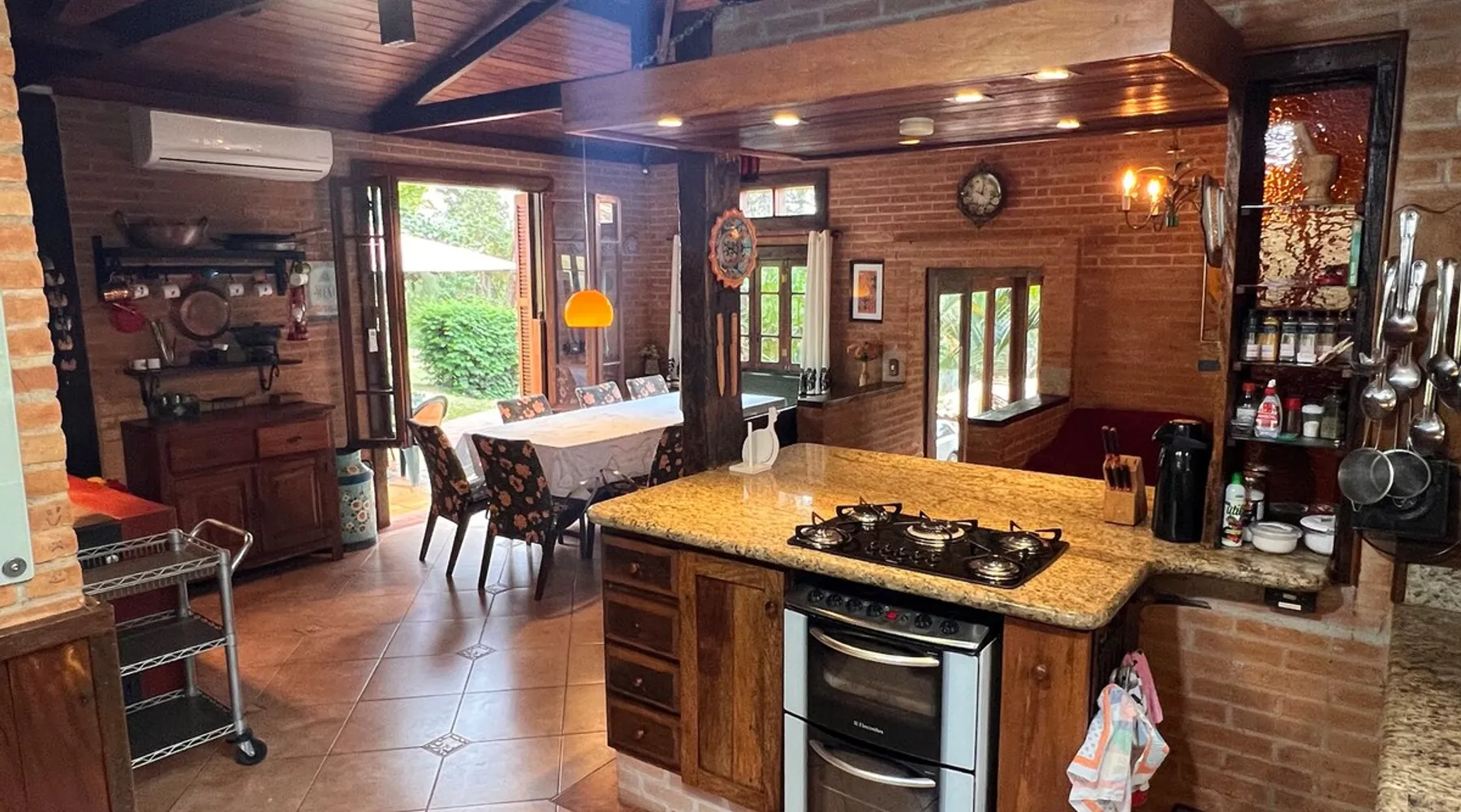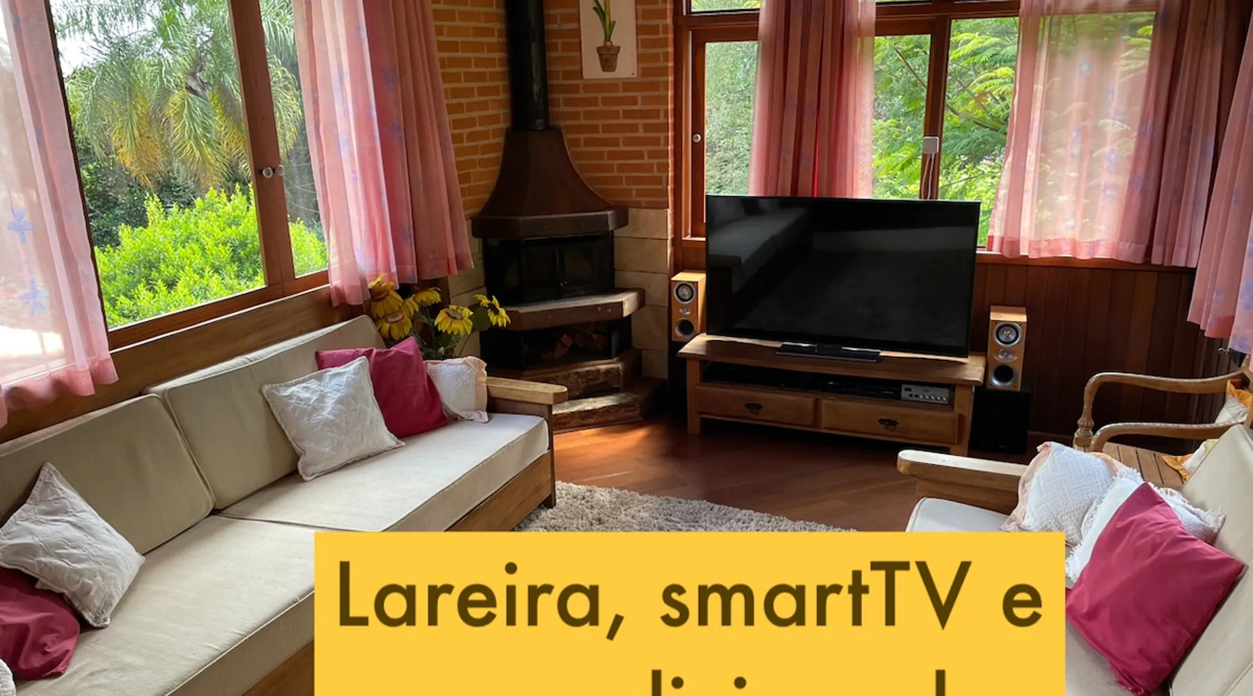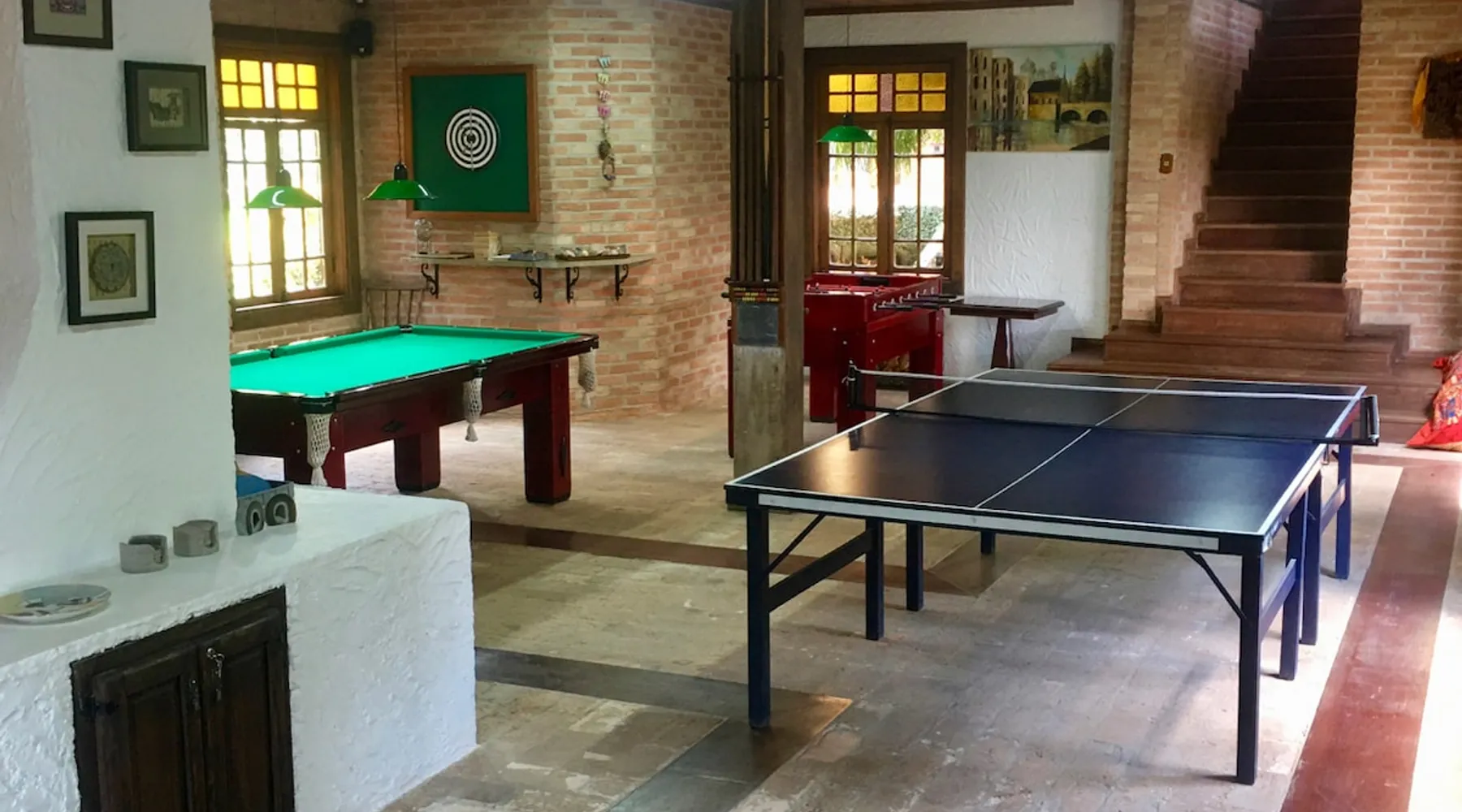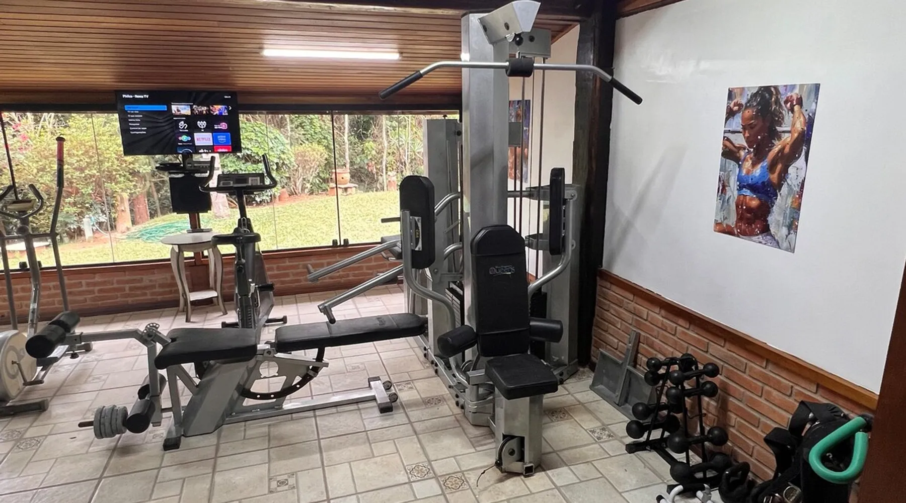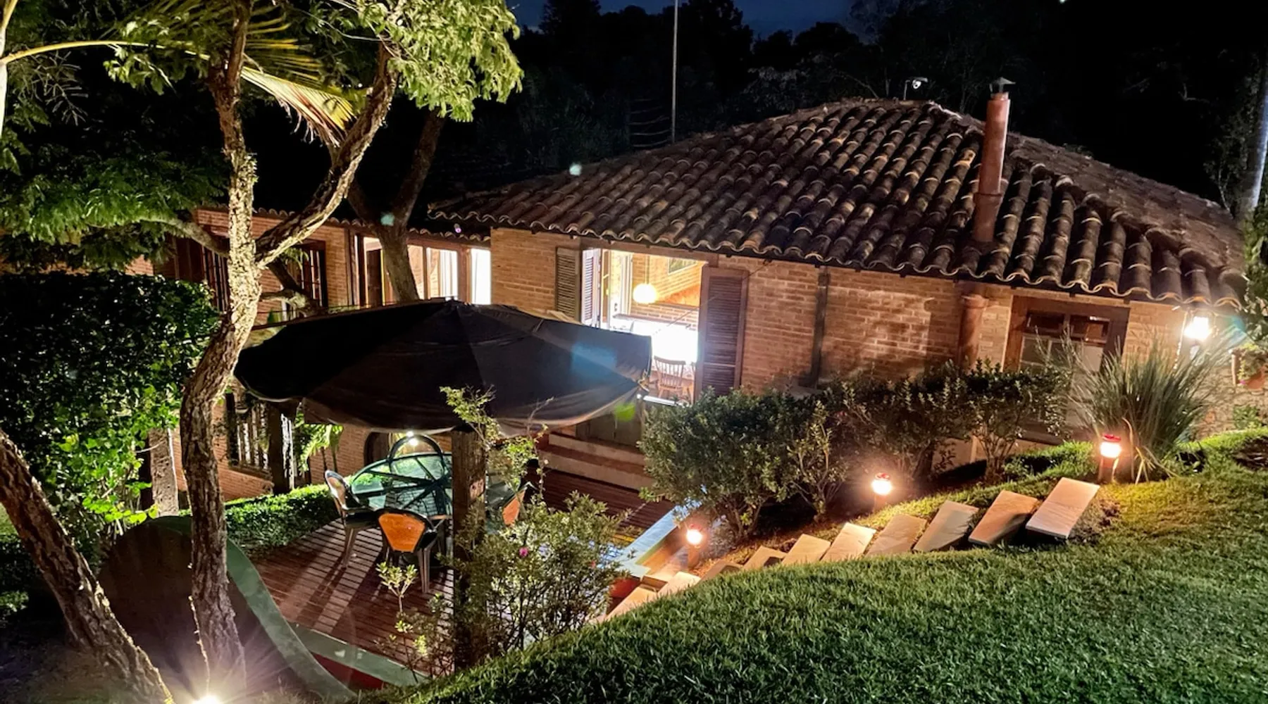 Place for unforgettable moments 45min from SP! Gated and secure condominium. 400Mbps Internet. Capacity 17 people in 5 bedrooms (3 suites), 7 bathrooms. Bed/bath linen. Gourmet kitchen and wood stove. Fireplaces. Heated and illuminated pool. Kiosk. w/ barbecue. ice mach., TV, freezer, stove, refrigerator and stereo. Illuminated ATP standard tennis court. Professional gym. Complete games room. Air cond. in all environments. Max. cleanliness. Everything in the house works perfectly. All fenced. The space Ideal place for integration with family and friends. Capacity 17 people at night and 25 during the day. Get out of the gray of the city and come have fun and rest in a beautiful farm with a farmhouse, surrounded by green and peace. As an exclusivity, we offer bed and bath linen (face and bath towels, bottom and top sheets, pillows, blankets and blankets, all very clean and sanitized), 400Mbps internet, Netflix, SkyHDTV, toilet paper, cleaning products for the house, liquid soaps in the bathroom sinks, heated pool and court lighting. For FAMILIES, FRIENDS OR EVENTS (up to 50 people and price not included on accomodation rate), it is a space with 6,500m2 (70,000ft2) encrusted in the middle of a forest reserve, all fenced and inside a very safe gated condominium, it is the ideal place to enjoy nature with family, friends, small events or even a romantic weekend. Maximum 2 medium pets up to 15kg (more pets or higher, on request). - It has all the elements of an excellent house of 420m2 (4,520ft2) of floor space with a high standard, but with the beauty of the fine rustic style. Quiet place, neighbors 100m away, give the perfect privacy for rest. - Large rooms, all with beautiful views of nature. There are 2 bedrooms with super king bed (6ft8"x6ft6") plus a bunk bed (2ft11"x6ft6") and 3 with queen bed (5ft7"x6ft6"), one of them with a bunk bed. Of the 5 bedrooms, 3 are suites, one with a 600-liter Jacuzzi whirlpool. - Kitchen with all the utensils of a good modern kitchen (plates, glasses, cups, cutlery, trays, molds, pans, pressure cookers, sandwich maker, toaster, orange juicer, thermoses, Nespresso coffee maker, Italian coffee maker, Japanese rice cooker, blender, dishwasher, mixer, electric oven, ice water filter, duplex refrigerator, 5-burner cooktop, 2 gas ovens, microwave, airfryer, complete fondue rechaud, sukiyaki pan, bread maker, etc.). - We have a crib and bathtub for babies. - The games room has ambient sound, table tennis, snooker, foosball, chess, dart and a beautiful fireplace room. - The gym is professional and complete, has a bathroom with shower, large Queen's electronic treadmill, digital exercise bike and elliptical, Queen's weight station with 3 towers, electronic shaker, smartTV with Sky and internet, ambient sound, plates, weights, mats, drinking fountain and air conditioning. - The tennis court is ATP standard, 10,000W metallic steam lighting (does not dazzle), fast floor with rubber cushioning, with 2 tables, 4 chairs and 2 umbrellas. We provide new tennis rackets and we have ball tubes for sale. Both the gym and the court are inside the house All TVs are HD SmartTV's with SkyHDTV, Netflix, Youtube etc. - The water that supplies the farm is artezian well mineral and tri-filtered. This water supplies the pool, which is heated between 27-28C (80-83F) all year round. For emergencies there is a power generator. - The entrance gate is automatic. Video security with 10 external HD and infrared cameras 50 meters, via satellite and 4G. Direct intrusion alarm system with the police. Although we are in the middle of a forest reserve, we make a point of keeping the entire house and other amenities absolutely clean, sanitized and fumigated. - The land is large, 6,500m2, all fenced and has two houses, the one in this ad, with 420m2 and the old guest house where I live with my wife. The two are distant from each other and completely independent in everything. We are always available to help with any need of our guests. Guest access The location is great, access is via the Castello Branco Highway, near km 58. From Alphaville/Barueri it is 39km or 35min and from São Paulo, 60km or 45 min. The entrance is on a paved road and from the entrance to the inside the streets are dirt, but well maintained. From the entrance to the house it is 700m, any car can get here without problems. The option not to pave is for ecological reasons. The farm is all well fenced, preventing the intrusion of low wild animals or the exit of pets. Other things to note A place of special energy for those who enjoy contact with nature and a lot of comfort, exclusivity and privacy. For COMPANIES, ideal place for events up to 50 people (price to be quoted from 20 people). Maximum 2 medium pets up to 15kg per stay (more pets or larger, on request) Due to the topology, the place is NOT the most suitable for people with mobility limitations.