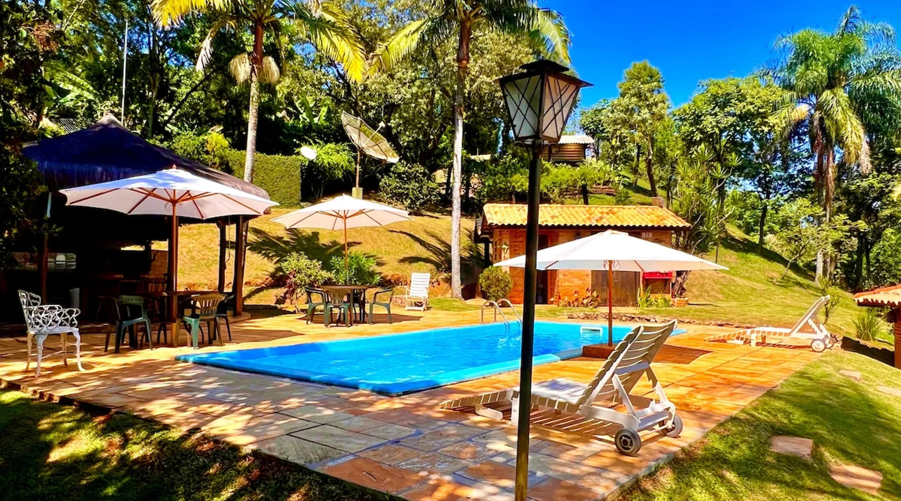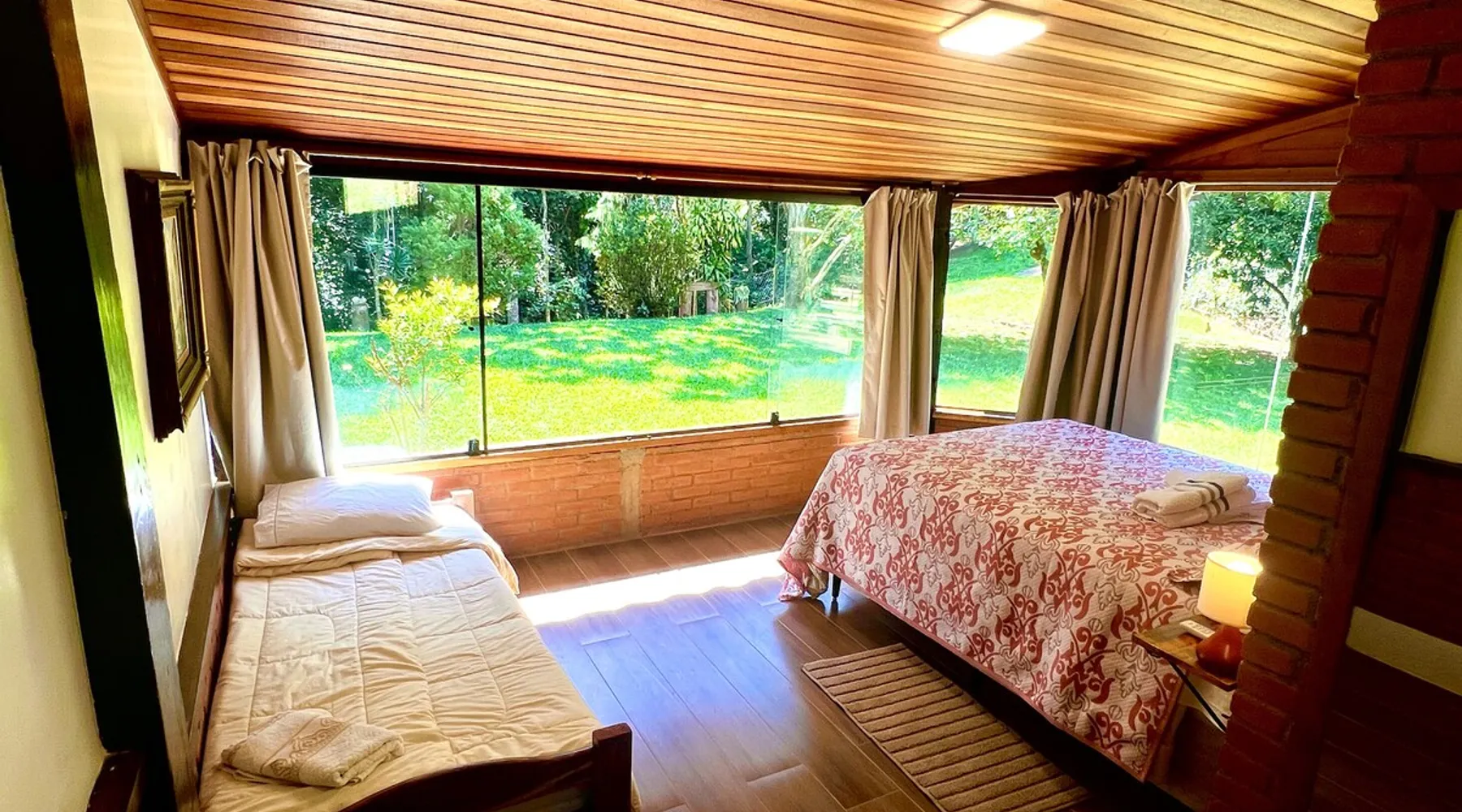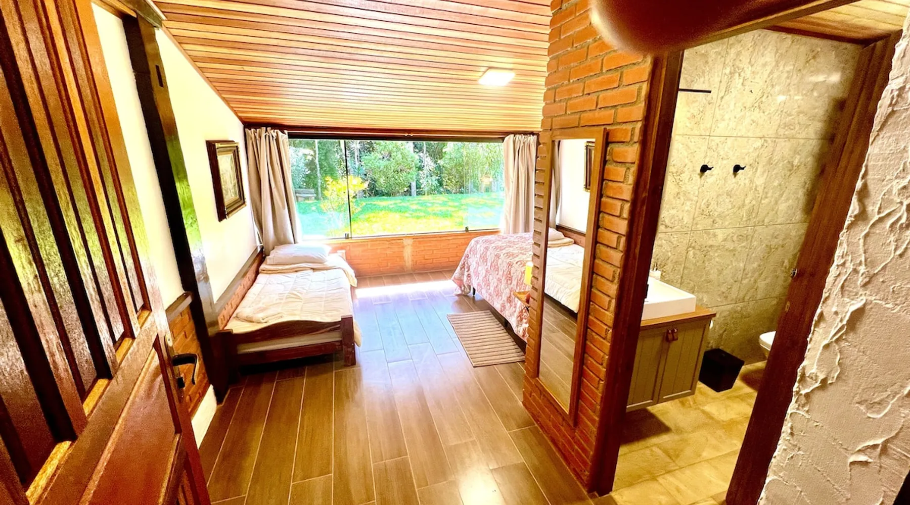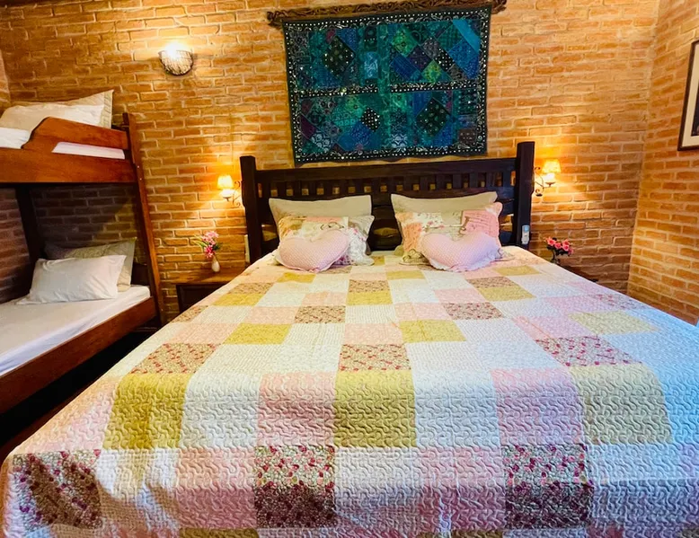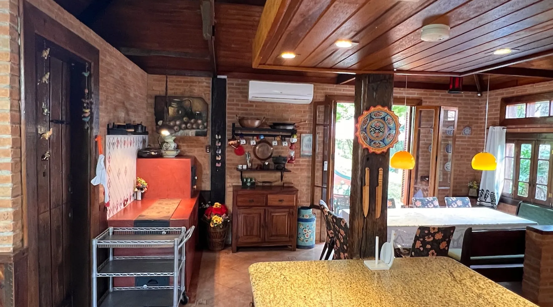 Place for unforgettable moments 45min from SP! Gated and secure condominium. 400Mbps Internet. Capacity 17 people in 5 bedrooms (3 suites), 7 bathrooms. Bed/bath linen. Gourmet kitchen and wood stove. Fireplaces. Heated and illuminated pool. Kiosk. w/ barbecue. ice mach., TV, freezer, stove, refrigerator and stereo. Illuminated ATP standard tennis court. Professional gym. Complete games room. Air cond. in all environments. Max. cleanliness. Everything in the house works perfectly. All fenced. The space Ideal place for integration with family and friends. Capacity 17 people at night and 25 during the day. Get out of the gray of the city and come have fun and rest in a beautiful farm with a farmhouse, surrounded by green and peace. As an exclusivity, we offer bed and bath linen (face and bath towels, bottom and top sheets, pillows, blankets and blankets, all very clean and sanitized), 400Mbps internet, Netflix, SkyHDTV, toilet paper, cleaning products for the house, liquid soaps in the bathroom sinks, heated pool and court lighting. For FAMILIES, FRIENDS OR EVENTS (up to 50 people and price not included on accomodation rate), it is a space with 6,500m2 (70,000ft2) encrusted in the middle of a forest reserve, all fenced and inside a very safe gated condominium, it is the ideal place to enjoy nature with family, friends, small events or even a romantic weekend. Maximum 2 medium pets up to 15kg (more pets or higher, on request). - It has all the elements of an excellent house of 420m2 (4,520ft2) of floor space with a high standard, but with the beauty of the fine rustic style. Quiet place, neighbors 100m away, give the perfect privacy for rest. - Large rooms, all with beautiful views of nature. There are 2 bedrooms with super king bed (6ft8"x6ft6") plus a bunk bed (2ft11"x6ft6") and 3 with queen bed (5ft7"x6ft6"), one of them with a bunk bed. Of the 5 bedrooms, 3 are suites, one with a 600-liter Jacuzzi whirlpool. - Kitchen with all the utensils of a good modern kitchen (plates, glasses, cups, cutlery, trays, molds, pans, pressure cookers, sandwich maker, toaster, orange juicer, thermoses, Nespresso coffee maker, Italian coffee maker, Japanese rice cooker, blender, dishwasher, mixer, electric oven, ice water filter, duplex refrigerator, 5-burner cooktop, 2 gas ovens, microwave, airfryer, complete fondue rechaud, sukiyaki pan, bread maker, etc.). - We have a crib and bathtub for babies. - The games room has ambient sound, table tennis, snooker, foosball, chess, dart and a beautiful fireplace room. - The gym is professional and complete, has a bathroom with shower, large Queen's electronic treadmill, digital exercise bike and elliptical, Queen's weight station with 3 towers, electronic shaker, smartTV with Sky and internet, ambient sound, plates, weights, mats, drinking fountain and air conditioning. - The tennis court is ATP standard, 10,000W metallic steam lighting (does not dazzle), fast floor with rubber cushioning, with 2 tables, 4 chairs and 2 umbrellas. We provide new tennis rackets and we have ball tubes for sale. Both the gym and the court are inside the house All TVs are HD SmartTV's with SkyHDTV, Netflix, Youtube etc. - The water that supplies the farm is artezian well mineral and tri-filtered. This water supplies the pool, which is heated between 27-28C (80-83F) all year round. For emergencies there is a power generator. - The entrance gate is automatic. Video security with 10 external HD and infrared cameras 50 meters, via satellite and 4G. Direct intrusion alarm system with the police. Although we are in the middle of a forest reserve, we make a point of keeping the entire house and other amenities absolutely clean, sanitized and fumigated. - The land is large, 6,500m2, all fenced and has two houses, the one in this ad, with 420m2 and the old guest house where I live with my wife. The two are distant from each other and completely independent in everything. We are always available to help with any need of our guests. Guest access The location is great, access is via the Castello Branco Highway, near km 58. From Alphaville/Barueri it is 39km or 35min and from São Paulo, 60km or 45 min. The entrance is on a paved road and from the entrance to the inside the streets are dirt, but well maintained. From the entrance to the house it is 700m, any car can get here without problems. The option not to pave is for ecological reasons. The farm is all well fenced, preventing the intrusion of low wild animals or the exit of pets. Other things to note A place of special energy for those who enjoy contact with nature and a lot of comfort, exclusivity and privacy. For COMPANIES, ideal place for events up to 50 people (price to be quoted from 20 people). Maximum 2 medium pets up to 15kg per stay (more pets or larger, on request) Due to the topology, the place is NOT the most suitable for people with mobility limitations.