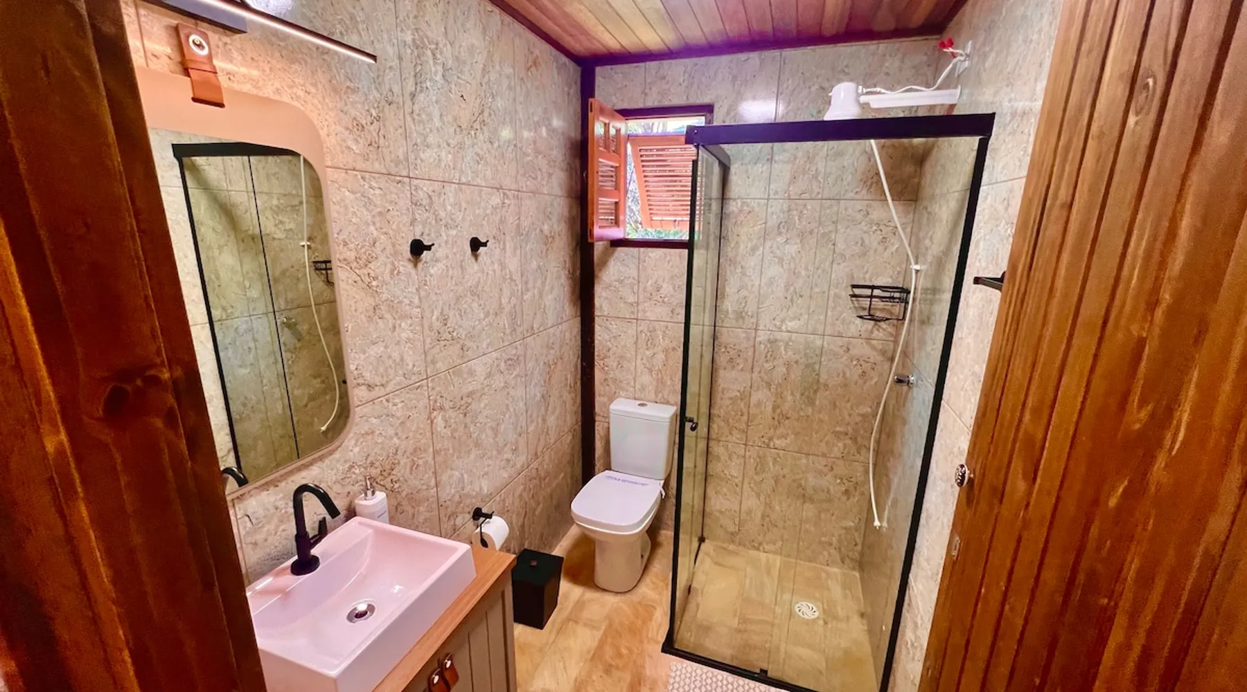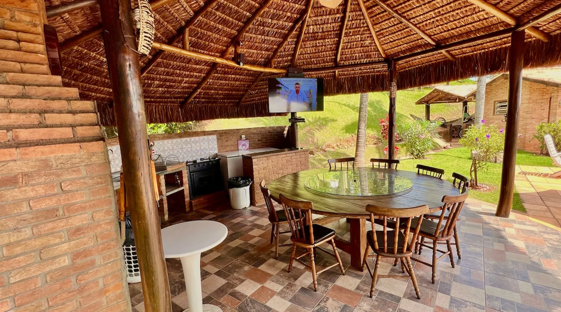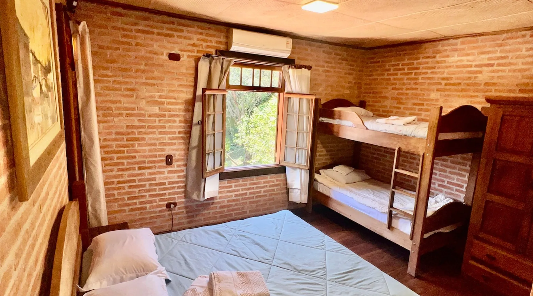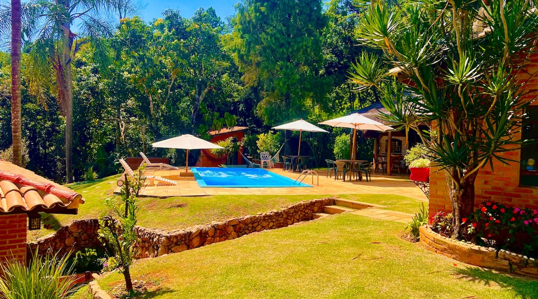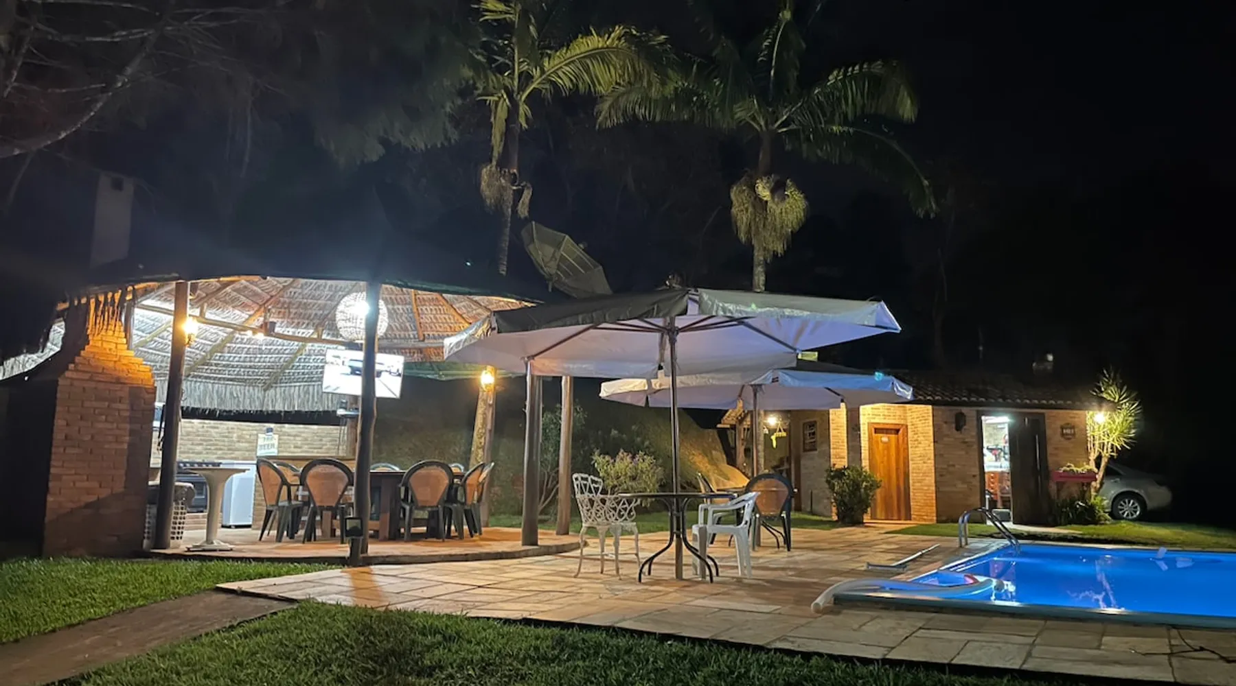 Place for unforgettable moments 45min from SP! Gated and secure condominium. 400Mbps Internet. Capacity 17 people in 5 bedrooms (3 suites), 7 bathrooms. Bed/bath linen. Gourmet kitchen and wood stove. Fireplaces. Heated and illuminated pool. Kiosk. w/ barbecue. ice mach., TV, freezer, stove, refrigerator and stereo. Illuminated ATP standard tennis court. Professional gym. Complete games room. Air cond. in all environments. Max. cleanliness. Everything in the house works perfectly. All fenced. The space Ideal place for integration with family and friends. Capacity 17 people at night and 25 during the day. Get out of the gray of the city and come have fun and rest in a beautiful farm with a farmhouse, surrounded by green and peace. As an exclusivity, we offer bed and bath linen (face and bath towels, bottom and top sheets, pillows, blankets and blankets, all very clean and sanitized), 400Mbps internet, Netflix, SkyHDTV, toilet paper, cleaning products for the house, liquid soaps in the bathroom sinks, heated pool and court lighting. For FAMILIES, FRIENDS OR EVENTS (up to 50 people and price not included on accomodation rate), it is a space with 6,500m2 (70,000ft2) encrusted in the middle of a forest reserve, all fenced and inside a very safe gated condominium, it is the ideal place to enjoy nature with family, friends, small events or even a romantic weekend. Maximum 2 medium pets up to 15kg (more pets or higher, on request). - It has all the elements of an excellent house of 420m2 (4,520ft2) of floor space with a high standard, but with the beauty of the fine rustic style. Quiet place, neighbors 100m away, give the perfect privacy for rest. - Large rooms, all with beautiful views of nature. There are 2 bedrooms with super king bed (6ft8"x6ft6") plus a bunk bed (2ft11"x6ft6") and 3 with queen bed (5ft7"x6ft6"), one of them with a bunk bed. Of the 5 bedrooms, 3 are suites, one with a 600-liter Jacuzzi whirlpool. - Kitchen with all the utensils of a good modern kitchen (plates, glasses, cups, cutlery, trays, molds, pans, pressure cookers, sandwich maker, toaster, orange juicer, thermoses, Nespresso coffee maker, Italian coffee maker, Japanese rice cooker, blender, dishwasher, mixer, electric oven, ice water filter, duplex refrigerator, 5-burner cooktop, 2 gas ovens, microwave, airfryer, complete fondue rechaud, sukiyaki pan, bread maker, etc.). - We have a crib and bathtub for babies. - The games room has ambient sound, table tennis, snooker, foosball, chess, dart and a beautiful fireplace room. - The gym is professional and complete, has a bathroom with shower, large Queen's electronic treadmill, digital exercise bike and elliptical, Queen's weight station with 3 towers, electronic shaker, smartTV with Sky and internet, ambient sound, plates, weights, mats, drinking fountain and air conditioning. - The tennis court is ATP standard, 10,000W metallic steam lighting (does not dazzle), fast floor with rubber cushioning, with 2 tables, 4 chairs and 2 umbrellas. We provide new tennis rackets and we have ball tubes for sale. Both the gym and the court are inside the house All TVs are HD SmartTV's with SkyHDTV, Netflix, Youtube etc. - The water that supplies the farm is artezian well mineral and tri-filtered. This water supplies the pool, which is heated between 27-28C (80-83F) all year round. For emergencies there is a power generator. - The entrance gate is automatic. Video security with 10 external HD and infrared cameras 50 meters, via satellite and 4G. Direct intrusion alarm system with the police. Although we are in the middle of a forest reserve, we make a point of keeping the entire house and other amenities absolutely clean, sanitized and fumigated. - The land is large, 6,500m2, all fenced and has two houses, the one in this ad, with 420m2 and the old guest house where I live with my wife. The two are distant from each other and completely independent in everything. We are always available to help with any need of our guests. Guest access The location is great, access is via the Castello Branco Highway, near km 58. From Alphaville/Barueri it is 39km or 35min and from São Paulo, 60km or 45 min. The entrance is on a paved road and from the entrance to the inside the streets are dirt, but well maintained. From the entrance to the house it is 700m, any car can get here without problems. The option not to pave is for ecological reasons. The farm is all well fenced, preventing the intrusion of low wild animals or the exit of pets. Other things to note A place of special energy for those who enjoy contact with nature and a lot of comfort, exclusivity and privacy. For COMPANIES, ideal place for events up to 50 people (price to be quoted from 20 people). Maximum 2 medium pets up to 15kg per stay (more pets or larger, on request) Due to the topology, the place is NOT the most suitable for people with mobility limitations.