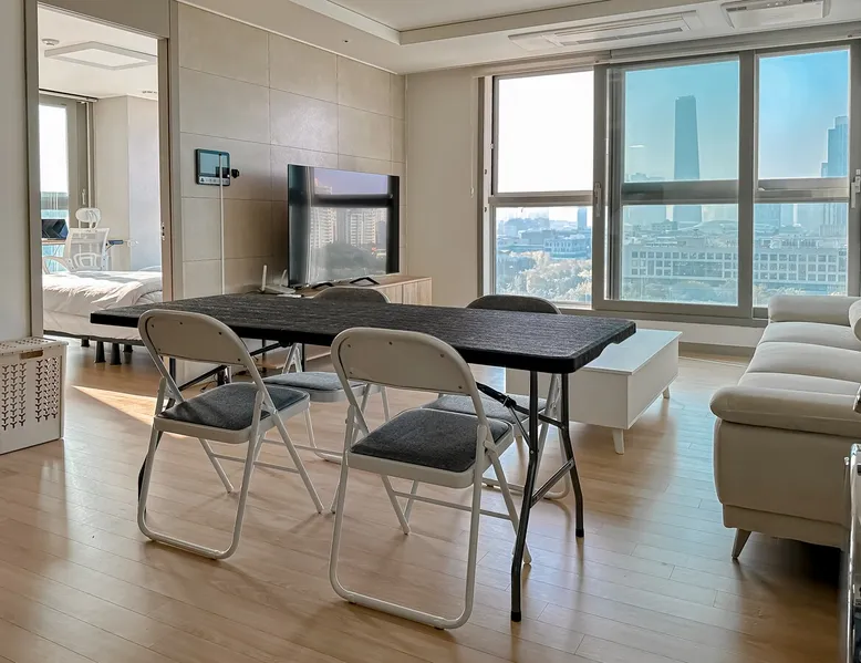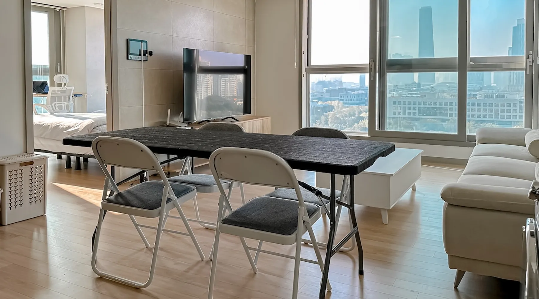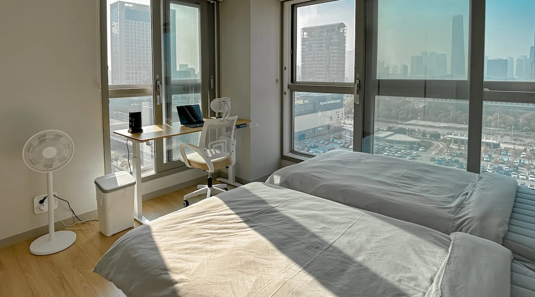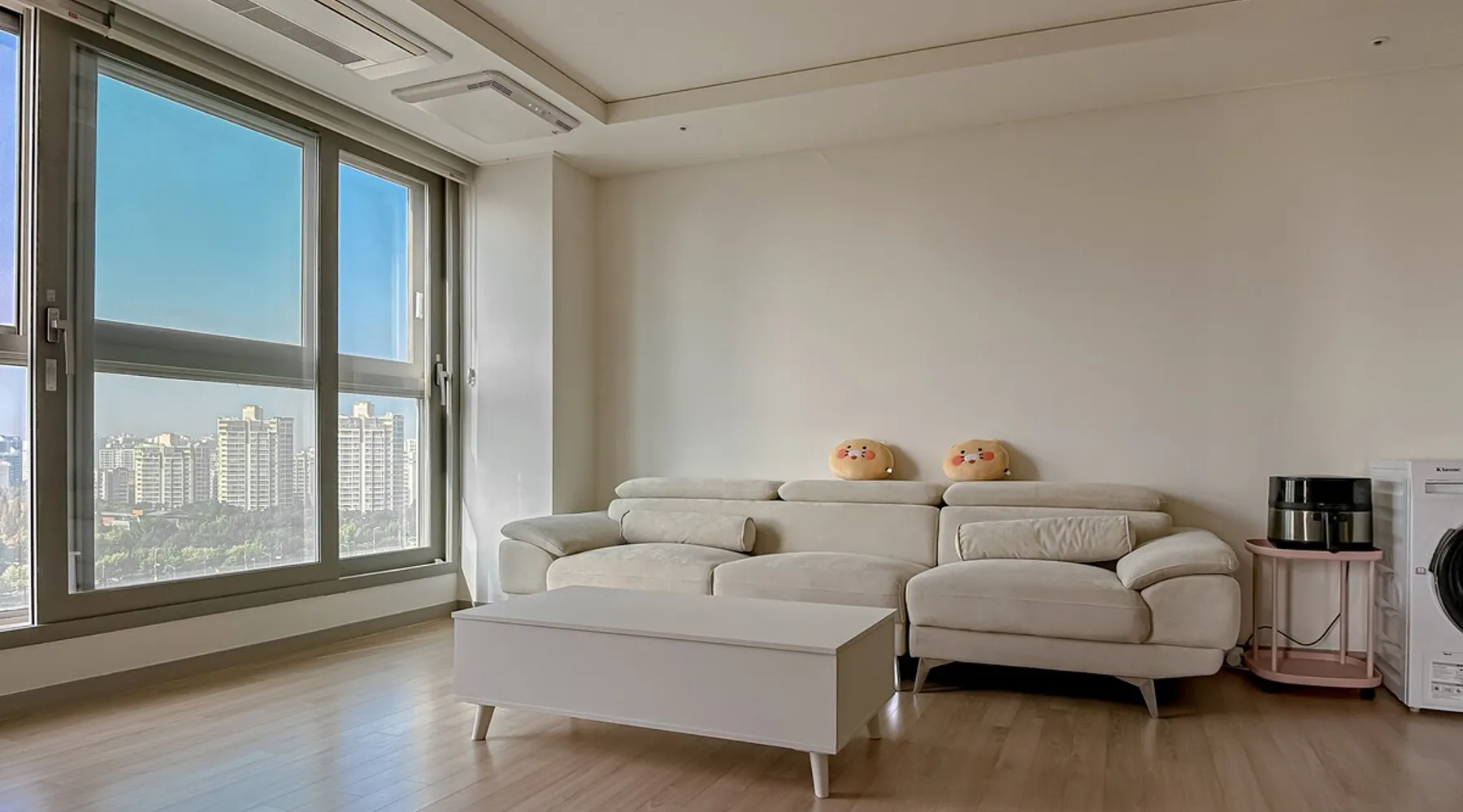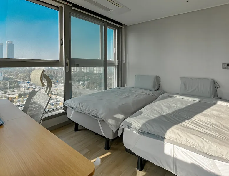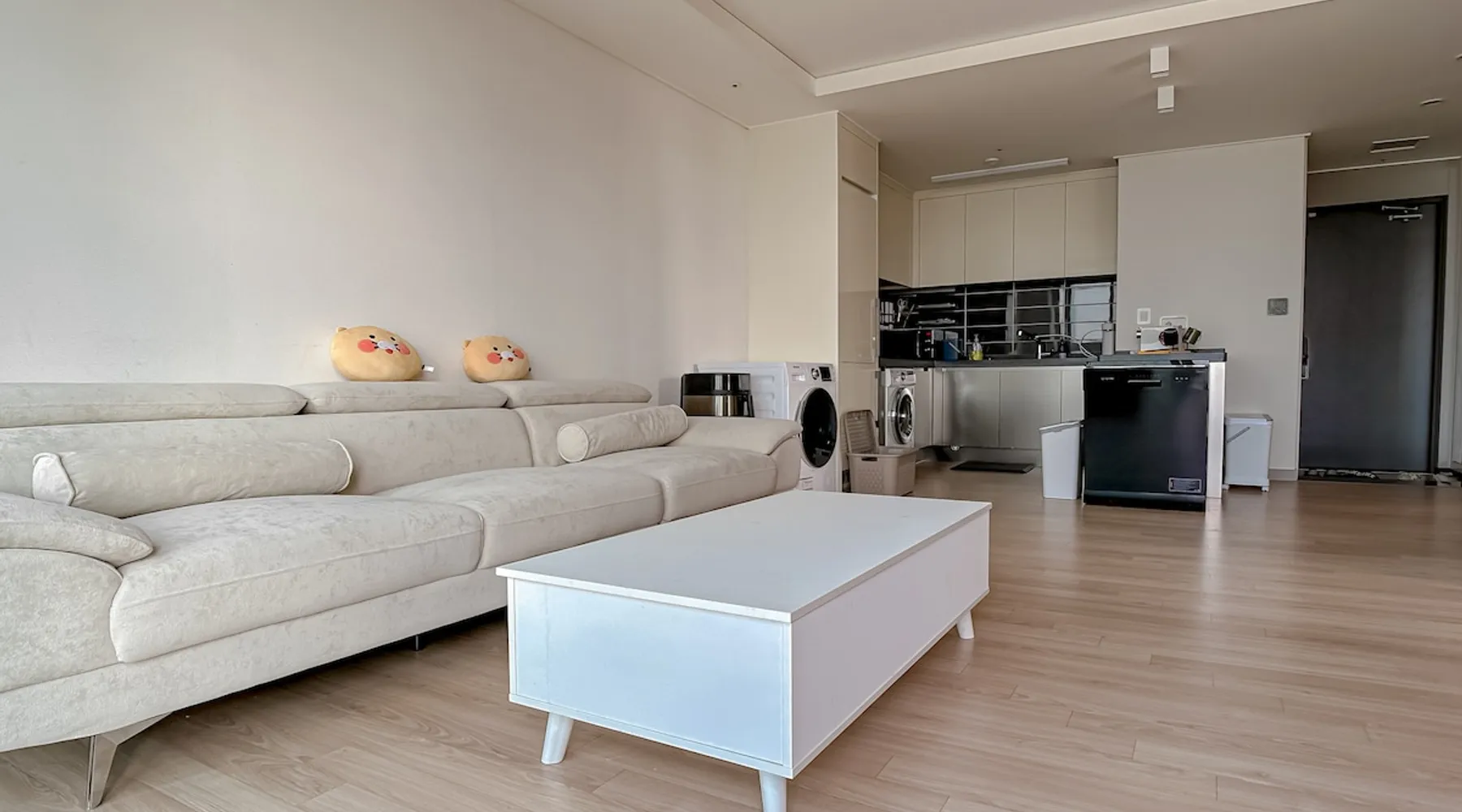 Another place to stay, run by the ✪ top 5% hosts (Top Review on Booking.com), and why more than 80% of guests are staying longer than 10 days! I recommend it to 🌟these people. Those who are sensitive to noise and want a quiet break Who cares about high-quality mattresses (ensures a good night's sleep) Those who need to take care of their work + rest at the same time 📍 House instructions 60m ² new high floor apartment (10 + F): 2 bedrooms + living room + kitchen + toilet 2 mins walk to Songdo Hyundai Premium Outlet & Triple Street Free early check-in & late check-out (if there is no check-in on the same day) Two free parking spaces available upon pre-registration 🏙️ Key highlights Quiet interior with double windows: Perfectly block out the outside noise for a comfortable rest! Fully equipped with smart life: At the same time, work and relaxation at home with convenient appliances such as dishwasher and electric desk! Comfortable sleeping environment: All mattresses ensure a fluffy night's sleep with high-quality memory foam! The space Introducing 🛋️ the composition and furniture Our house consists of 2 bedrooms, 1 bathroom, kitchen, balcony and living room. Room 1: King Bed (Zinus Cloud Lux Memory Foam Mattress) Room 2: 2 super-single beds (Zinus Cloud Lux Memory Foam mattress) * Extra guests provide a folding mattress (15cm thick) You can enjoy YouTube, Netflix, Disney +, and more on the 65-inch smart TV. Guest access 📍 Special amenities (located on the 3rd floor) Large Coin-operated Washer & Gas Dryer: Laundry fee: 4,000 KRW/Drying fee: 500 KRW (based on 5 minutes) Communal garden: Sit on a bench and spend some time relaxing and chatting with family and friends. Gym: You can work out using the private access key (red) (~ 10pm).