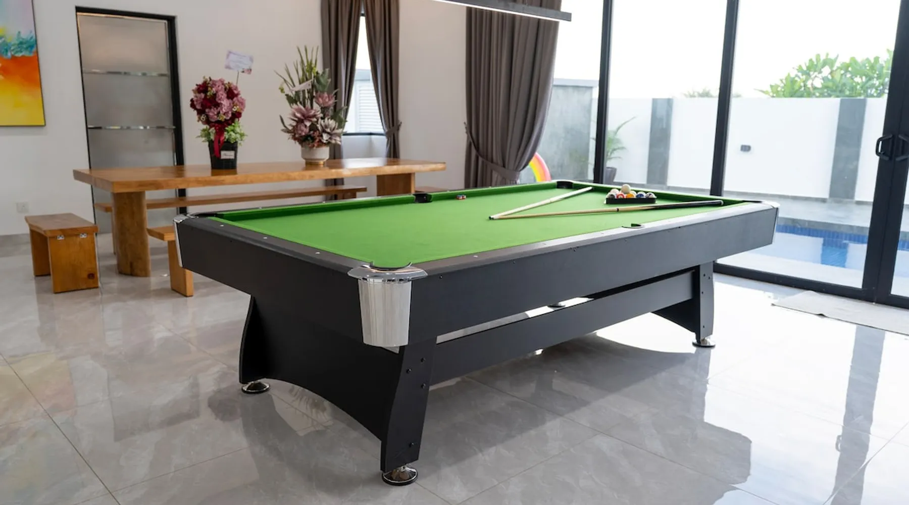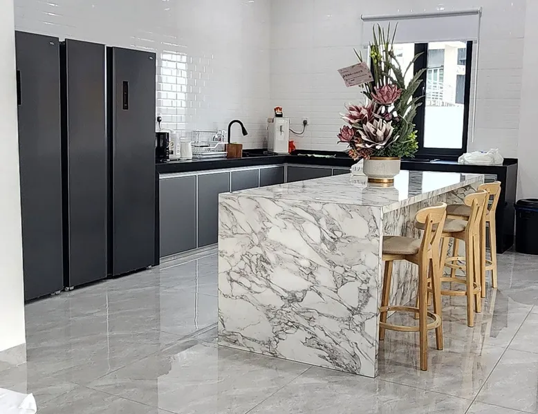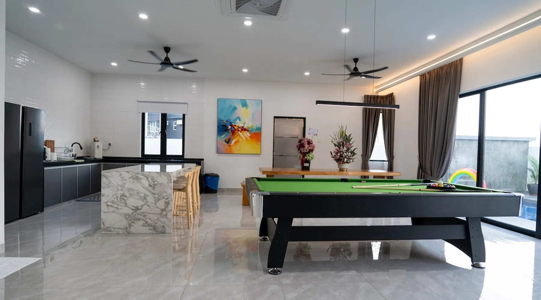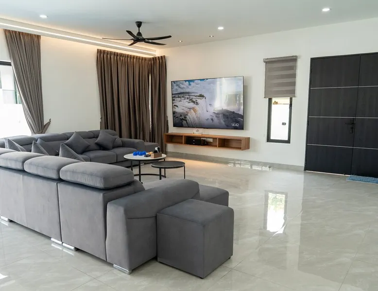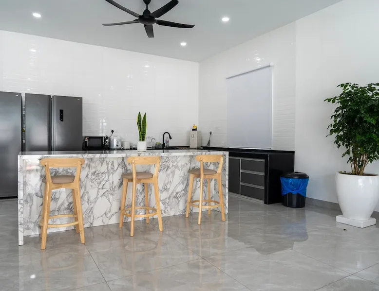 This is a luxurious semi-detached villa located in the heart of Langkawi. 20-minute drive to the airport. The area is very convenient for dining, shopping. Outdoor private pool and BBQ area. On the first floor, there is a games and entertainment area, and the kitchen is equipped with basic utensils for simple cooking. The second floor includes bedrooms and private bathrooms, with air conditioning and fans provided. We prioritize cleanliness and tidiness to ensure the best possible stay. The space D' ESCAPE HOMESTAY 3D Taman Bukit Indah Lorong Bukit Indah 2 Langkawi 07000 Kedah 🏠The place is located near to the kuah which is the heart of Langkawi The Space & Amenities : ➡️ 4 Bedrooms & 5 Bathroom ➡️ The bed can fix 14 persons ➡️ Air conditioning and fans in the living room and bedroom 🎈Room Facilities - Bedroom 1️⃣ - 2 Kingkoil standard Queen size bed & Bathroom - Bedroom 2️⃣ - 2 Kingkoil standard Queen size bed & Bathroom - Bedroom 3️⃣ - 2 Kingkoil standard Queen size bed & Bathroom - Bedroom 4️⃣ - 1 Kingkoil standard Queen size bed & Bathroom 🎈Living room - Smart TV 86" TCL - Karaoke - Netflix - Ceiling fans 🎈Game entertainment - Snooker - Private Pool - Game Machine - Dart - Boxing game 🎈kitchen - Cooking utensils ,suitable for simple cooking - Microwave - Double Door Refrigerator 2 Unit - Coway hot and cold water dispenser - Toaster - Rice cooker - Instand coffee and tea bag 🎈Dining Area - Long dining table - Baby chair 🎈Bathroom - Water heater - Shampoo & Shower Gel - Hair Dryer - Bath towel 🎈Laundry Area - Washing machine - Washing powder - Iron and ironing board 🎈Outdoor - Private Pool - Barbecue Area - Bicycle - Free in / outdoor car park 🎈 Network - FreeWi-Fi 🚫No pets allowed 🚫No smoking indoors Guest access Guests can enjoy all facilities in the entire house Other things to note 🚫 Notice for Large Tour Buses This is a quiet residential neighborhood with narrow streets. Large buses are only allowed to stop briefly for drop-off or pick-up. Parking or waiting is strictly prohibited. If found idling or parked, it may lead to a RM500 fine issued by the authorities or neighborhood committee. Please arrange smaller vehicles (vans, MPVs) for smoother and safer access.