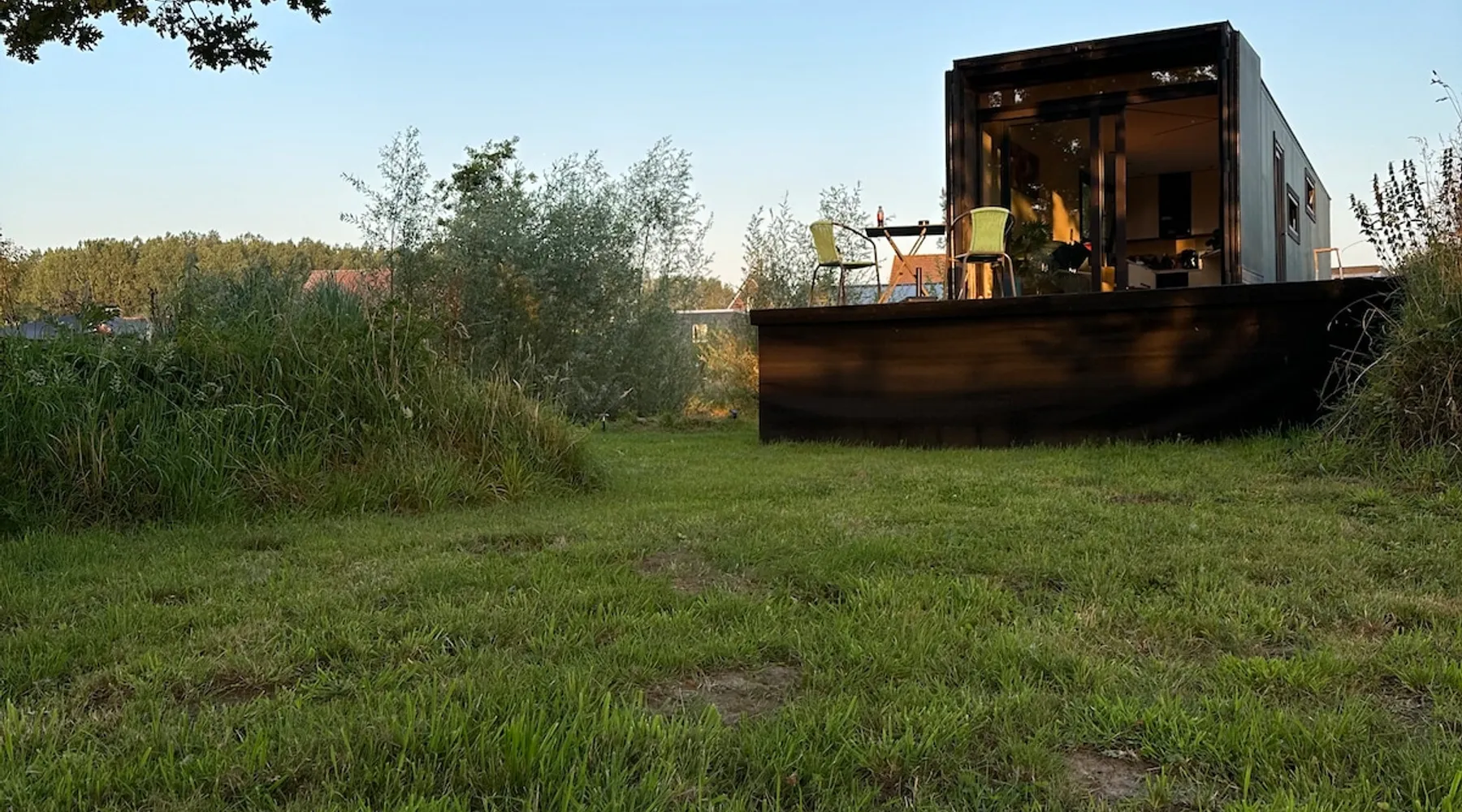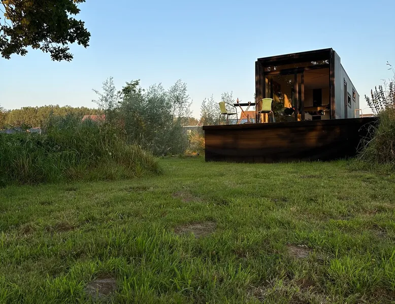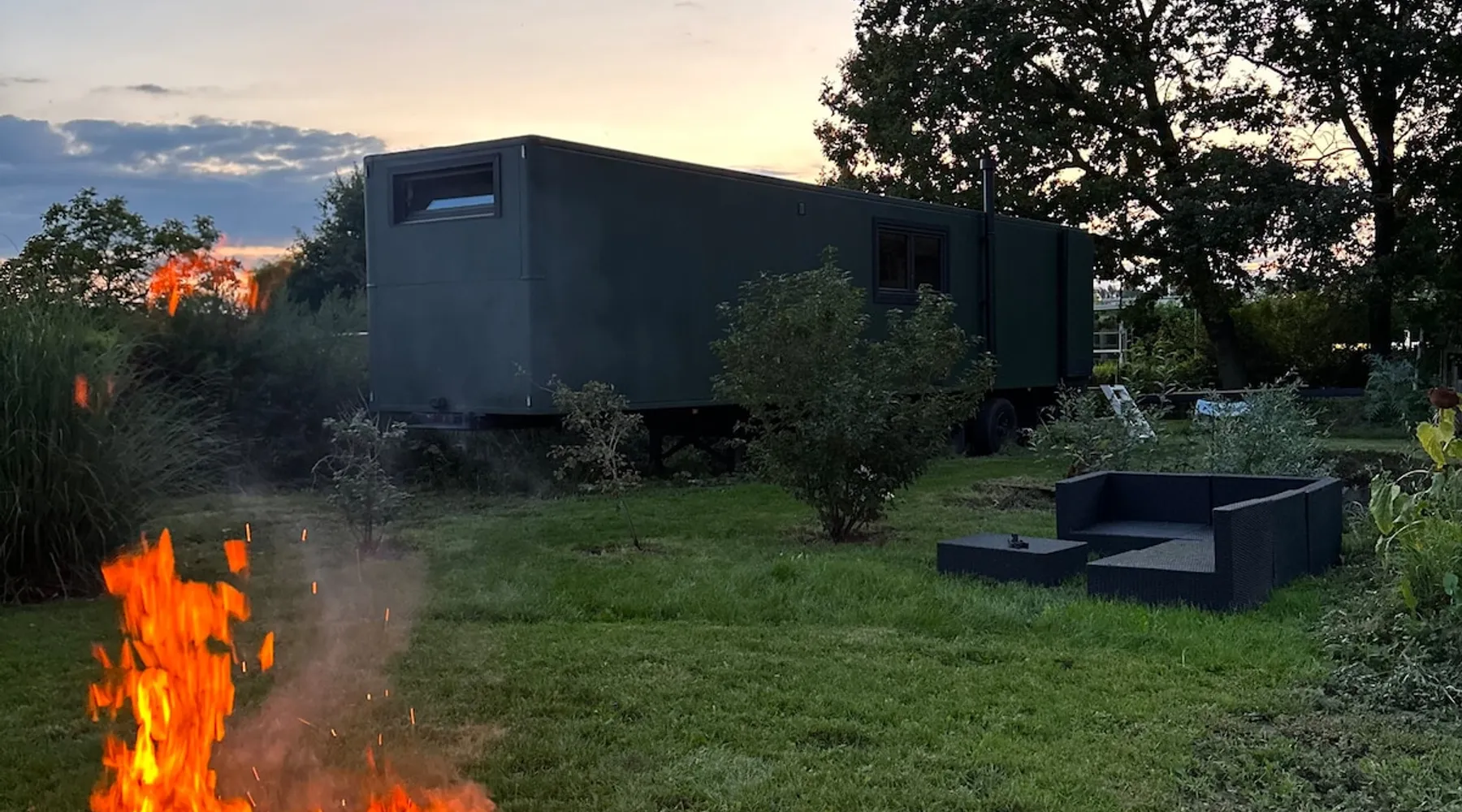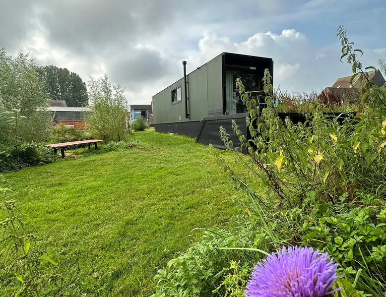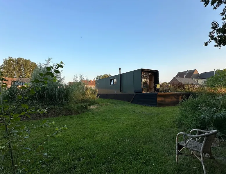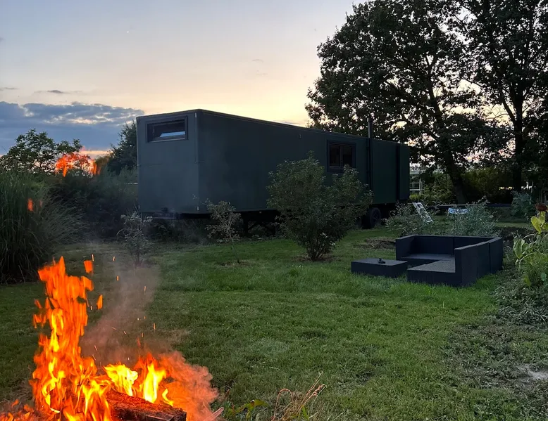 Not Tiny at all. Enjoy a romantic evening out in a natural environment in a very spacious "tinyhouse" with all the comforts. Slide by the campfire, enjoy a BBQ in the outdoor courtyard or take a refreshing dip in the pool. You are also welcome to come with children. We also have a small separate tiny house for them in the garden that can also be booked on request. Right at the station, but if you prefer not to take the train, there is plenty of parking space on the property. The space The not so tiny house can accommodate 4 people, there is a large 2 person bed and a sofa bed for 2 extra people (children) there is also an extra room in the garden 30 meters from the tiny house where 2 extra people can sleep. For this room, an extra cost of €25 per night will be charged (since there are 2 extra people). In the tiny house, all amenities are available, bathroom with shower and dry toilet, kitchen with fridge, freezer, cooking fire with integrated hood, Senseo coffee machine, etc. WiFi and TV are available. The extra room is sober and includes only a double bed and a table with chairs. In the garden, there are several resting places and loungers, a hammock, a fire bowl and a BBQ. Two ponds and a swimming pool complete the atmosphere. Guest access The entire accommodation is at your disposal Other things to note On the premises, there are 2 super sweet dogs, Ona and Odiel, who are happy to welcome you. They are super child-friendly and like to play if you want to We have an eco dry toilet in the tiny house of the brand Trobolo. A dry toilet is a compost toilet that uses no water and no chemicals. We use wood shavings instead. It is odorless and is emptied by us in time for a longer visit and after each guest.