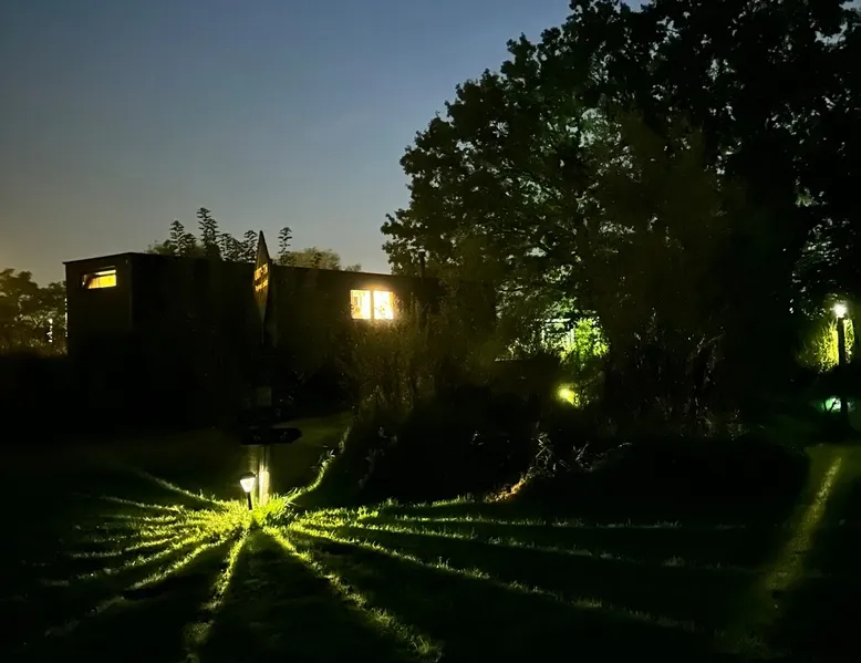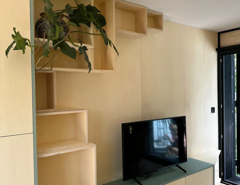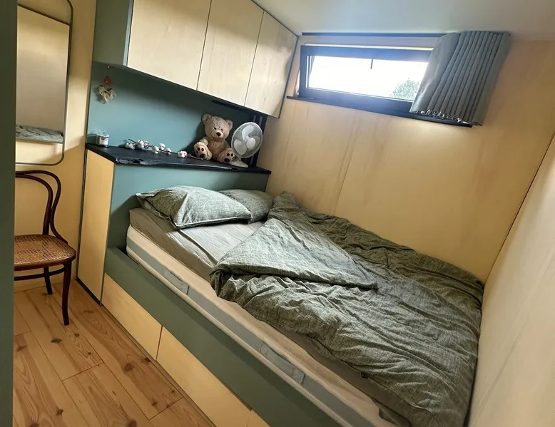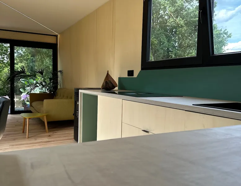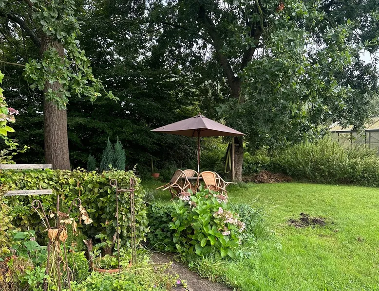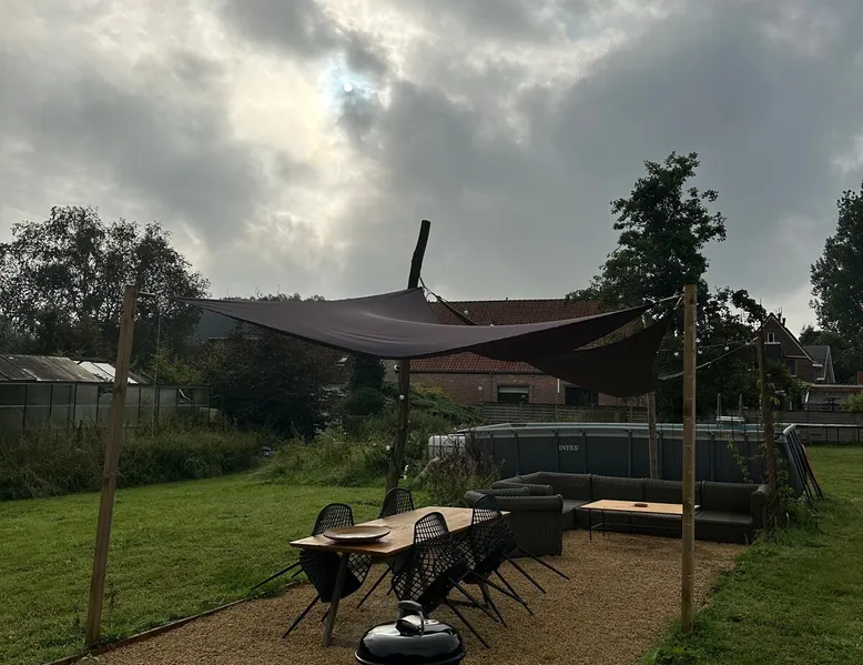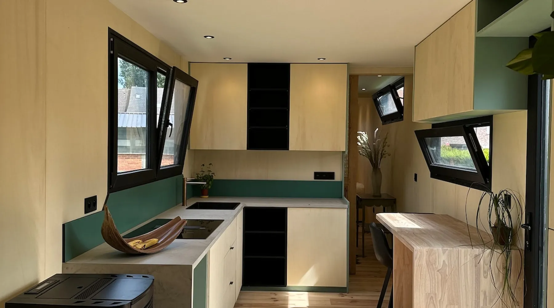 Not Tiny at all. Enjoy a romantic evening out in a natural environment in a very spacious "tinyhouse" with all the comforts. Slide by the campfire, enjoy a BBQ in the outdoor courtyard or take a refreshing dip in the pool. You are also welcome to come with children. We also have a small separate tiny house for them in the garden that can also be booked on request. Right at the station, but if you prefer not to take the train, there is plenty of parking space on the property. The space The not so tiny house can accommodate 4 people, there is a large 2 person bed and a sofa bed for 2 extra people (children) there is also an extra room in the garden 30 meters from the tiny house where 2 extra people can sleep. For this room, an extra cost of €25 per night will be charged (since there are 2 extra people). In the tiny house, all amenities are available, bathroom with shower and dry toilet, kitchen with fridge, freezer, cooking fire with integrated hood, Senseo coffee machine, etc. WiFi and TV are available. The extra room is sober and includes only a double bed and a table with chairs. In the garden, there are several resting places and loungers, a hammock, a fire bowl and a BBQ. Two ponds and a swimming pool complete the atmosphere. Guest access The entire accommodation is at your disposal Other things to note On the premises, there are 2 super sweet dogs, Ona and Odiel, who are happy to welcome you. They are super child-friendly and like to play if you want to We have an eco dry toilet in the tiny house of the brand Trobolo. A dry toilet is a compost toilet that uses no water and no chemicals. We use wood shavings instead. It is odorless and is emptied by us in time for a longer visit and after each guest.