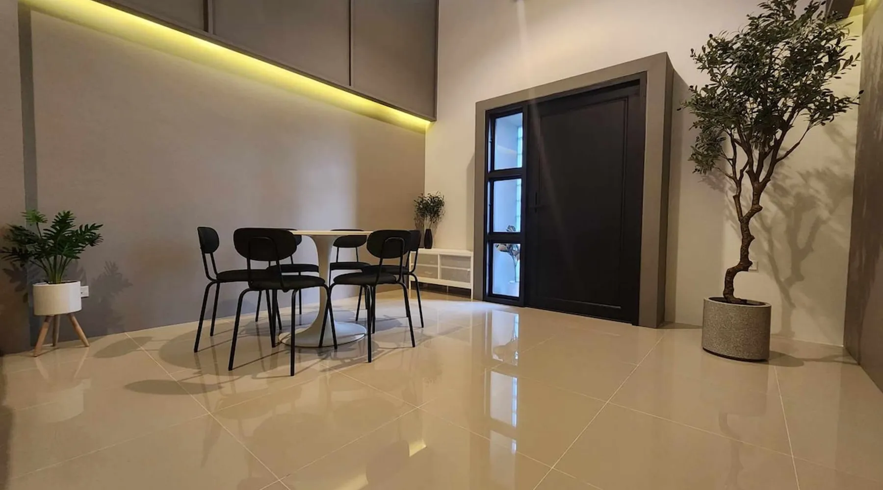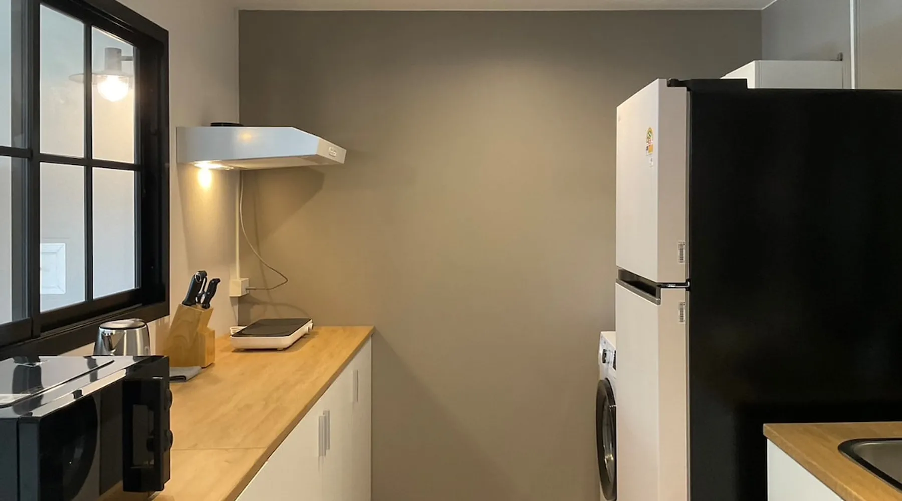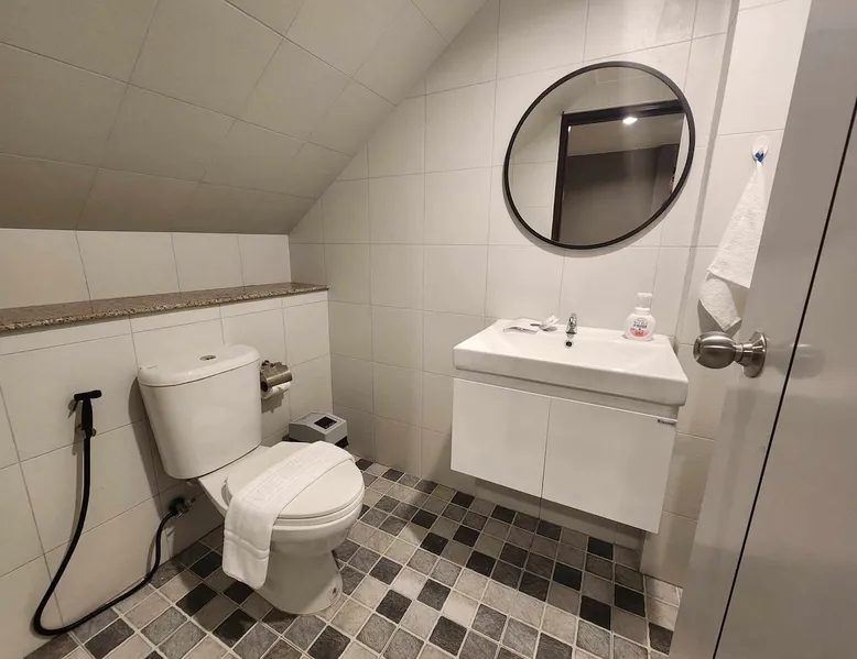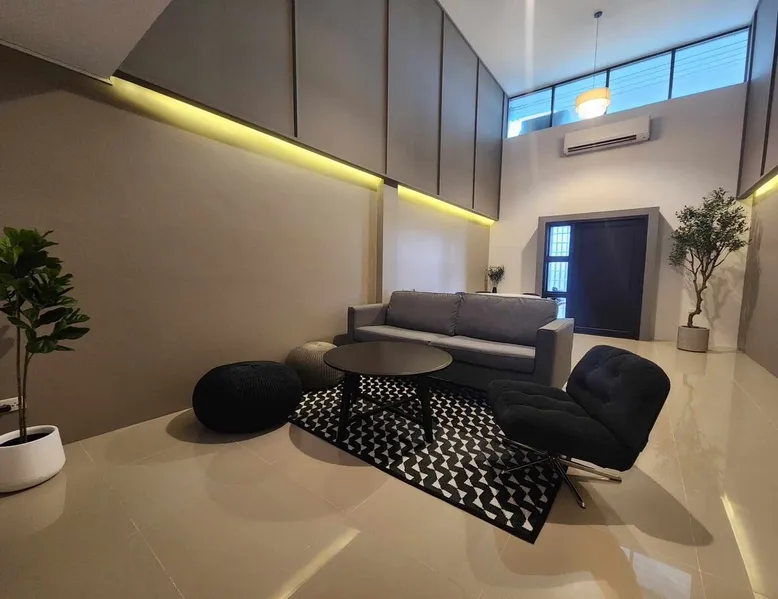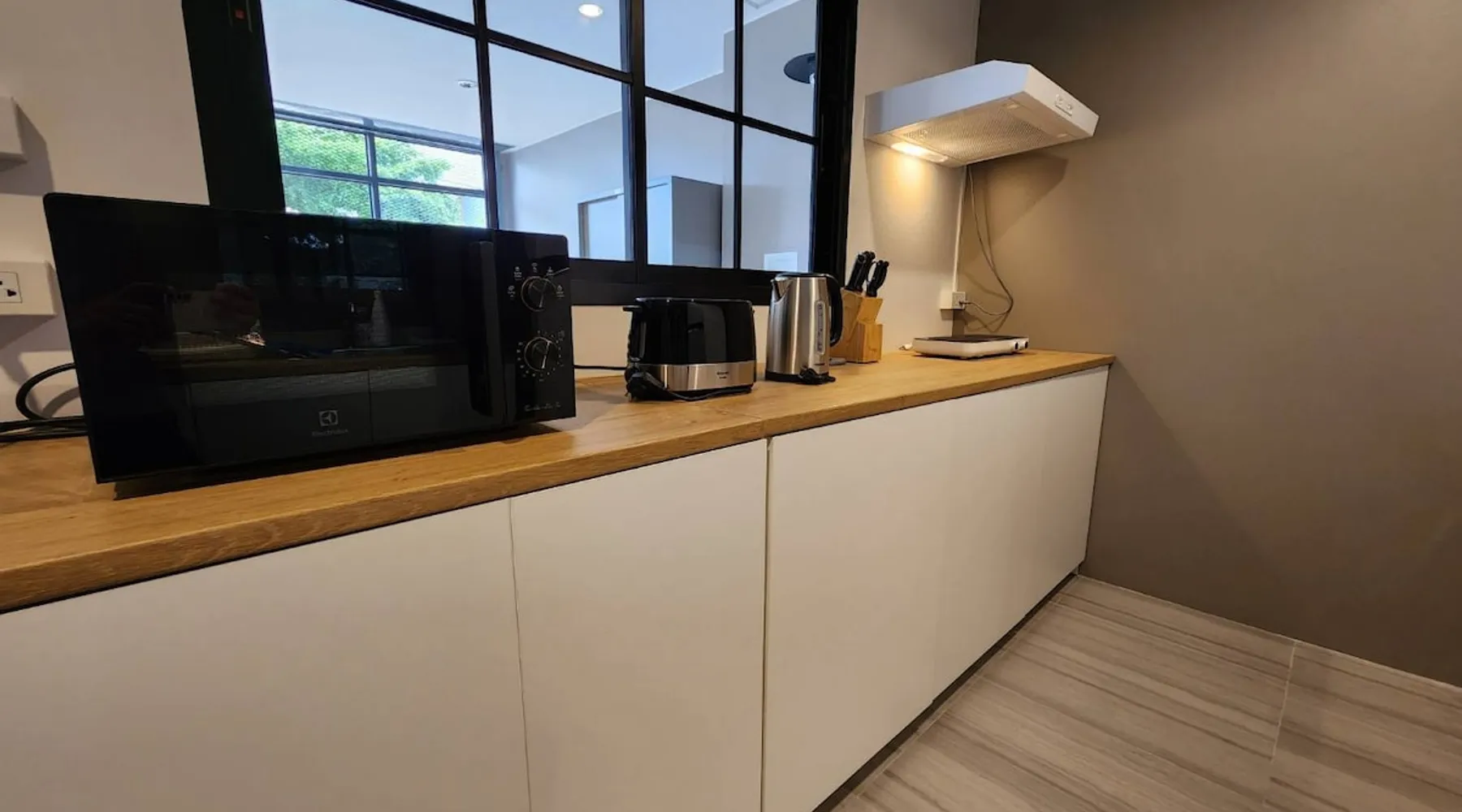 * Updated on April 20, 2025: Installed a concealed polycarbonate sheet over the window glass to reduce external noise * The house is located in a location next to the airport and there is a convenience store, all kinds of food, drinks and supplies 24 hours open right next door. The house is furnished with quality furniture and design, feeling comfortable and homely. Prioritize privacy, cleanliness, and all amenities for groups of 4-6 or as a family group. You can only get to the airport or arrive from the airport to the house in 5 minutes. The distance is about 500 meters. The space The area for parking is both in front of the house and behind the house. The ground floor is an area for activities together. The dining table for 6 people and has a living room as an open space to spend time together with the whole family. The big screen smart TV connects to the internet, creating entertainment for everyone. There is a kitchen on the floor with all cooking utensils. You can cook for all members to experience the dining atmosphere like home. Behind the house is a semi open space with a set of tables and chairs for lounging. There is a breeze and natural light. The second floor area is an open space for relaxing, a display of art, and there is a bathroom, as well as a shower room, soap, shampoo, brushes, toothpaste for everyone. On the 3rd floor, 2 bedrooms are furnished with good bedding for everyone to sleep happily. 1 large room with 1 6-foot bed and 1 bunk bed with wardrobe and desk for work and makeup. In the room, 1 bedroom has 1 6-foot bed with wardrobe and desk. Both bedrooms have a balcony for fresh air and a bathroom, shower room with various appliances, hair dryer, table and iron, towels for everyone. Guest access Everything is fine in the house.