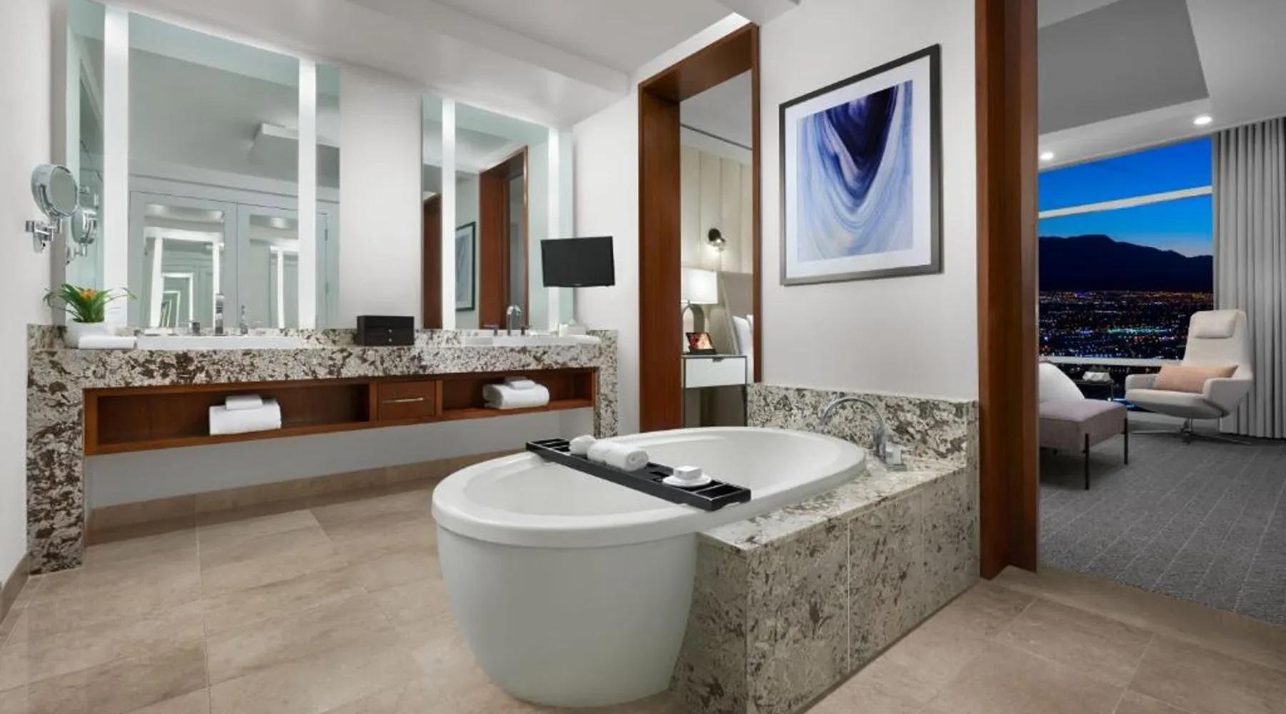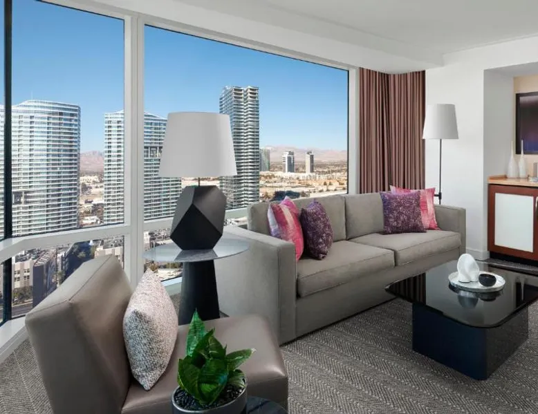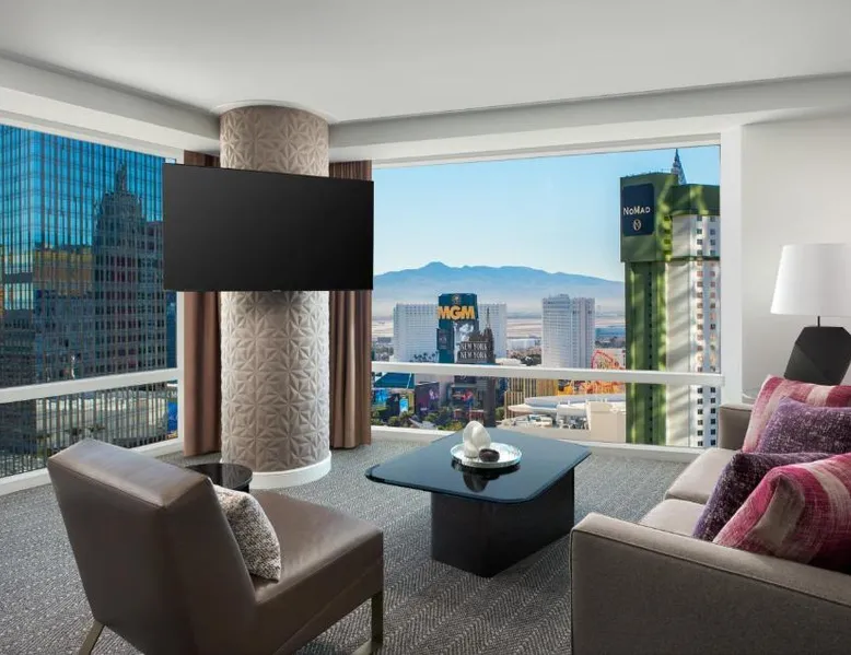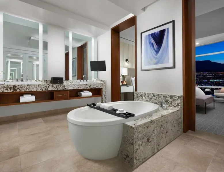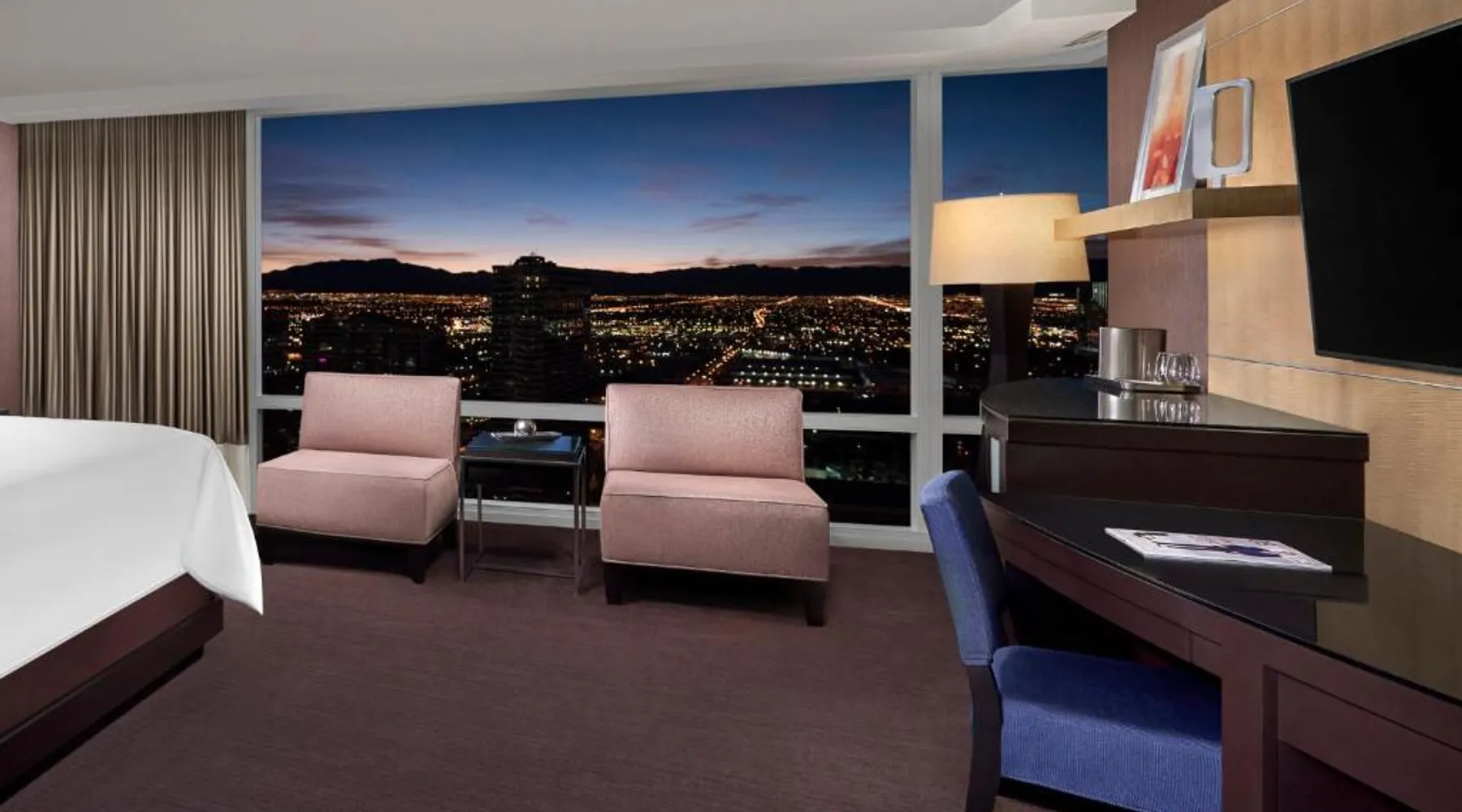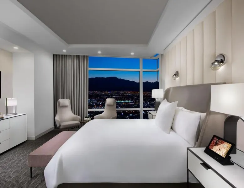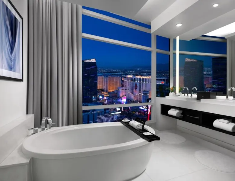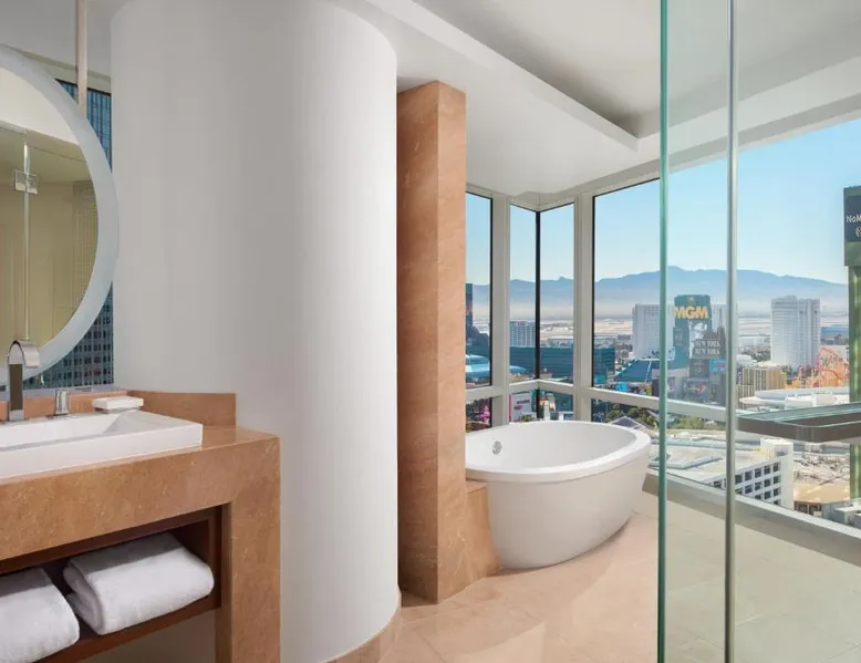 Set on the Las Vegas Strip, ARIA Resort & Casino features a 150,000-square foot casino and numerous restaurants. Showcasing stunning city views, all rooms boast views from floor-to-ceiling windows. All rooms include a stocked mini-bar and a one-touch room control system that allows guests to quickly customize room features like lighting and temperature. The private bathroom offers plush robes, a glass-enclosed shower with bench and a soaking tub. Guests can relax in 3 outdoor pools. The on-site Spa at ARIA Resort & Casino has 62 treatment rooms and offers massage, facial treatments and a full range of salon services. Personal training and group fitness classes are also available. A conference center is located on-site at ARIA Resort & Casino. ARIA Resort & Casino is 3.1 mi from Harry Reid International Airport. This high-tech room includes a 42-inch flat-screen TV and a 10-inch touchscreen bedside navigation system for the room settings. A stocked mini-bar, plush bath robes, and a large soaking tub are also included.