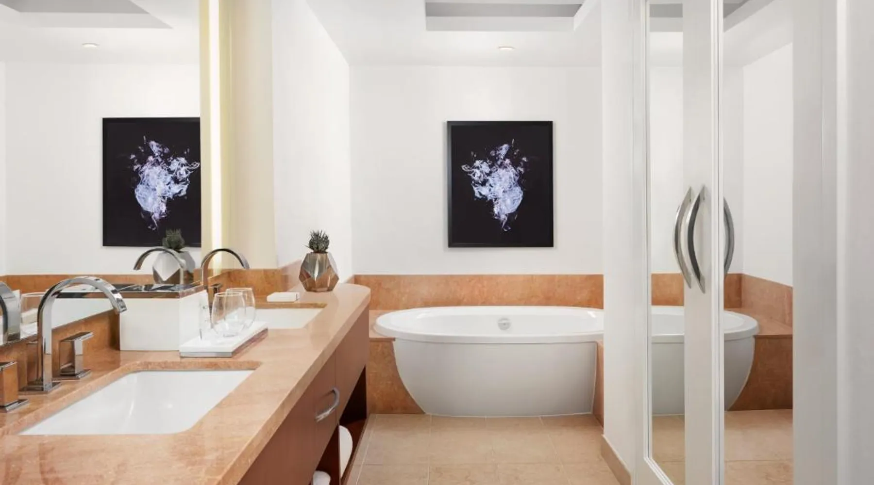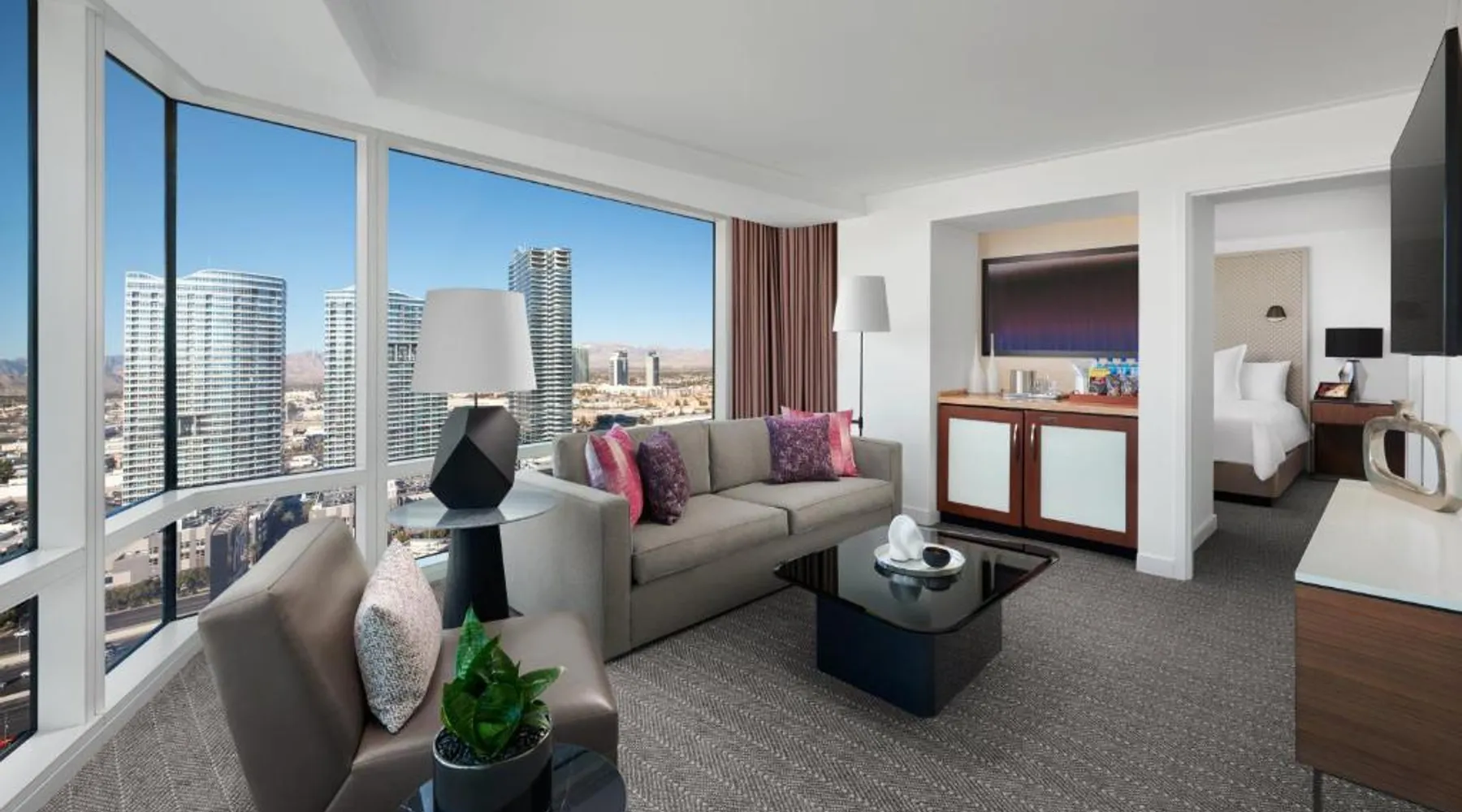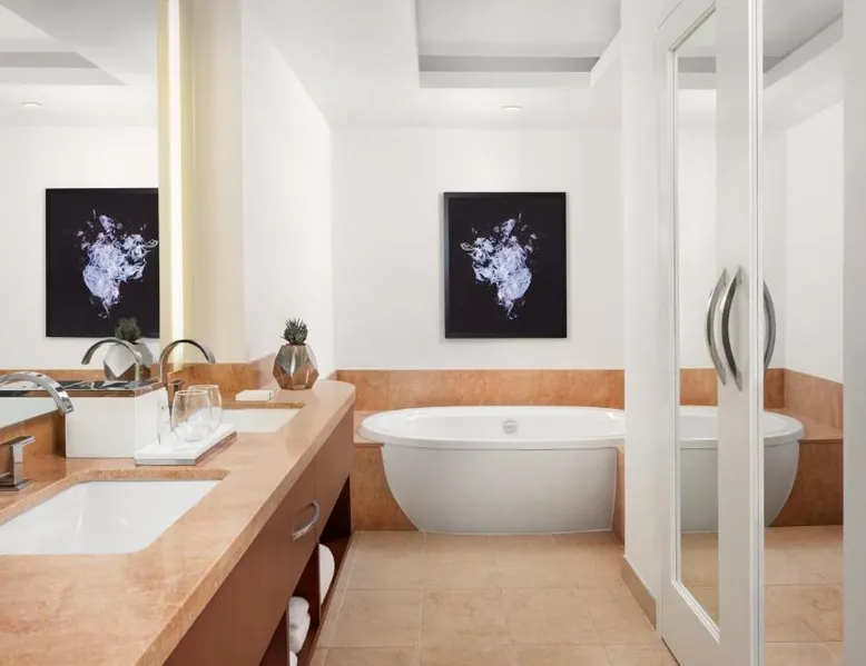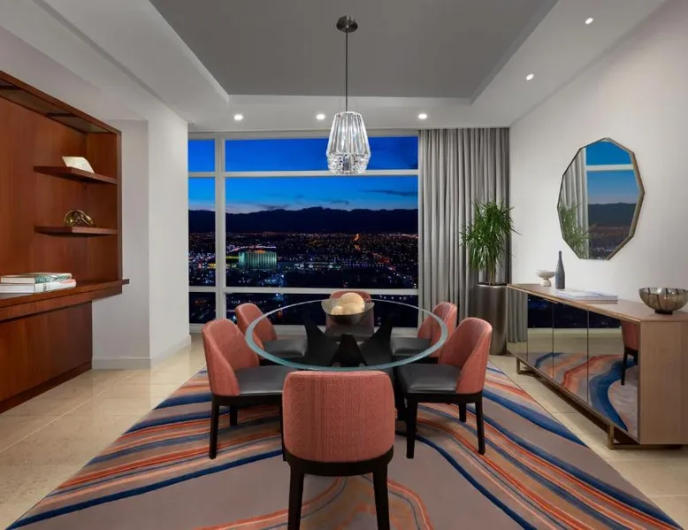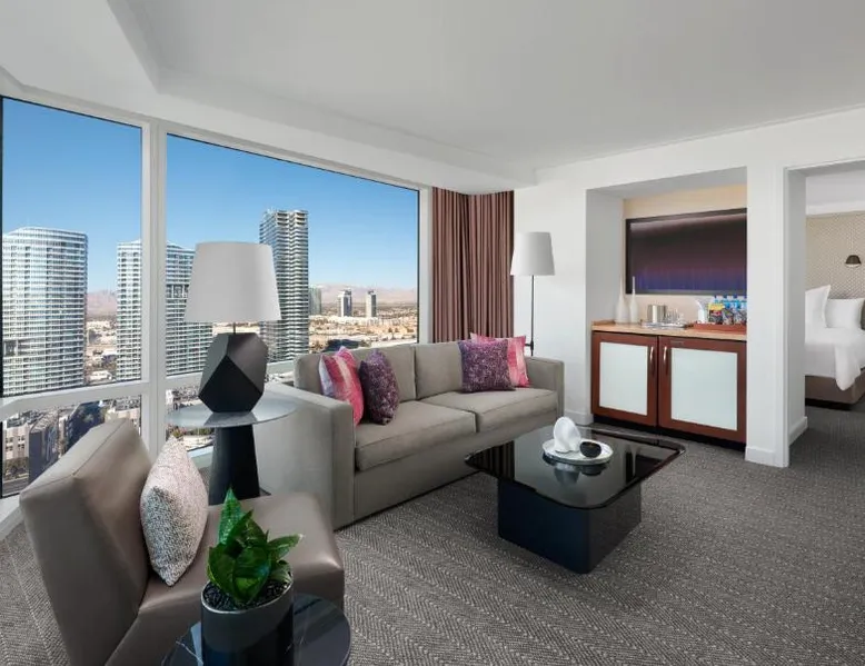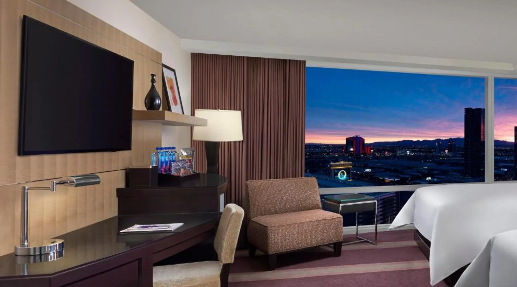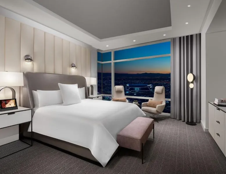 Set on the Las Vegas Strip, ARIA Resort & Casino features a 150,000-square foot casino and numerous restaurants. Showcasing stunning city views, all rooms boast views from floor-to-ceiling windows. All rooms include a stocked mini-bar and a one-touch room control system that allows guests to quickly customize room features like lighting and temperature. The private bathroom offers plush robes, a glass-enclosed shower with bench and a soaking tub. Guests can relax in 3 outdoor pools. The on-site Spa at ARIA Resort & Casino has 62 treatment rooms and offers massage, facial treatments and a full range of salon services. Personal training and group fitness classes are also available. A conference center is located on-site at ARIA Resort & Casino. ARIA Resort & Casino is 3.1 mi from Harry Reid International Airport. This high-tech room includes a 42-inch flat-screen TV and a 10-inch touchscreen bedside navigation system for the room settings. A stocked mini-bar, plush bath robes, and a large soaking tub are also included.