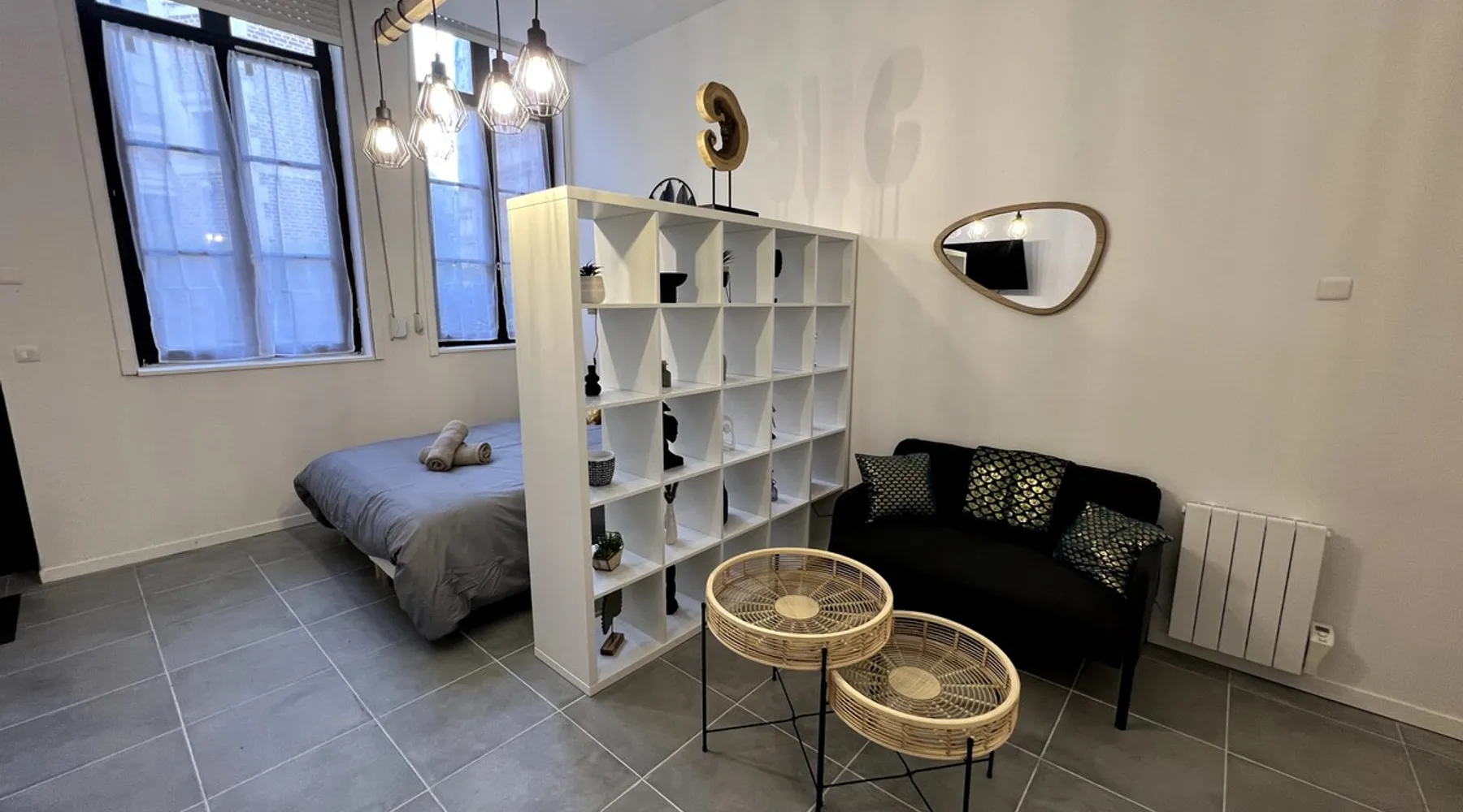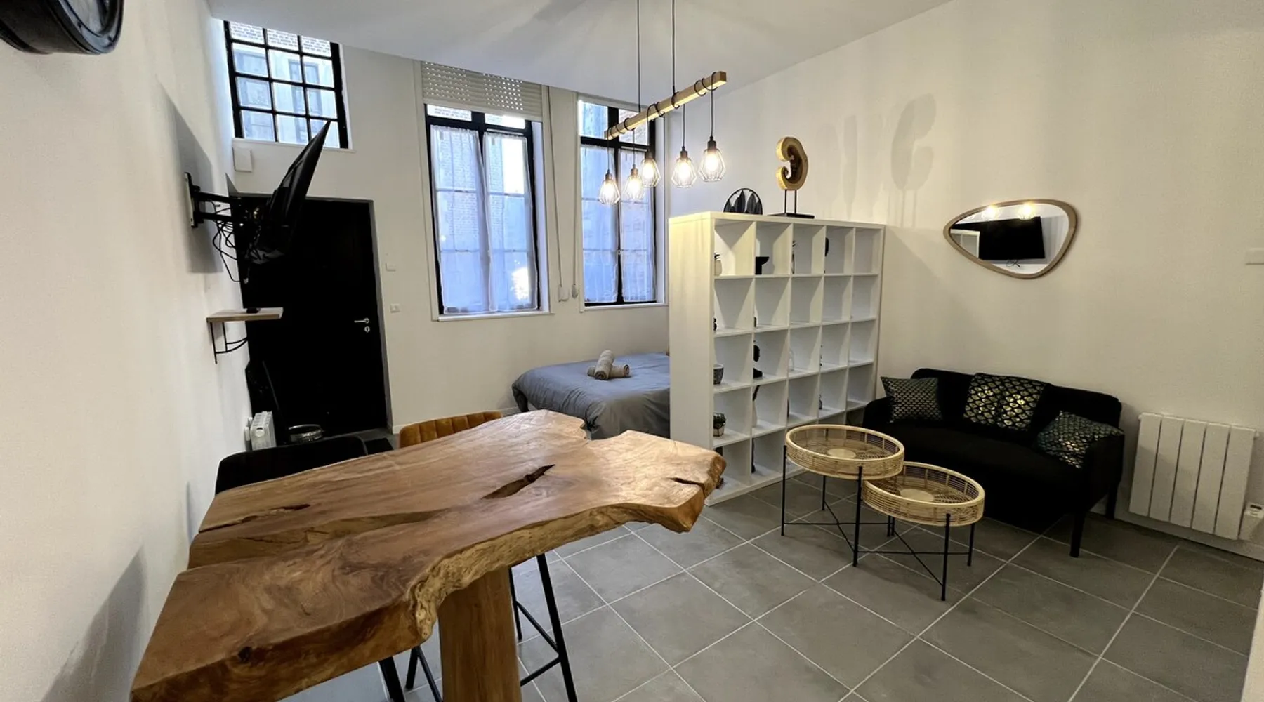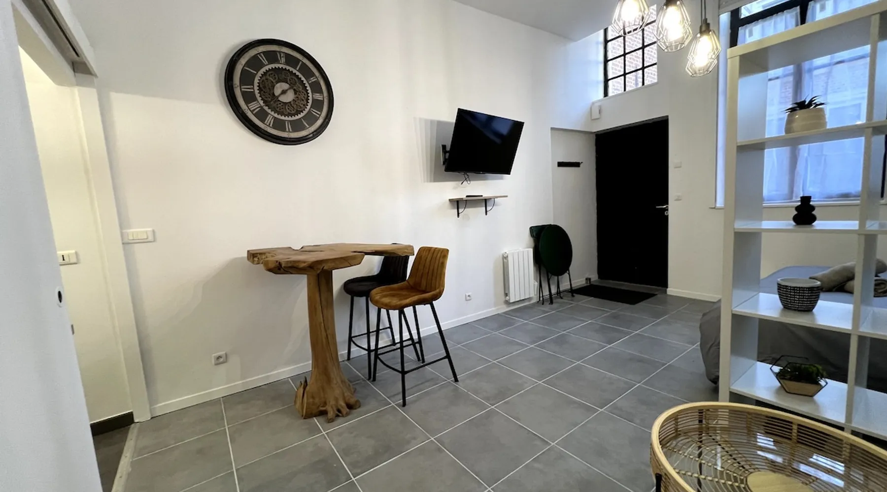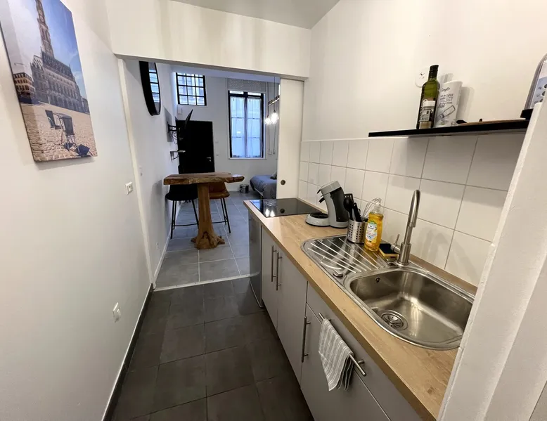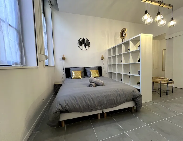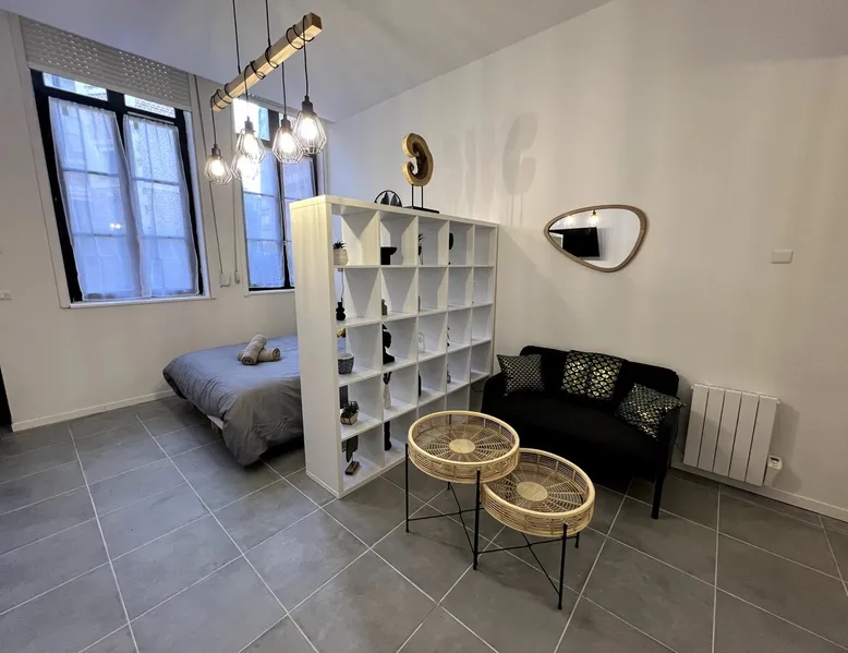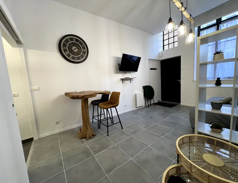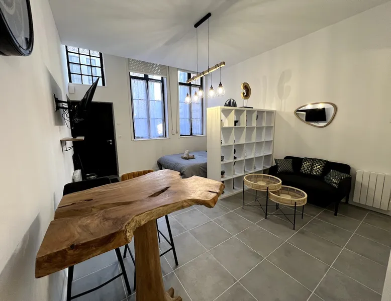 Welcome to the Studio de La Grand Place, completely renovated, located in the historic center of the majestic Grand Place of Arras. Designed for 2 people, this home offers a modern and elegant setting while still retaining the authentic charm of this iconic location. The space The studio combines comfort and aesthetics, with quality materials and carefully selected furniture. The bright space includes a cozy sleeping area with queen size bed (160 x 200 cm), a kitchen equipped with everything you need for your meals (ceramic hob, fridge, microwave, kitchenware and dishes), as well as a modern bathroom with bathtub, vanity unit and toilet. Guests can enjoy Wi-Fi, a connected TV and all the amenities necessary for your stay. Ideally located, you will have the best restaurants, shops and cultural places of the city of Arras at your fingertips. Guests can enjoy a private terrace while savoring the calm and tranquility of this cocoon nestled in the heart of the hustle and bustle of Arras. Great for a romantic stay or an urban getaway! Guest access Guests will be able to enjoy the entire place and its terrace. Access to the accommodation is autonomous thanks to a secure key box. Other things to note Baby kit in the accommodation (baby bed, high chair), please note that the baby bed sheets are not provided.
