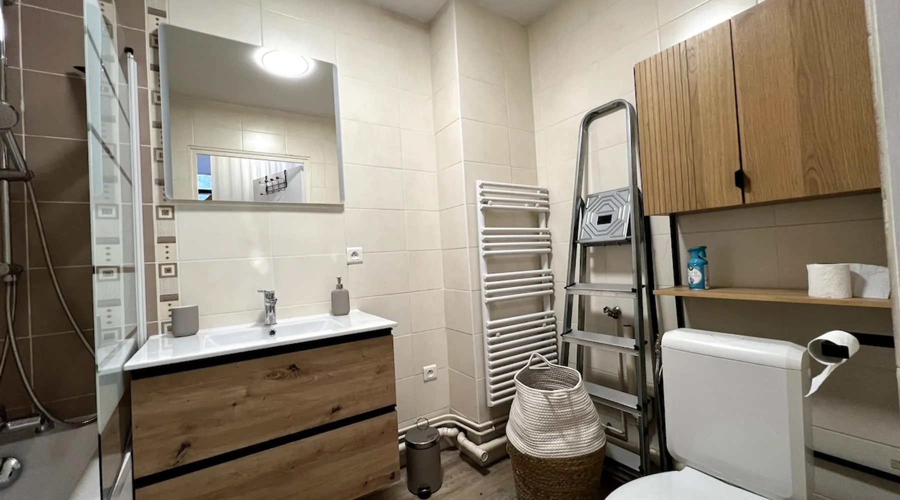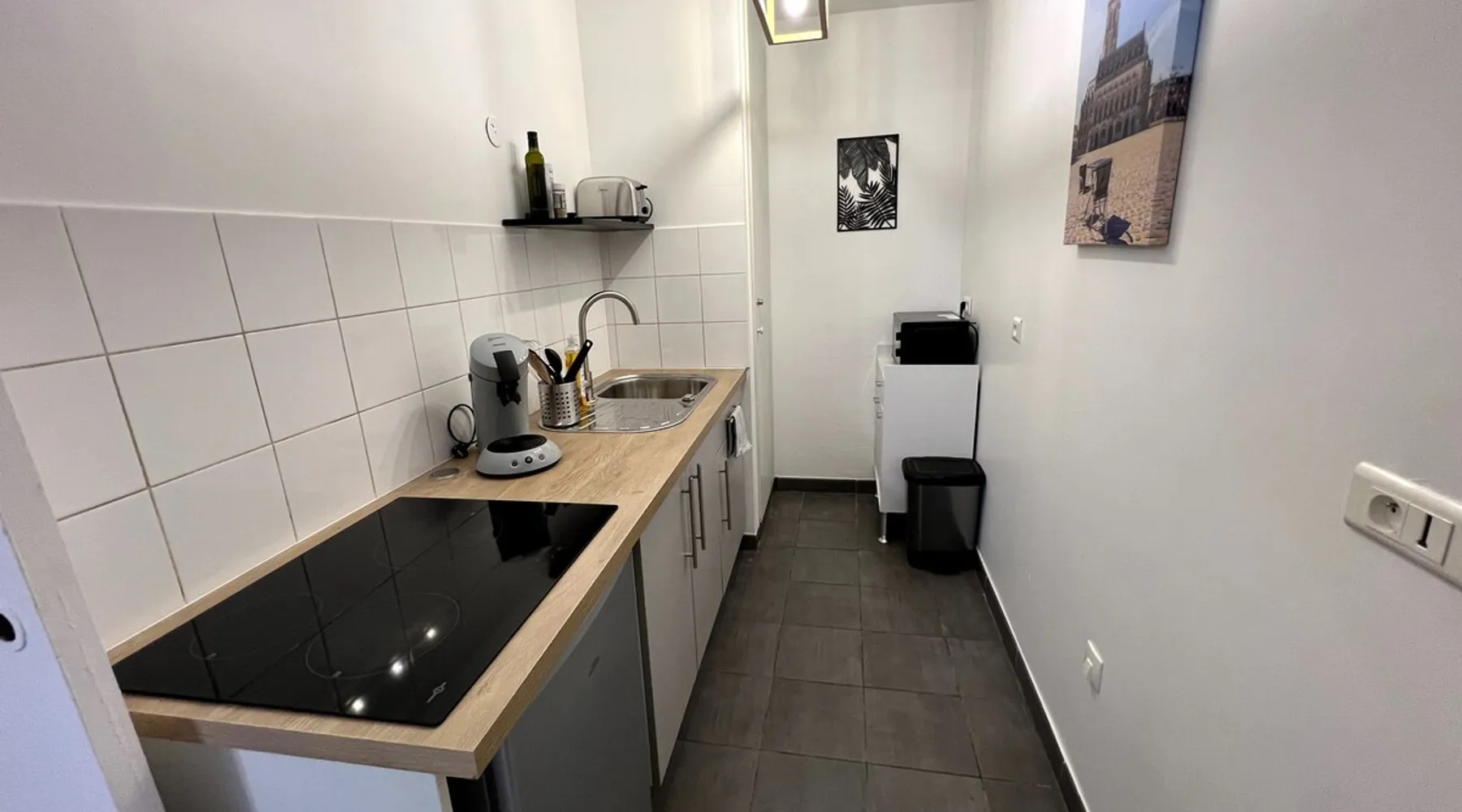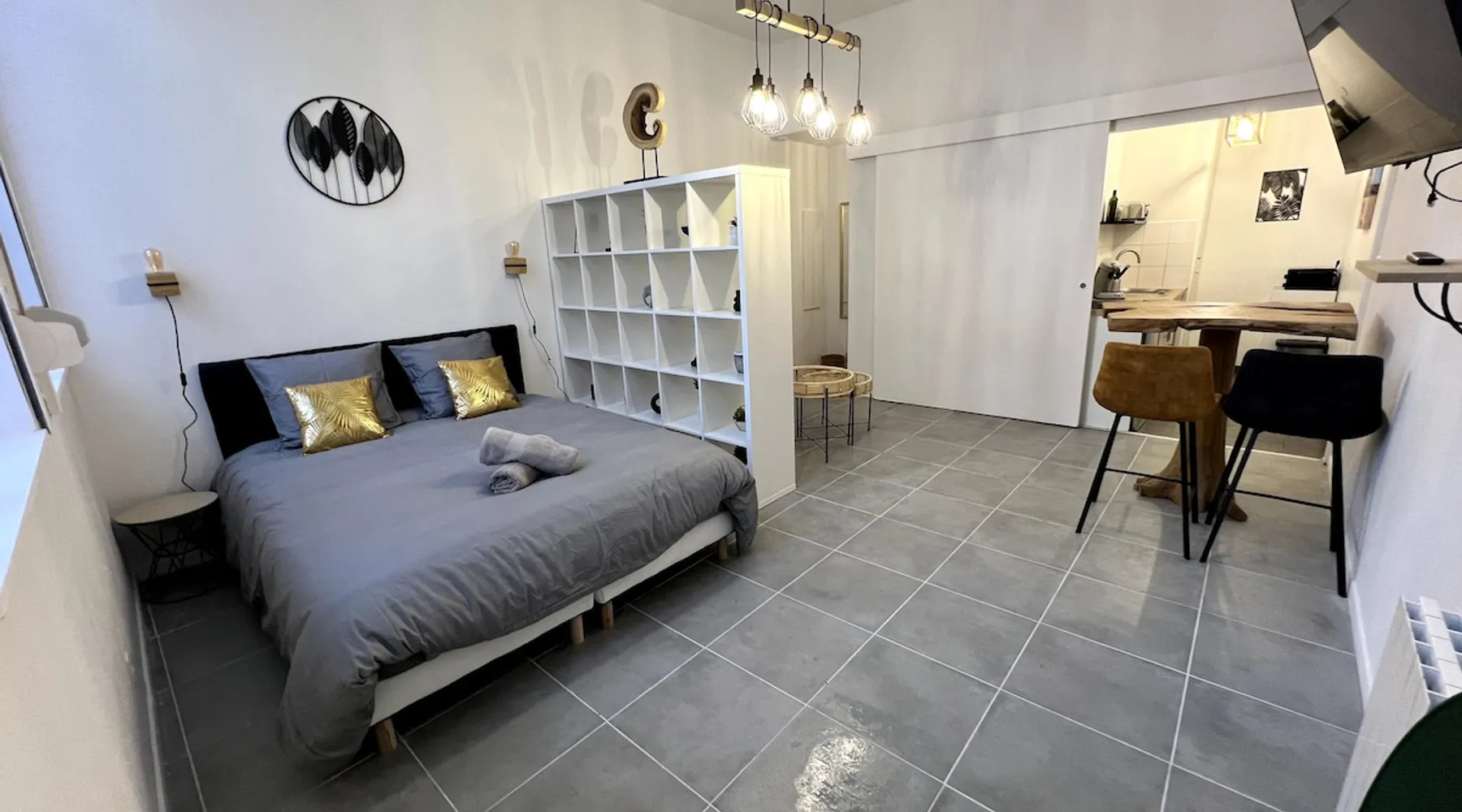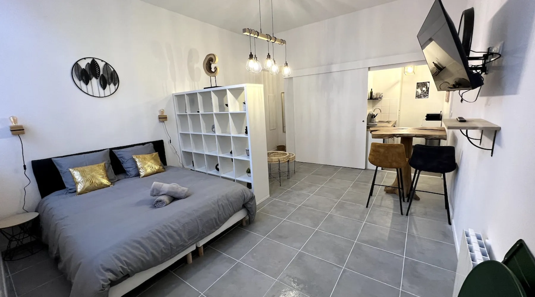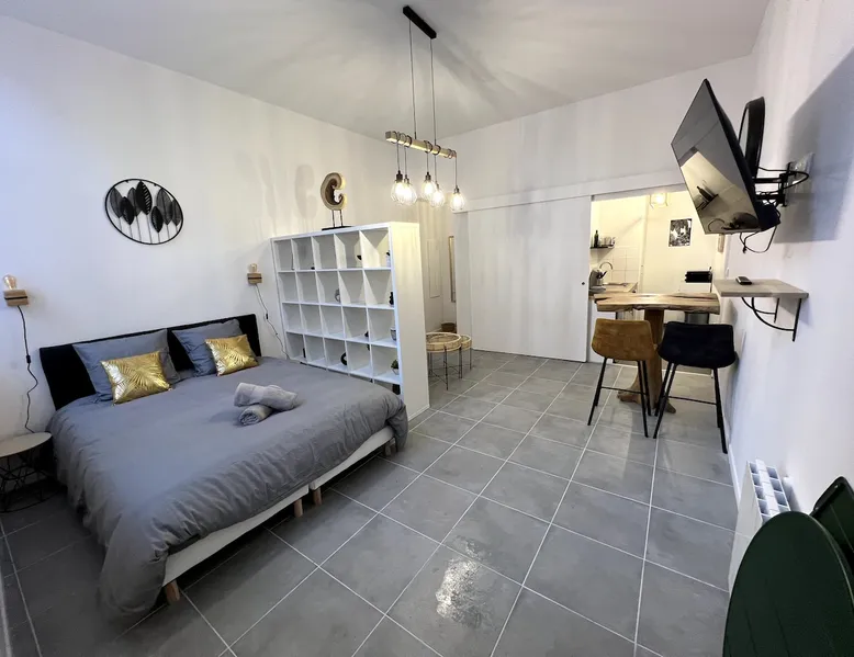 Welcome to the Studio de La Grand Place, completely renovated, located in the historic center of the majestic Grand Place of Arras. Designed for 2 people, this home offers a modern and elegant setting while still retaining the authentic charm of this iconic location. The space The studio combines comfort and aesthetics, with quality materials and carefully selected furniture. The bright space includes a cozy sleeping area with queen size bed (160 x 200 cm), a kitchen equipped with everything you need for your meals (ceramic hob, fridge, microwave, kitchenware and dishes), as well as a modern bathroom with bathtub, vanity unit and toilet. Guests can enjoy Wi-Fi, a connected TV and all the amenities necessary for your stay. Ideally located, you will have the best restaurants, shops and cultural places of the city of Arras at your fingertips. Guests can enjoy a private terrace while savoring the calm and tranquility of this cocoon nestled in the heart of the hustle and bustle of Arras. Great for a romantic stay or an urban getaway! Guest access Guests will be able to enjoy the entire place and its terrace. Access to the accommodation is autonomous thanks to a secure key box. Other things to note Baby kit in the accommodation (baby bed, high chair), please note that the baby bed sheets are not provided.