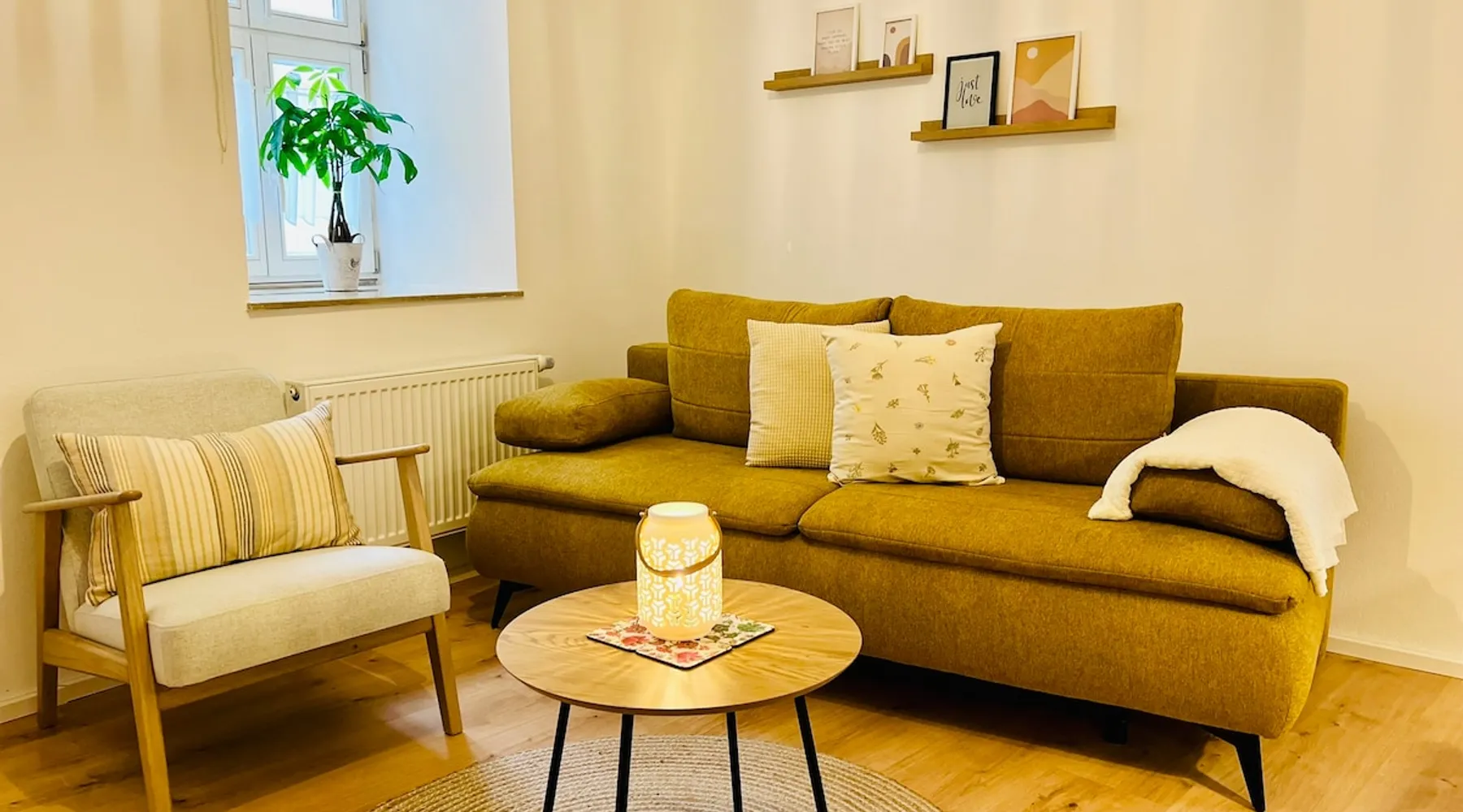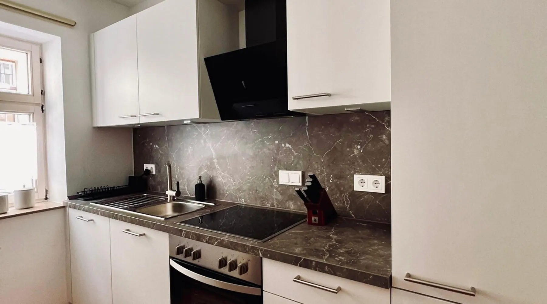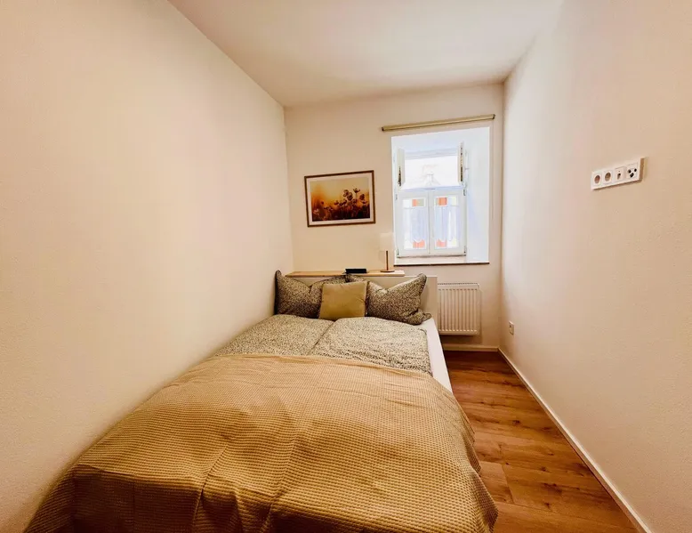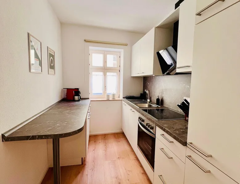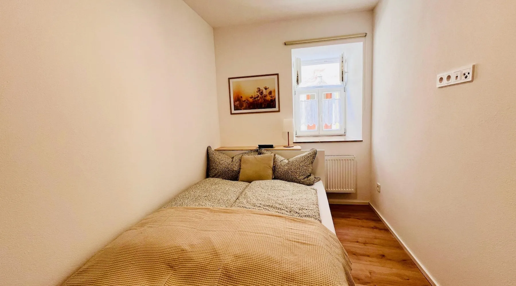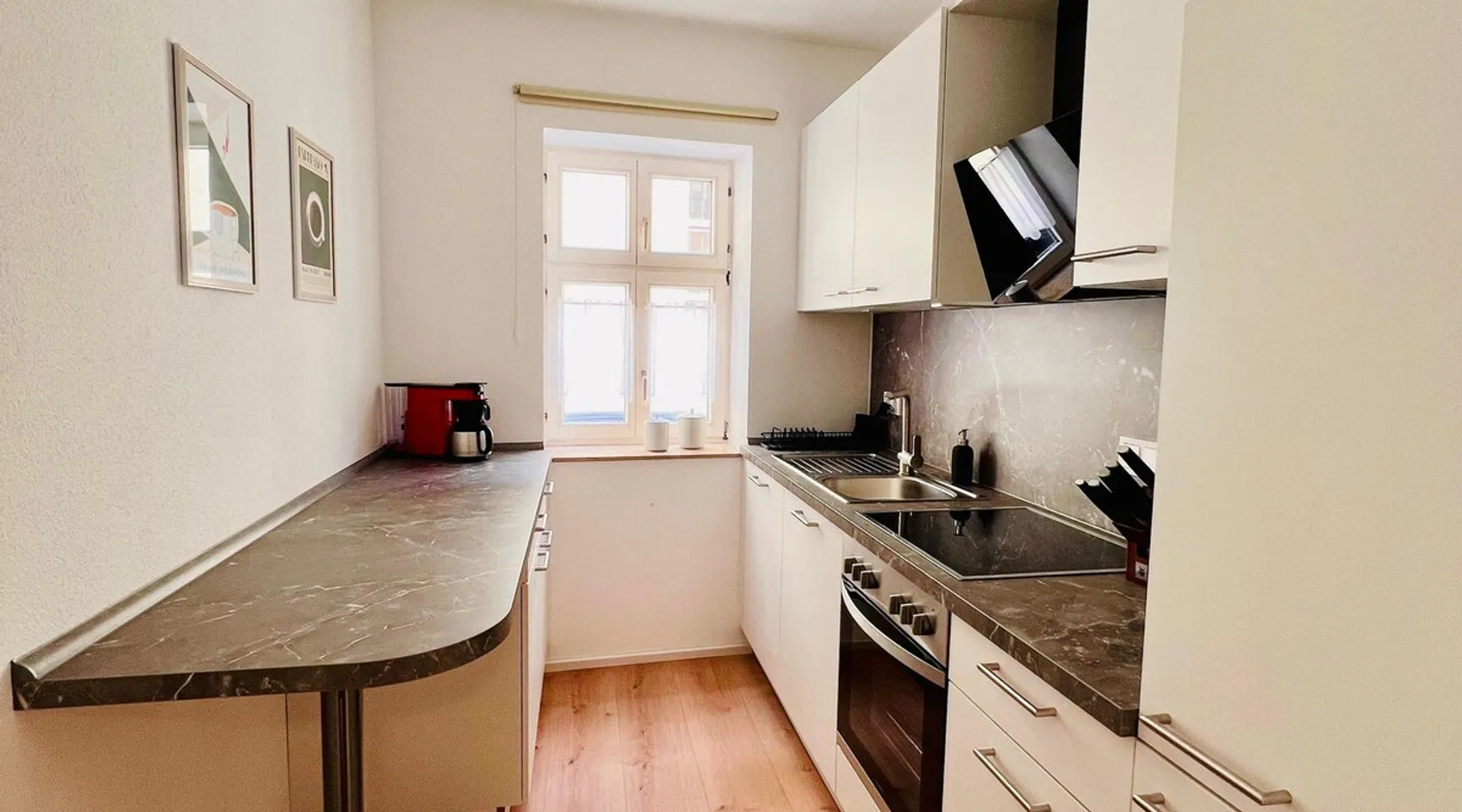 The newly renovated old town apartment is located on the first floor of an approx. 500-year-old house. You will be close to everything when you stay at this centrally-located place. The space The apartment consists of 2 bedrooms each with a double bed, a living and dining room, kitchen and bathroom. The pull-out sofa bed in the living room can accommodate another person. Thus, the apartment offers sleeping possibilities for a total of 5 people. In the wardrobes and in the cloakroom you will find plenty of storage space for your luggage. The kitchen is fully equipped with a hot plate, oven, dishwasher, fridge-freezer, kettle, toaster, coffee maker (pod and filter) and dishes. We will be happy to supply you with a high chair and cot on request.