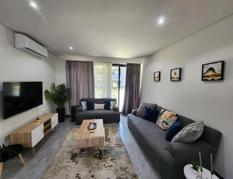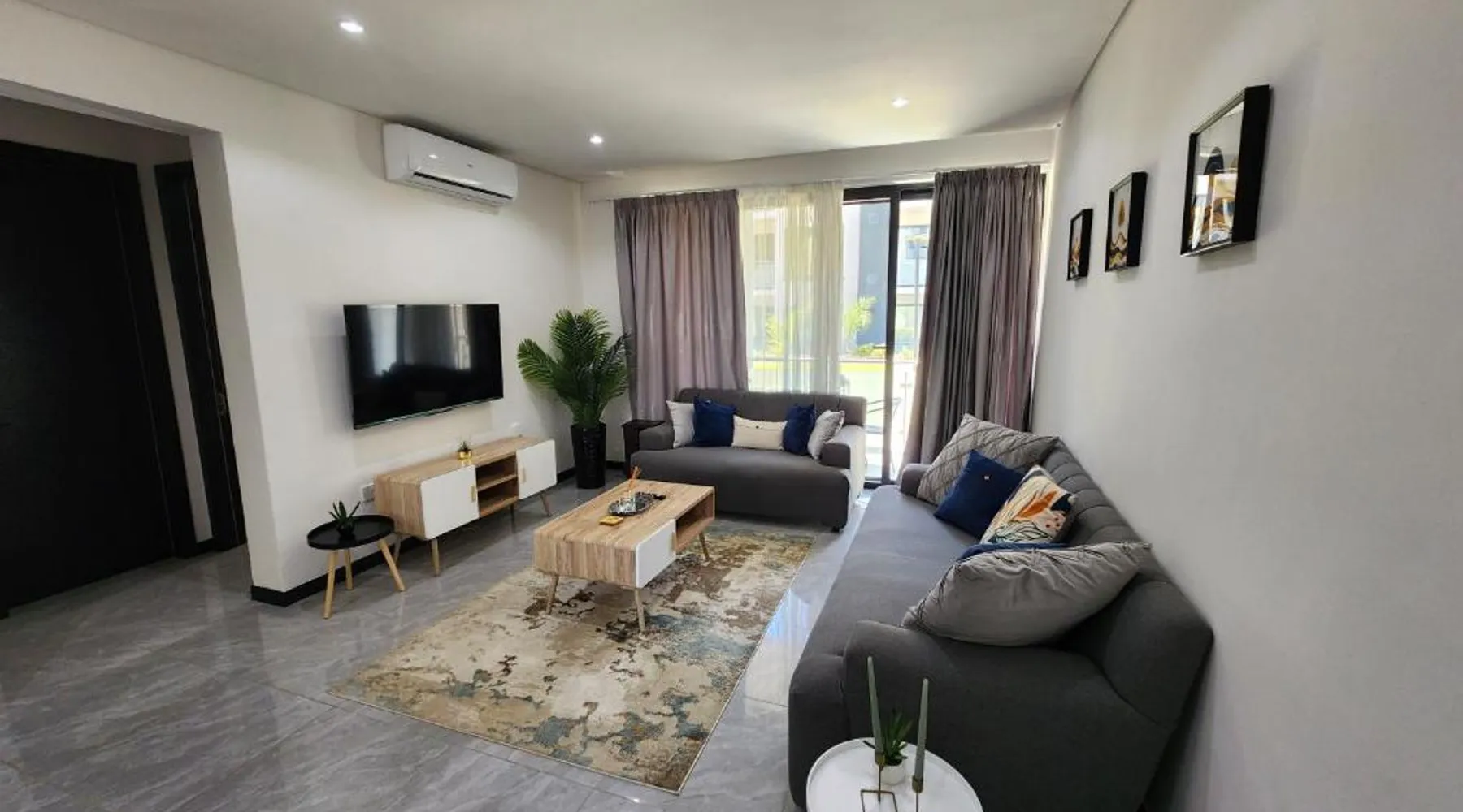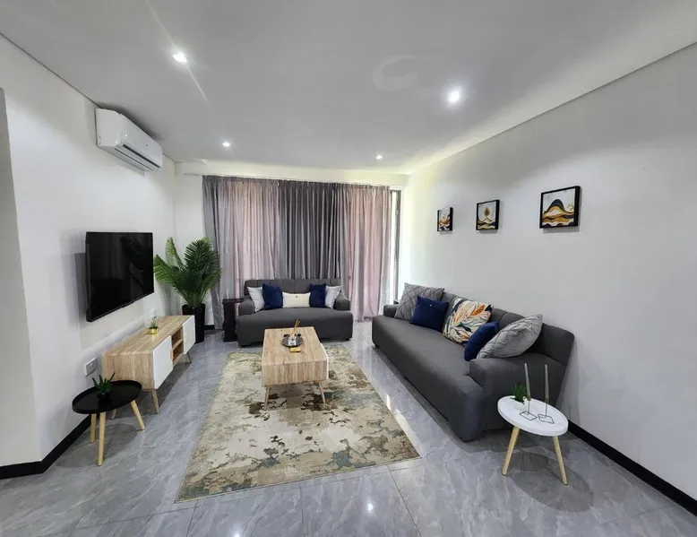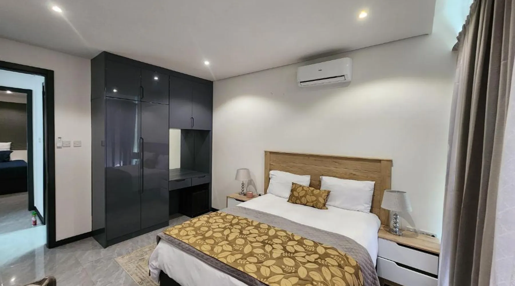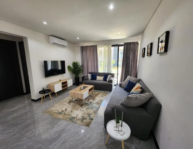 Spacious Accommodations: Starlight Haven in Gaborone offers a spacious apartment with two bedrooms and one bathroom. The ground-floor unit features a terrace, balcony, and garden views. Outdoor Amenities: Guests can enjoy a year-round outdoor swimming pool, a lush garden, and a terrace. Free WiFi is available throughout the property. Convenient Facilities: The apartment includes air-conditioning, a fully equipped kitchen, and a private pool. Additional amenities include a children's playground, outdoor play area, and free on-site private parking. Nearby Attractions: Sir Seretse Khama International Airport is 4.3 mi away. Points of interest such as Phakalane Golf Club and the National Museum and Art Gallery are within 6.2 mi. The private pool is a top feature of this apartment. The fully equipped kitchen has a stovetop, a refrigerator, kitchenware and an oven. The spacious air-conditioned apartment features a flat-screen TV with streaming services, a tea and coffee maker, a seating area, a dining area as well as garden views. The unit has 3 beds.