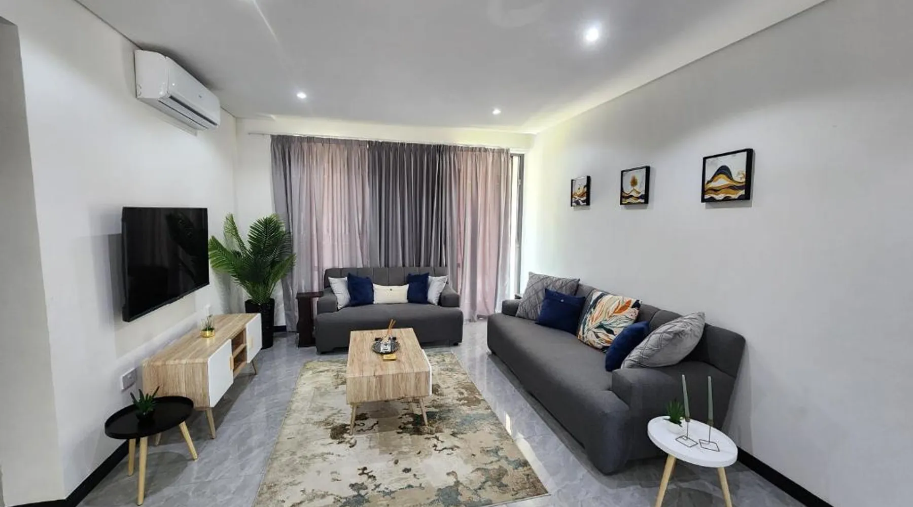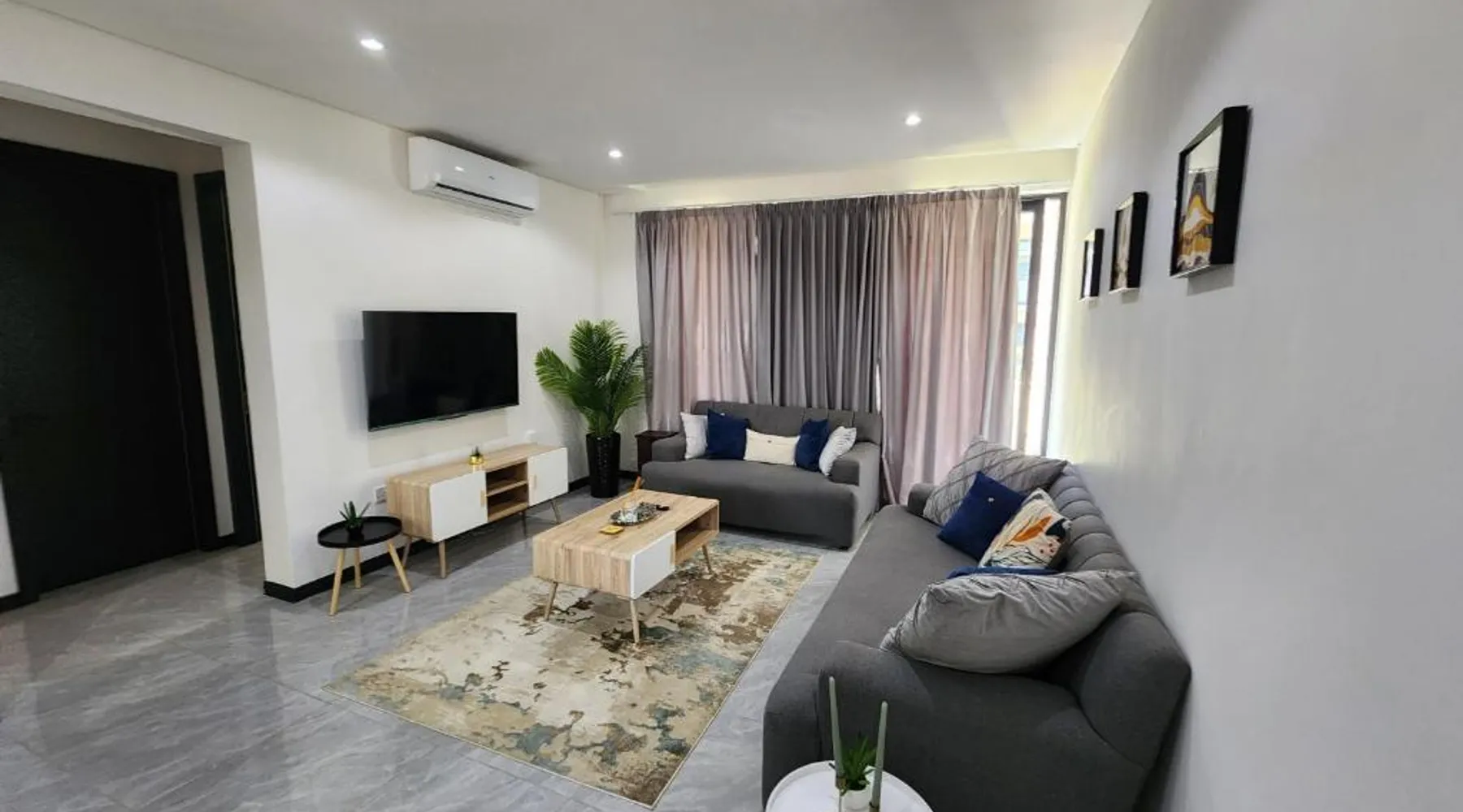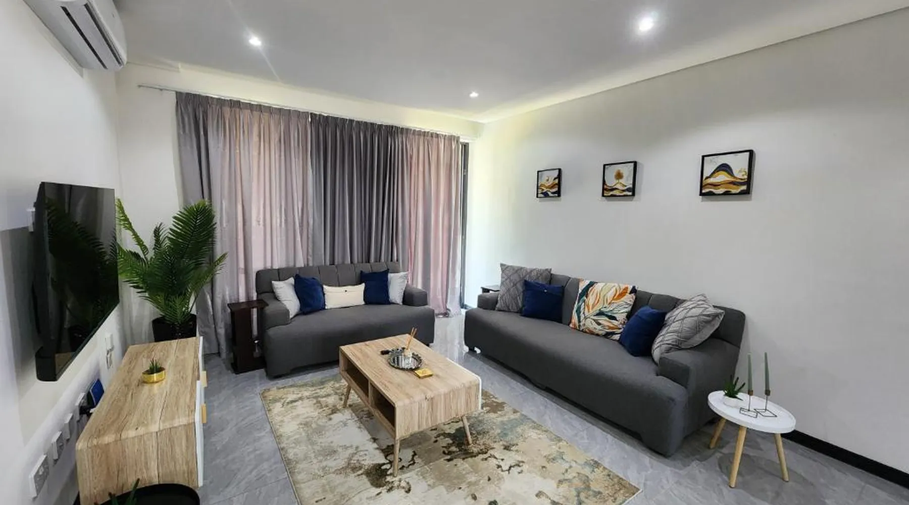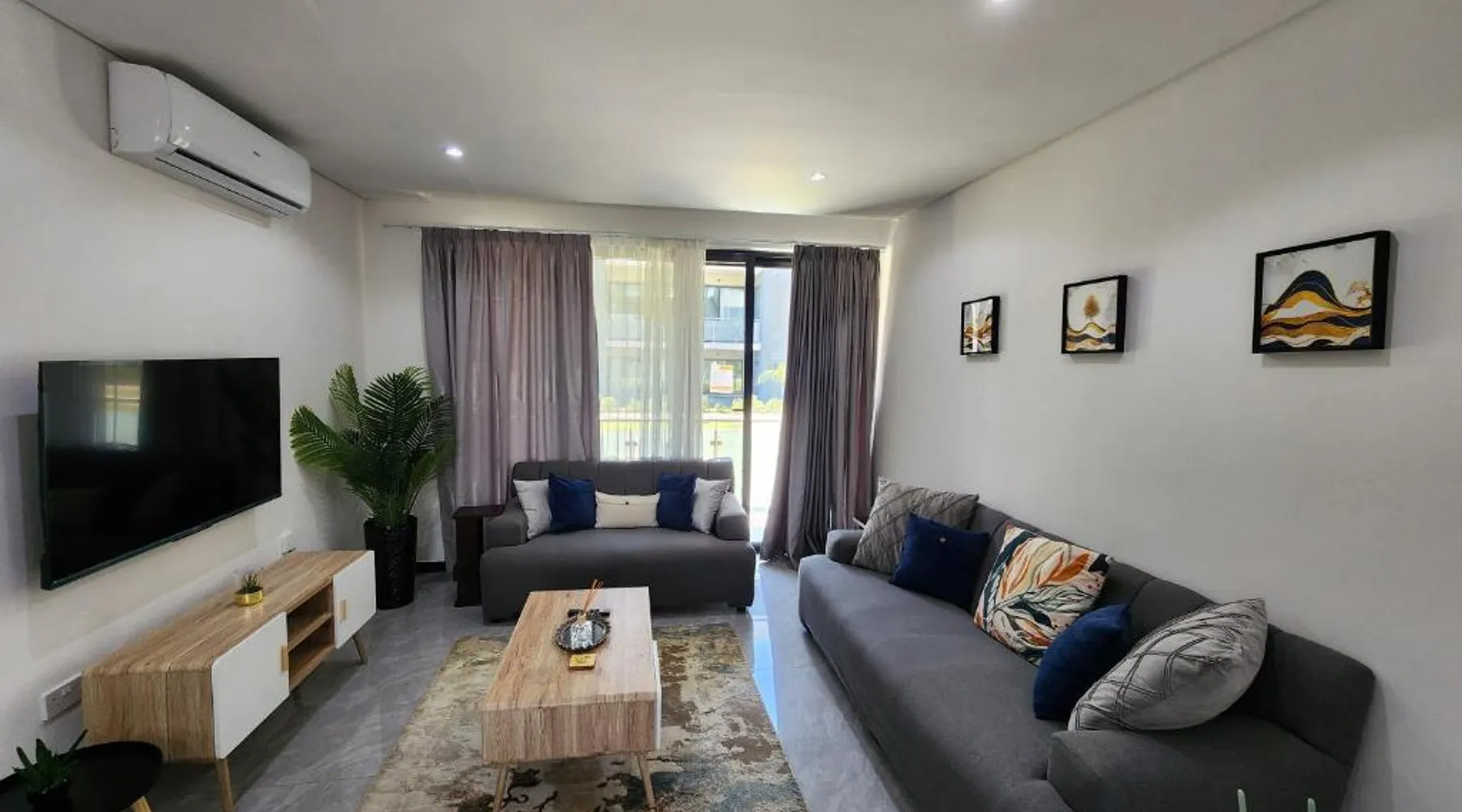 Spacious Accommodations: Starlight Haven in Gaborone offers a spacious apartment with two bedrooms and one bathroom. The ground-floor unit features a terrace, balcony, and garden views. Outdoor Amenities: Guests can enjoy a year-round outdoor swimming pool, a lush garden, and a terrace. Free WiFi is available throughout the property. Convenient Facilities: The apartment includes air-conditioning, a fully equipped kitchen, and a private pool. Additional amenities include a children's playground, outdoor play area, and free on-site private parking. Nearby Attractions: Sir Seretse Khama International Airport is 4.3 mi away. Points of interest such as Phakalane Golf Club and the National Museum and Art Gallery are within 6.2 mi. The private pool is a top feature of this apartment. The fully equipped kitchen has a stovetop, a refrigerator, kitchenware and an oven. The spacious air-conditioned apartment features a flat-screen TV with streaming services, a tea and coffee maker, a seating area, a dining area as well as garden views. The unit has 3 beds.