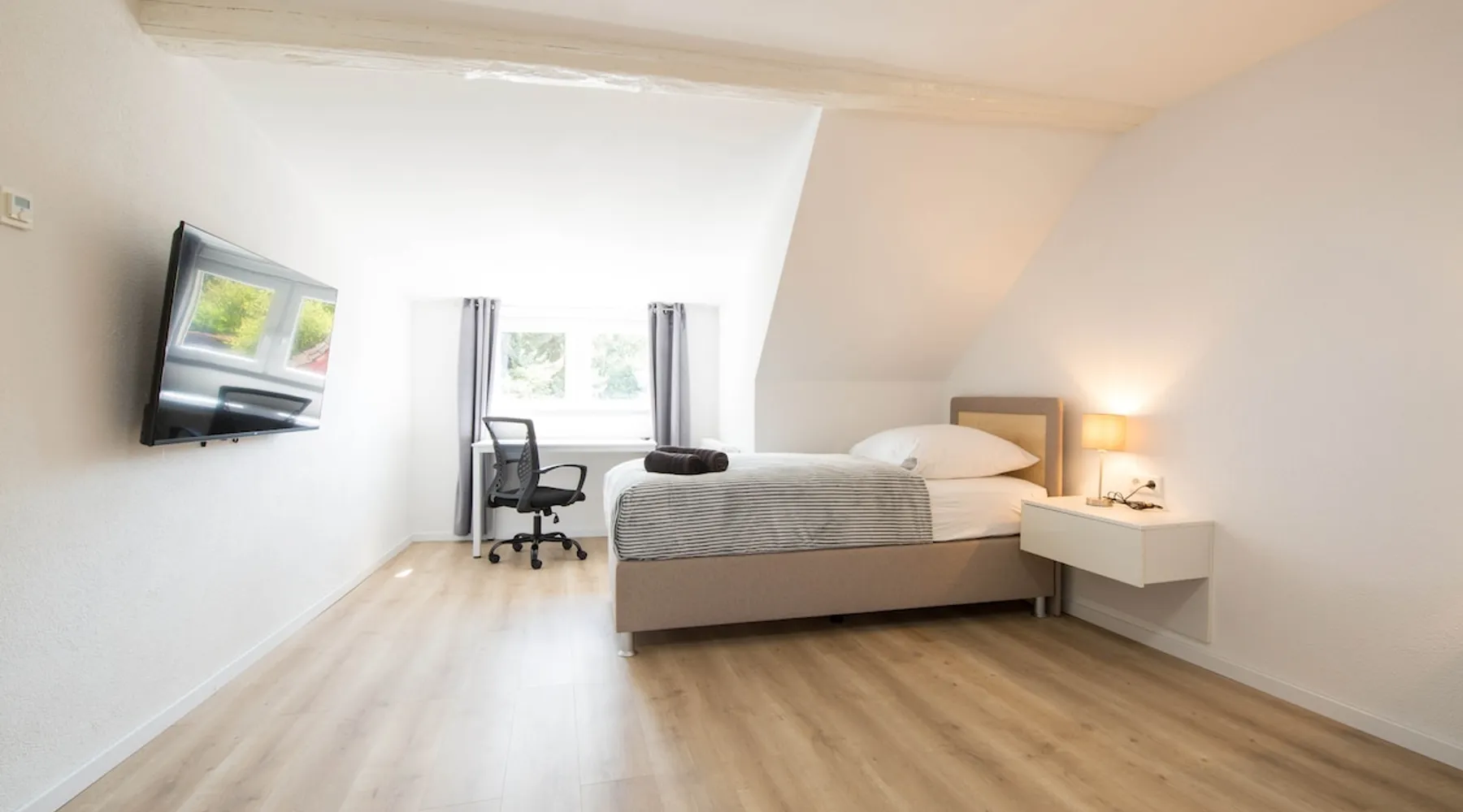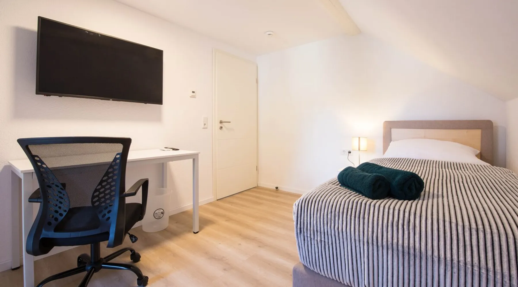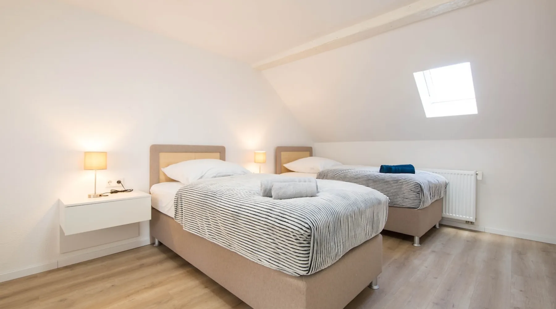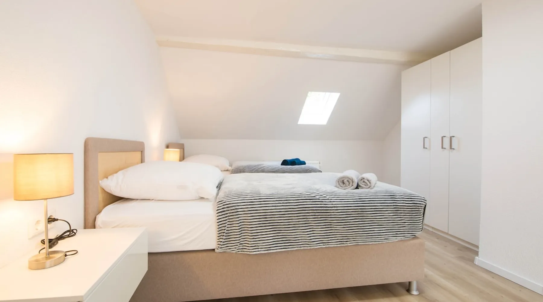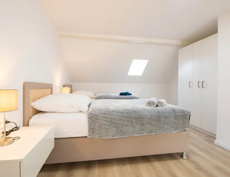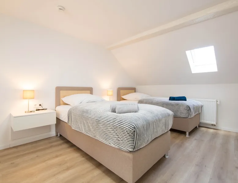 The apartment includes 3 spacious, fully equipped bedrooms and can be occupied by a maximum of 5 people. Room facilities: - Comfortable single box spring beds 90x200 - Smart TV - Side tables - Wardrobe - desk - Office chair - towels/sheets Kitchen: - Fully equipped kitchen with dining area - Stove - Oven * Coffee machine - Kettle - toaster - Microwave oven - Dishwasher - Washer-dryer - Fridge/freezer Bath: - Shower - 2 sinks - Bathroom