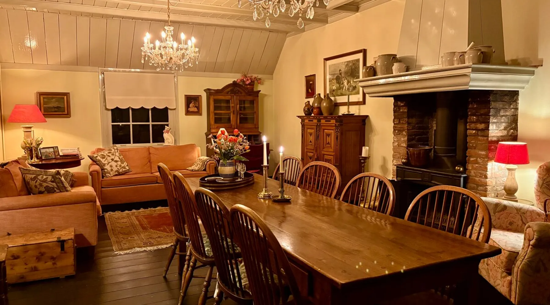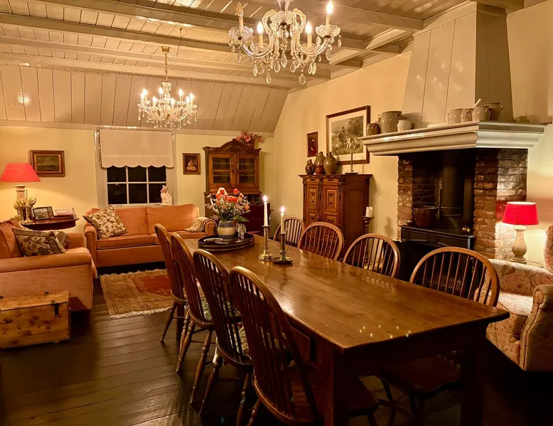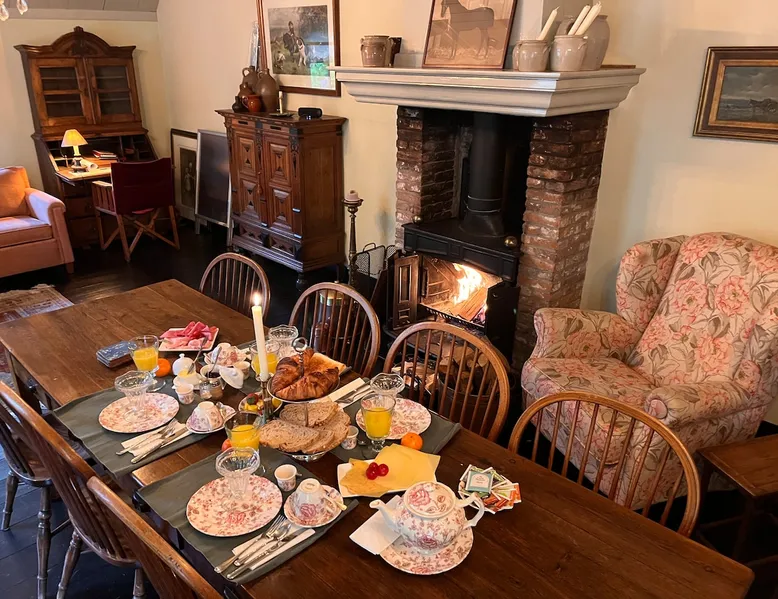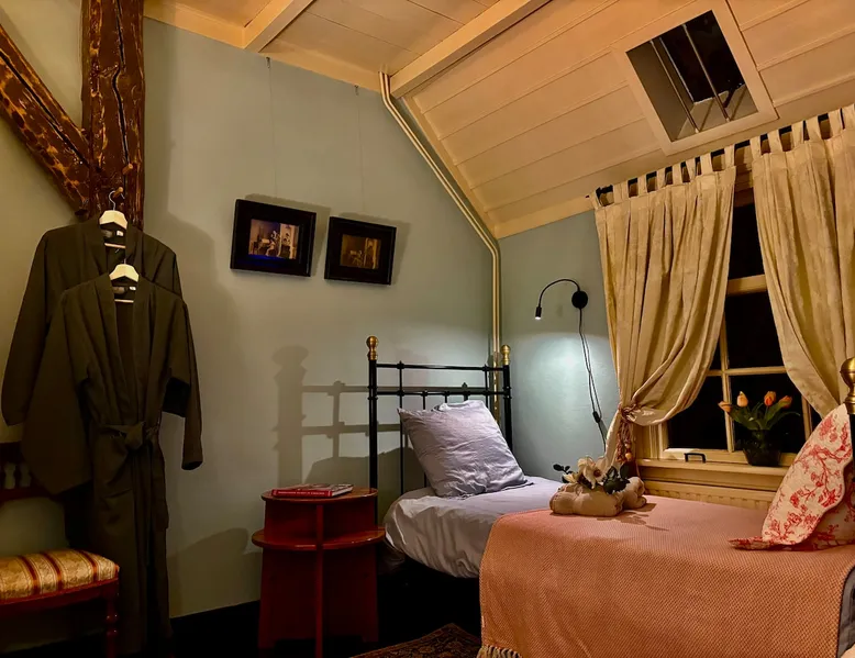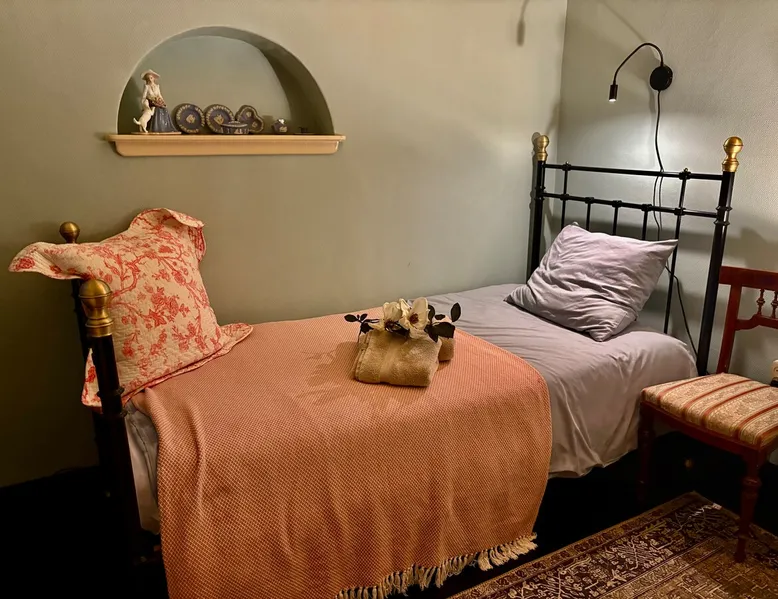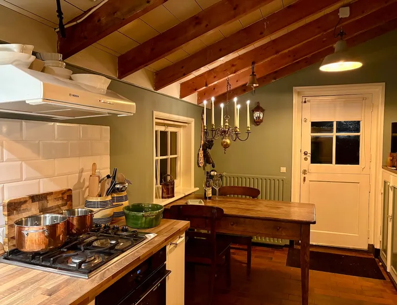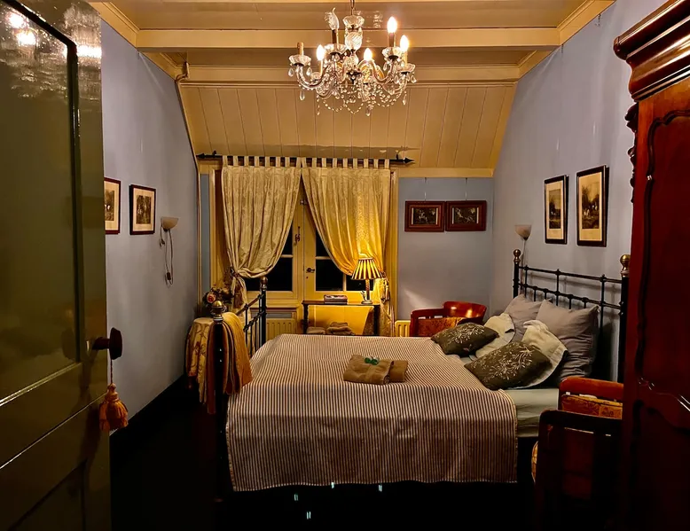 Cozy and authentic, this monumental building knows no bounds. The building was built in 1850, has been completely restored and, in addition to the four guest rooms, has a cozy spacious living room with fireplace and two bedsteads. In total, including bedsteads, there are 12 sleeping places. The property is located in the middle of the old town of Amerongen. 10 minutes away from the woods of the Utrechtse Heuvelrug. Many opportunities for hiking, mountain biking and cycling. The space The property consists of a cozy spacious living room with a large table that can accommodate 10 people, a lounge area and a fireplace. In the living room, there are two beds that can be used by people no longer than 170 cm. There are 4 bedrooms for a total of 10 adults. The two rooms on the first floor have air conditioning. All rooms have a television with streaming services such as Netflix etc. The breakfast room offers space for all people to have a cozy breakfast, lunch, etc. The breakfast room is adjacent to the kitchen, which is equipped with all modern appliances such as a (new 2025) oven, dishwasher, washing machine, bread maker, etc. There is a spacious and cozy enclosed garden. There is a shed for bicycles, etc. There are three bathrooms in the property. The property is located in the center of Amerongen opposite the Amerongen Castle and 10 minutes walk from the woods of the Utrechtse Heuvelrug. There is a possibility to store and charge the bicycles. Great selection of restaurants within walking distance (max 5 minutes) Guest access The whole house may be used. There are a number of places where private goods are stored. Other things to note There is parking for several cars right in front of the door. It is a vulnerable house in terms of interior design (antiques and glass). Therefore, the request to treat this with respect. The fireplace may be used. The first load is free. Subsequent loads cost €10 per load. Breakfast service is possible in consultation. The house is not wheelchair friendly due to the thresholds and limited access to the shower.