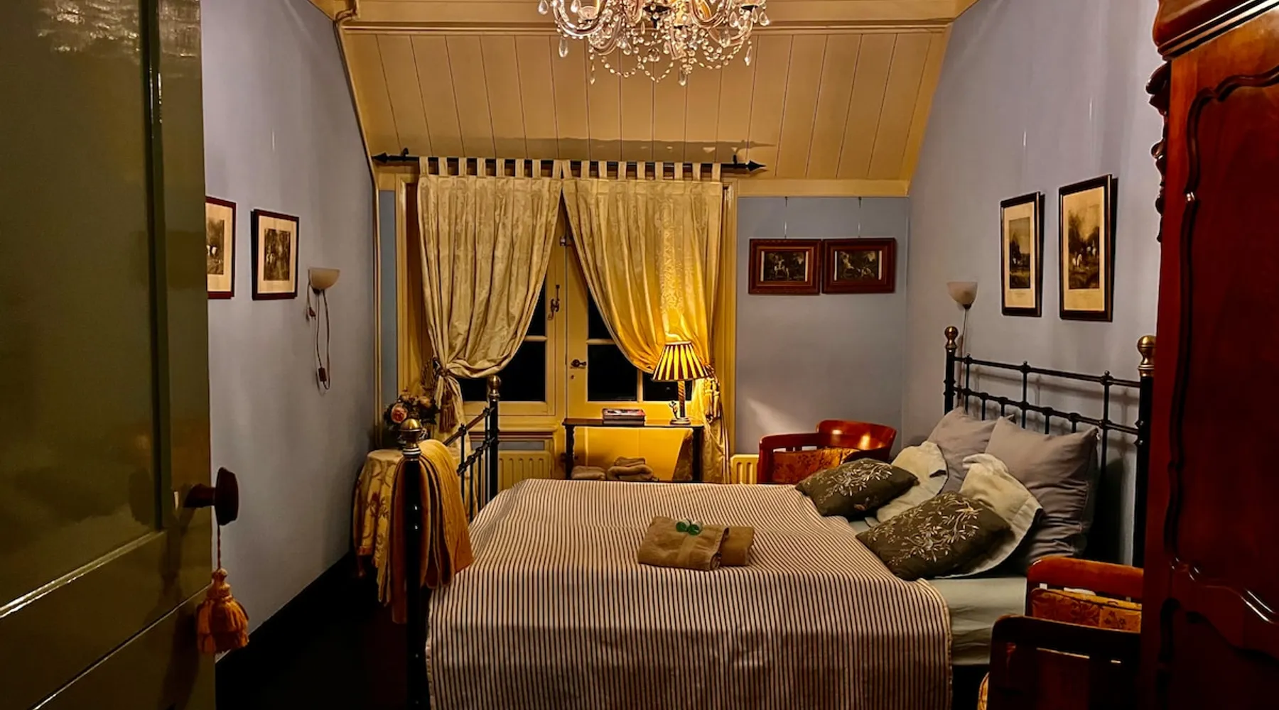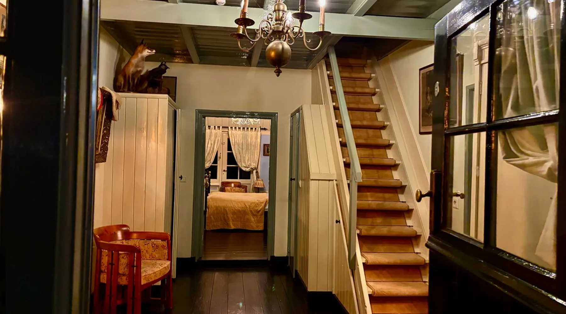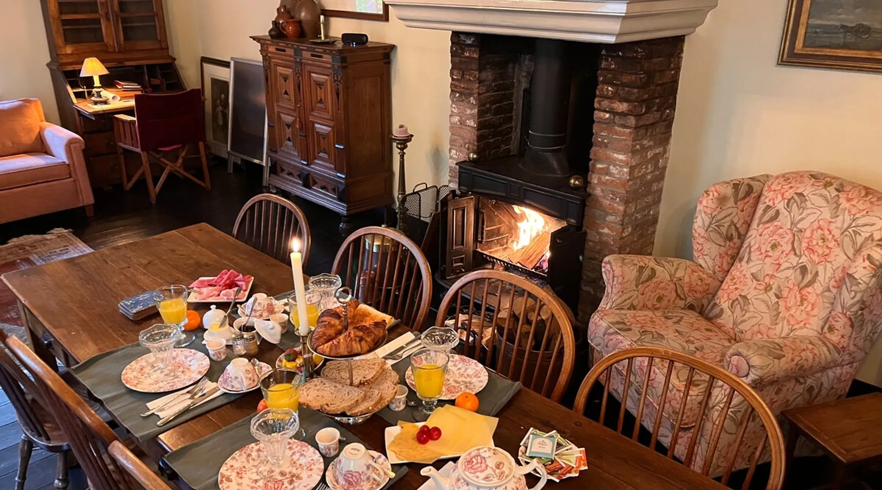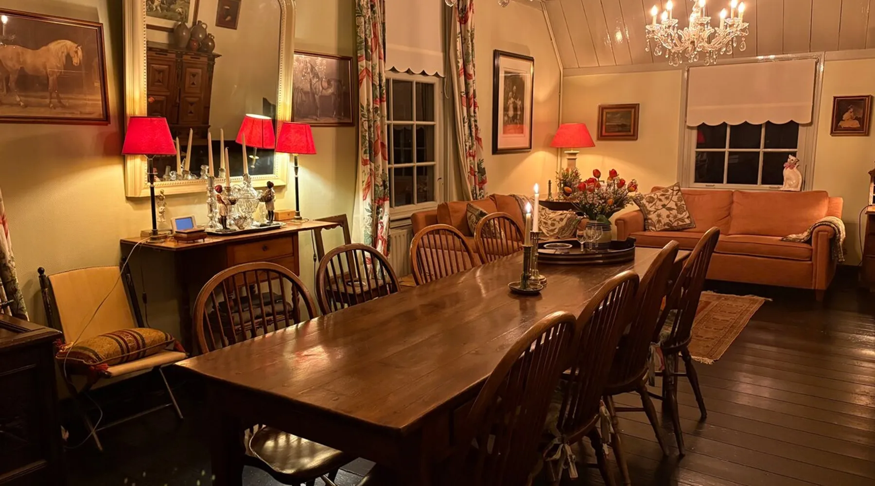 Cozy and authentic, this monumental building knows no bounds. The building was built in 1850, has been completely restored and, in addition to the four guest rooms, has a cozy spacious living room with fireplace and two bedsteads. In total, including bedsteads, there are 12 sleeping places. The property is located in the middle of the old town of Amerongen. 10 minutes away from the woods of the Utrechtse Heuvelrug. Many opportunities for hiking, mountain biking and cycling. The space The property consists of a cozy spacious living room with a large table that can accommodate 10 people, a lounge area and a fireplace. In the living room, there are two beds that can be used by people no longer than 170 cm. There are 4 bedrooms for a total of 10 adults. The two rooms on the first floor have air conditioning. All rooms have a television with streaming services such as Netflix etc. The breakfast room offers space for all people to have a cozy breakfast, lunch, etc. The breakfast room is adjacent to the kitchen, which is equipped with all modern appliances such as a (new 2025) oven, dishwasher, washing machine, bread maker, etc. There is a spacious and cozy enclosed garden. There is a shed for bicycles, etc. There are three bathrooms in the property. The property is located in the center of Amerongen opposite the Amerongen Castle and 10 minutes walk from the woods of the Utrechtse Heuvelrug. There is a possibility to store and charge the bicycles. Great selection of restaurants within walking distance (max 5 minutes) Guest access The whole house may be used. There are a number of places where private goods are stored. Other things to note There is parking for several cars right in front of the door. It is a vulnerable house in terms of interior design (antiques and glass). Therefore, the request to treat this with respect. The fireplace may be used. The first load is free. Subsequent loads cost €10 per load. Breakfast service is possible in consultation. The house is not wheelchair friendly due to the thresholds and limited access to the shower.