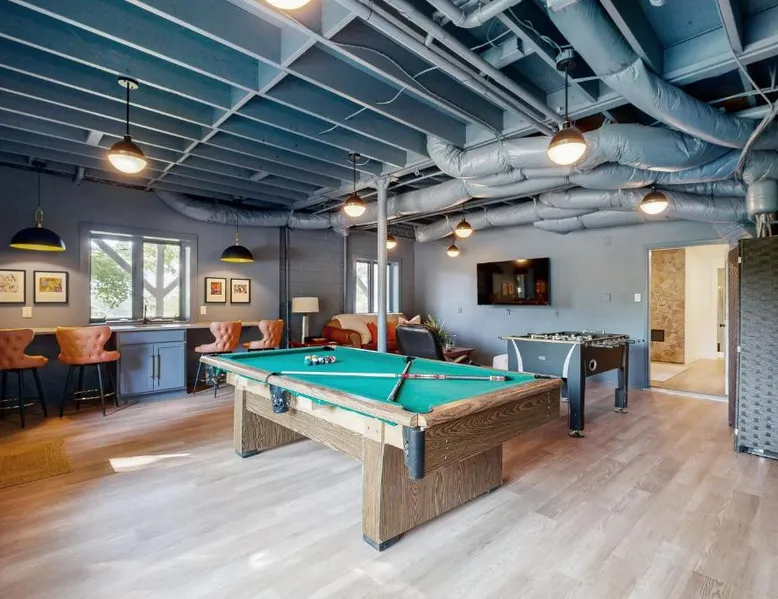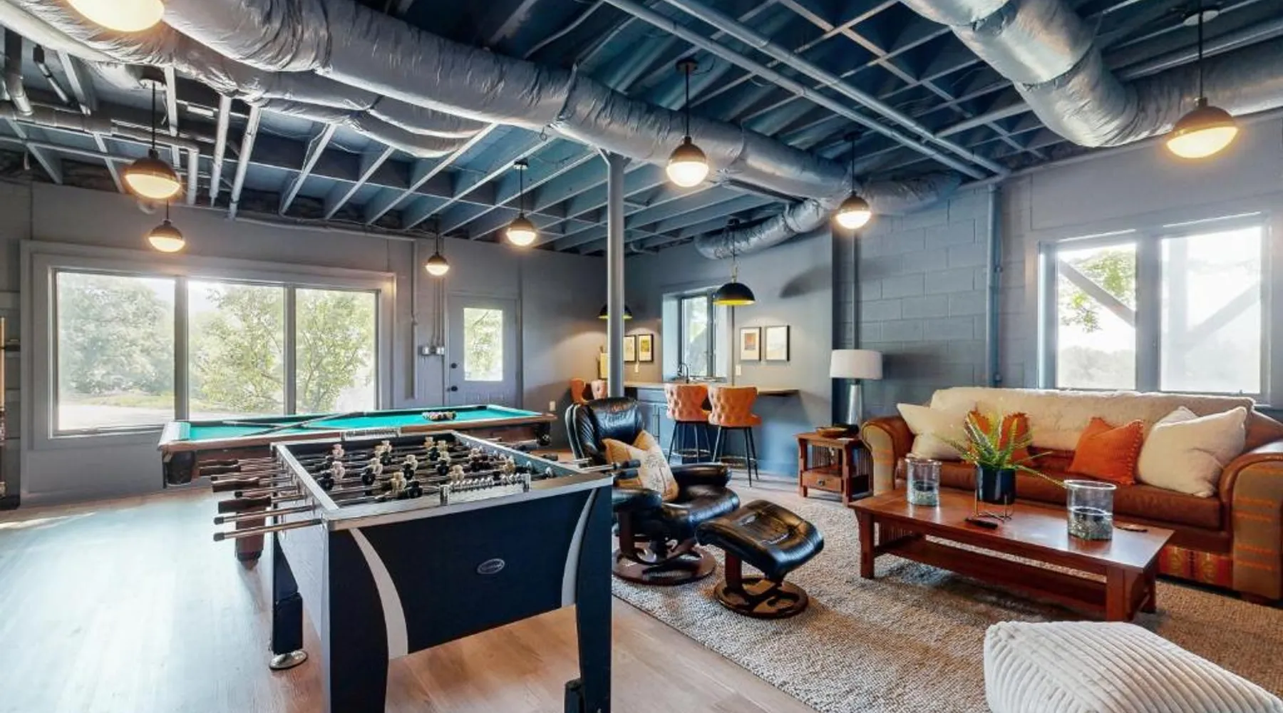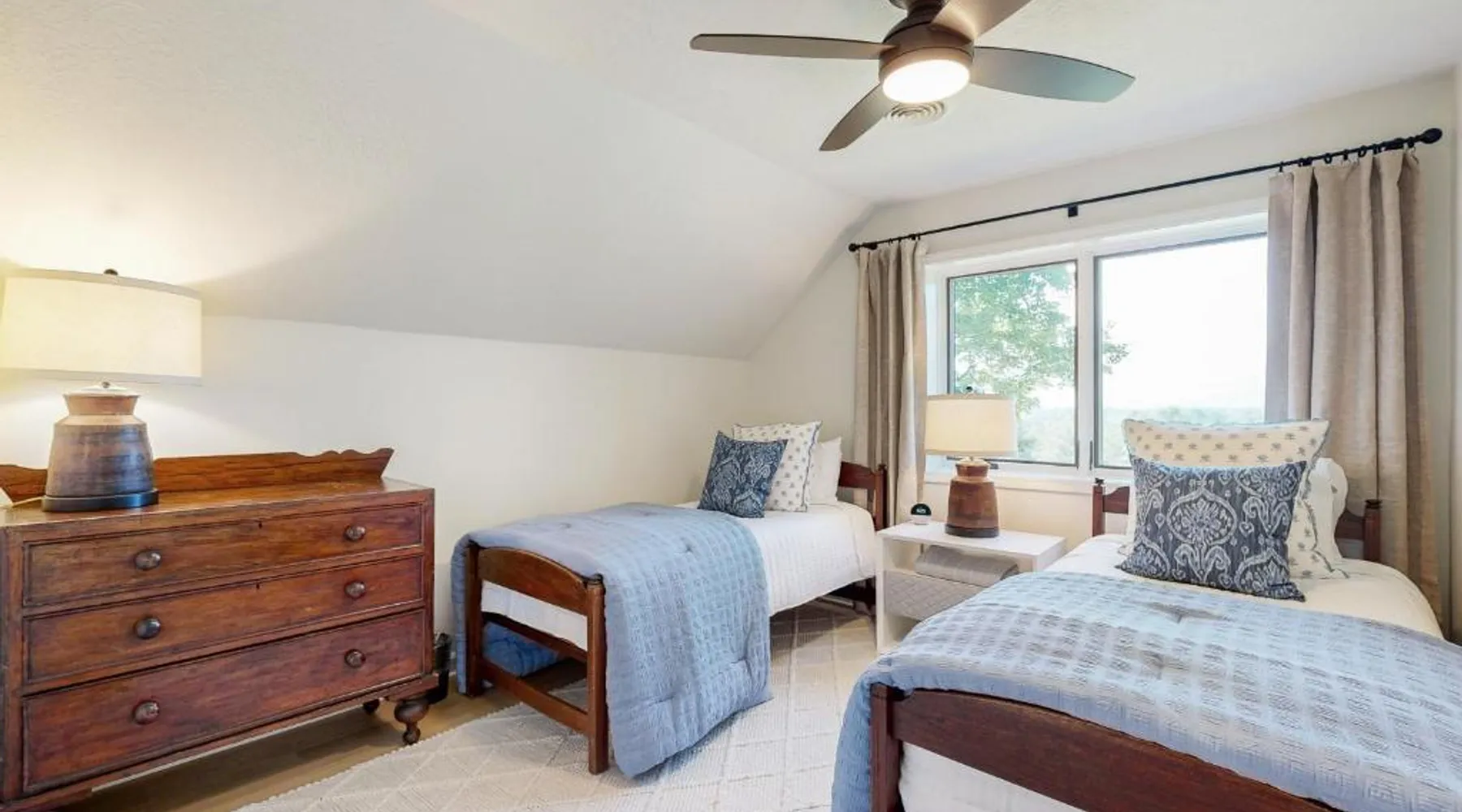 Spacious Holiday Home in Black Mountain: Valley View Lodge at Camp Rockmont offers a spacious setting with four bedrooms and three bathrooms. Guests enjoy mountain views and a relaxing outdoor seating area. Modern Amenities and Facilities: The property features air-conditioning, streaming services, a washing machine, and a fully equipped kitchen with a dishwasher and microwave. Additional amenities include a games room and outdoor fireplace. Convenient Location: Located 23 mi from Asheville Regional Airport, the lodge is close to attractions such as Biltmore Estate (17 mi) and the Western North Carolina Nature Center (11 mi). Reception staff speak Czech, German, English, Spanish, French, Italian, Dutch, and Portuguese. The spacious holiday home has 4 bedrooms and 3 bathrooms with a hairdryer and free toiletries. The well-equipped kitchen features a stovetop, a refrigerator, a dishwasher and kitchenware. The air-conditioned holiday home offers a TV with streaming services, a washing machine, a tea and coffee maker, a seating area as well as mountain views. The unit has 11 beds.