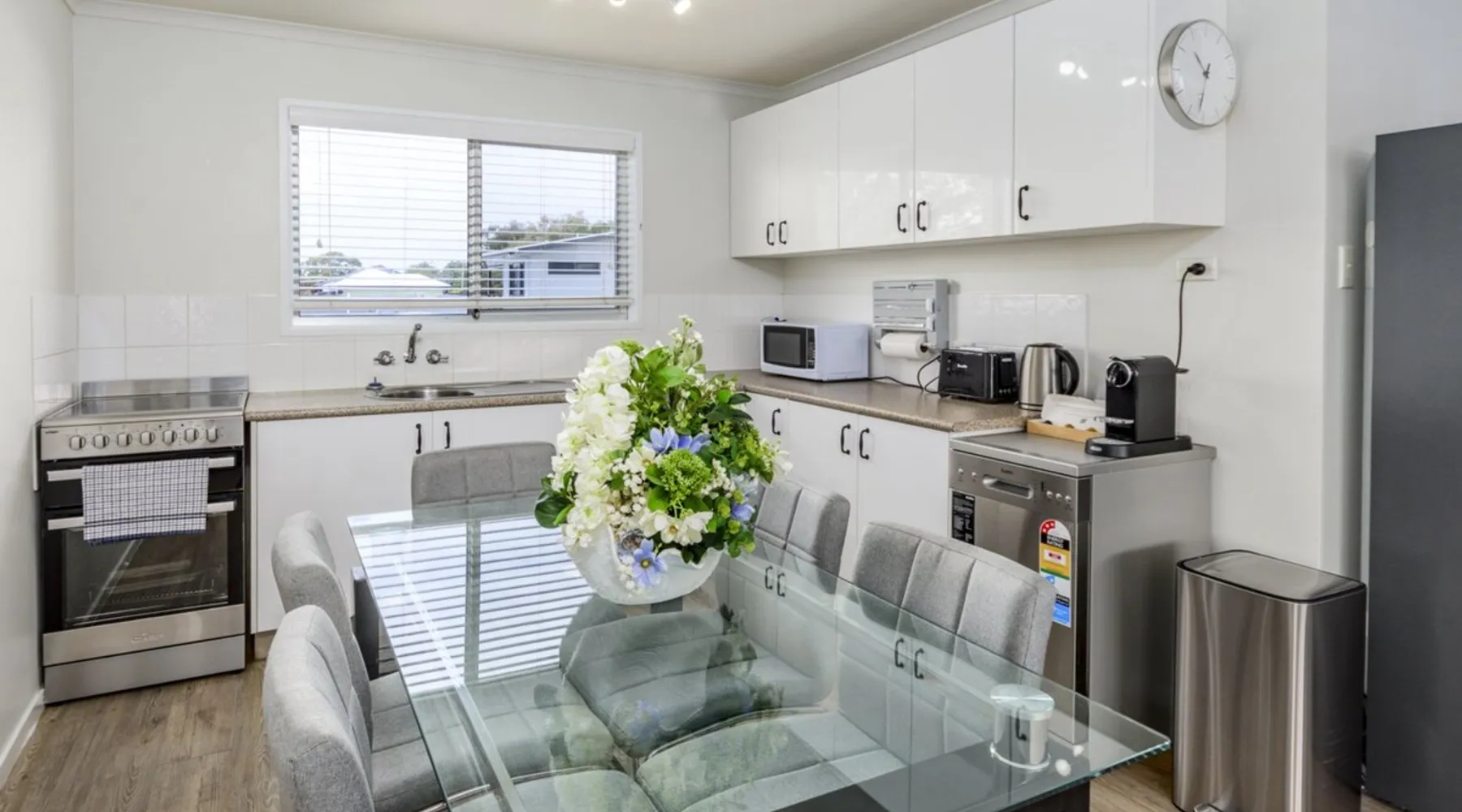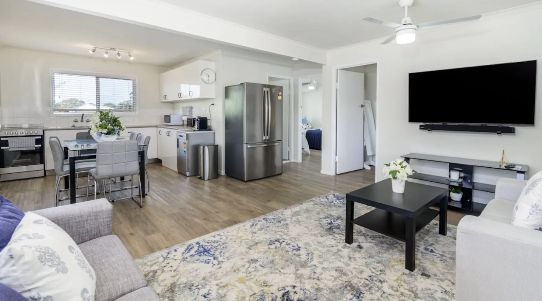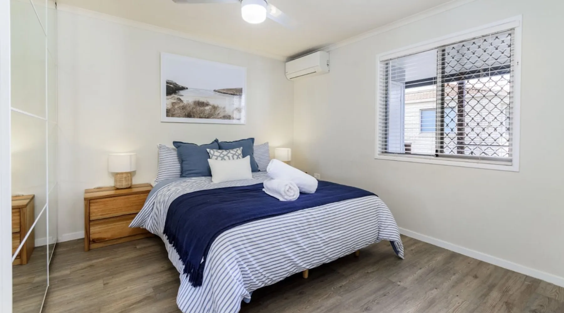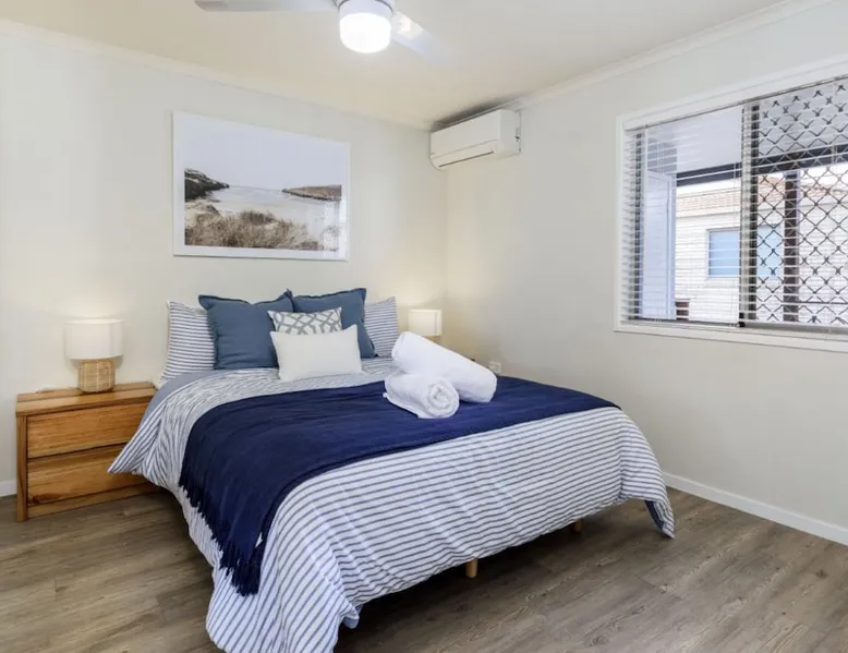 If you love a sunset over the water this is the place for you. Take it in from the comfort of the balcony or cross the road to watch the sun retreat whilst your feet are in the sand. Everything you need is at your fingertips in this renovated first floor unit. It is perfectly furnished with the warmth and comfort of home. You can bring along your paddle board for a relaxing day on the water straight across from the property or just enjoy a peaceful walk along the waterfront. The space * 2 bedrooms * 1 bathroom * Air-conditioning throughout * Linen supplied * Unlimited WiFi * Across from the water * Waterviews * Fully equipped kitchen with coffee pod machine * Stylish furnishings * Smart TV * Garage (small and medium car only due to height of cars) * Laundry with washing machine and dryer * Ask us about renting unit 1 & unit 3 for larger gatherings * Sorry NO PETS * 2 night minimum * Enjoy a complimentary 11am checkout Please enjoy the linen provided as part of your booking. We ask that you please ensure that there is no makeup removed on towels, hand towels and face washers. Beach towels will not be provided as part of the linen package. The information contained within the property description and photographs is subject to change. Guest access Everything Other things to note * A Refundable Security Deposit of $500. 00 is payable if you are checking in outside office hours. * Please Note: We do not offer 'serviced' accommodation. You will be provided some start up items such as a roll of toilet paper and some cleaning supplies but they will not be replenished during your stay. * You are required to leave the property in a clean and tidy condition or additional charges will apply. * If you require an after-hours check in you will need to arrange this during business hours. Any after-hours call outs will incur a $100. 00 fee. * First National Real Estate Bribie Island is closed on the following public holidays and therefore no incoming or outgoing bookings or transactions can be made on these days: Good Friday, Easter Sunday, Anzac Day, Christmas Day, Boxing Day, New Years Day. * As also stated in our terms and conditions, all bookings for December - January holiday period must be paid in full by 1st November each year. * All bookings are subject to First National Real Estate Bribie Island's Terms and Conditions. Prices are subject to change without notice.