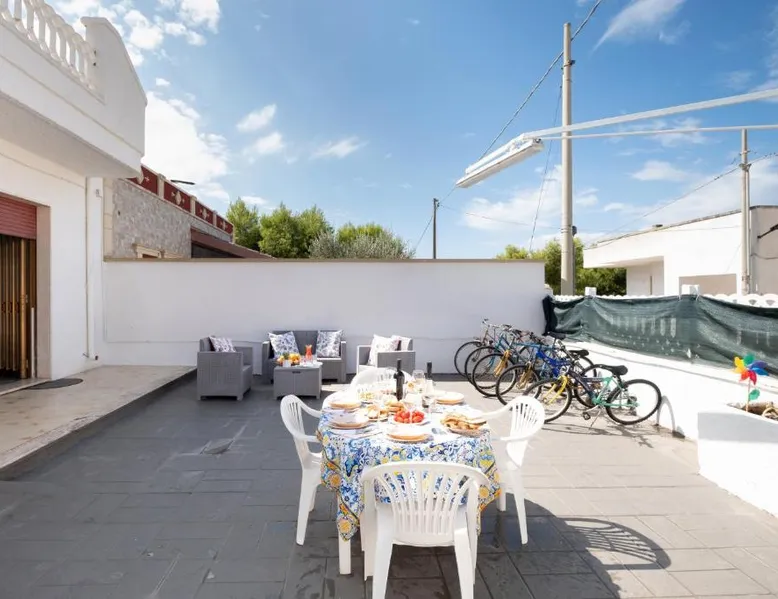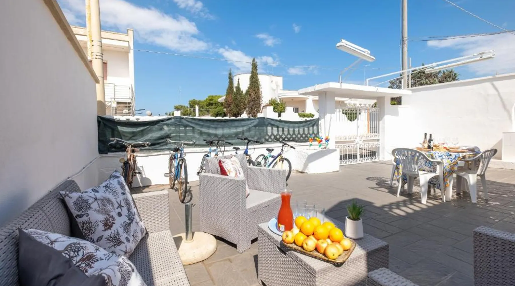 Spacious Holiday Home in Porto Cesareo: Villa Heart Island Vista Mare offers a spacious setting in Porto Cesareo, Italy. The property features three bedrooms and two bathrooms, ensuring ample space for guests. Outdoor Amenities: Guests can enjoy a beautiful garden and free WiFi throughout the holiday home. An outdoor seating area and barbecue facilities provide relaxing spaces for outdoor activities. Comfortable Living: The property includes a terrace and balcony with sea views, air-conditioning, and a fully equipped kitchen. Additional amenities include a washing machine, TV, and free off-site parking. Nearby Attractions: Spiaggia di Torre Squillace is an 8-minute walk away, while Brindisi - Salento Airport is 37 mi from the property. Other attractions include Piazza Mazzini and Sant' Oronzo Square, each 19 mi distant. Boasting a private entrance, this spacious holiday home also includes 1 living room, 3 separate bedrooms and 2 bathrooms with a hairdryer. Guests will find a stovetop, a refrigerator, kitchenware and an oven in the fully equipped kitchen. The holiday home also features a barbecue. The air-conditioned holiday home offers a TV with cable channels, a washing machine, a coffee machine, a safe deposit box as well as sea views. The unit has 8 beds.