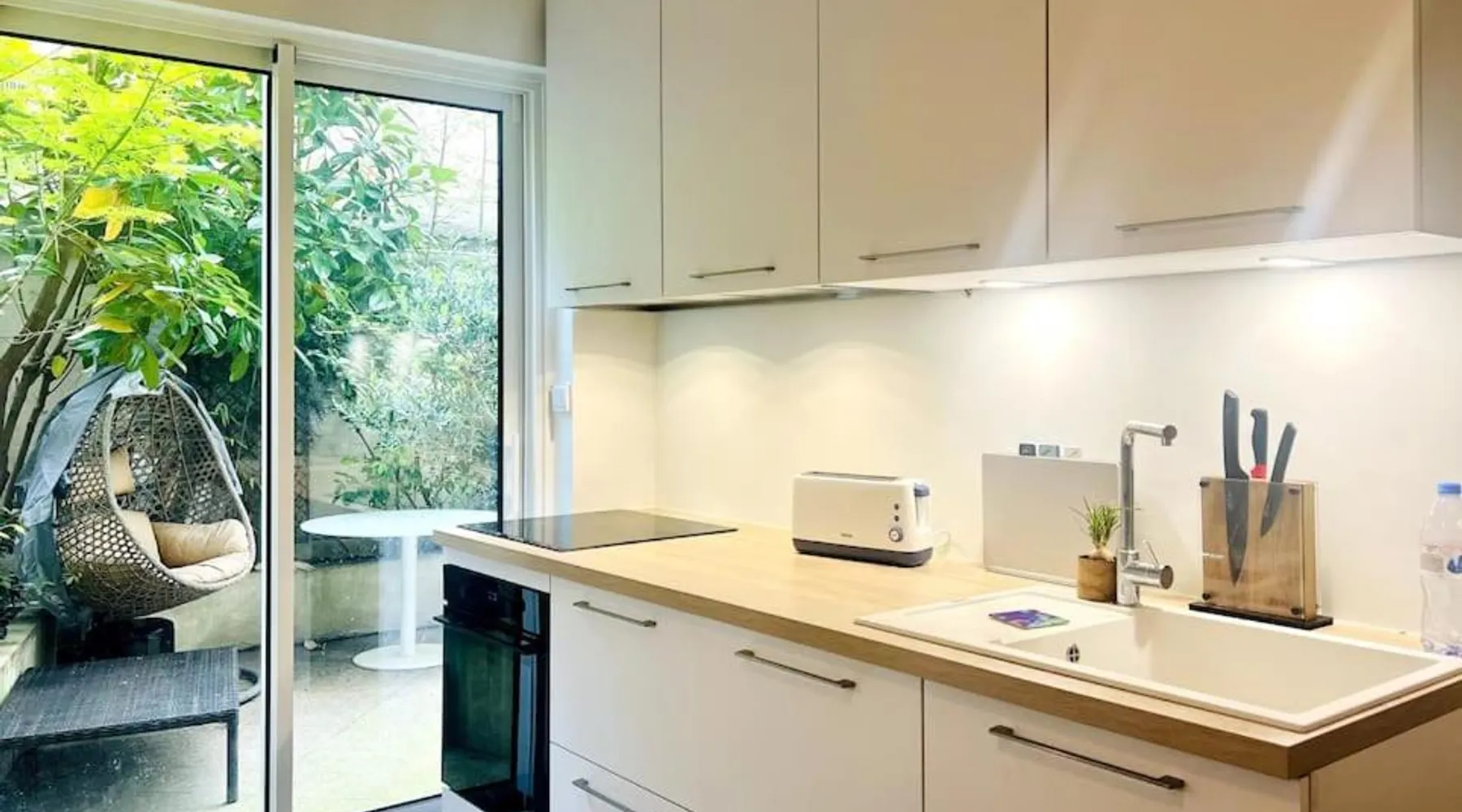 Un appartement de deux chambres climatisé avec un jardin privatif près de Trocadero